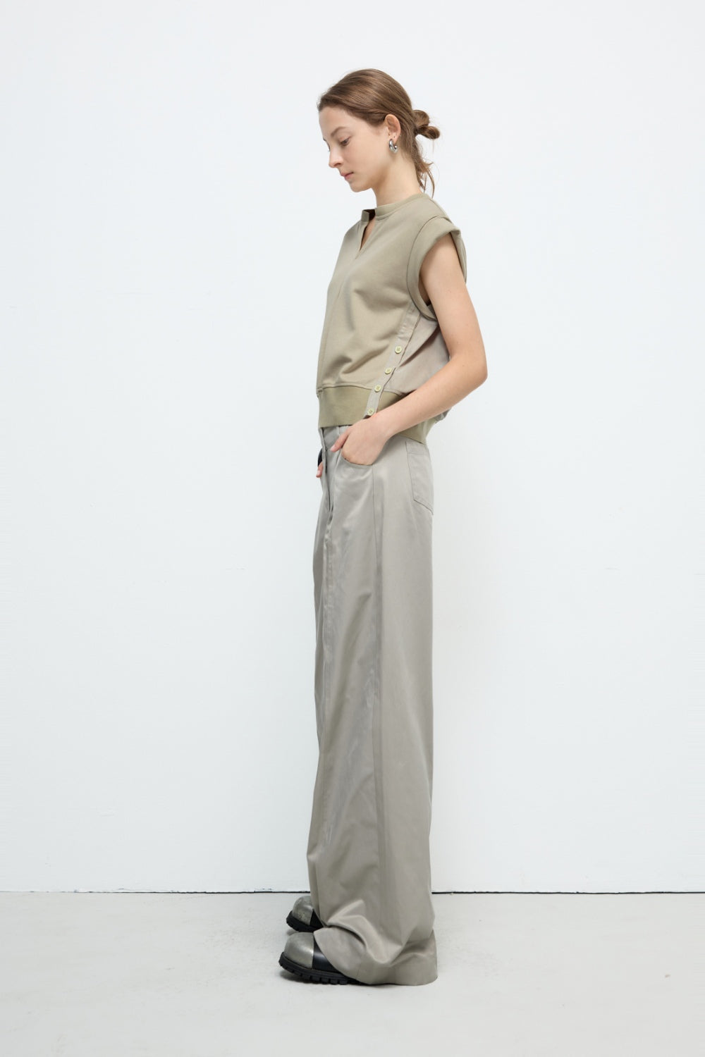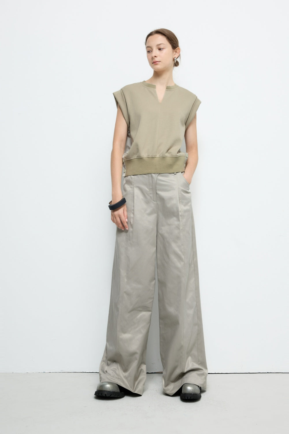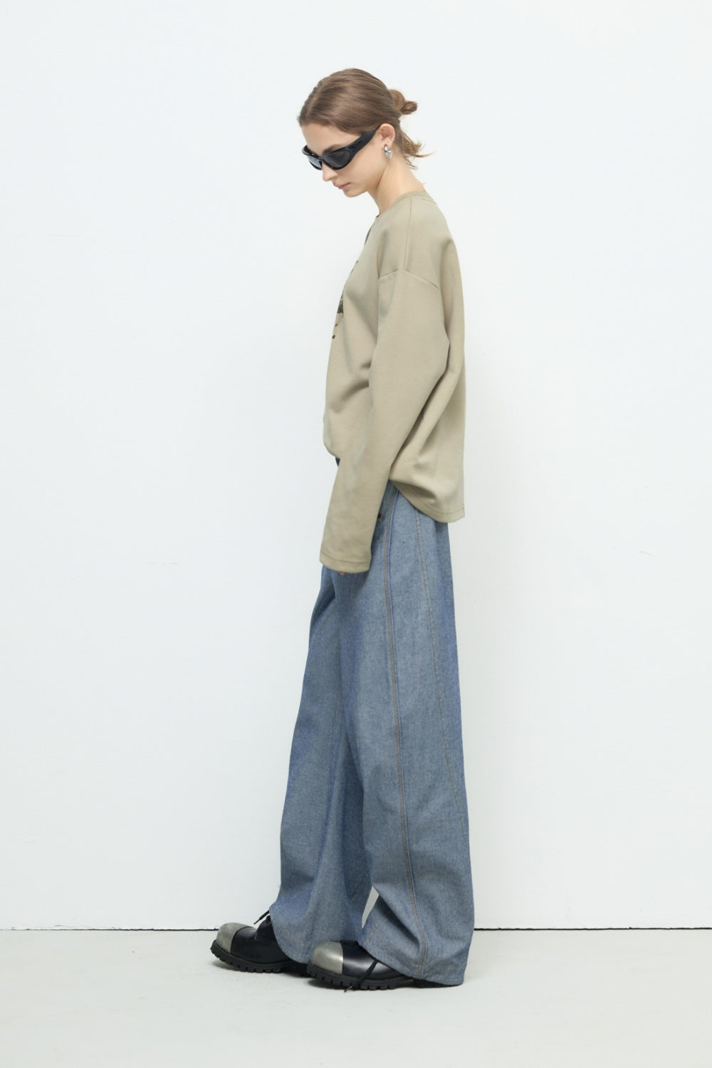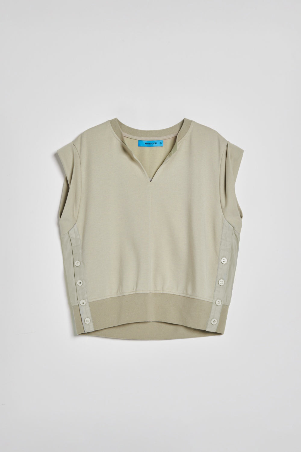不規則下襬彈性圓領上衣-杏