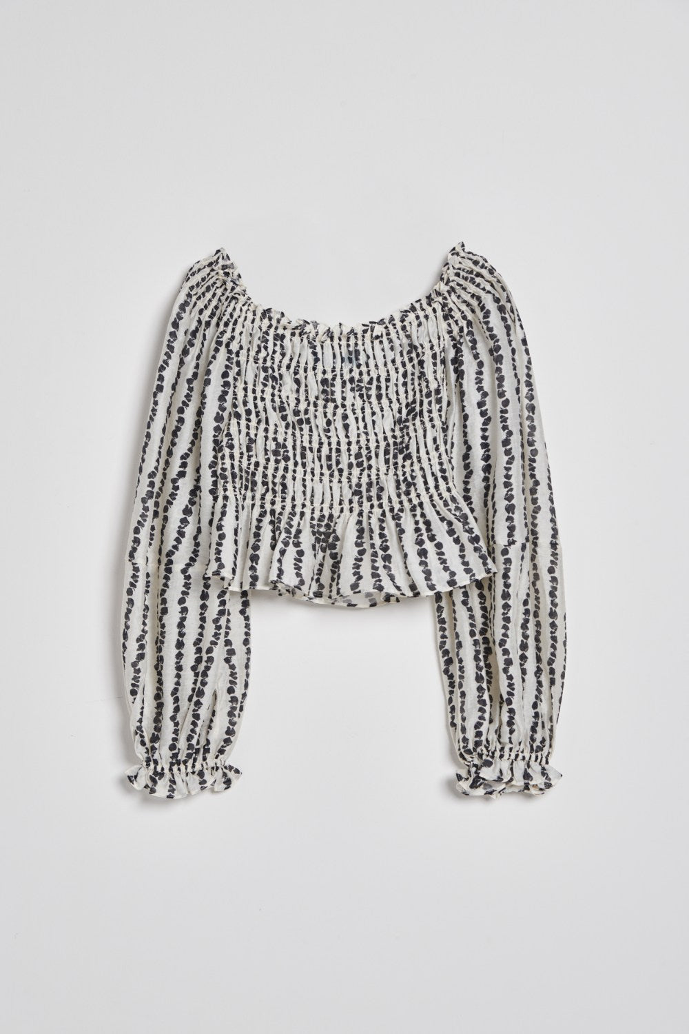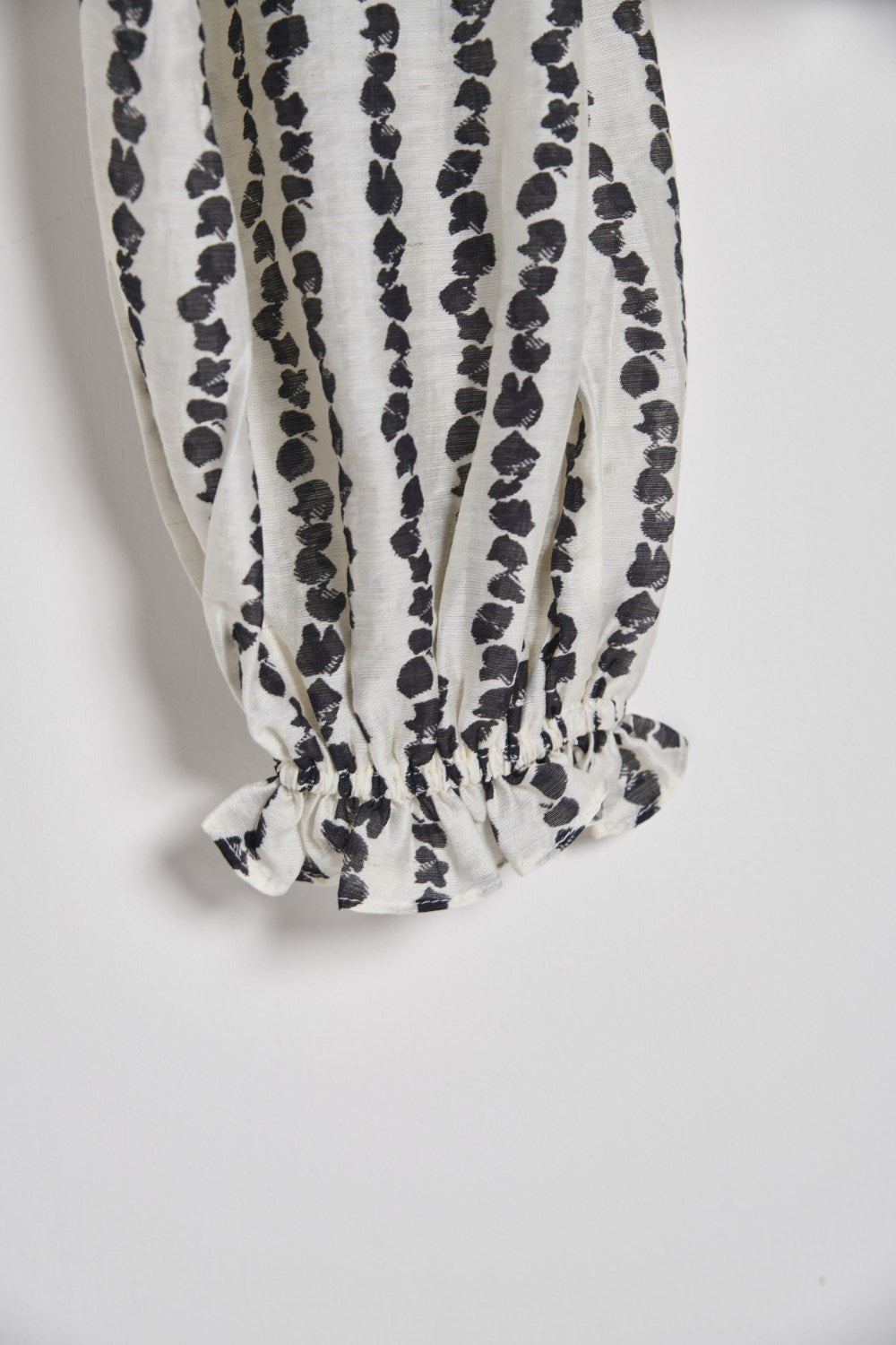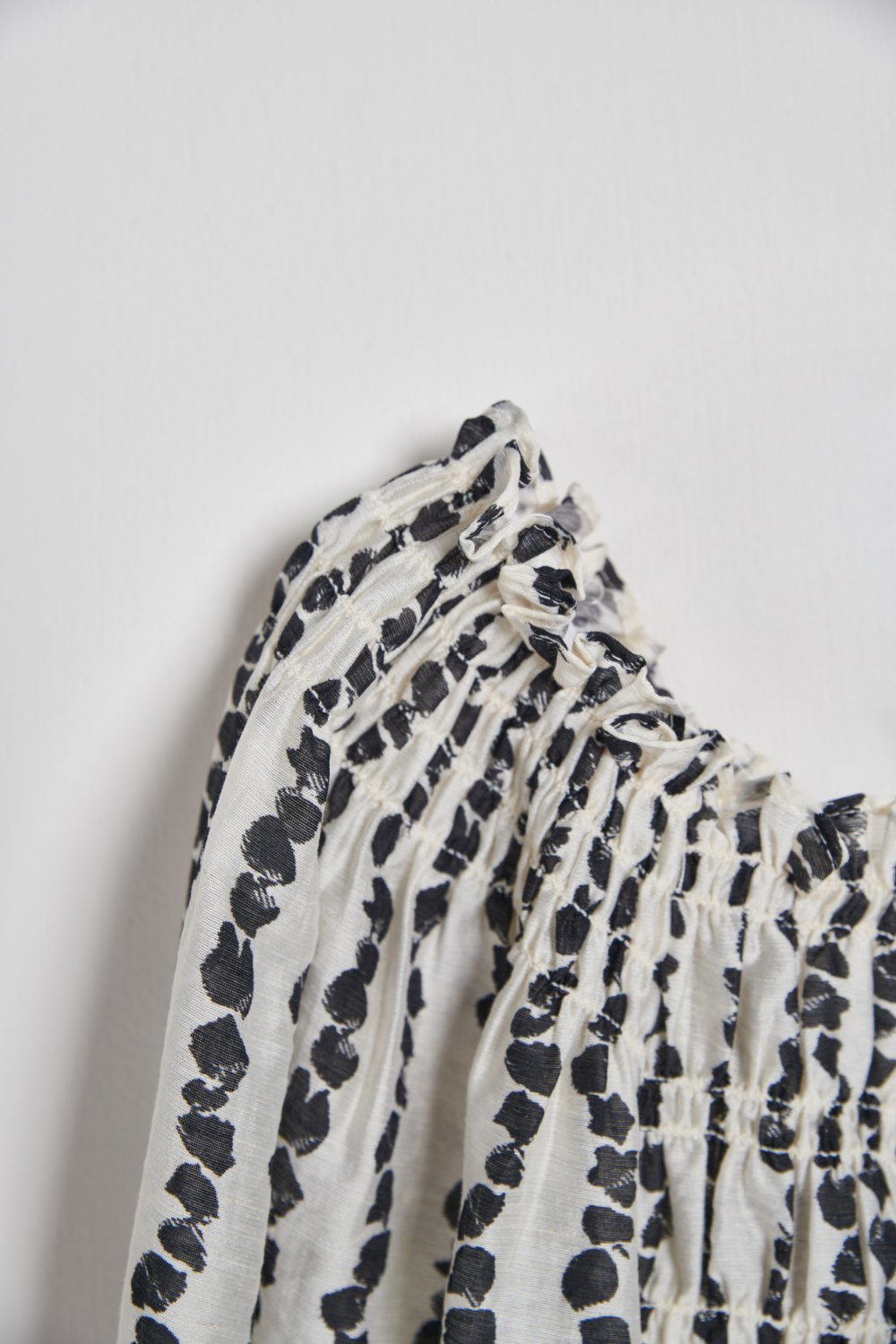 V領車褶線荷葉造型排釦上衣(附綁帶)-米