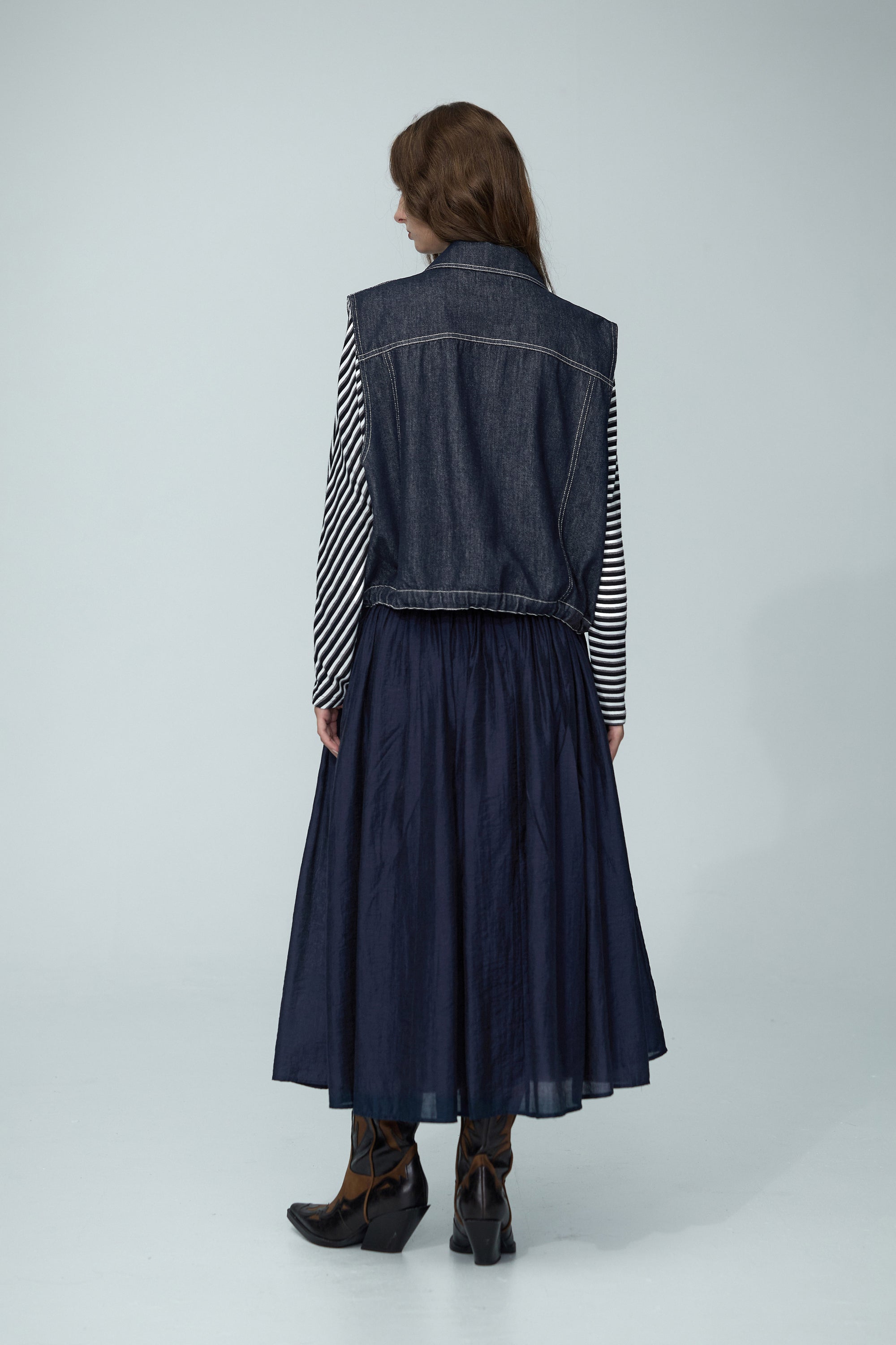 選用輕磅丹寧布料,減輕傳統牛仔的厚重感,保留挺度與造型力,同時更透氣不悶熱。不貼膚、不厚重,一整天也能自在穿著。是夏天也能安心穿的丹寧提案。