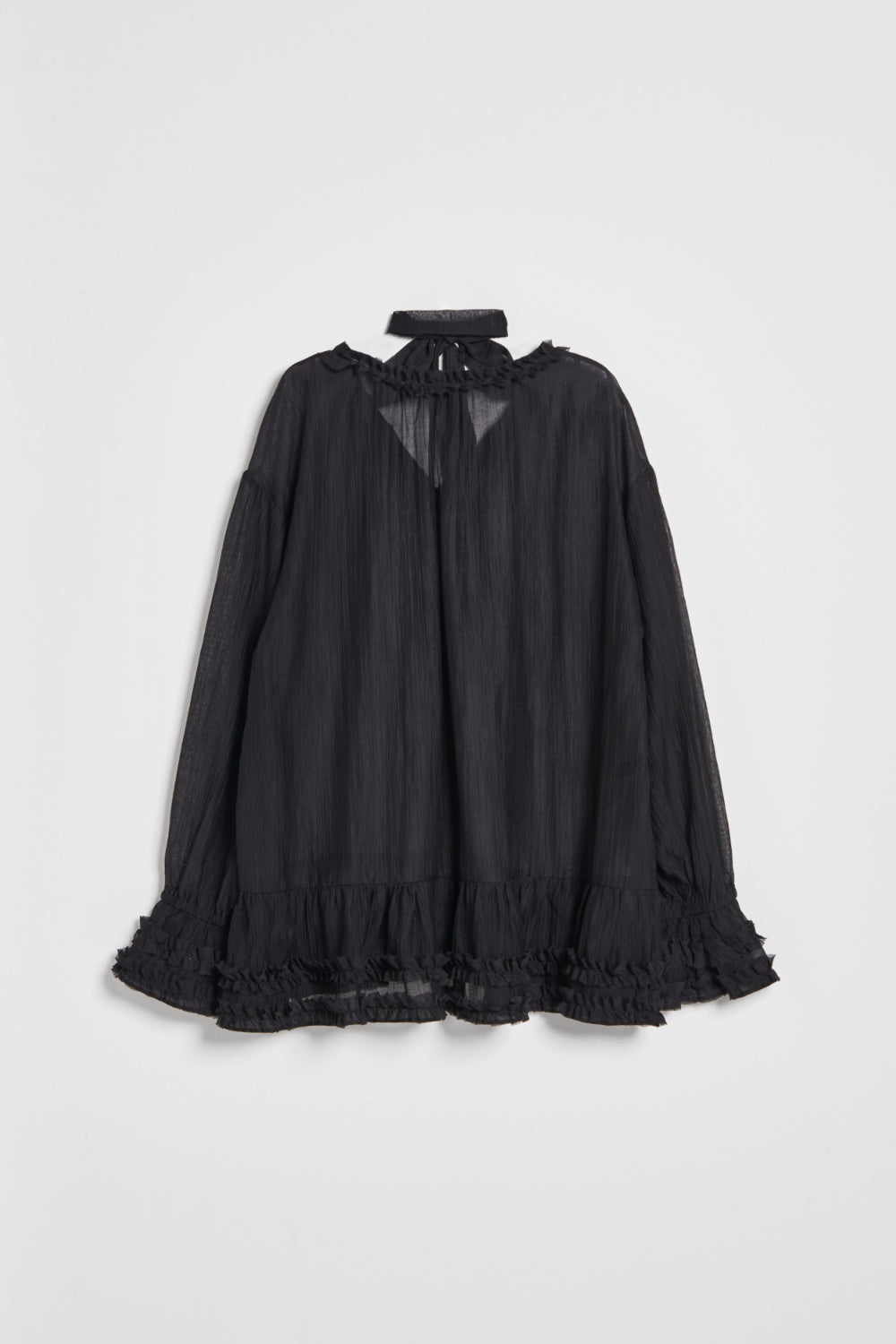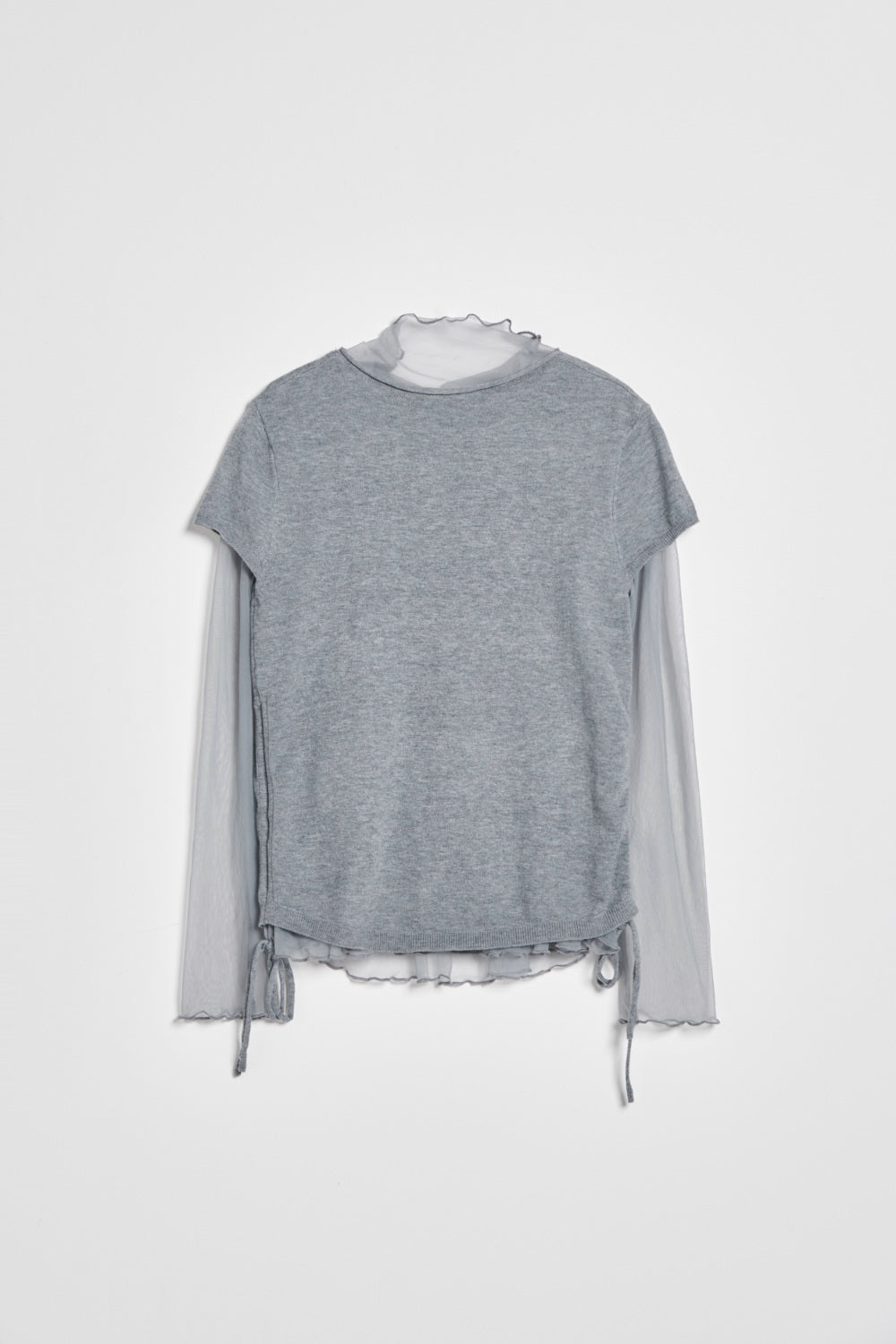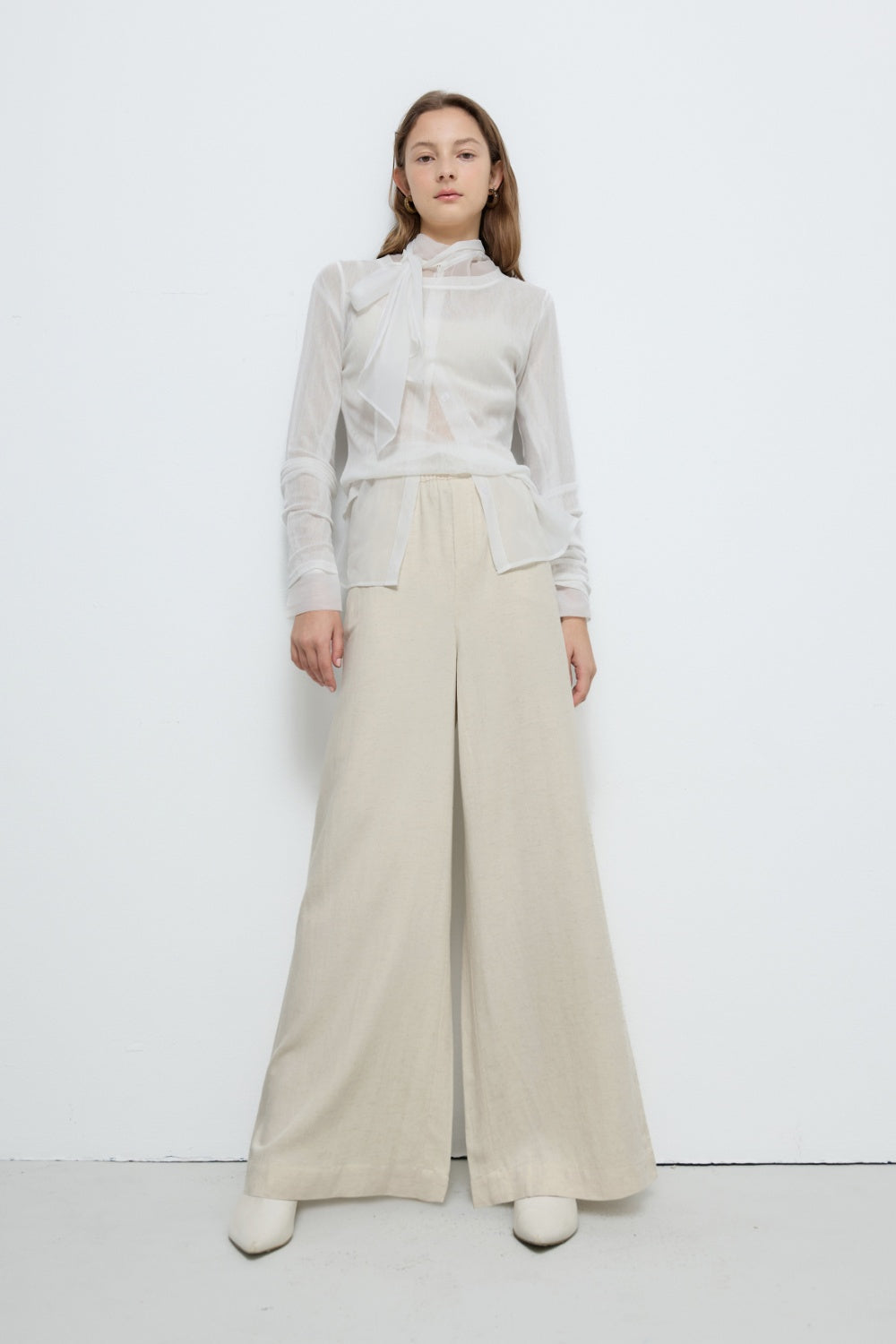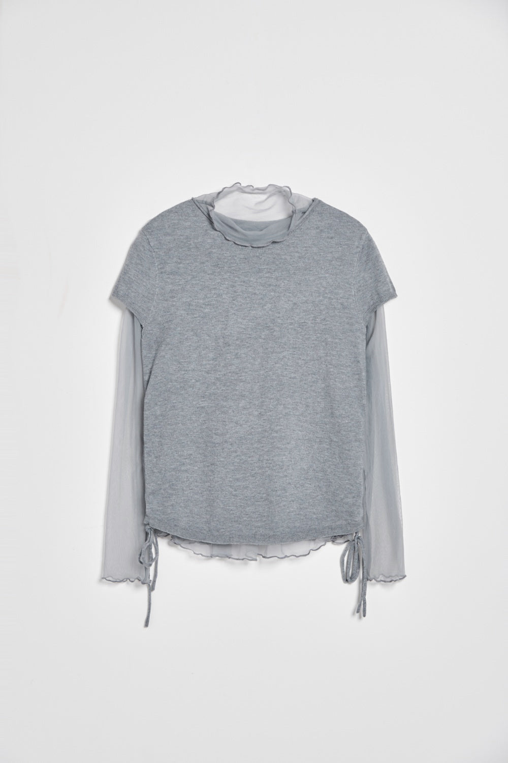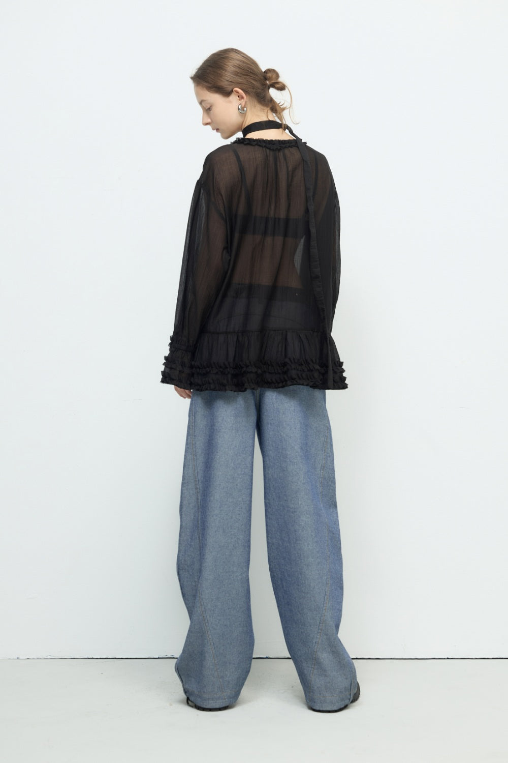 V領車褶線荷葉造型排釦上衣(附綁帶)-米