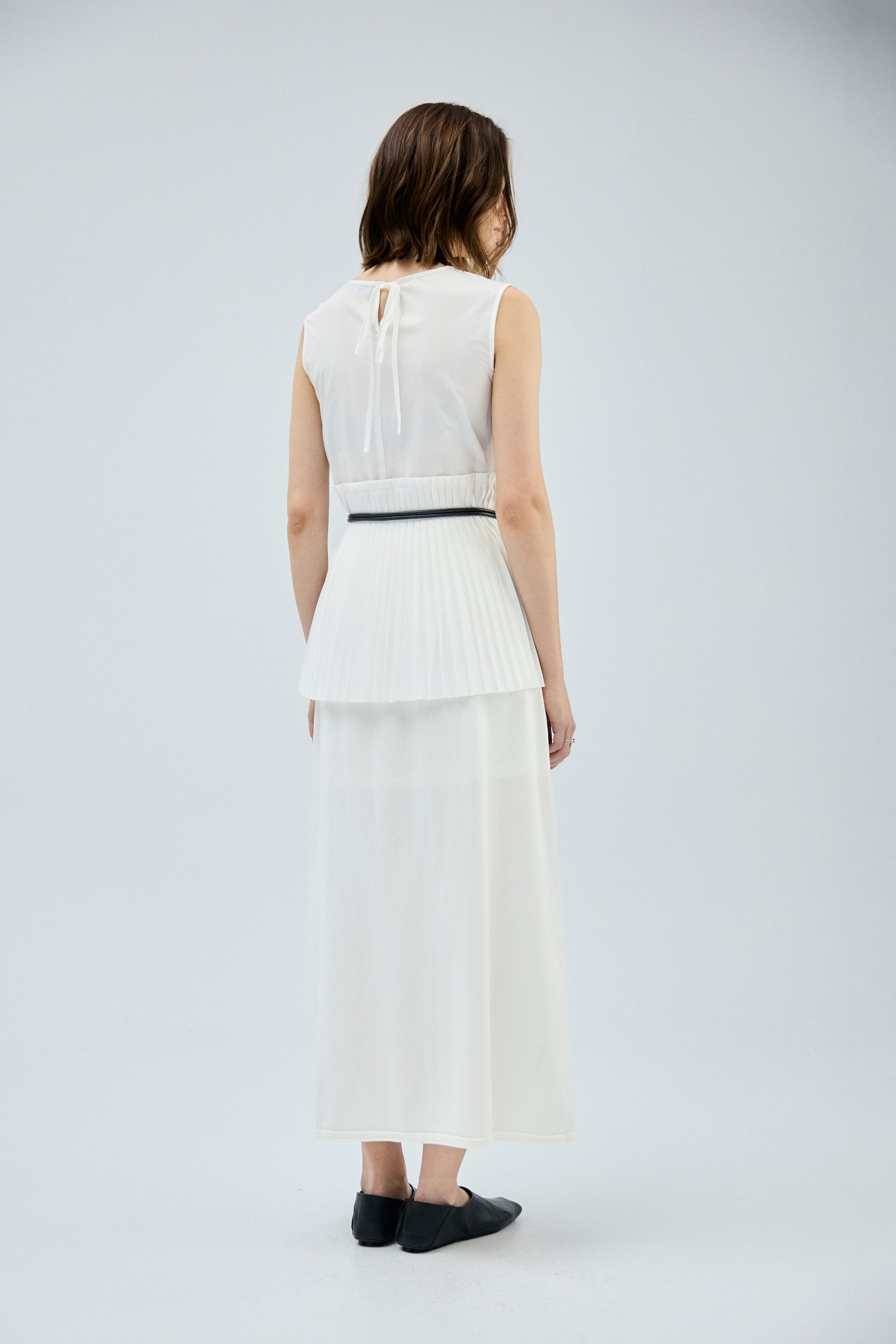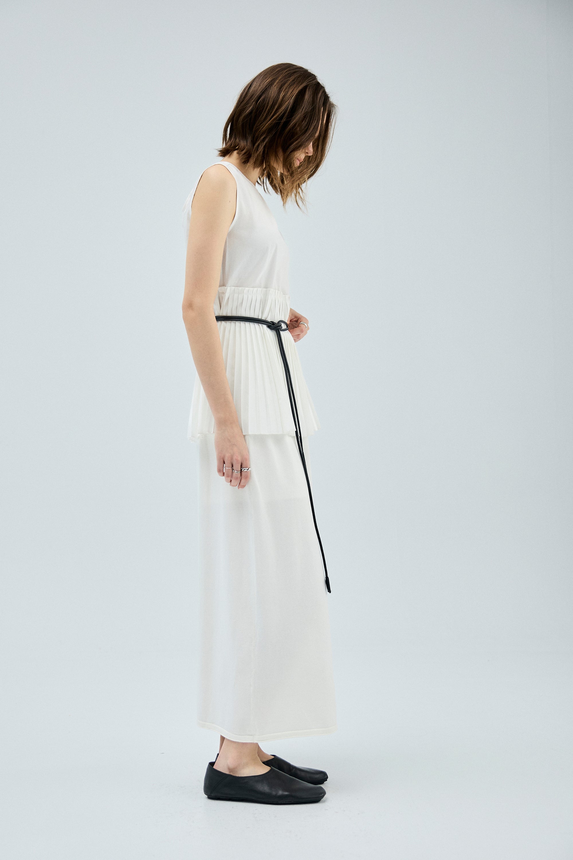 舒適針織坑條裙罩鬆緊長褲兩件組-灰