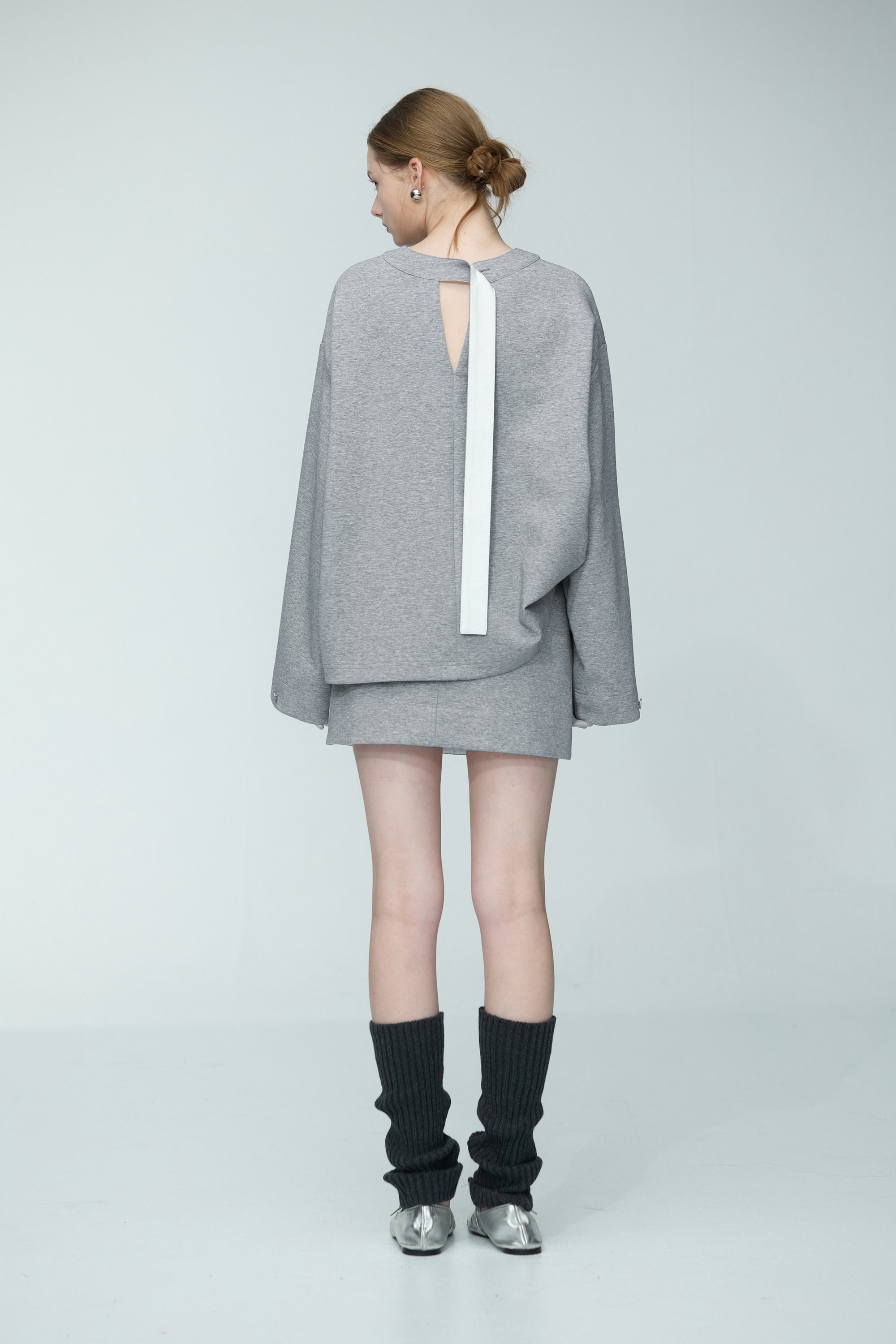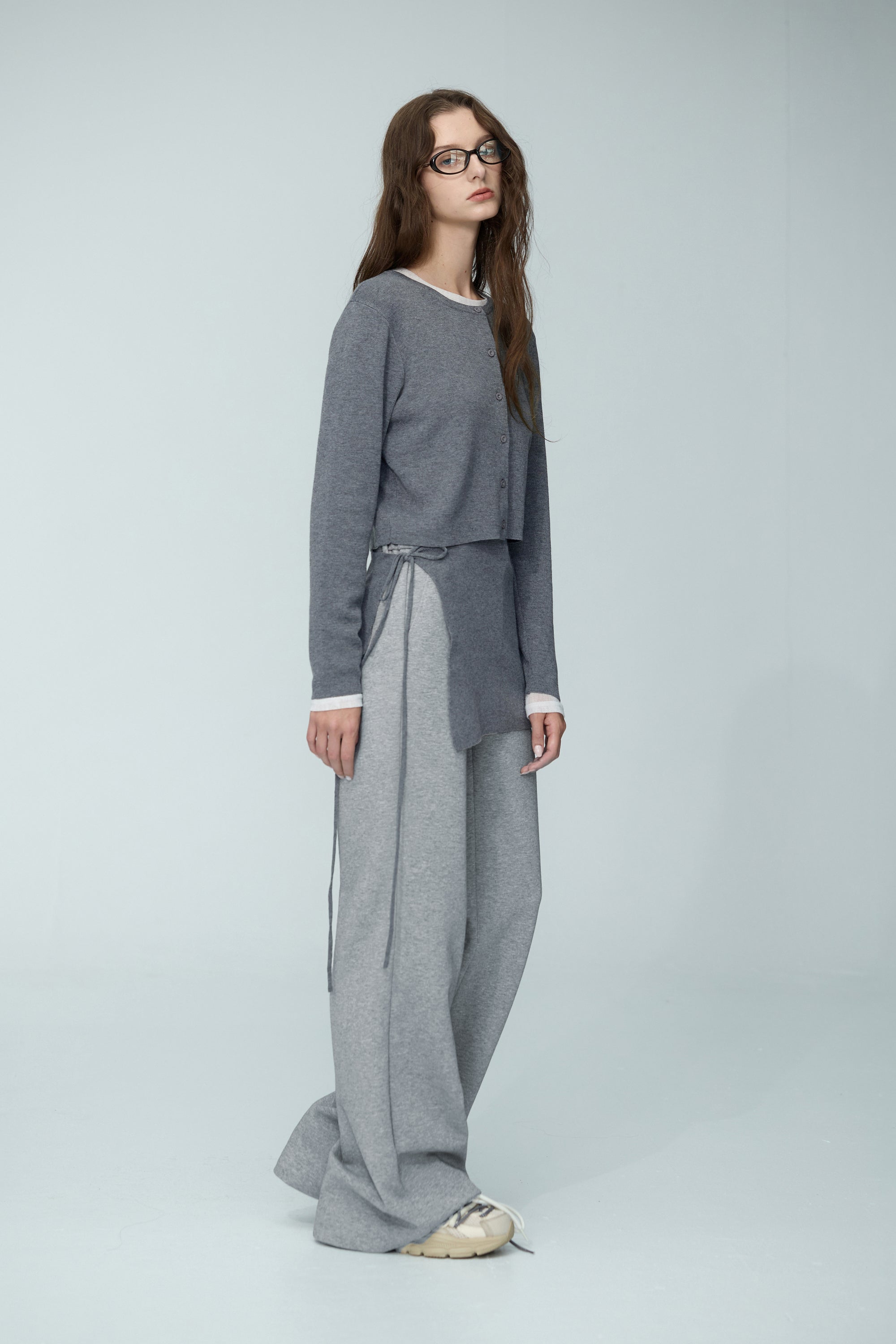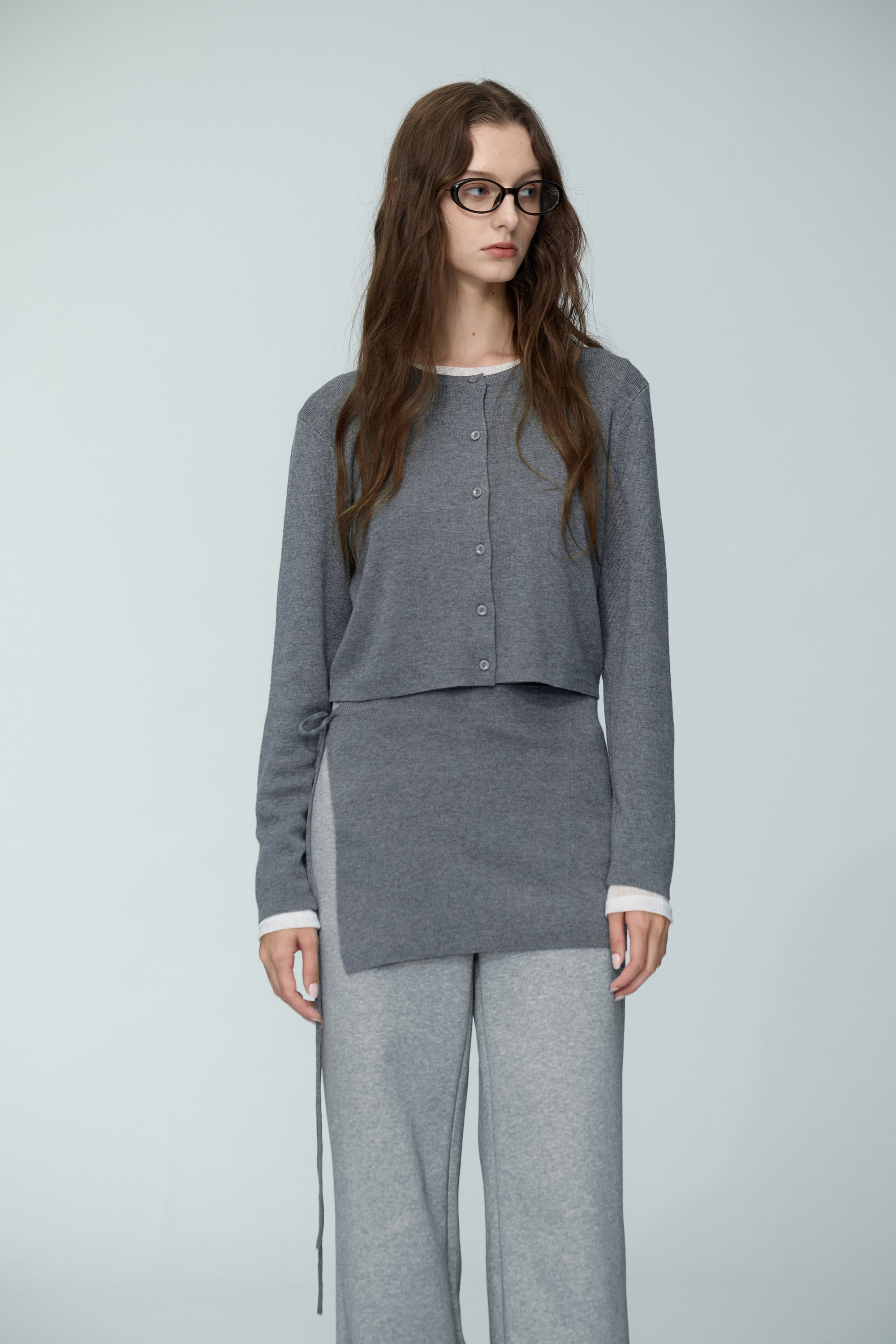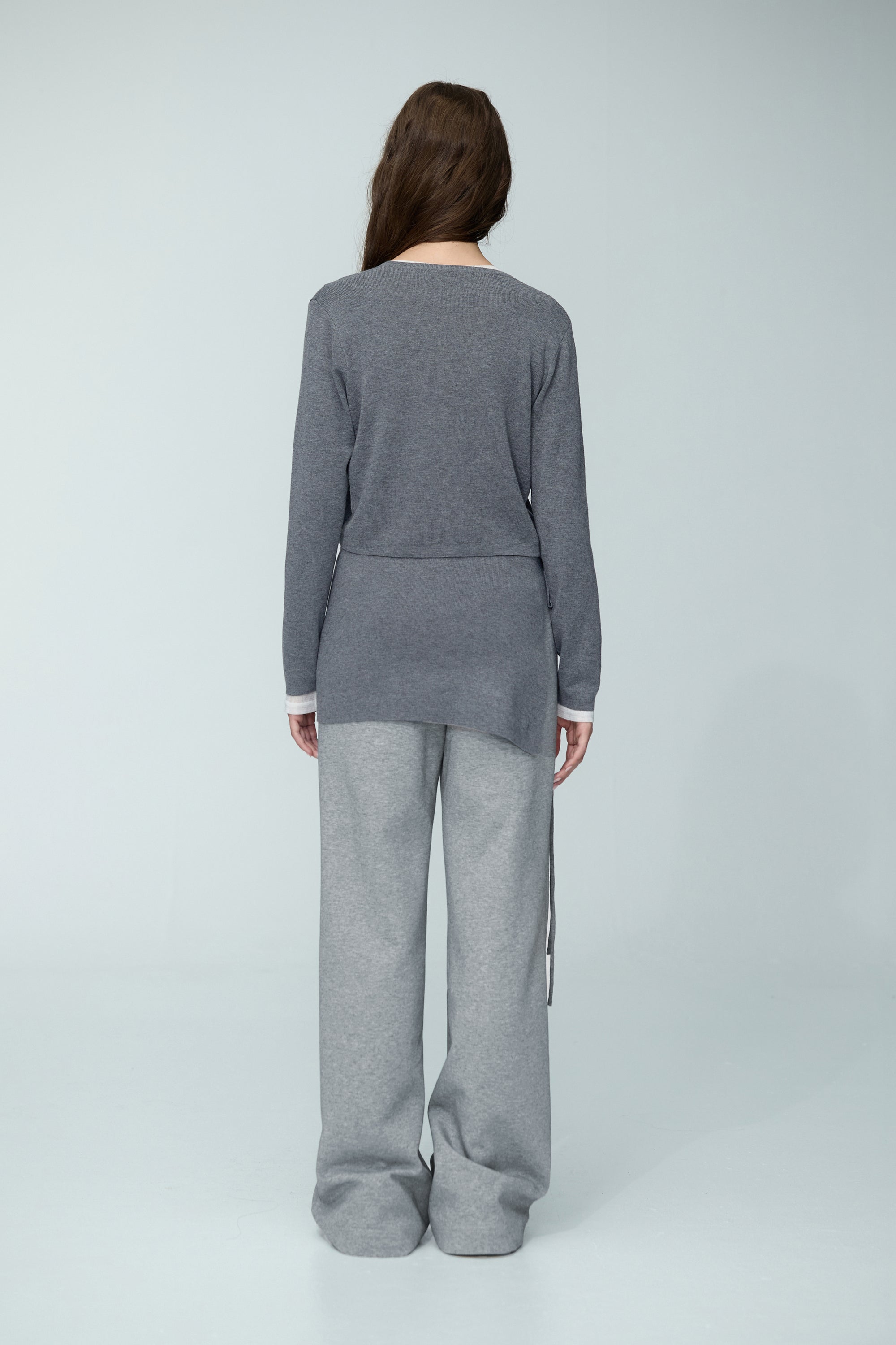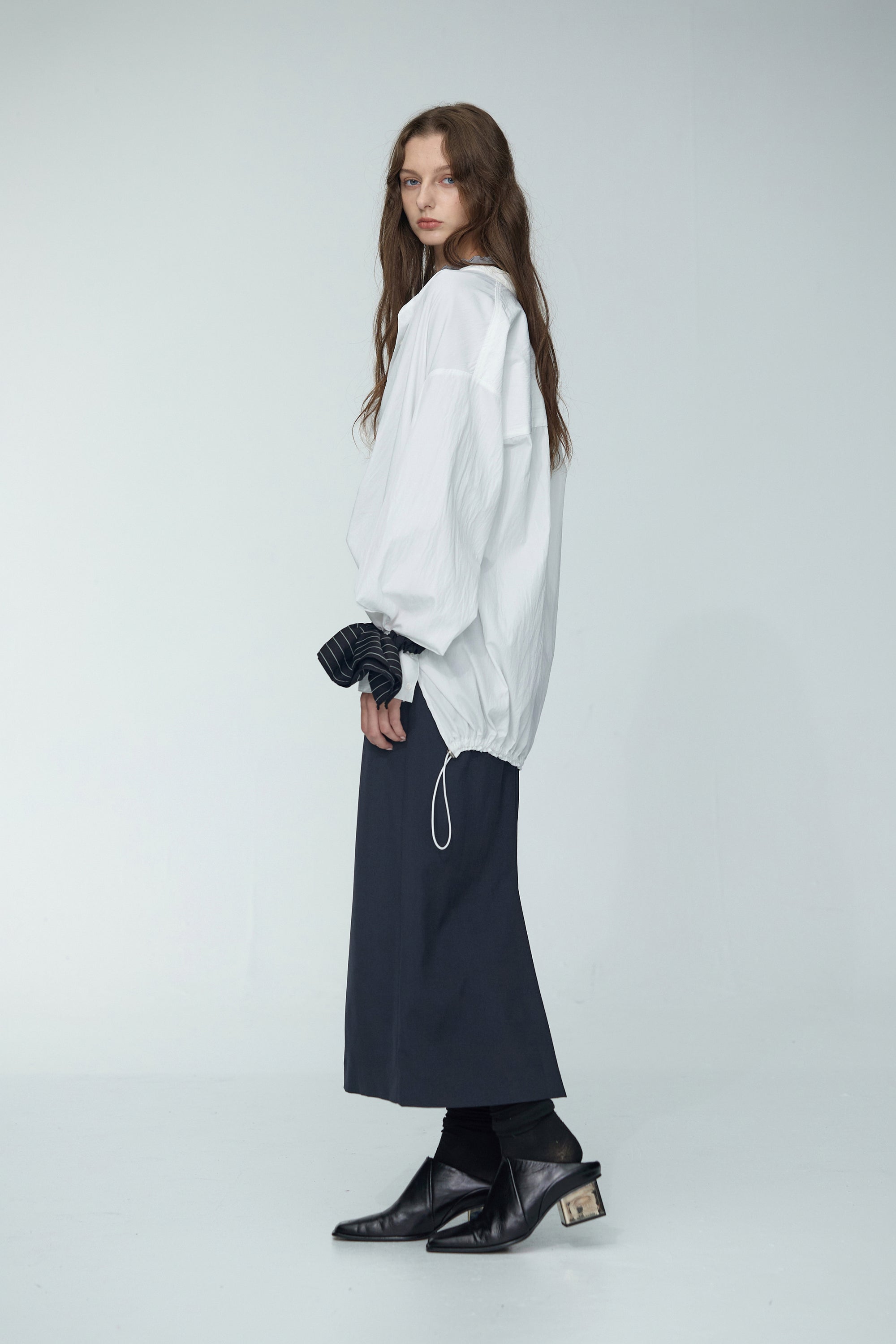 圓領條紋彈性褶皺收腰上衣(附項鍊)-黑