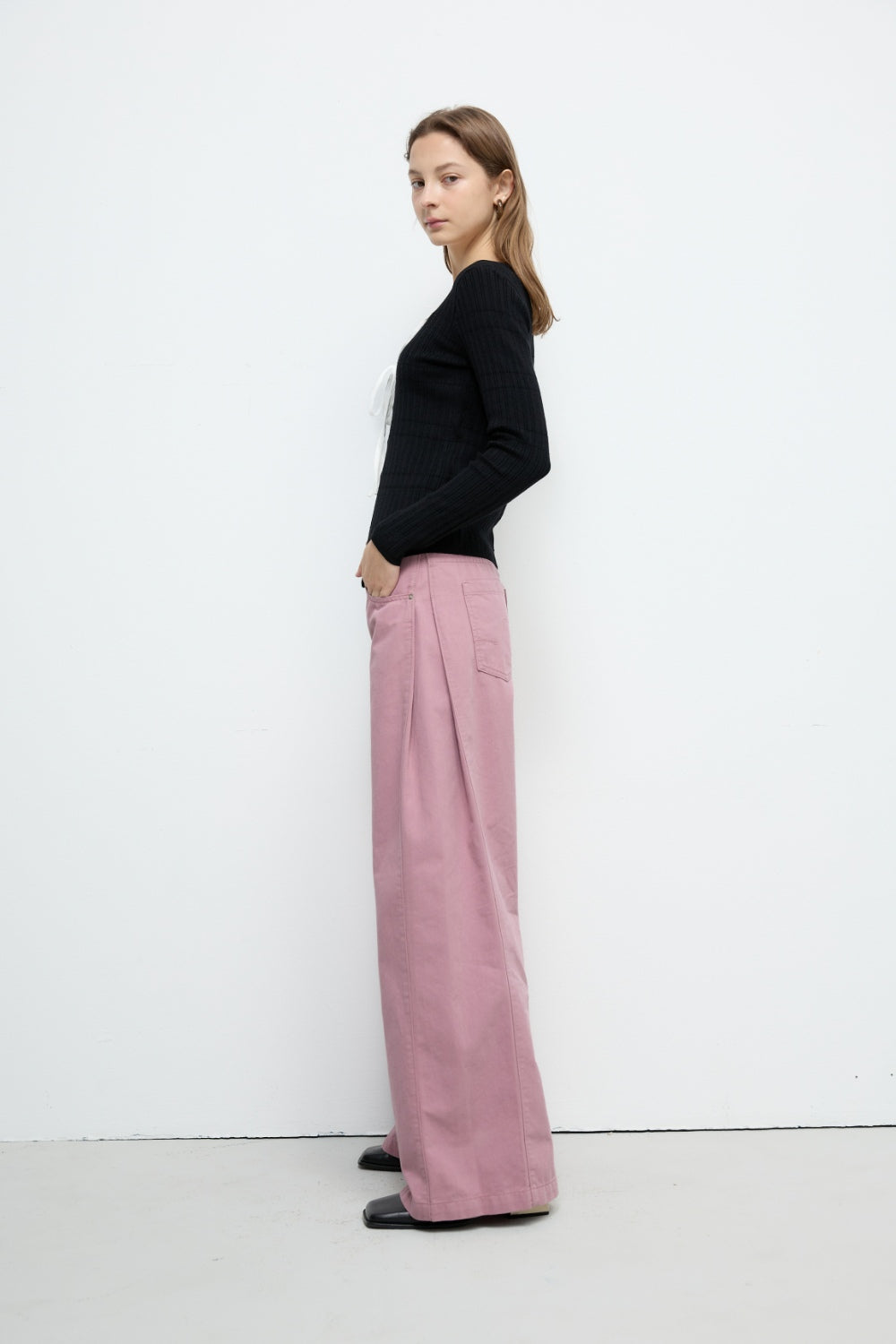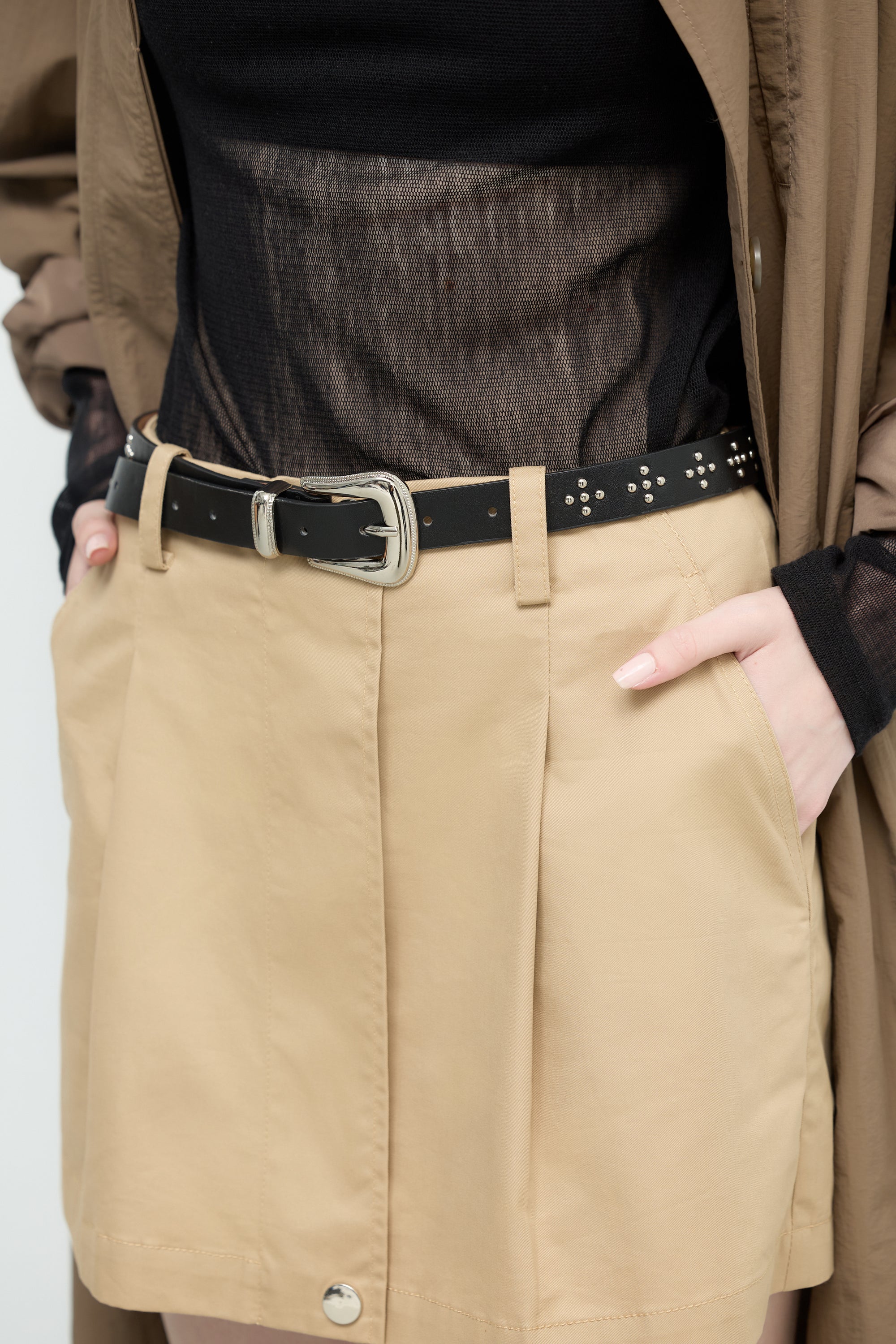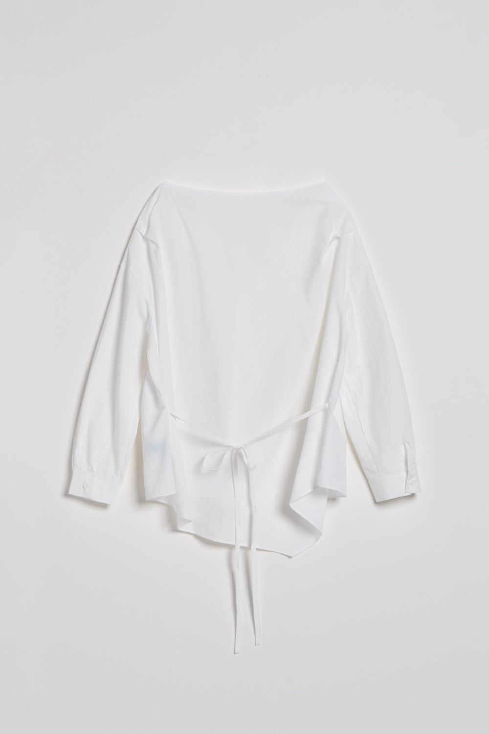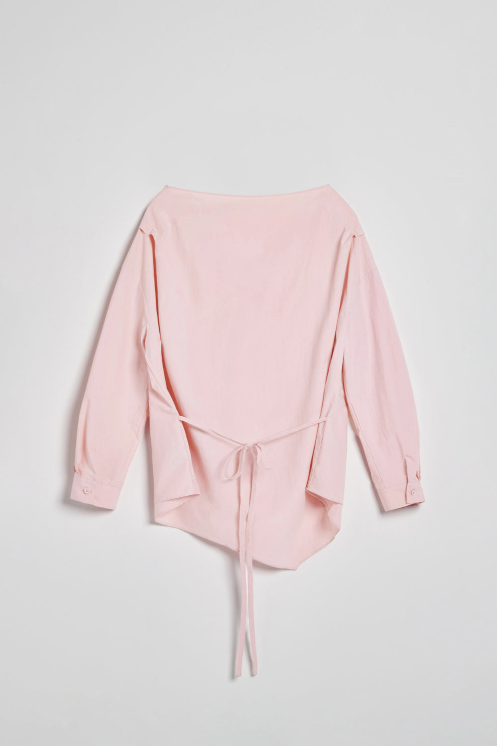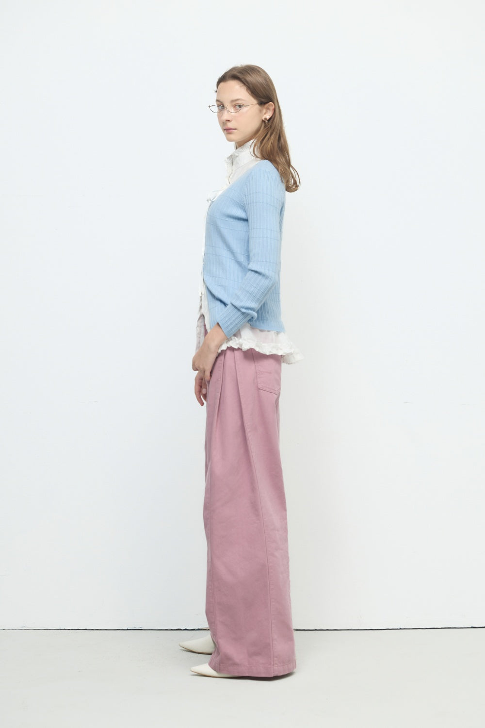 V領車褶線荷葉造型排釦上衣(附綁帶)-米