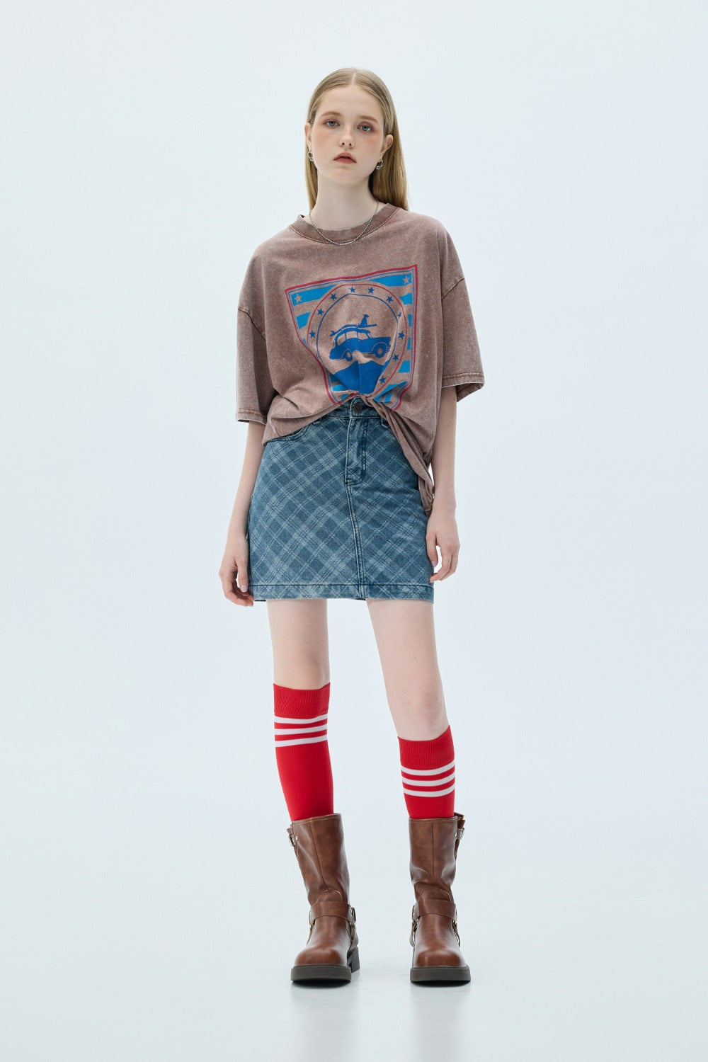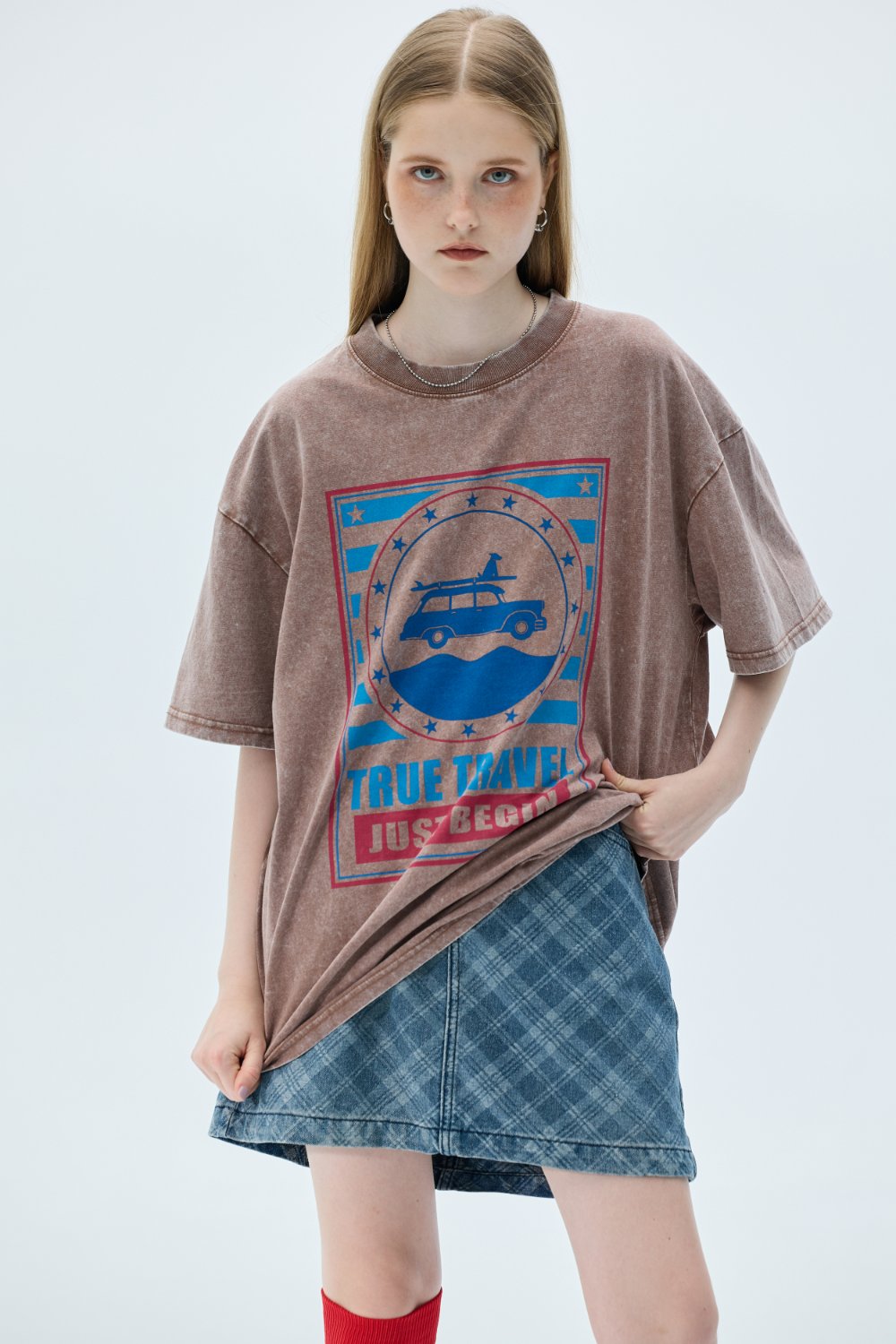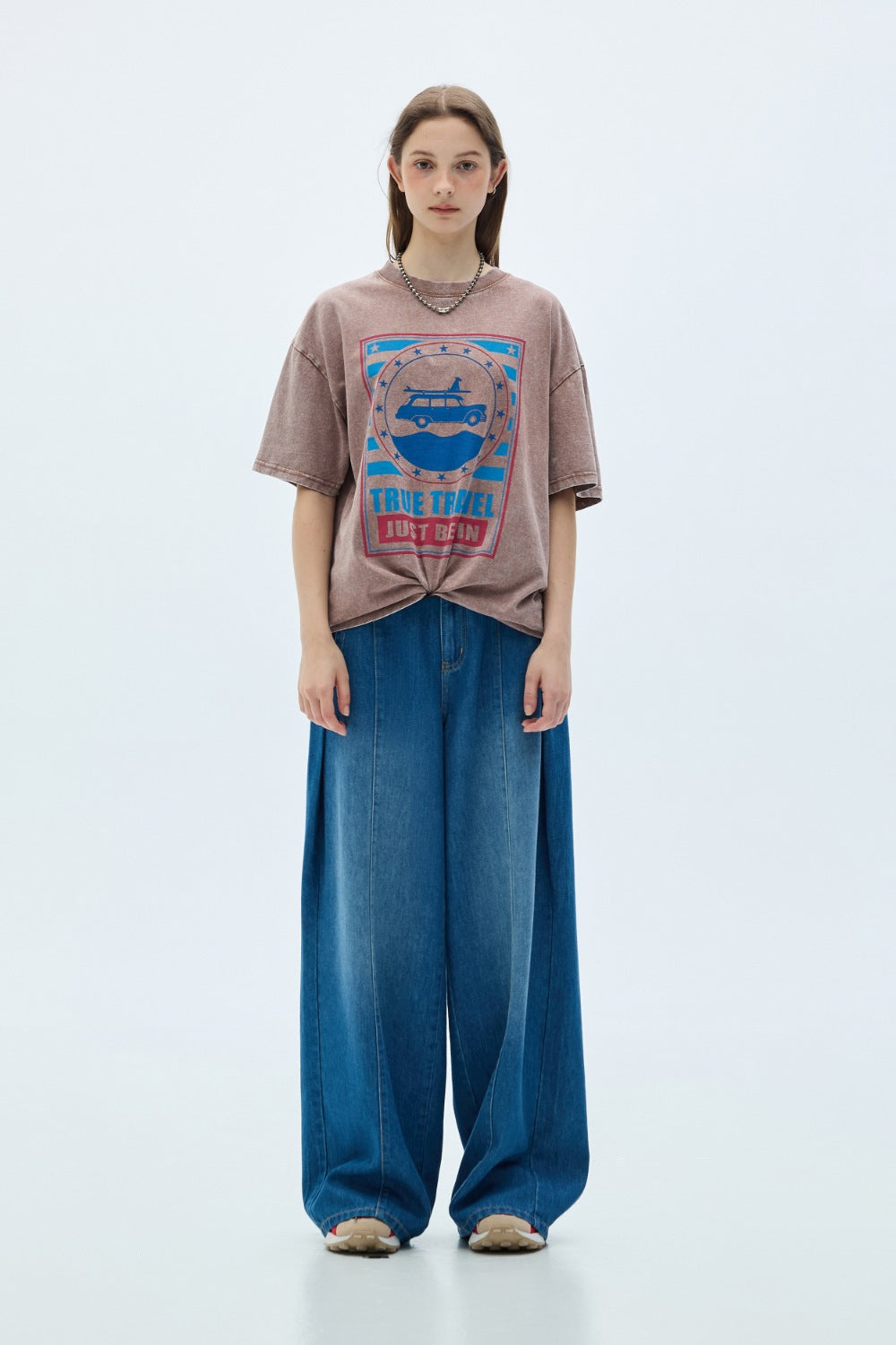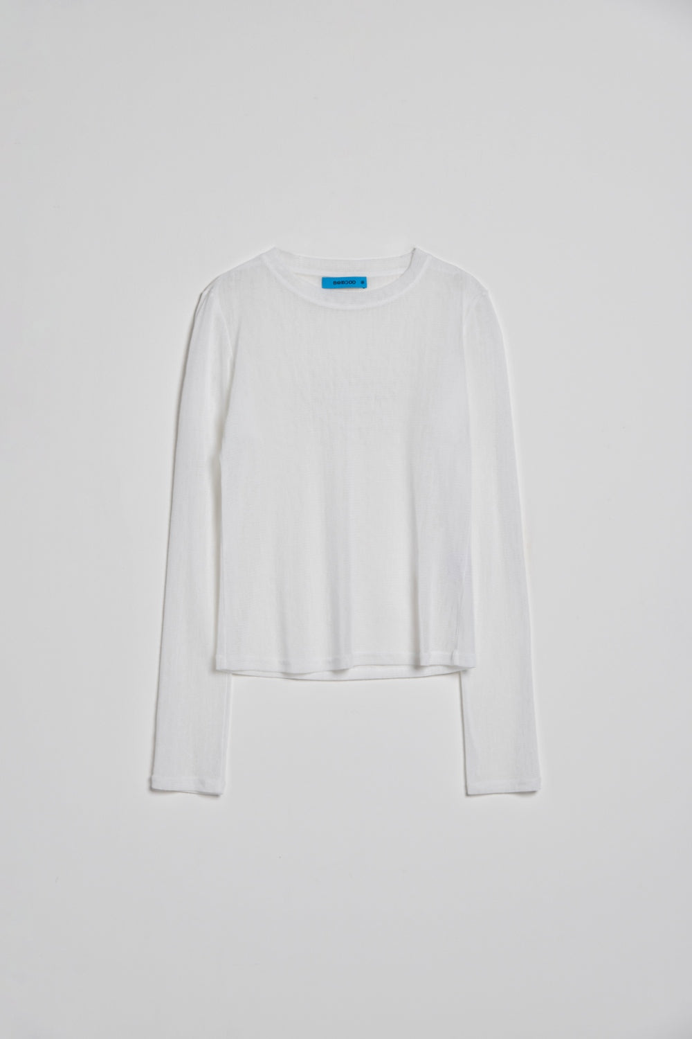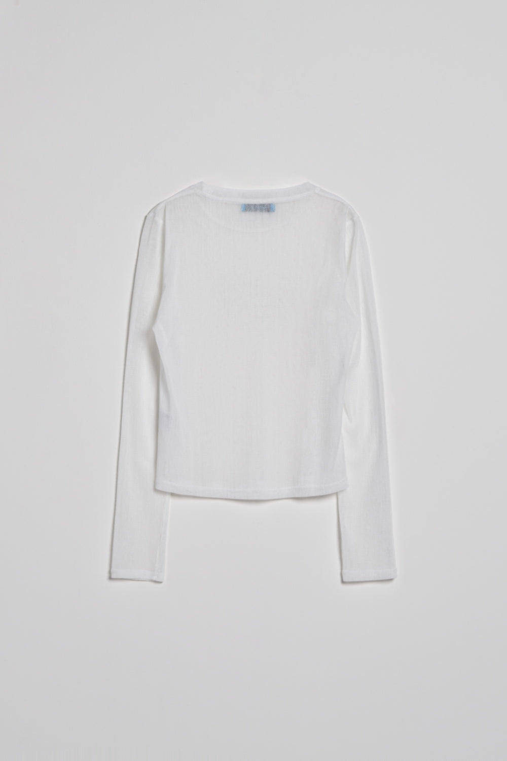 透肌感圓領長袖上衣-白