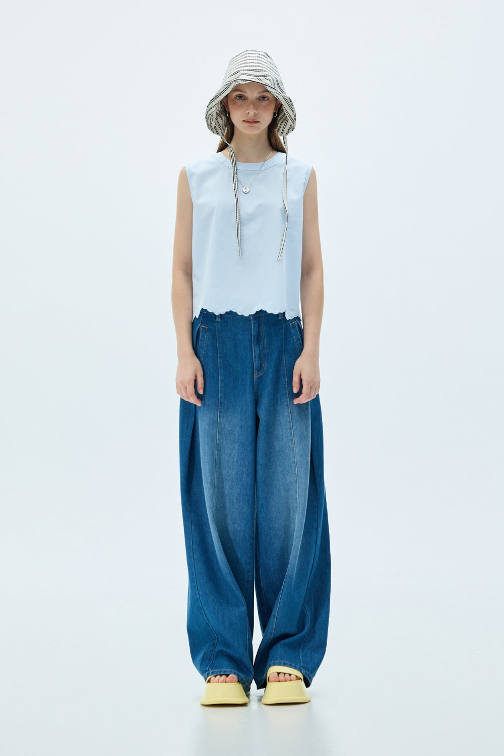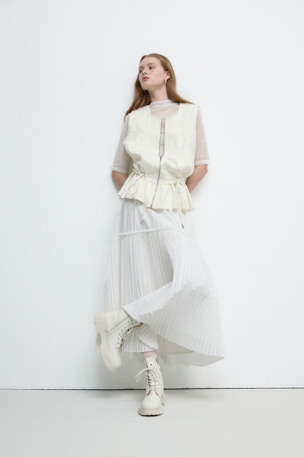 斜紋收腰抽繩背心外套-白