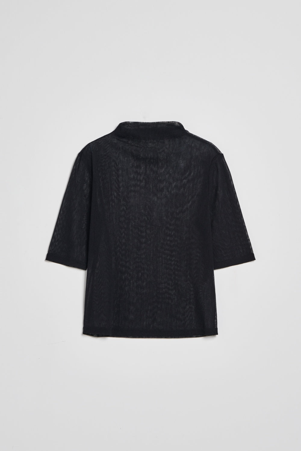 透肌小高領五分袖上衣-黑