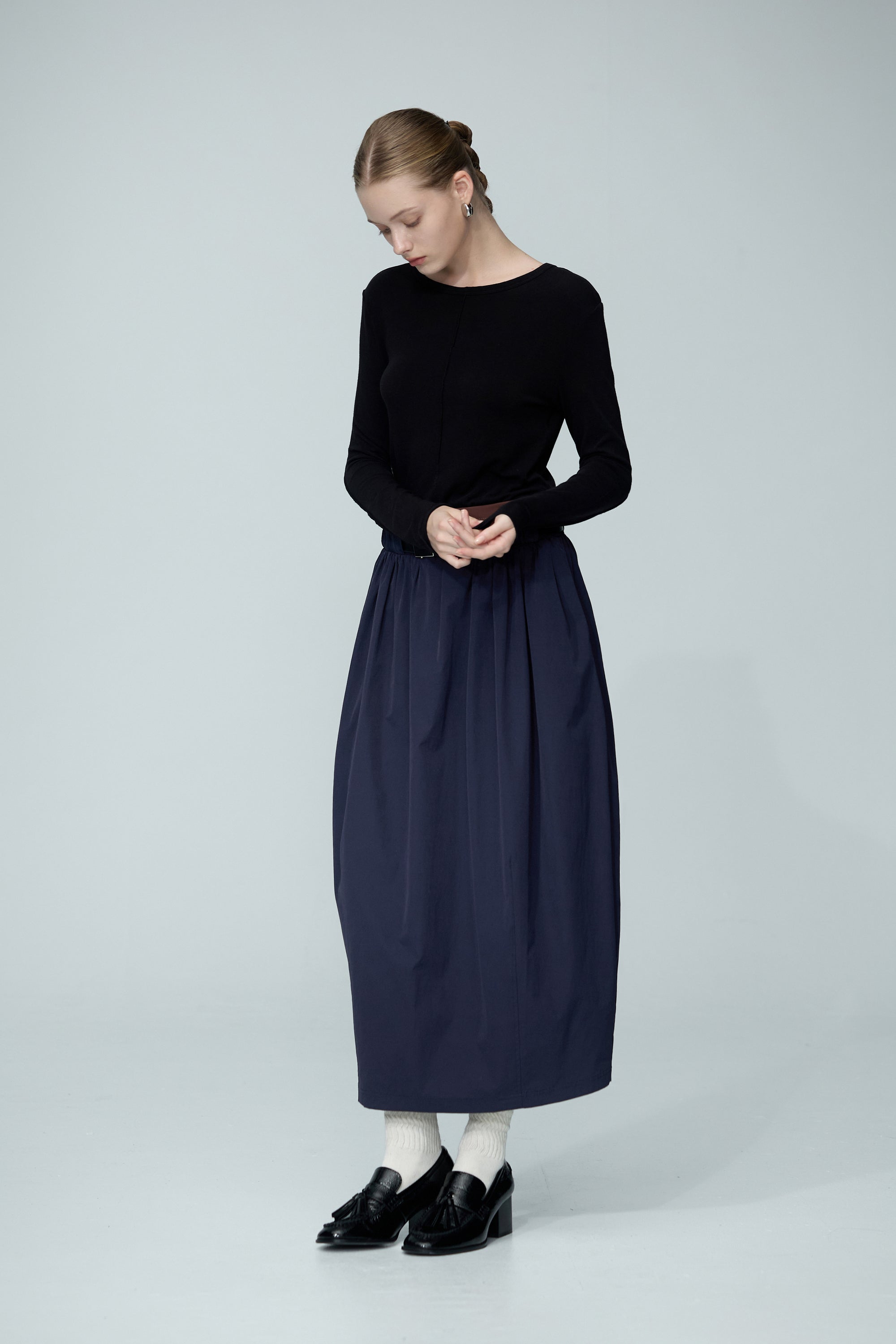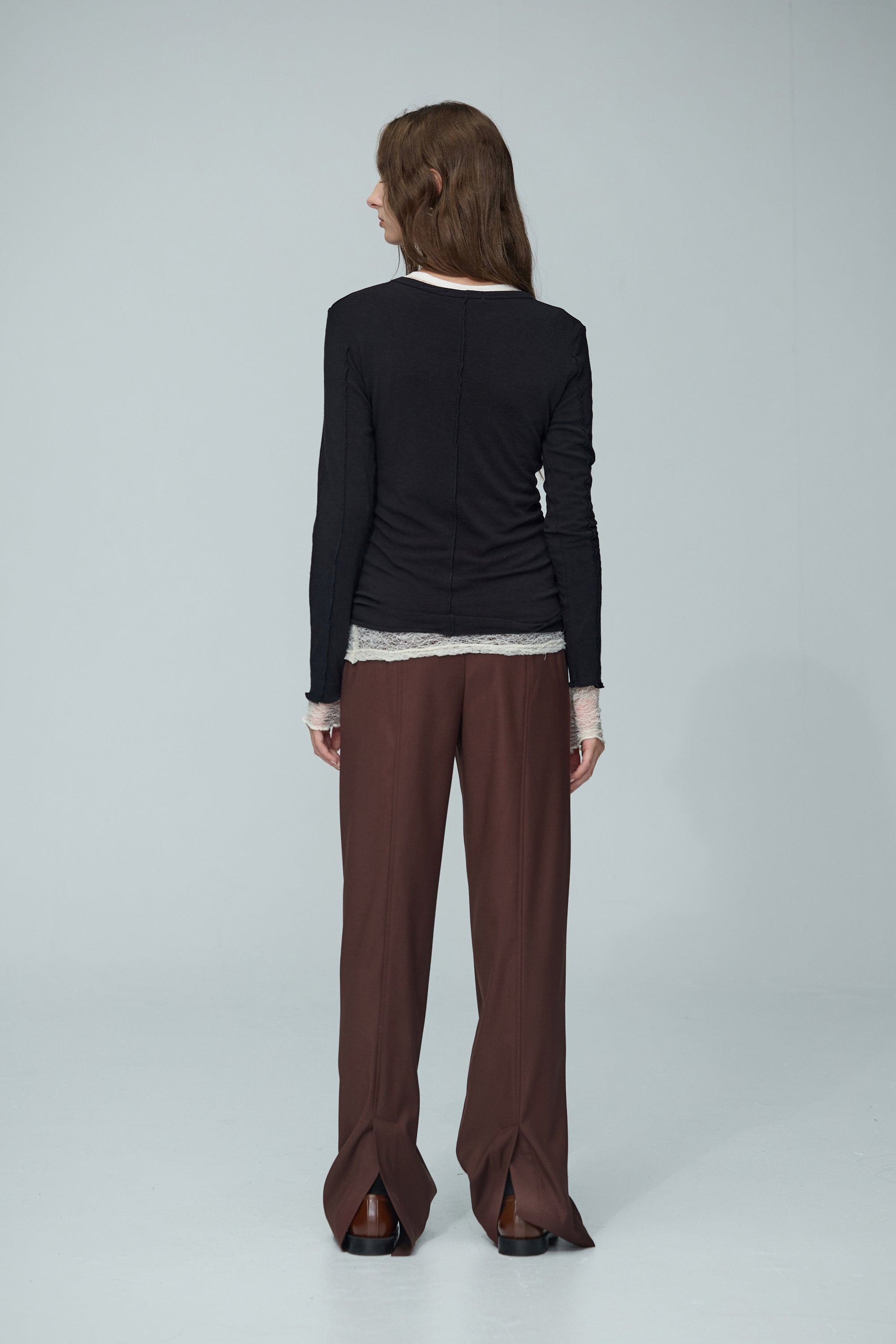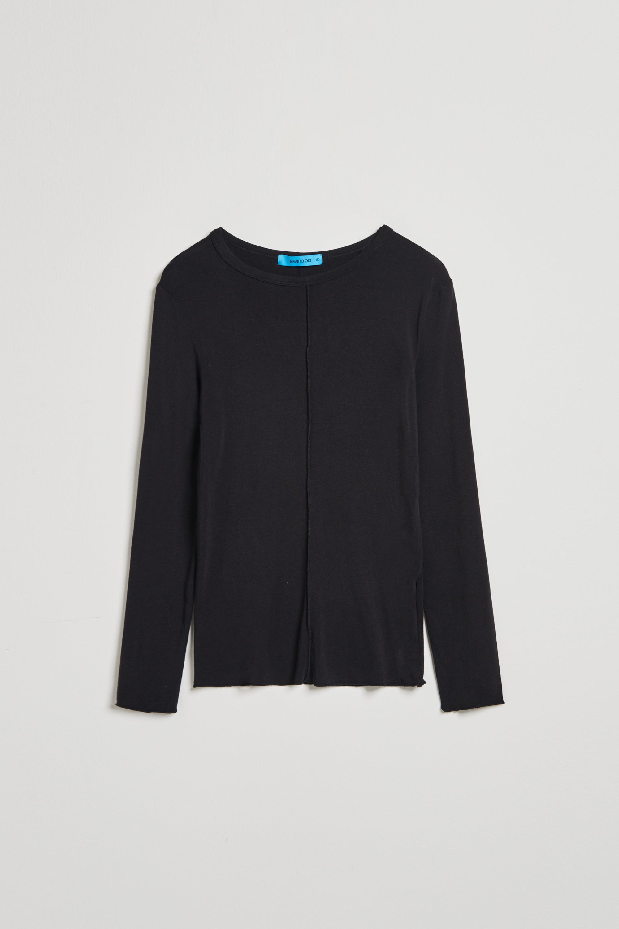 裝飾縫線圓領彈性好搭TEE上衣-黑