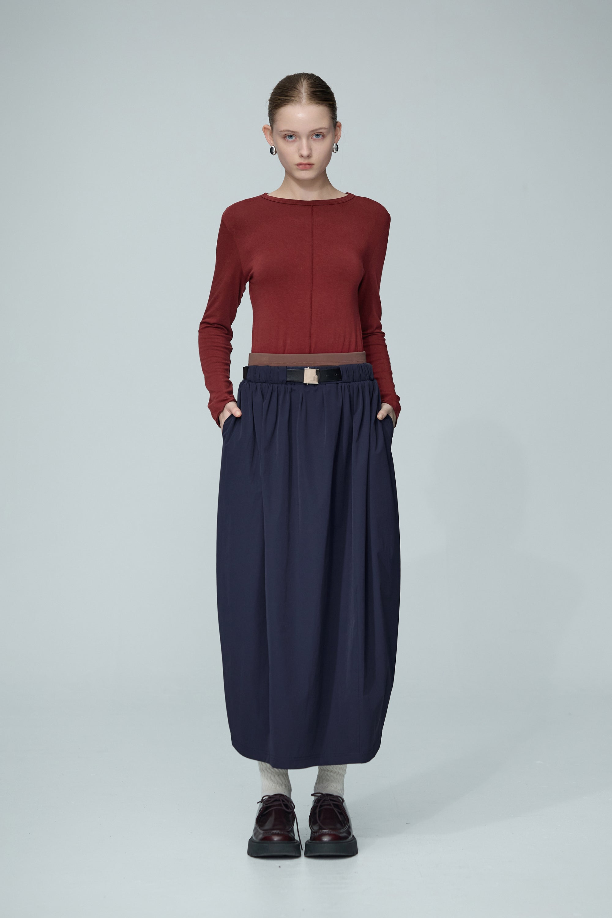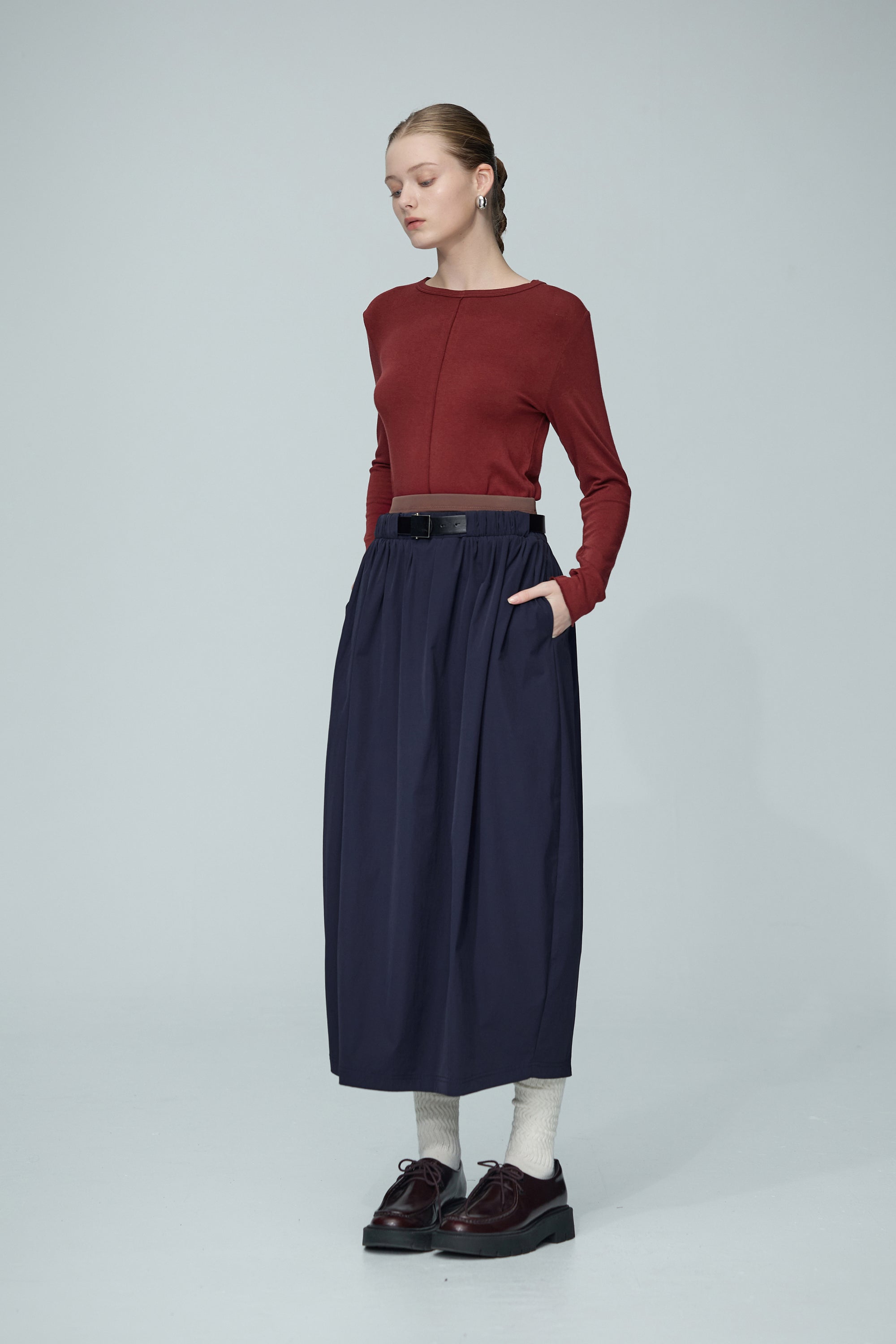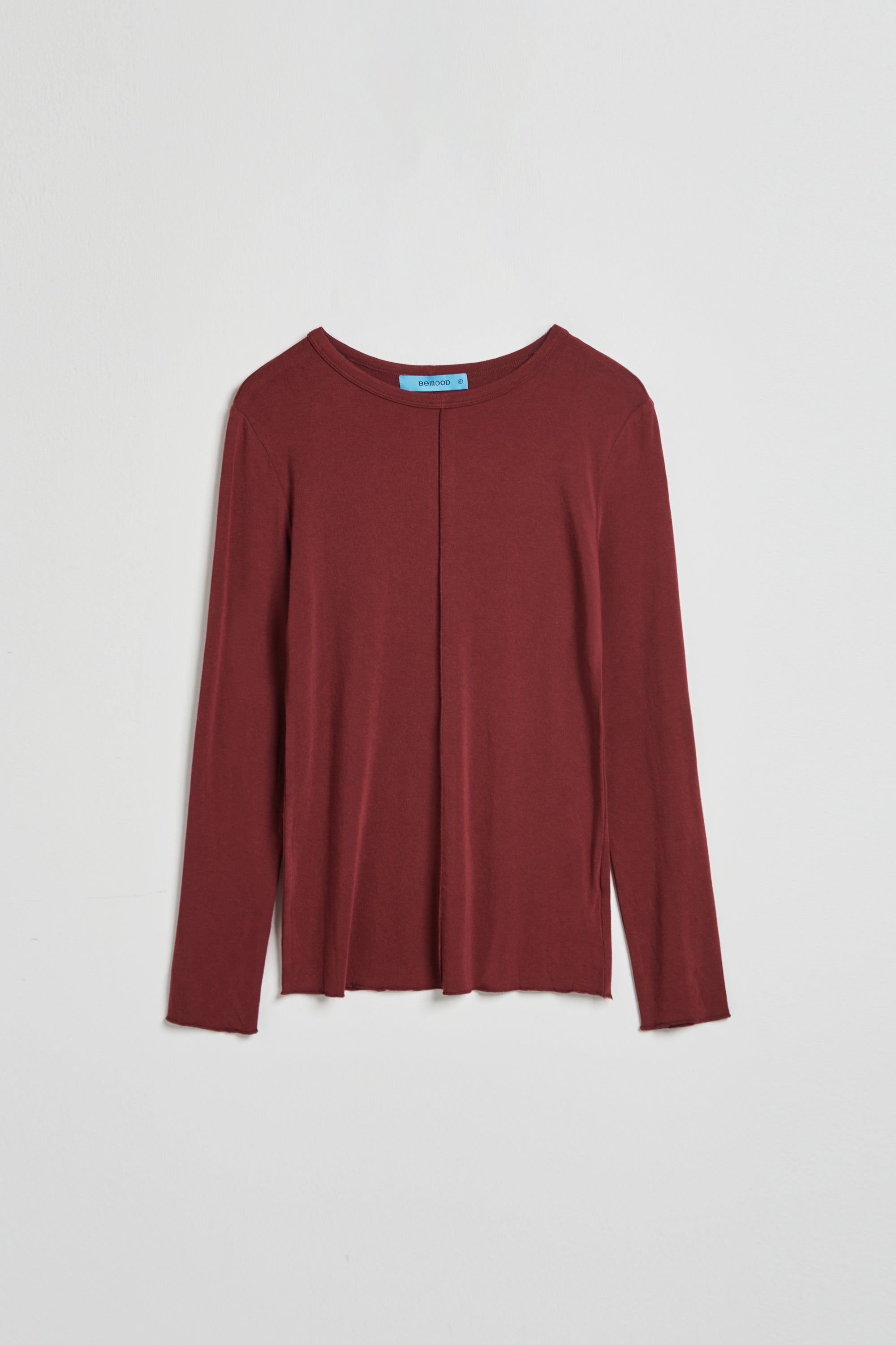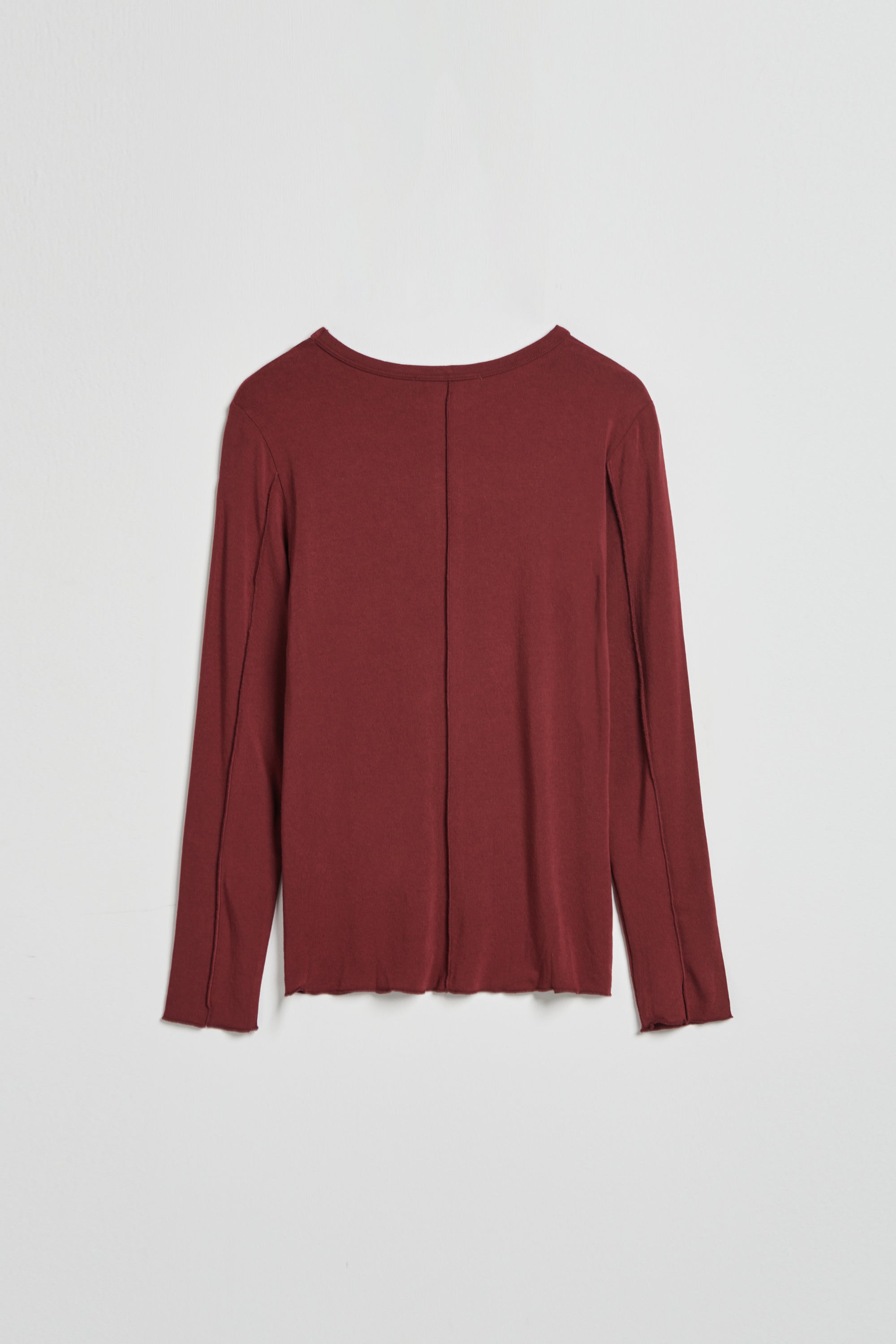 裝飾縫線圓領彈性好搭TEE上衣-紅色