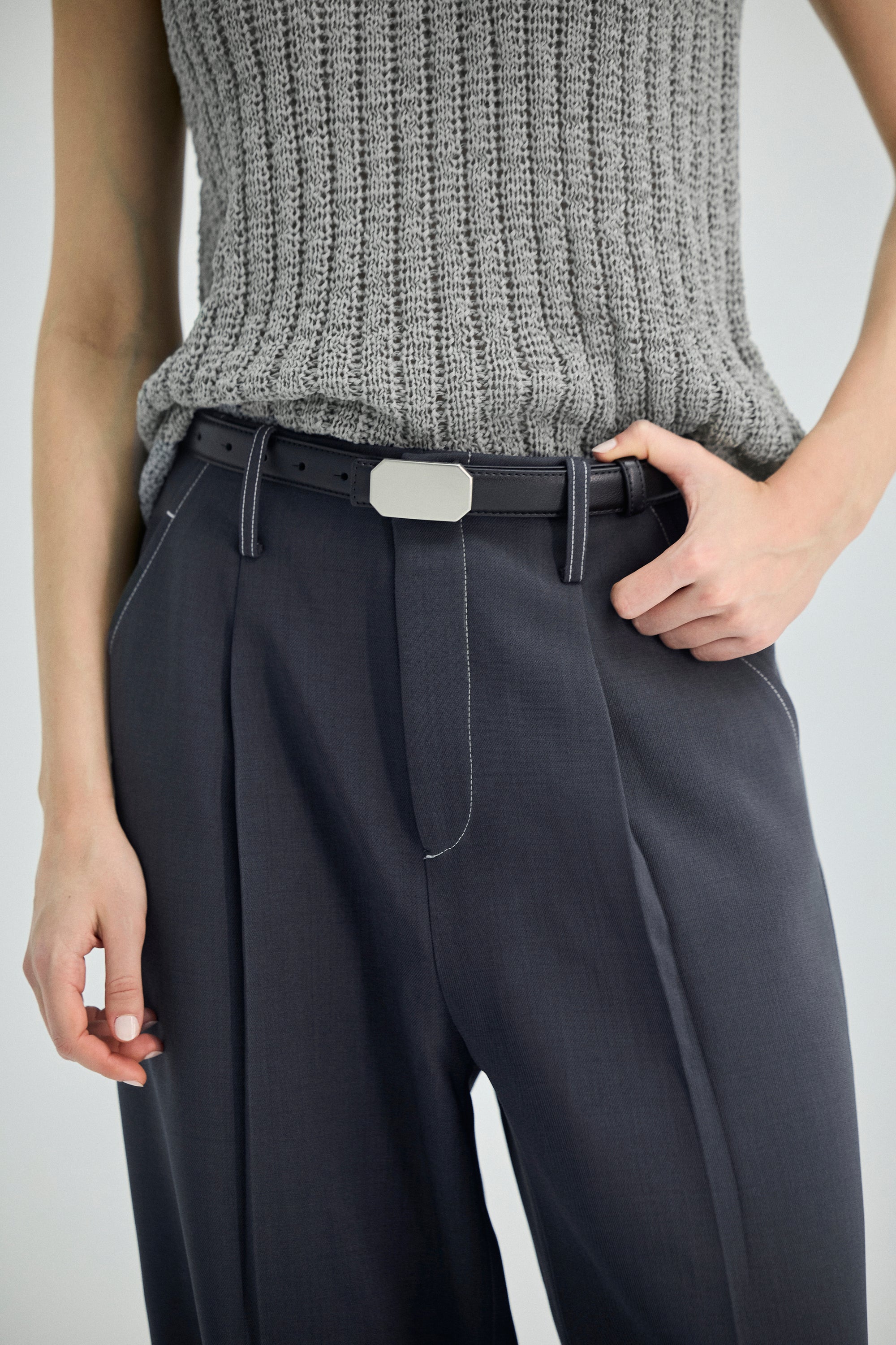 細肩帶柔感羊毛混紡修身針織背心-灰
