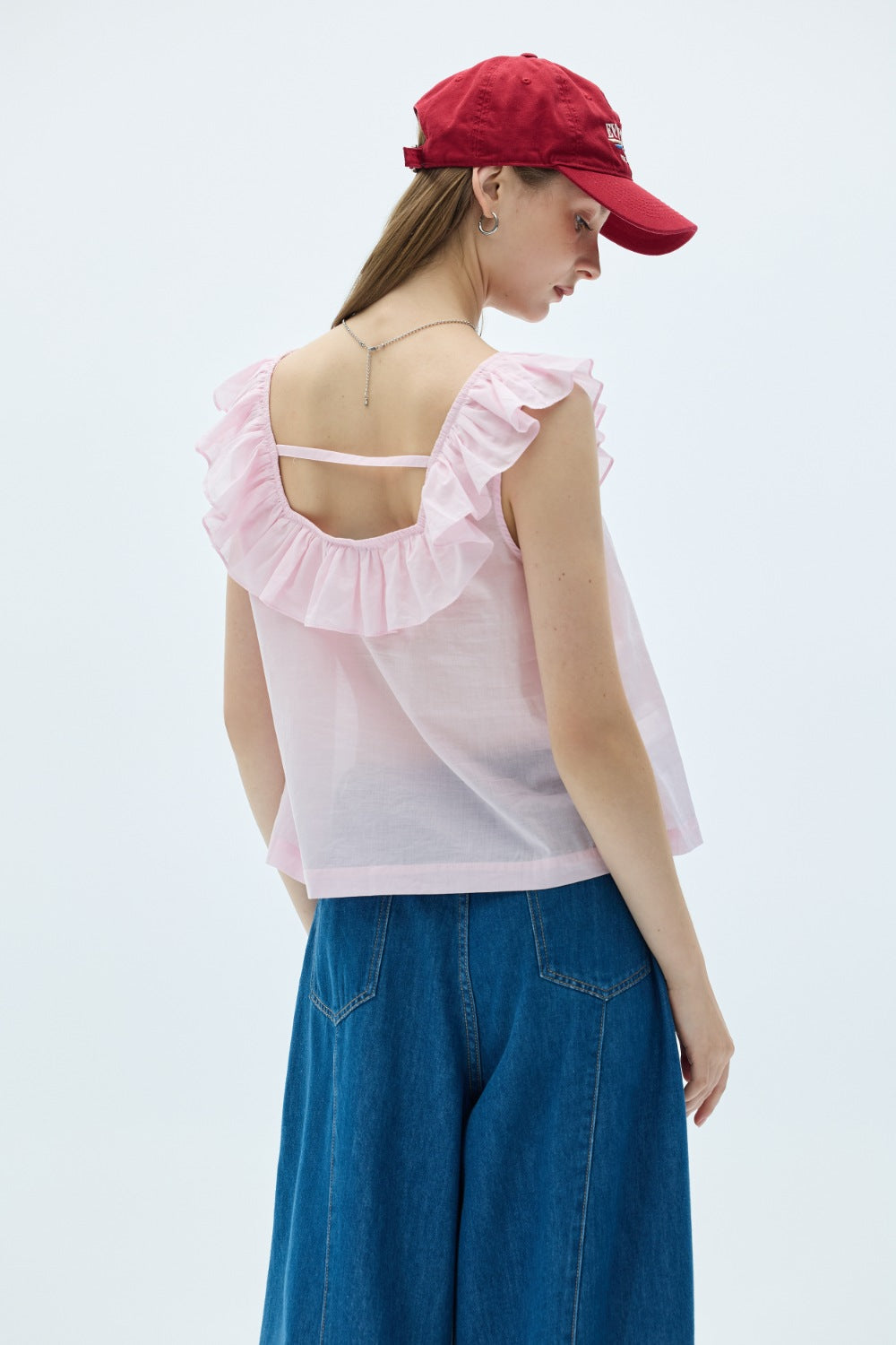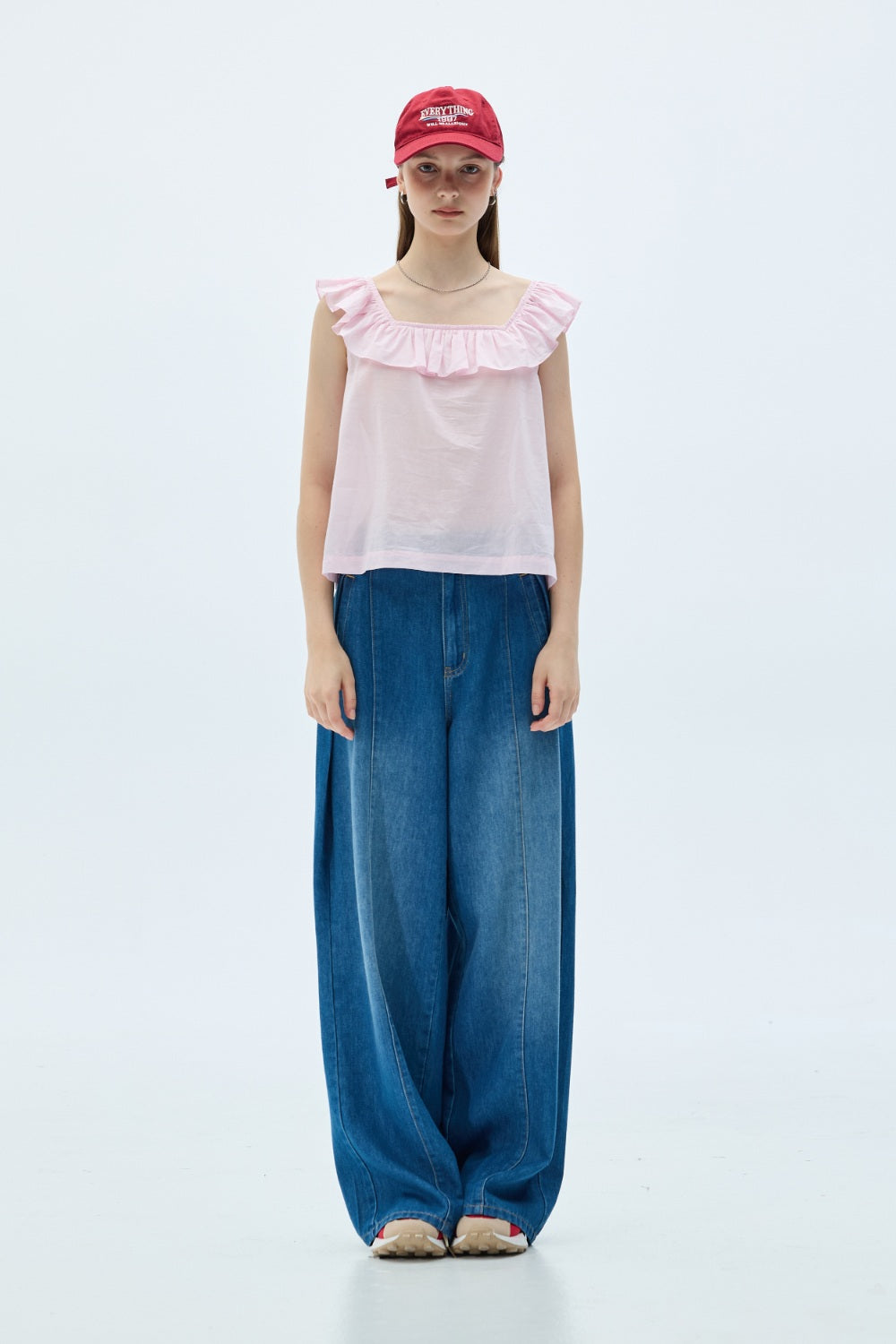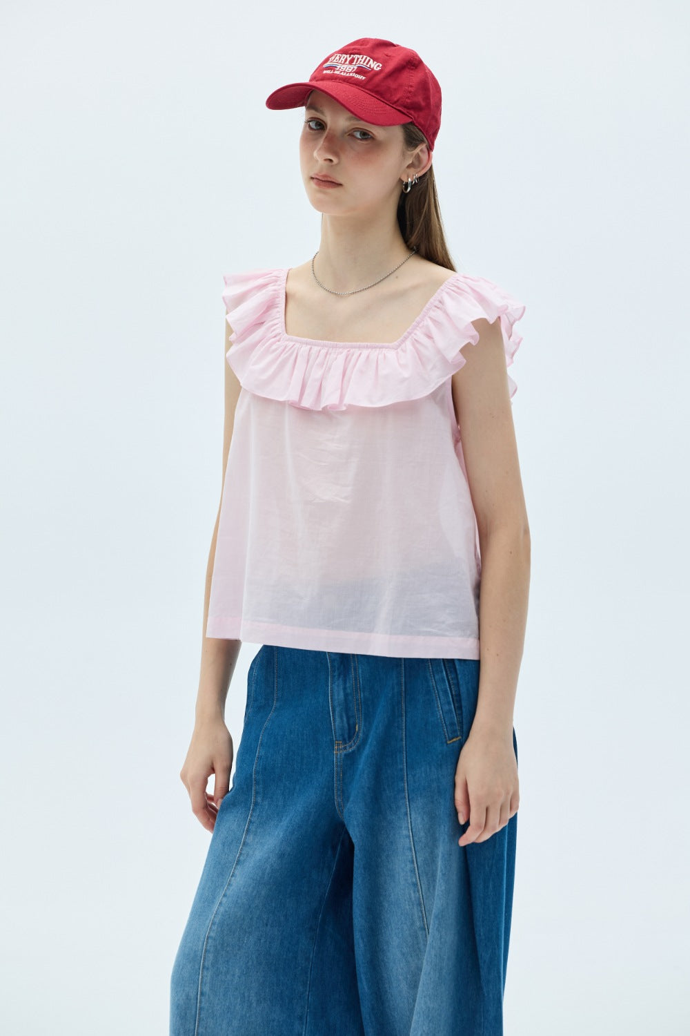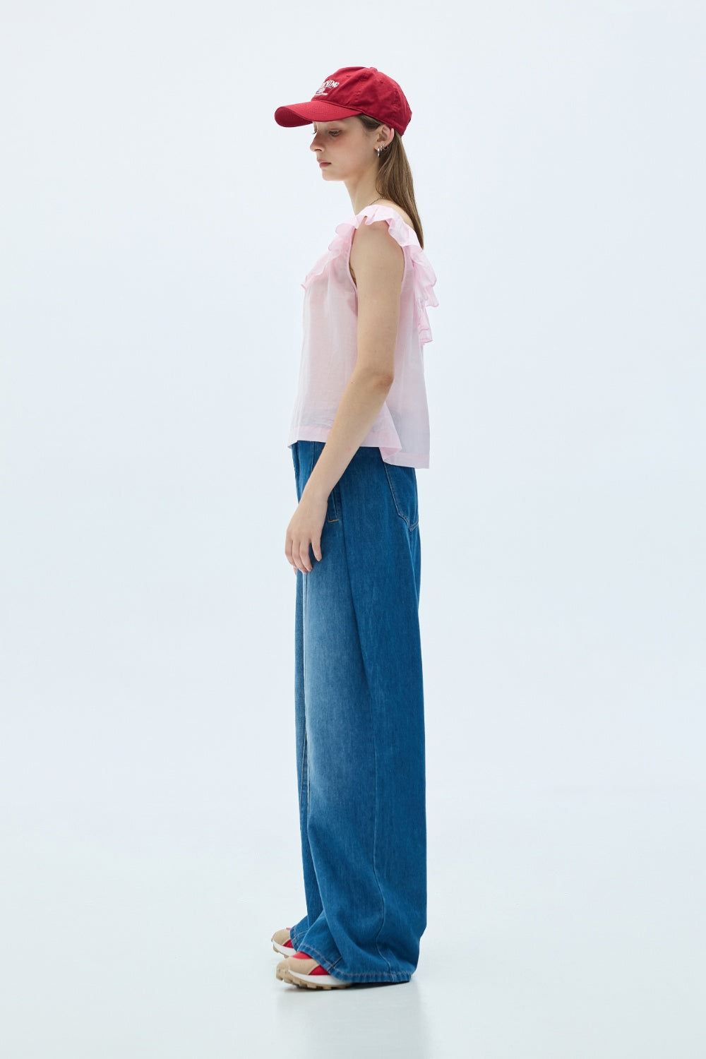 平口荷葉收腰上衣-杏