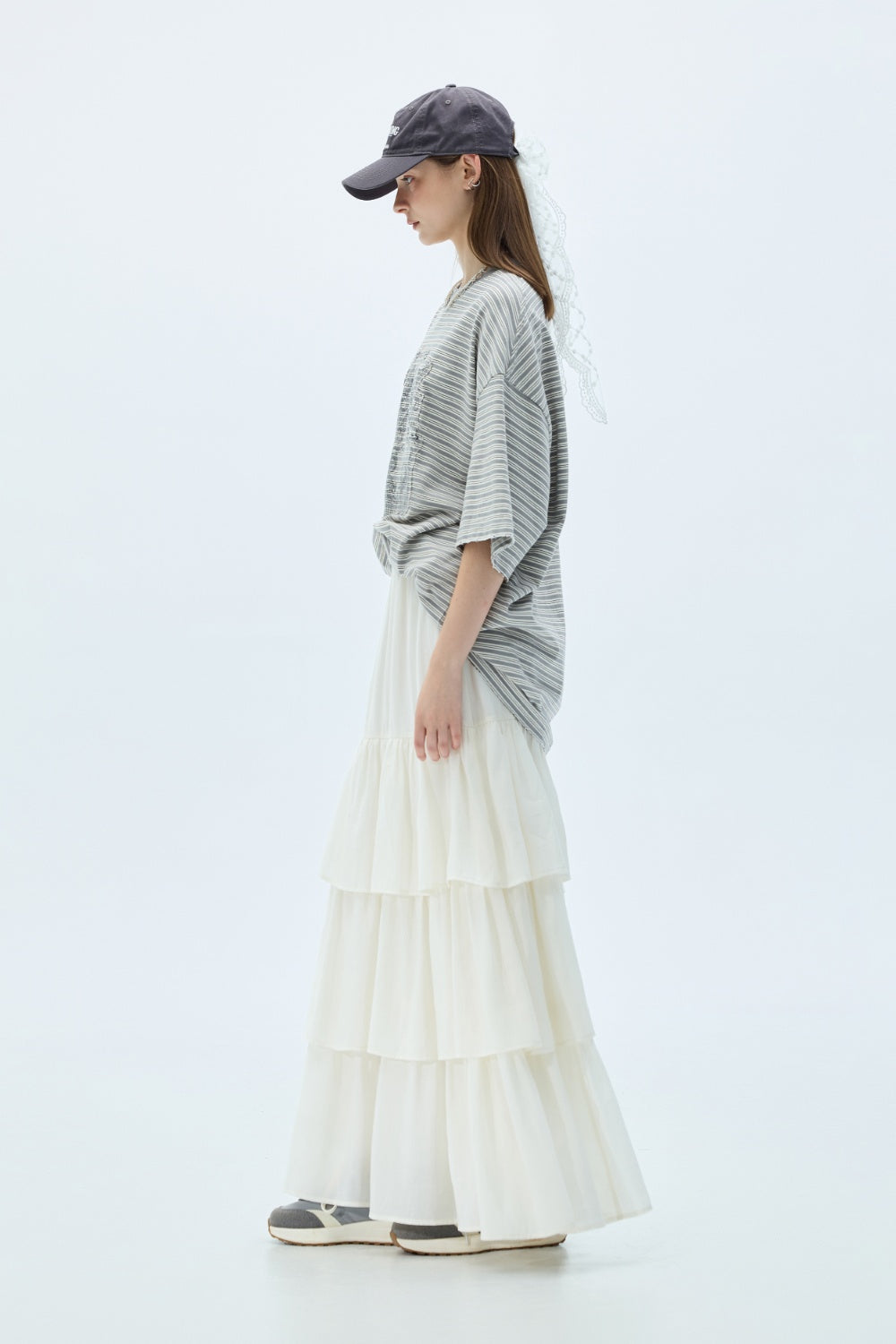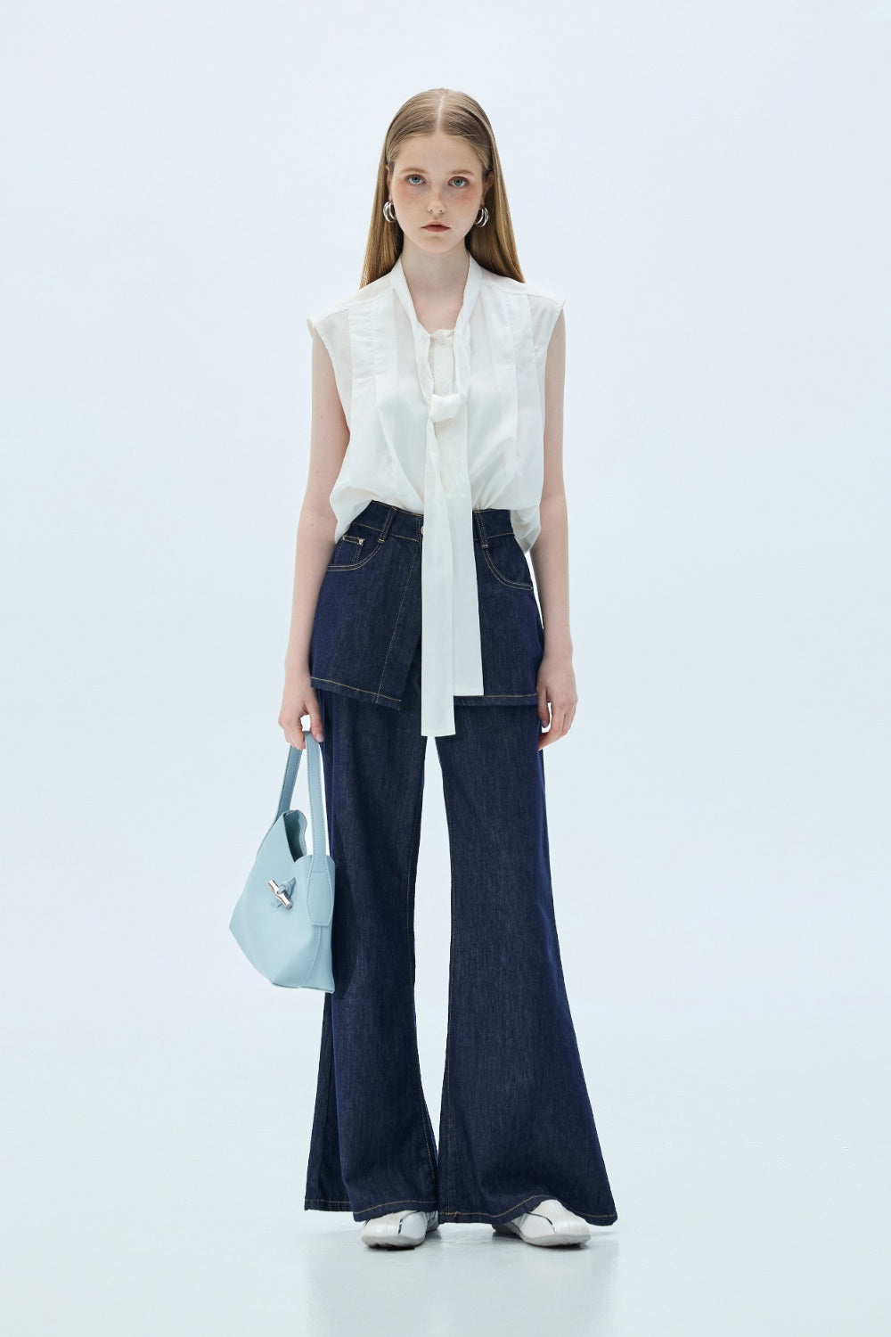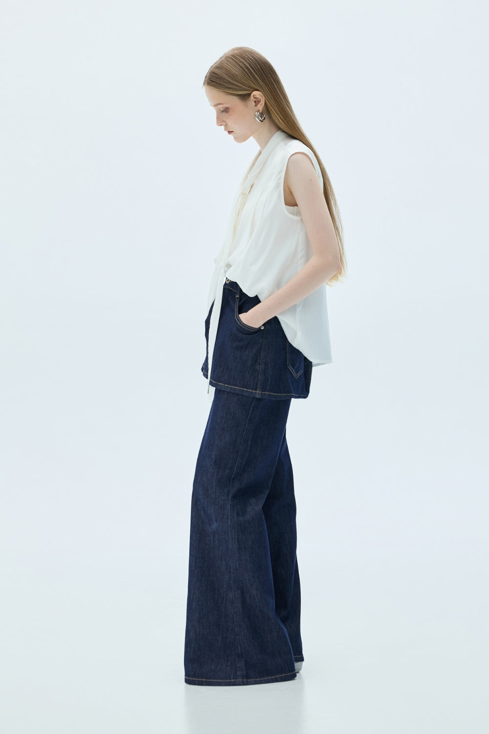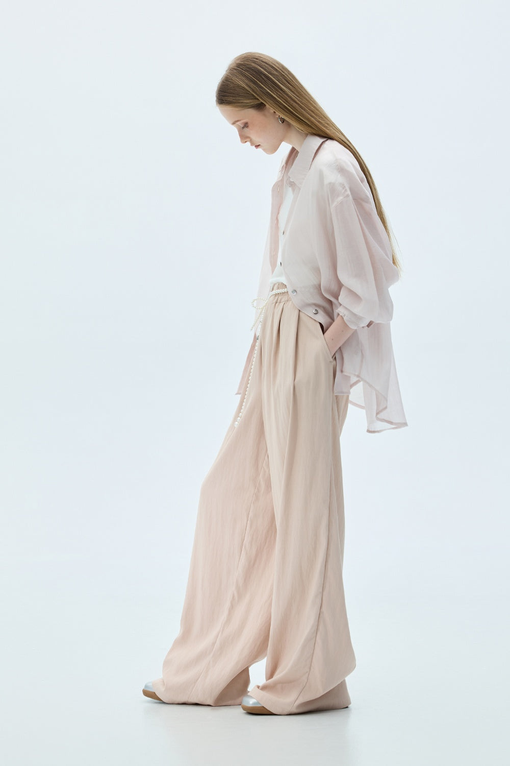 平口荷葉收腰上衣-杏