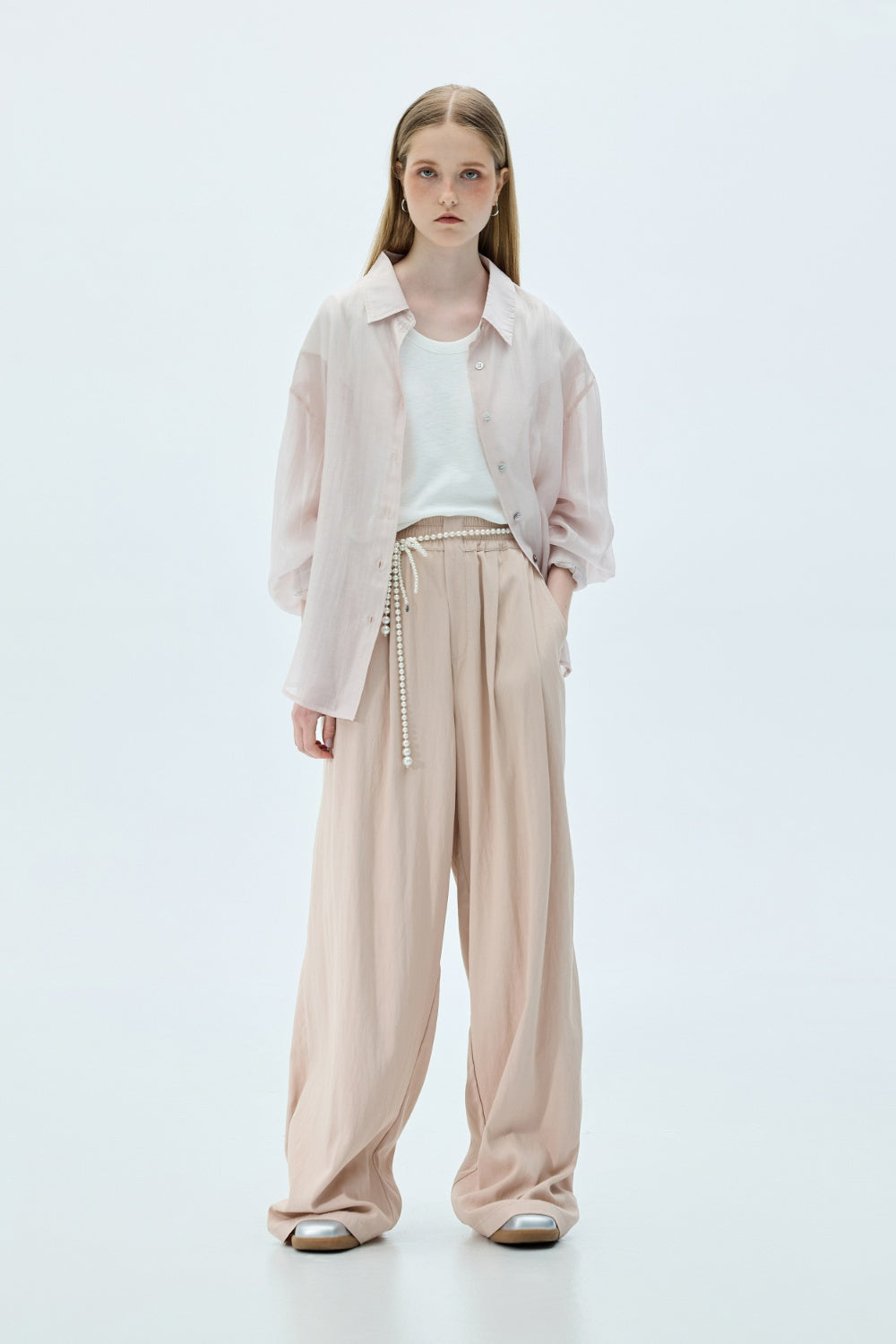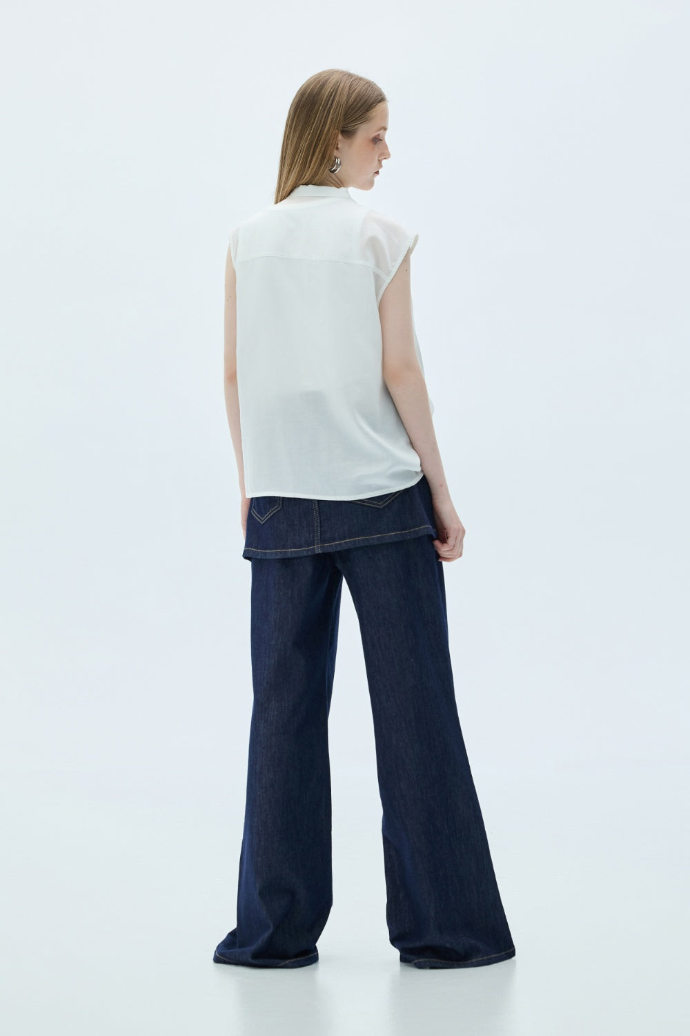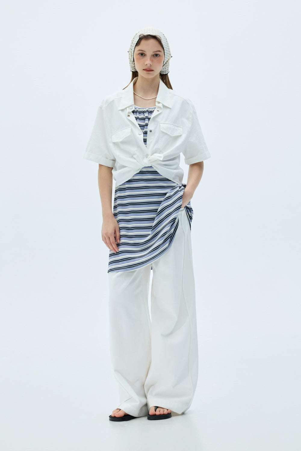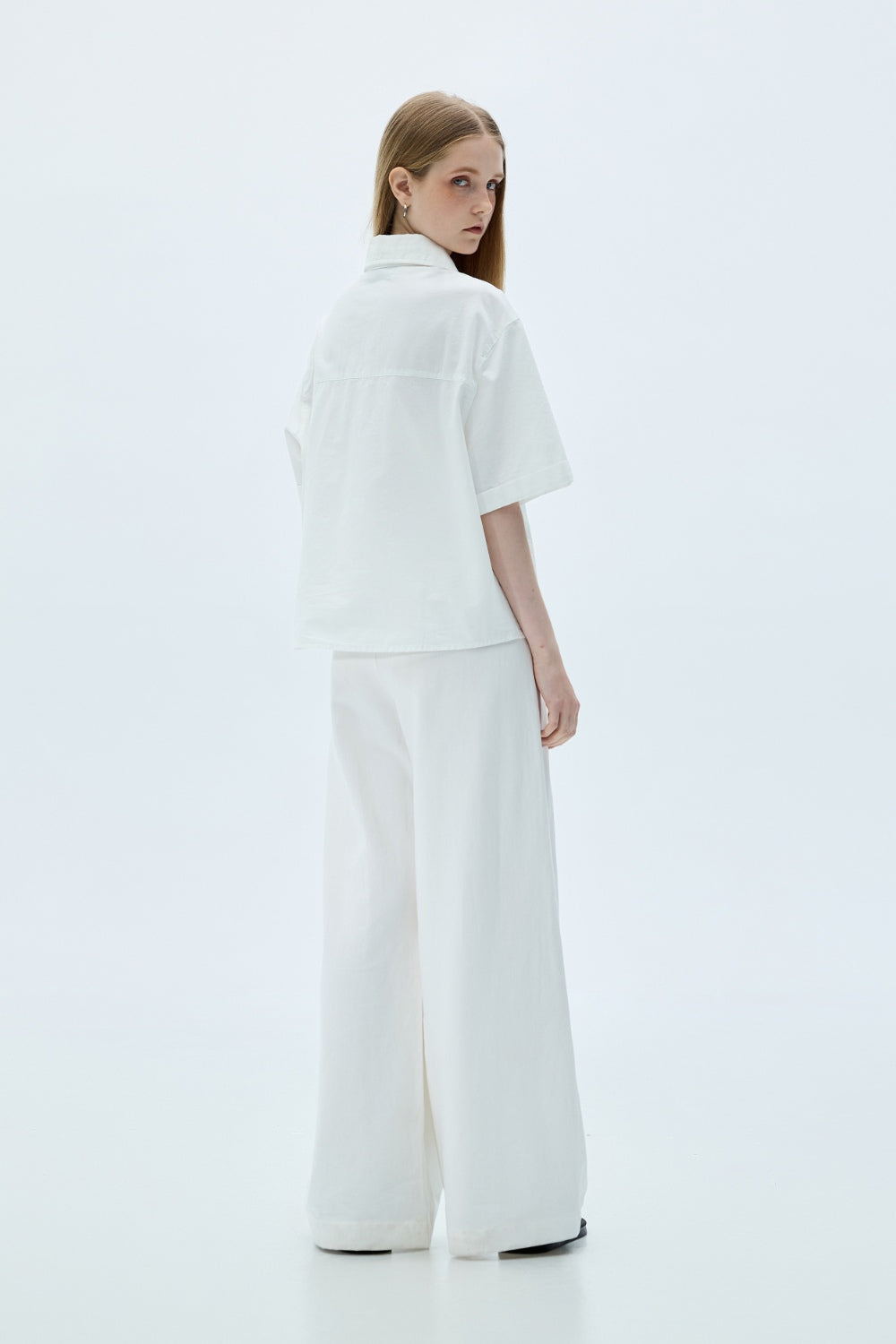 雙口袋翻袋設計短版襯衫-白