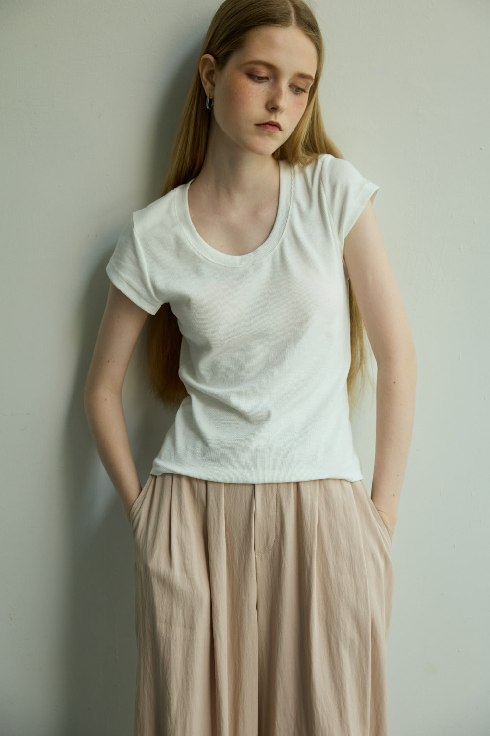 大U領小包袖TEE-白