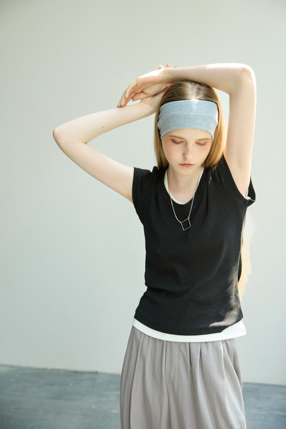 大U領小包袖TEE-黑