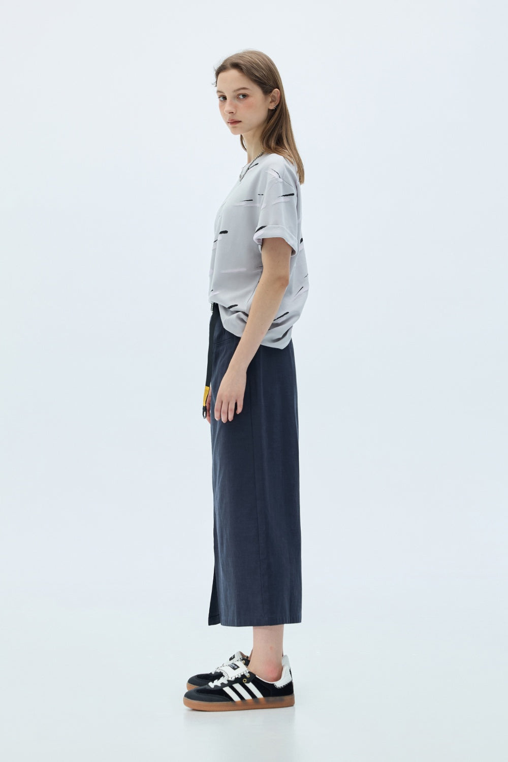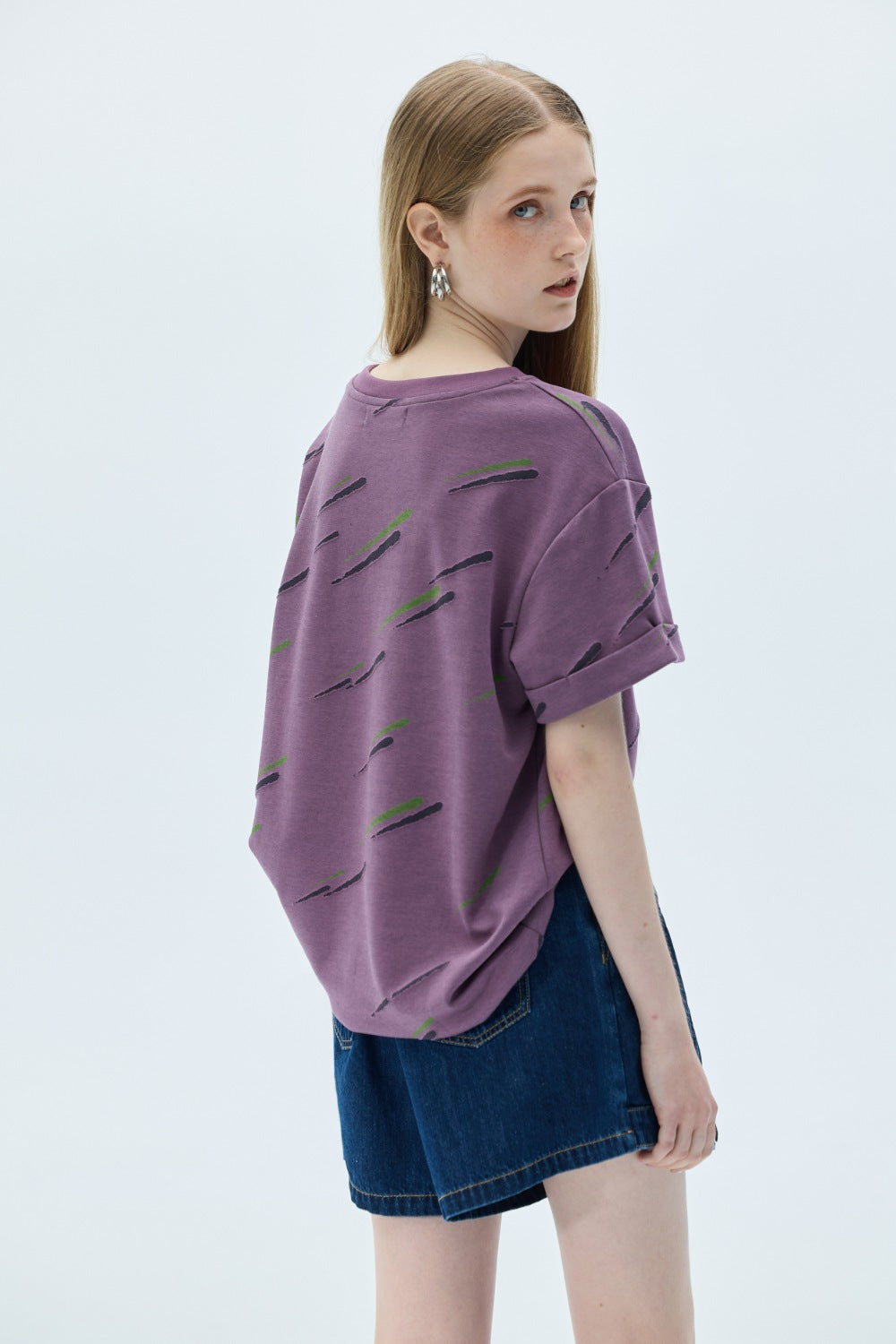 手繪印花寬版TEE-杏