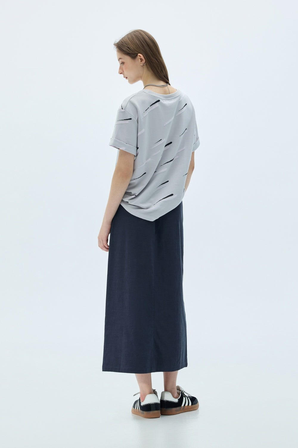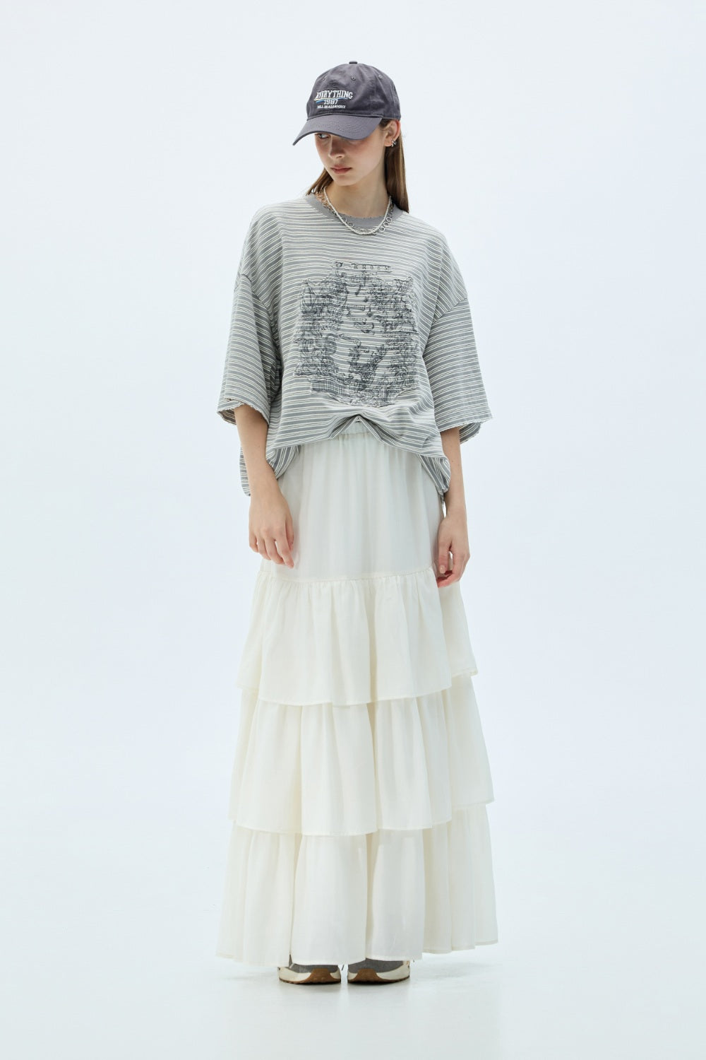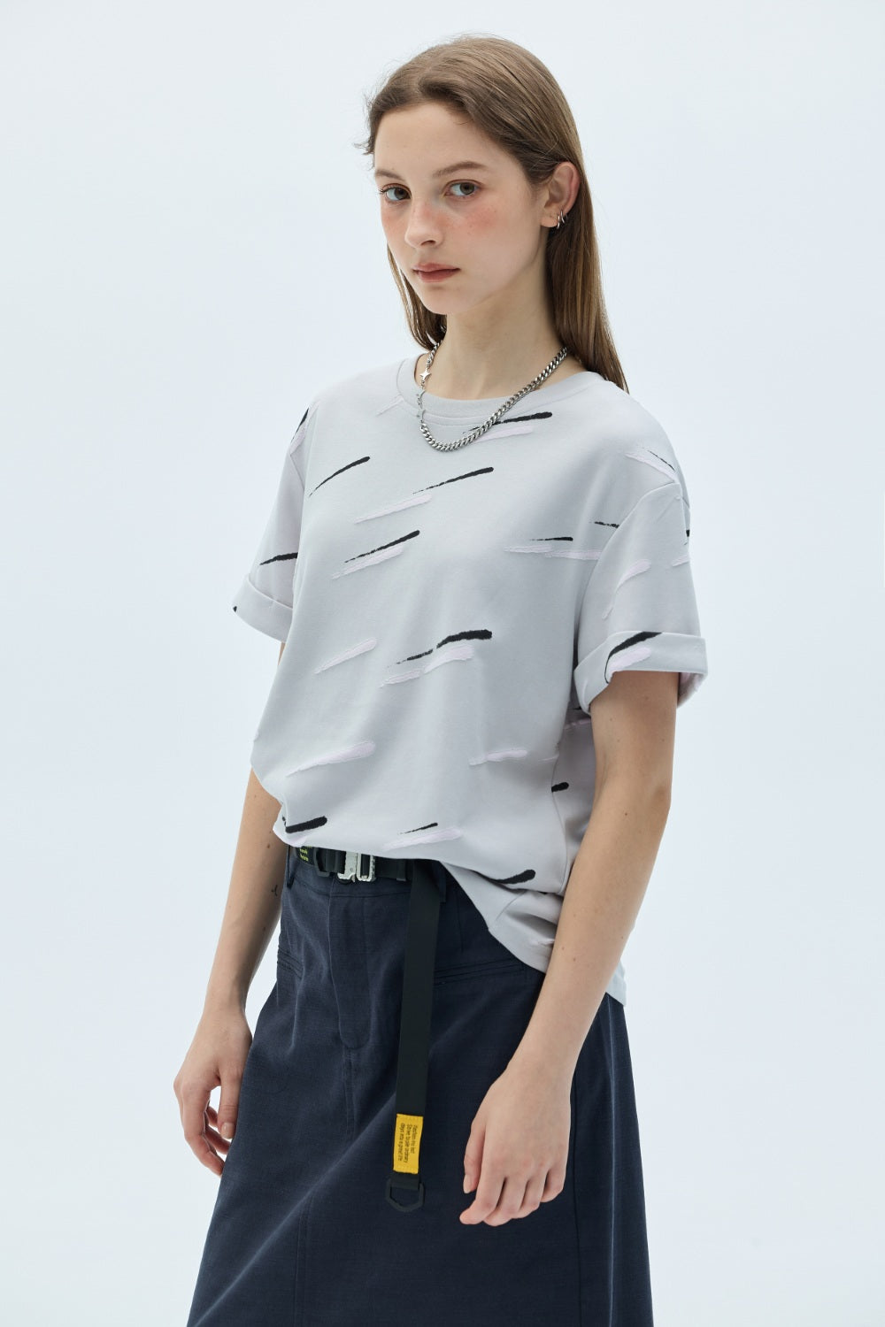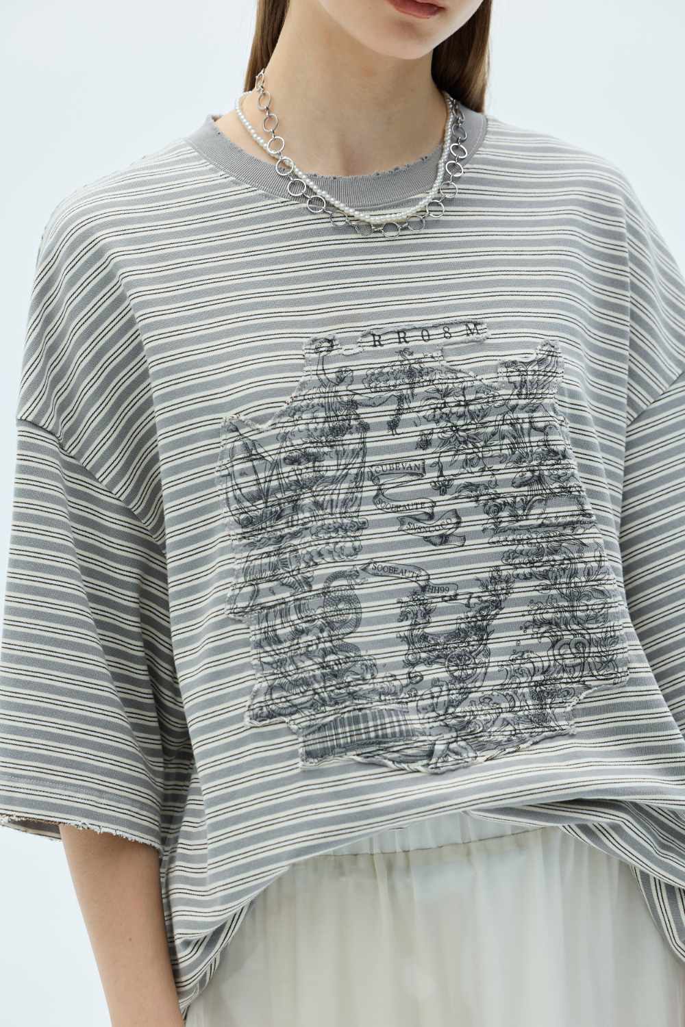 手繪印花寬版TEE-白