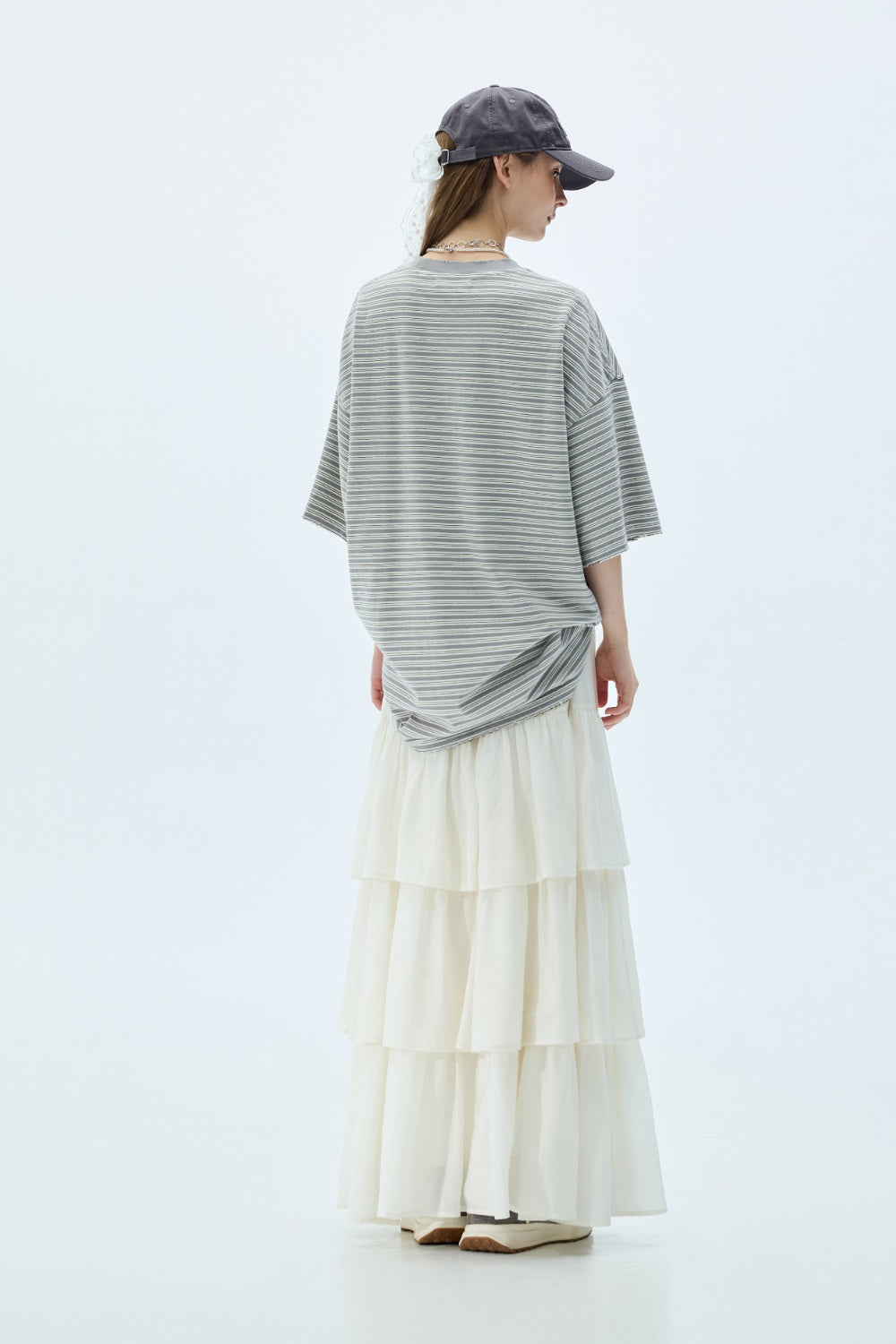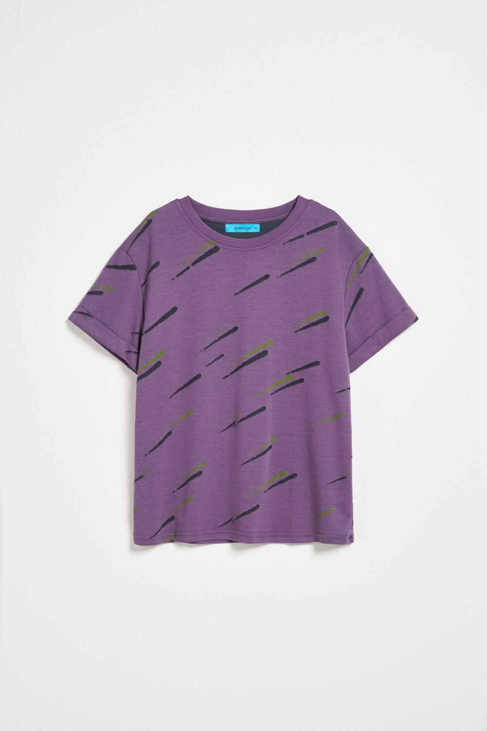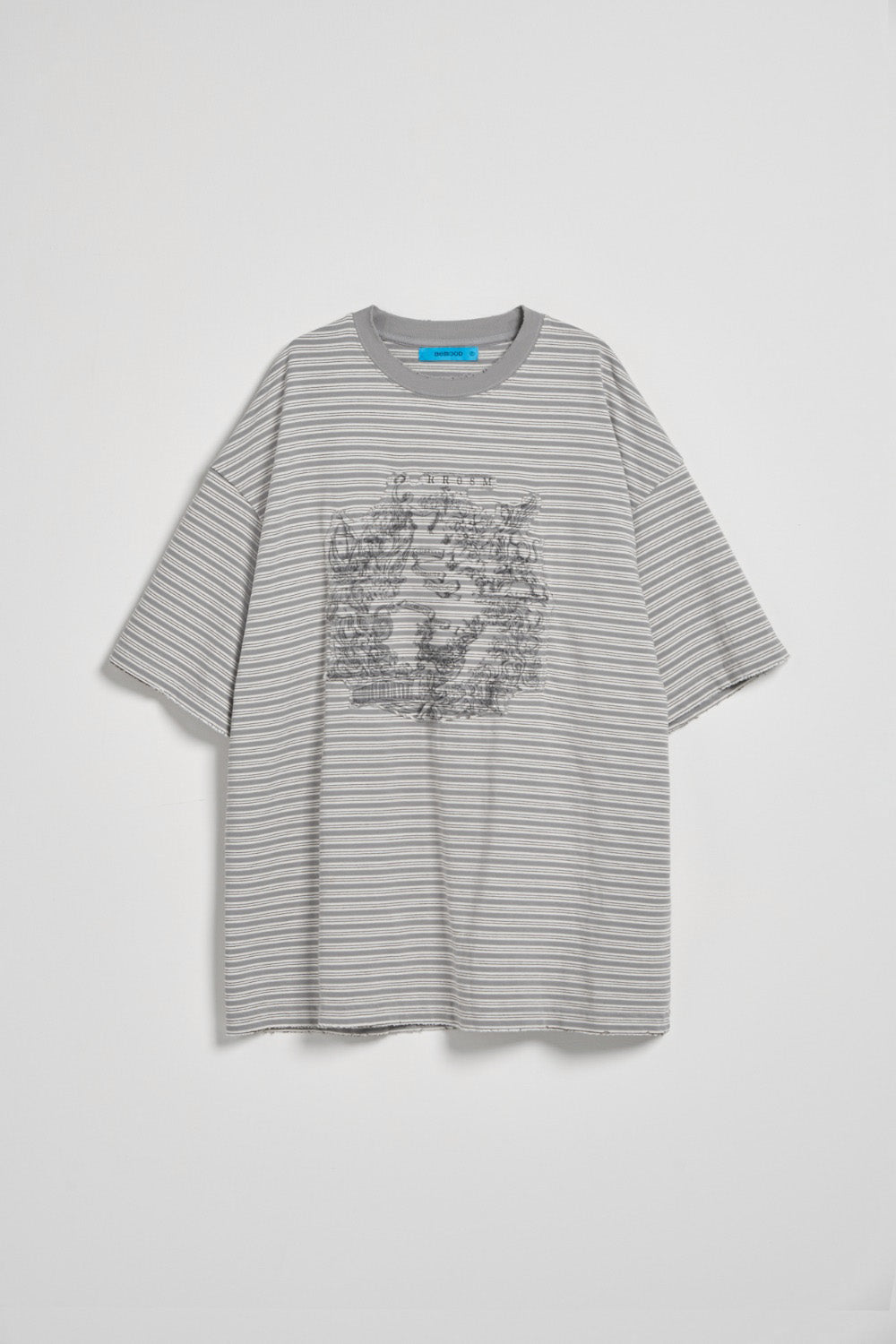 條紋仿舊水洗寬版TEE-藍