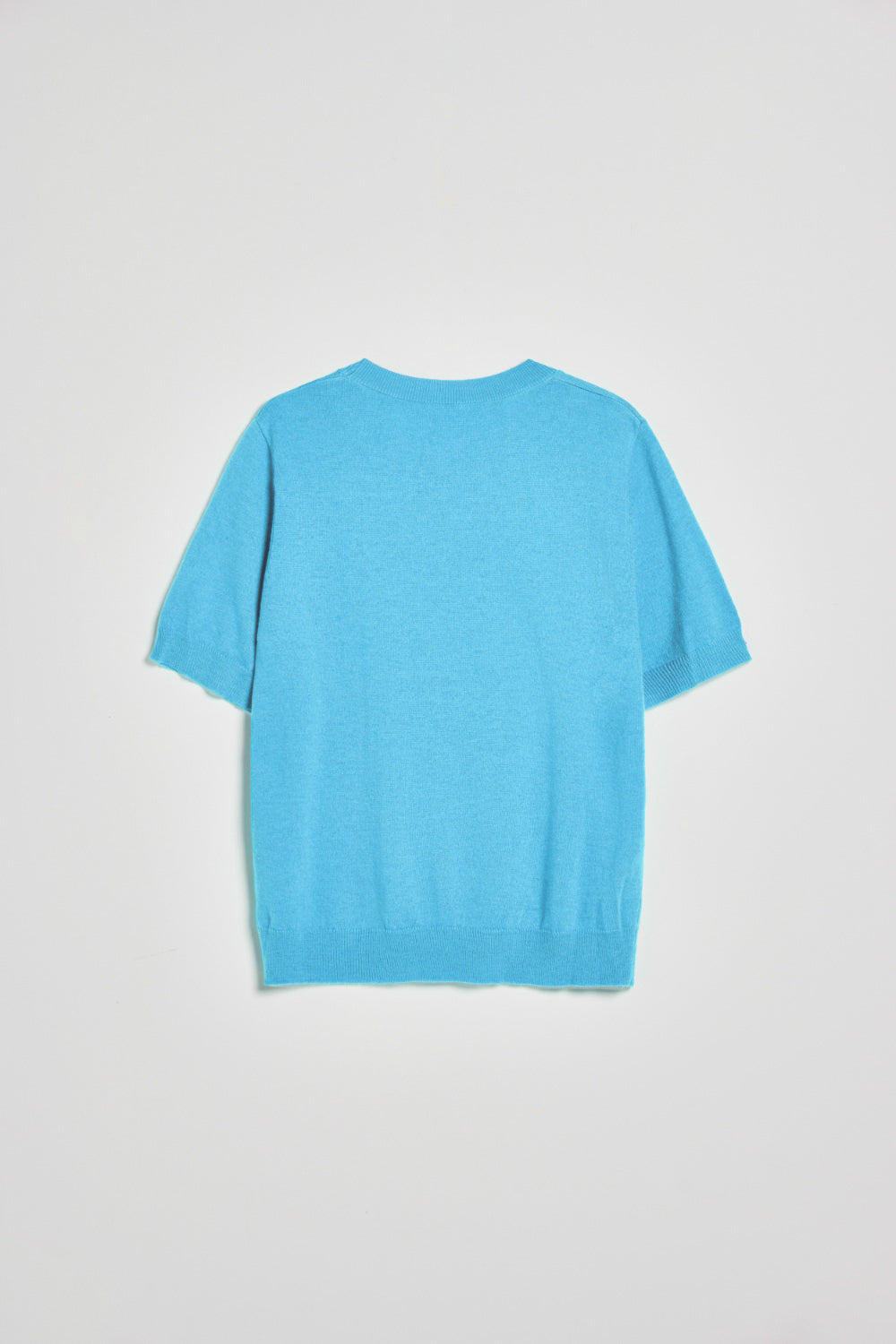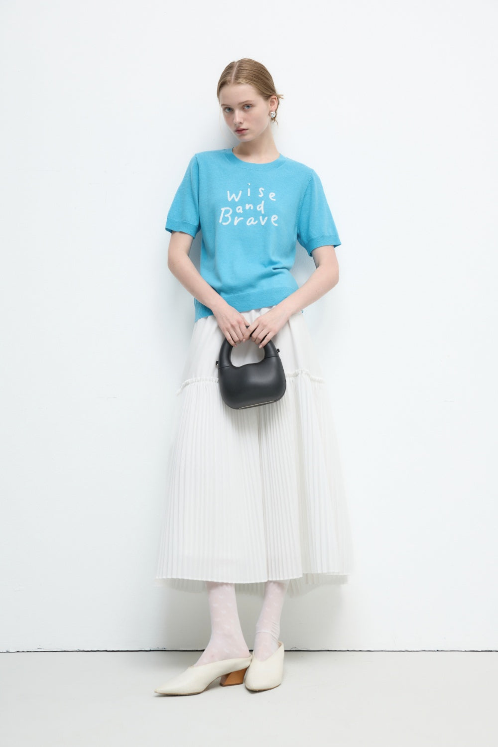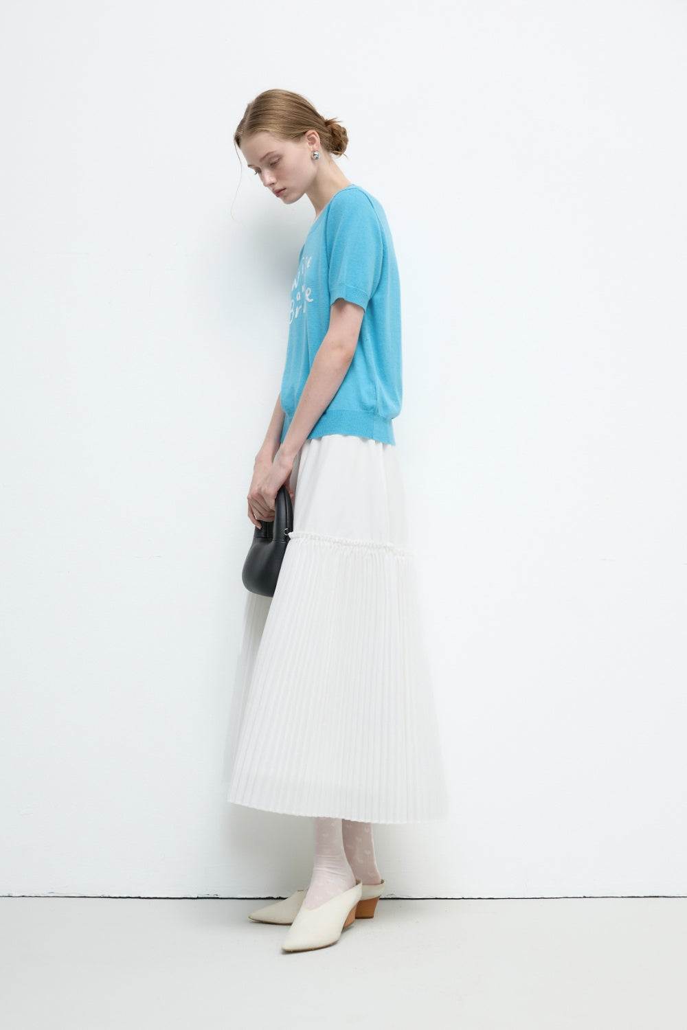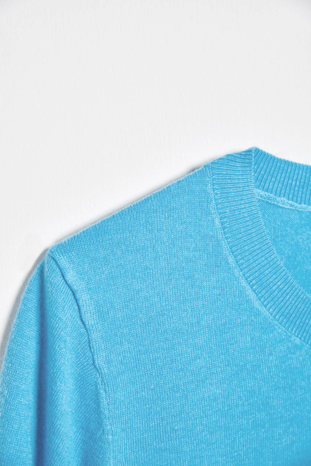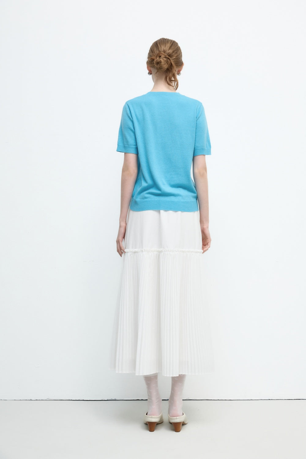 立體織紋蕾絲綁帶假兩件針織上衣-藍色