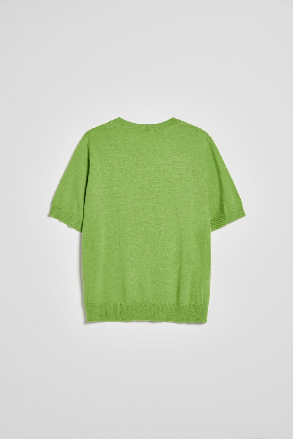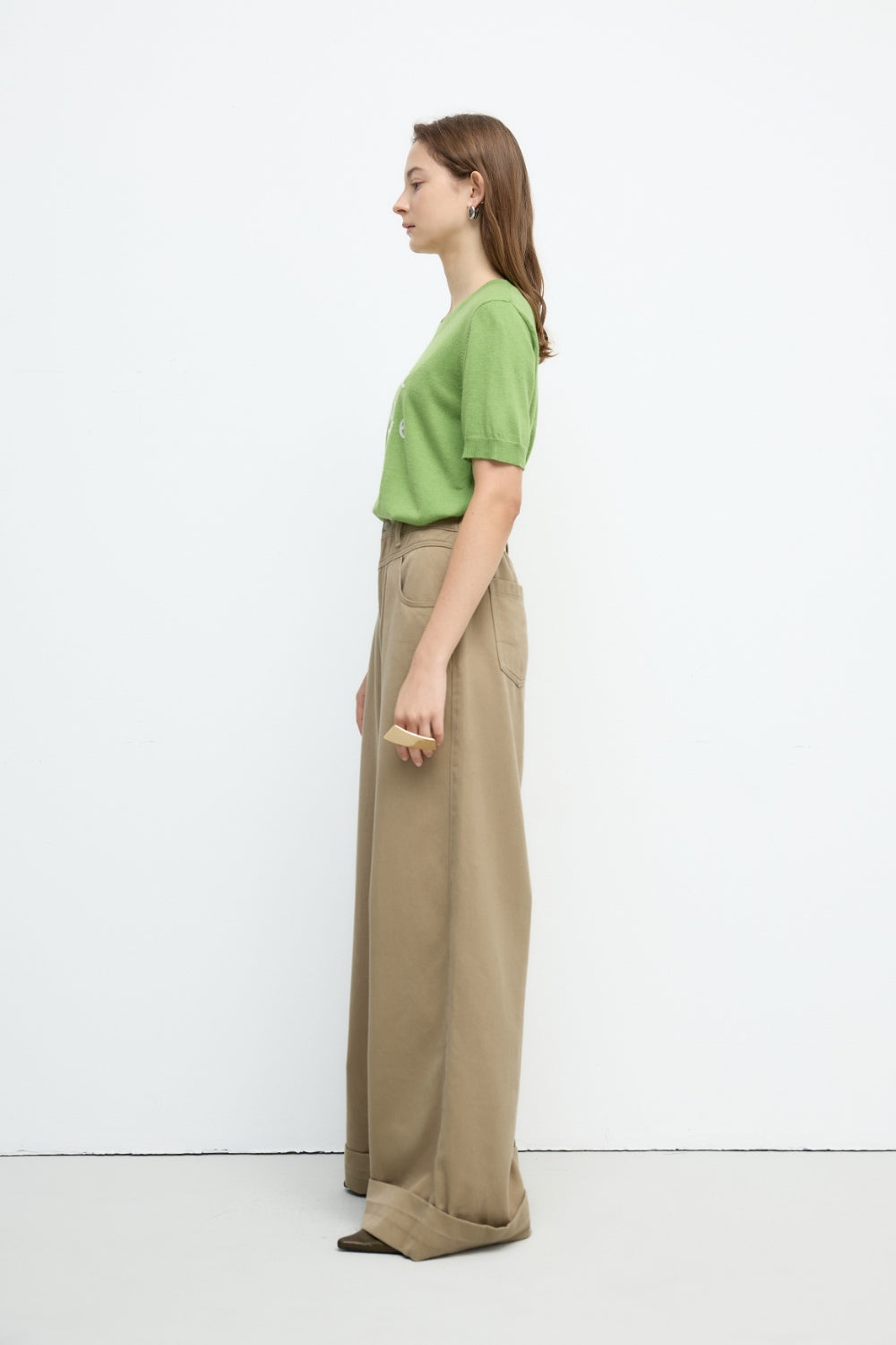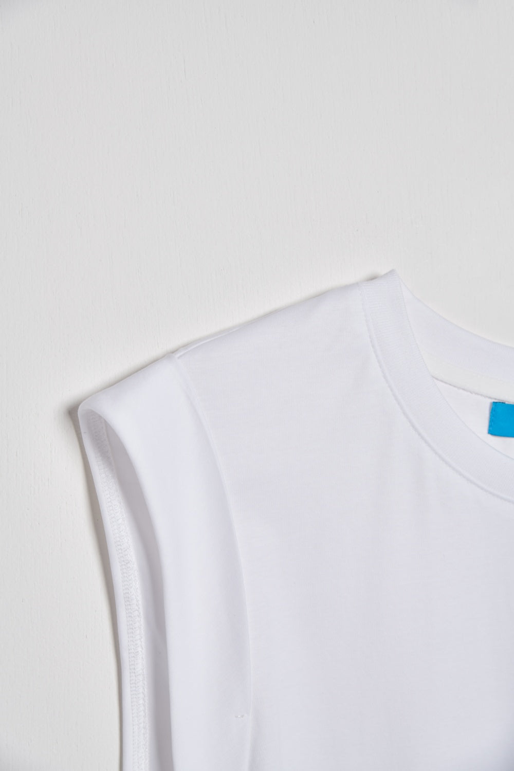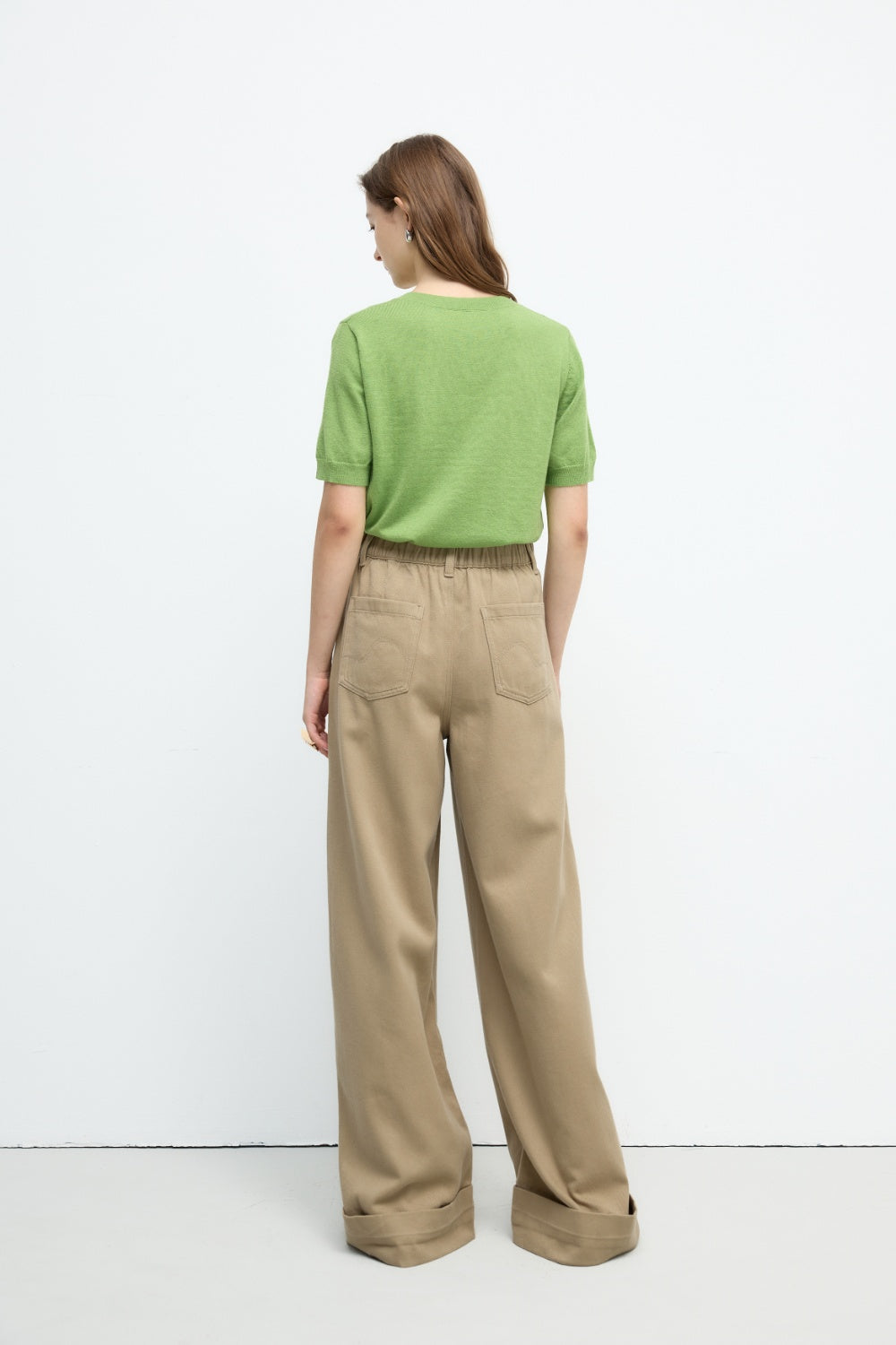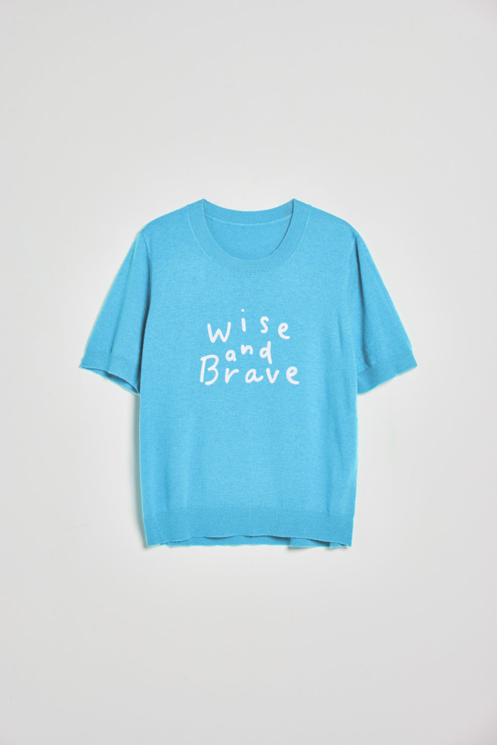 立體織紋蕾絲綁帶假兩件針織上衣-藍色