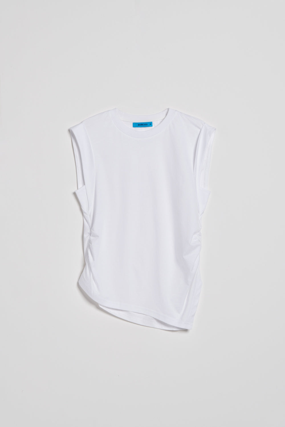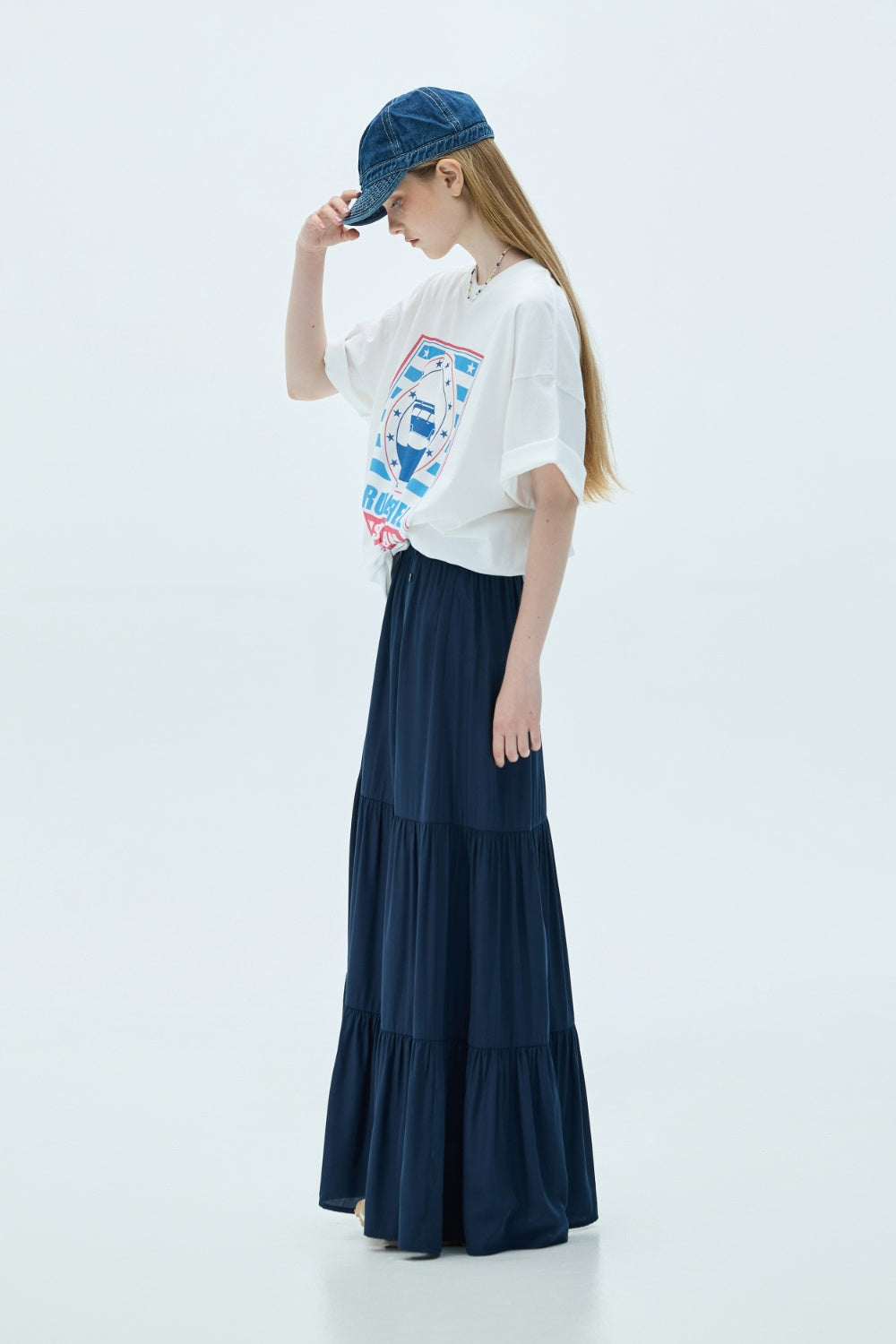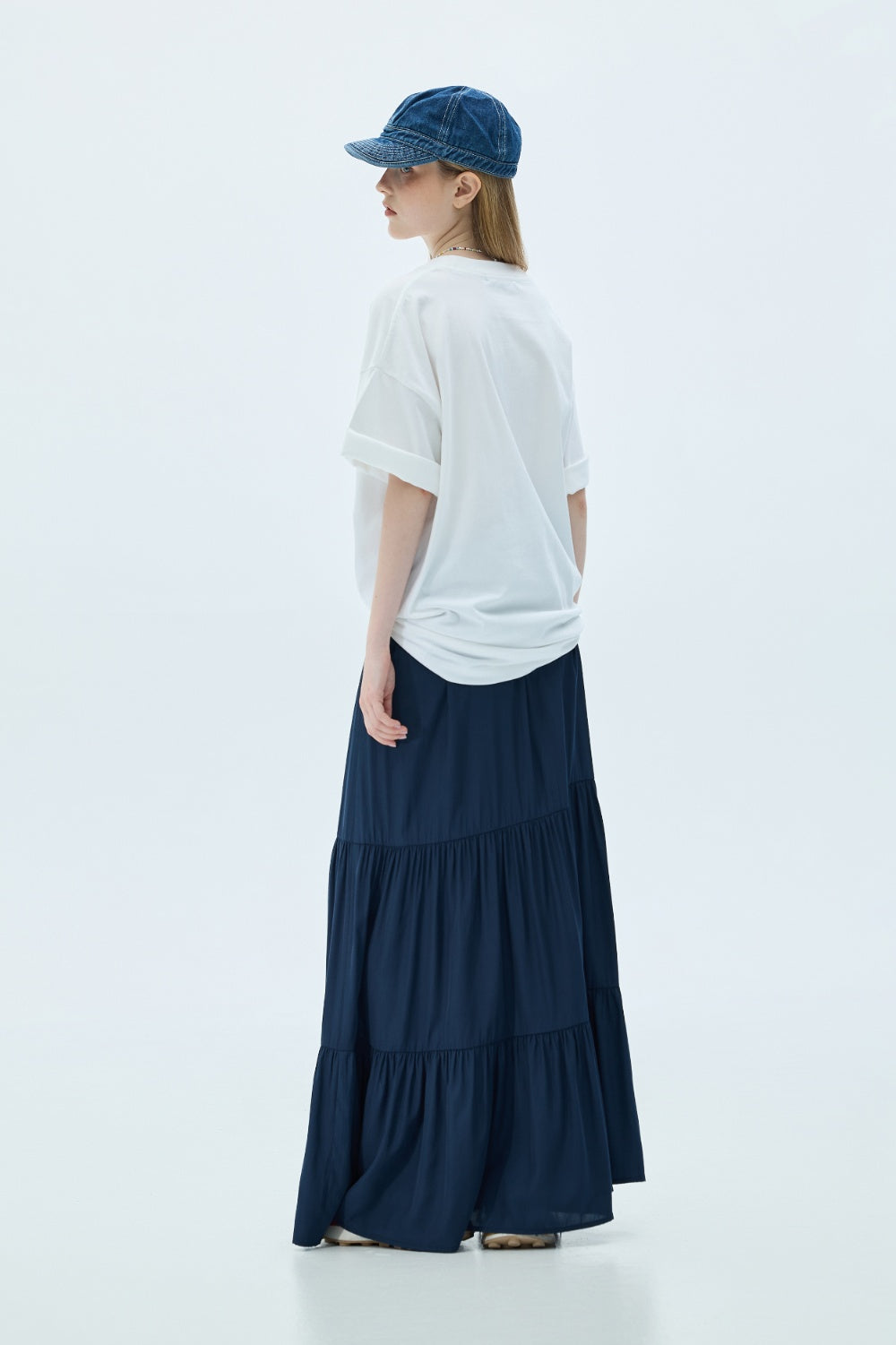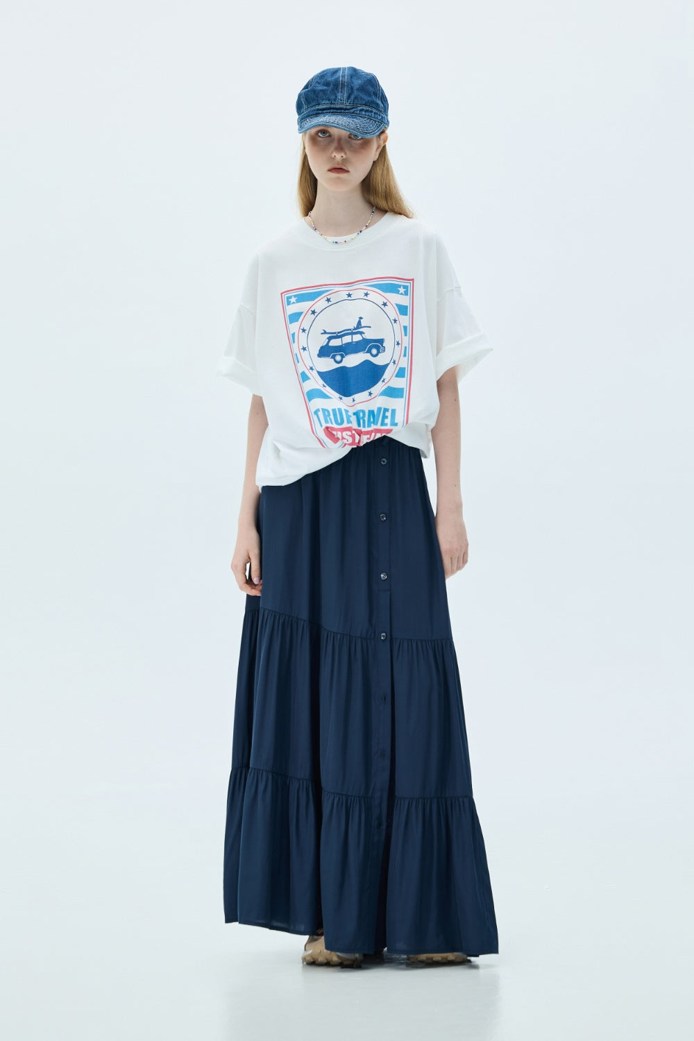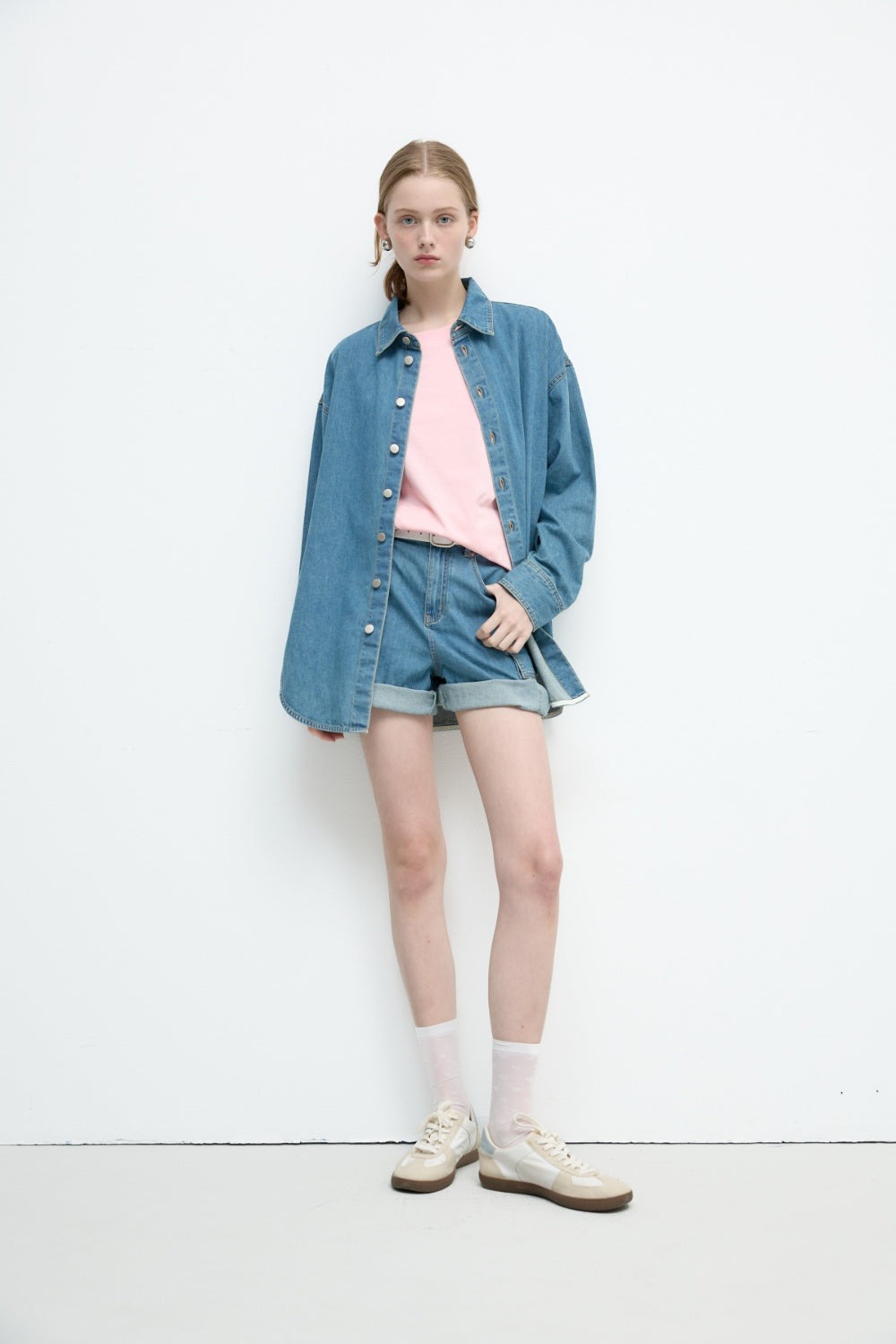 立體織紋蕾絲綁帶假兩件針織上衣-藍色