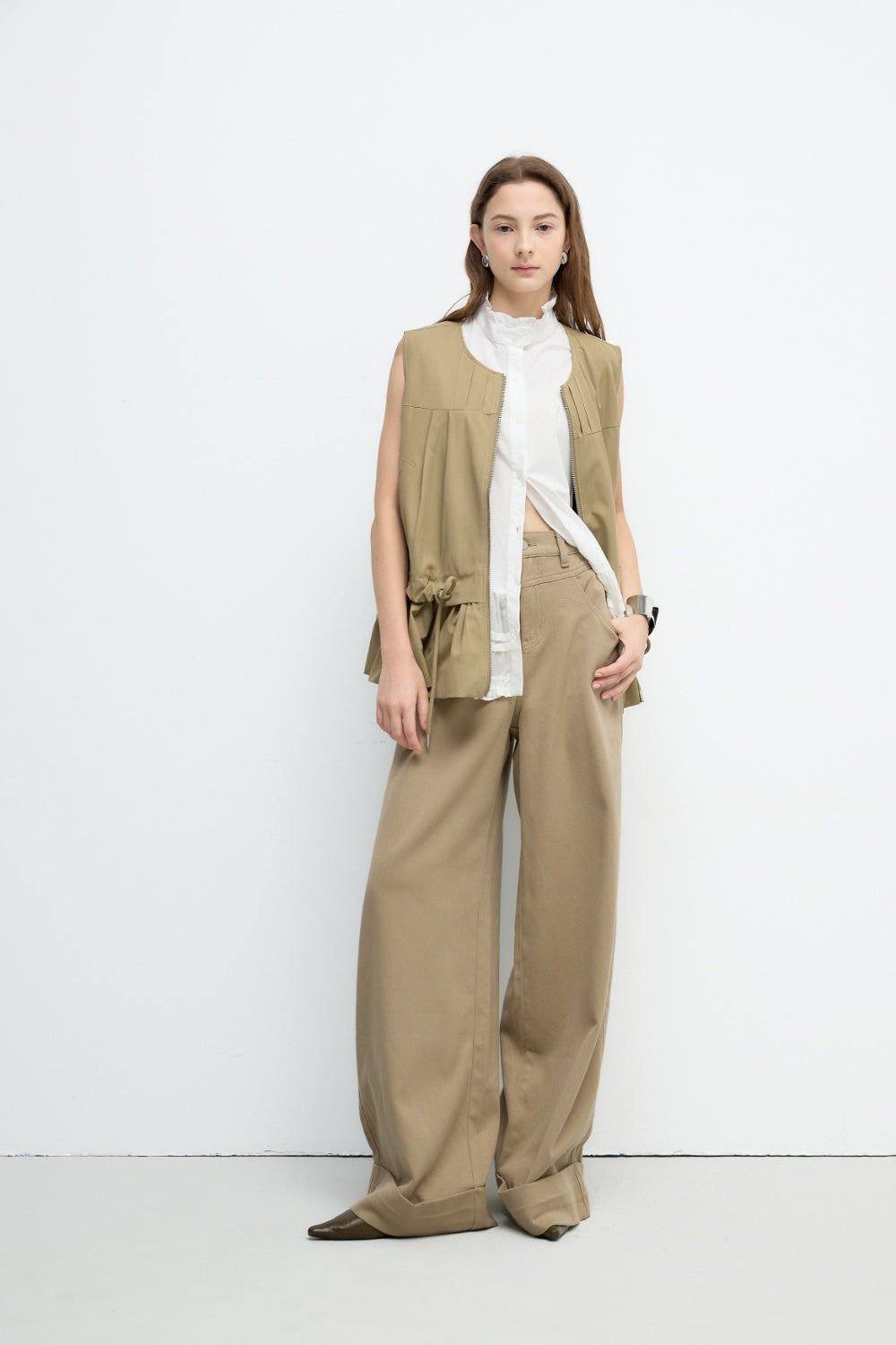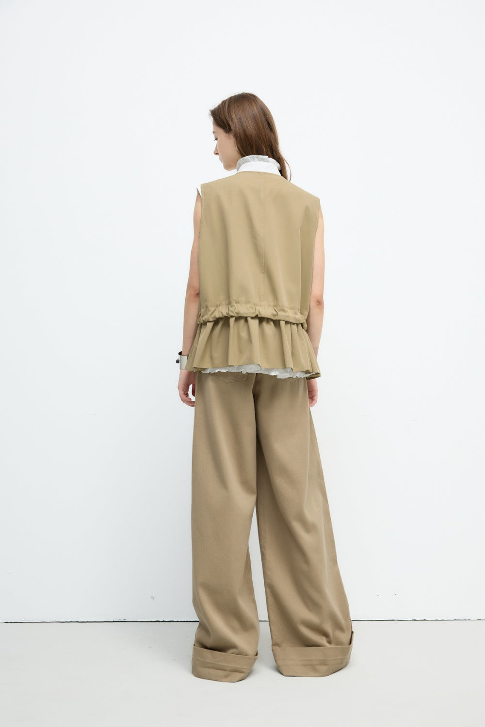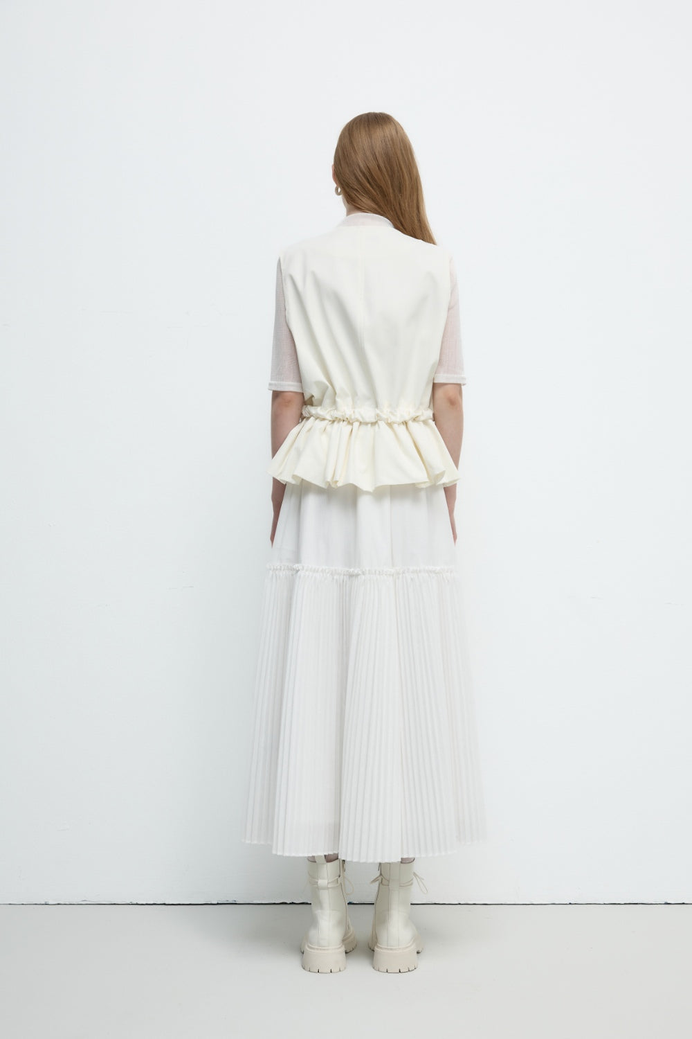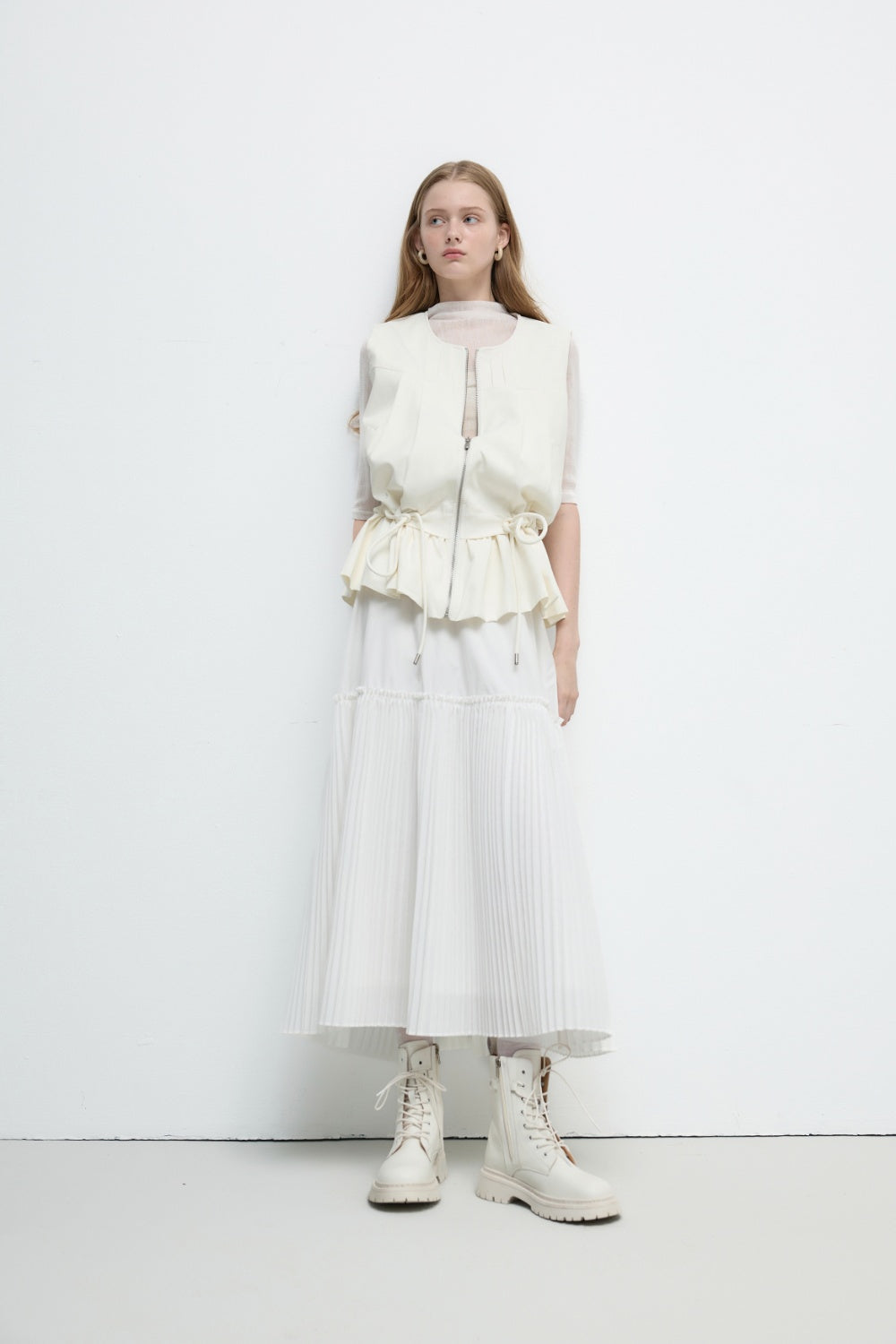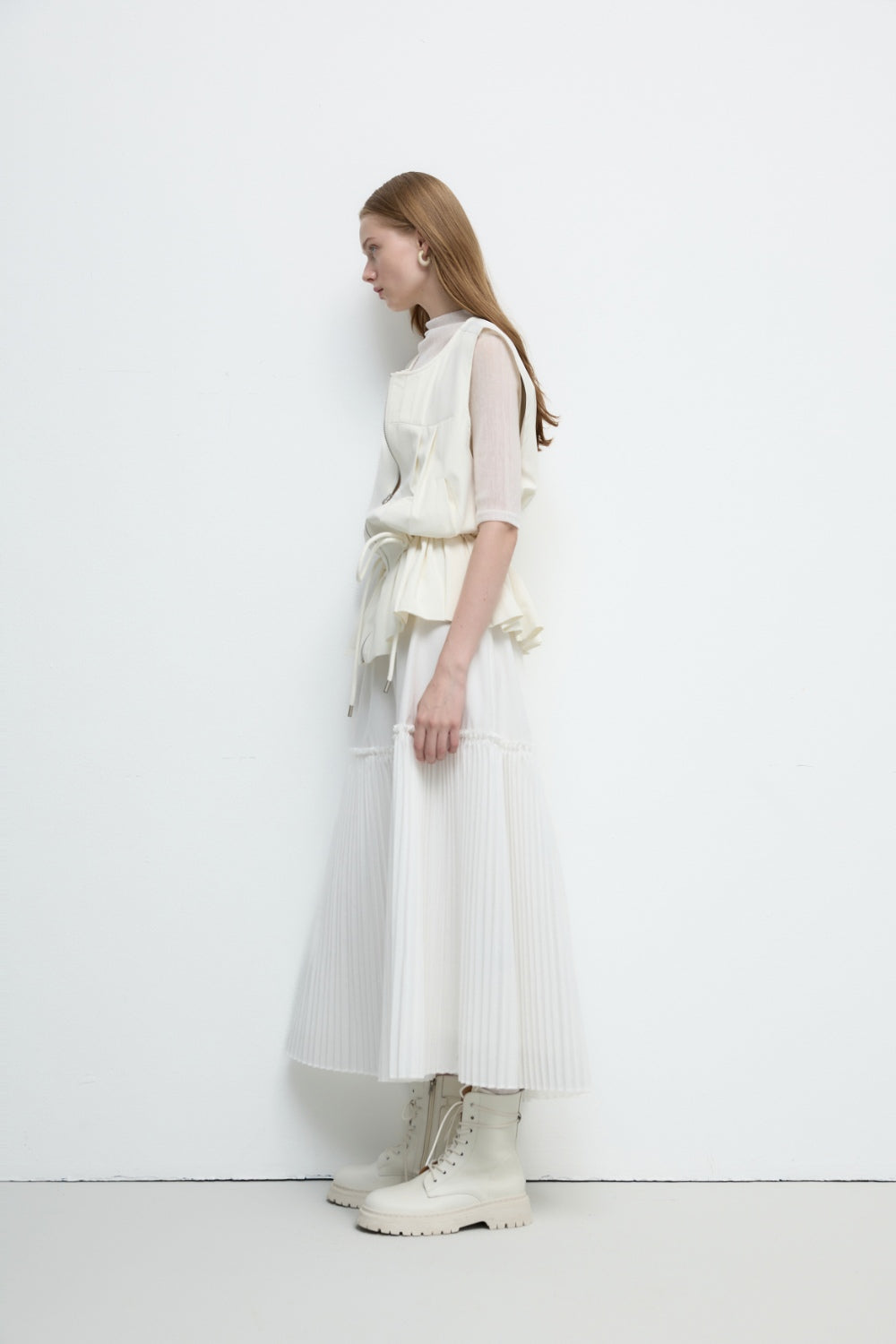 立體織紋蕾絲綁帶假兩件針織上衣-黑