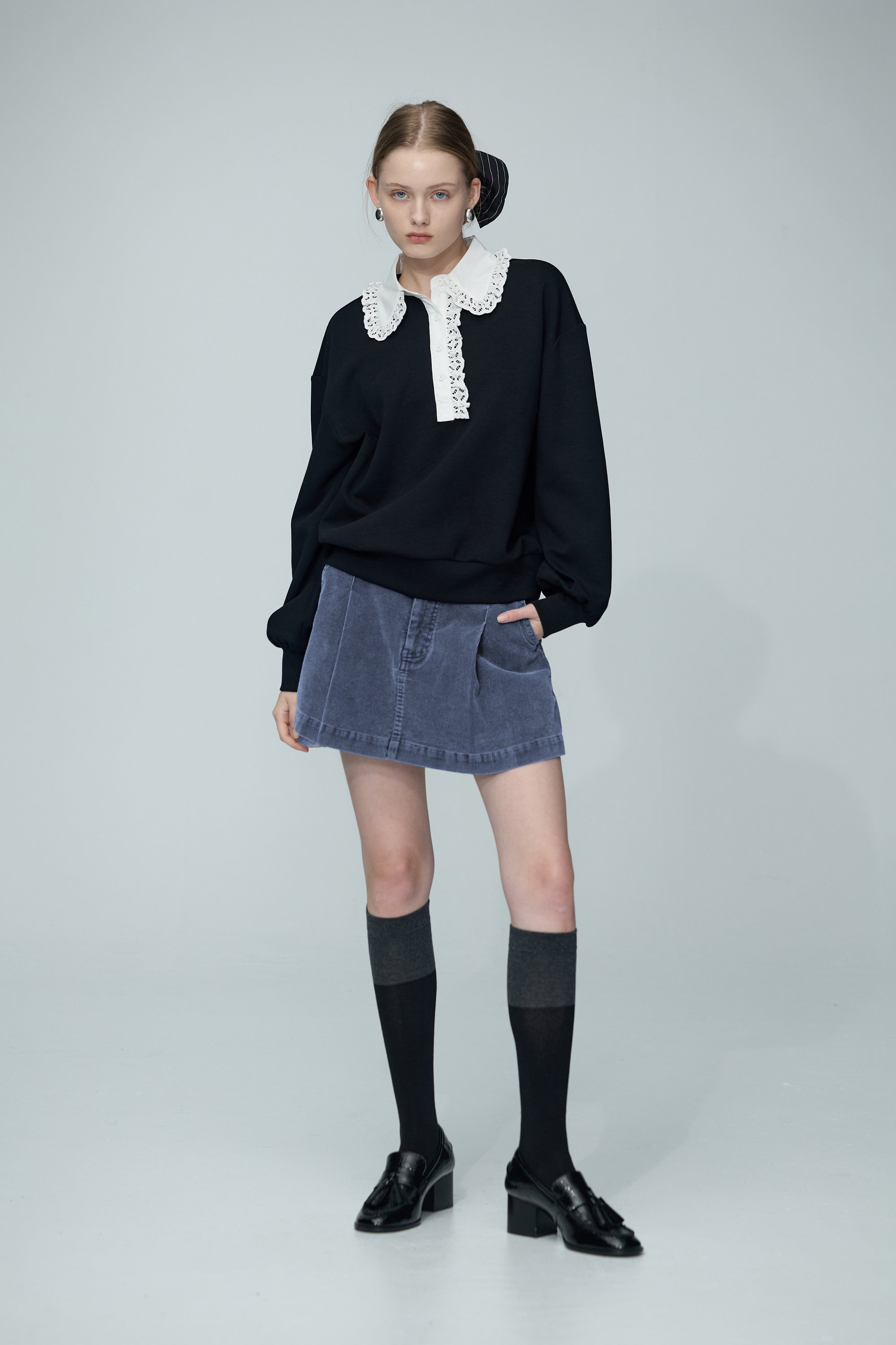 裝飾縫線圓領彈性好搭TEE上衣-黑