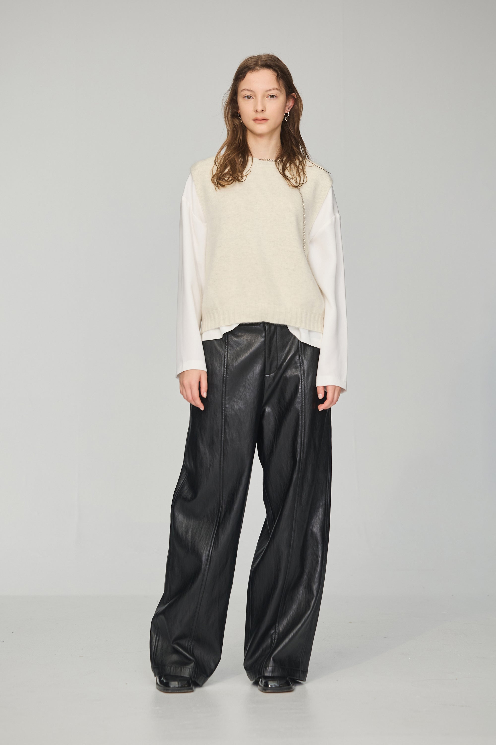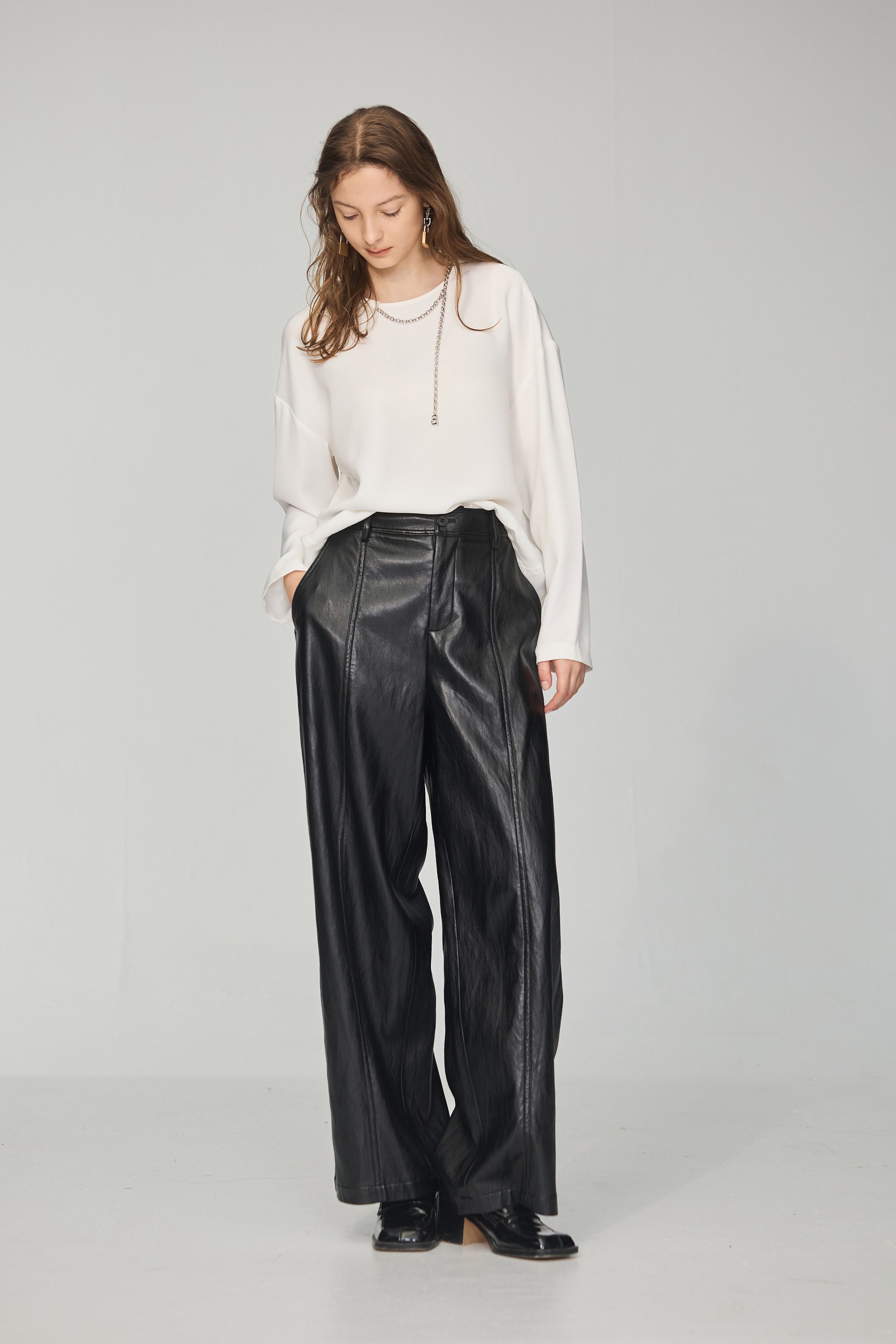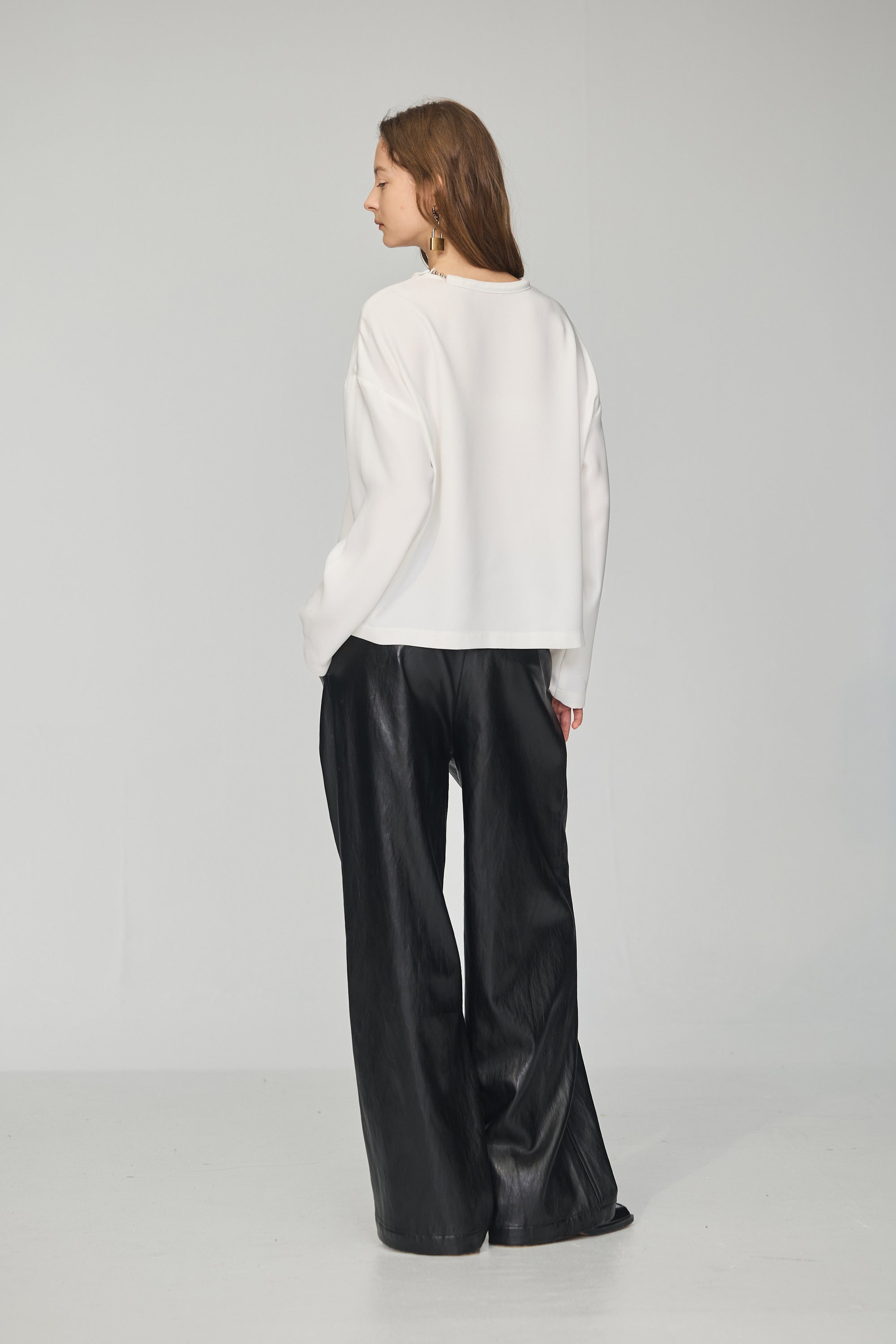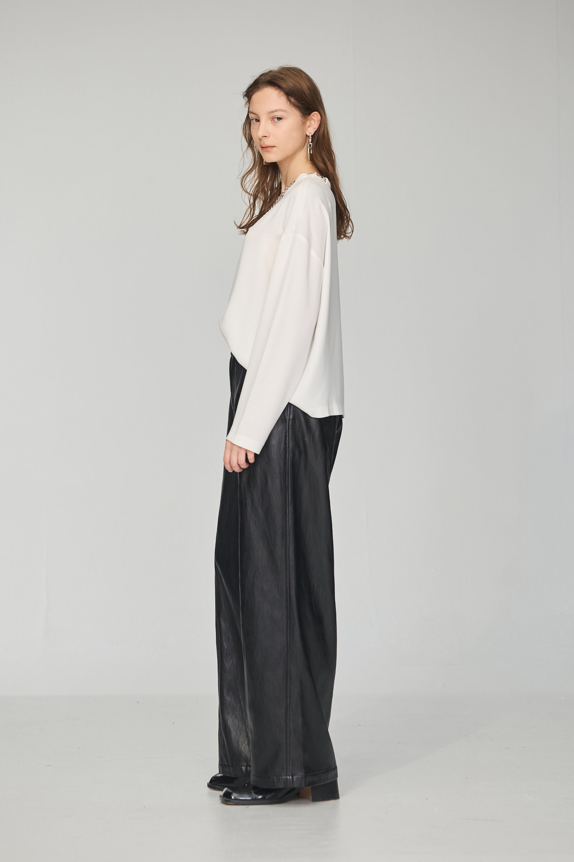 不規則領片車褶收腰襯衫-白