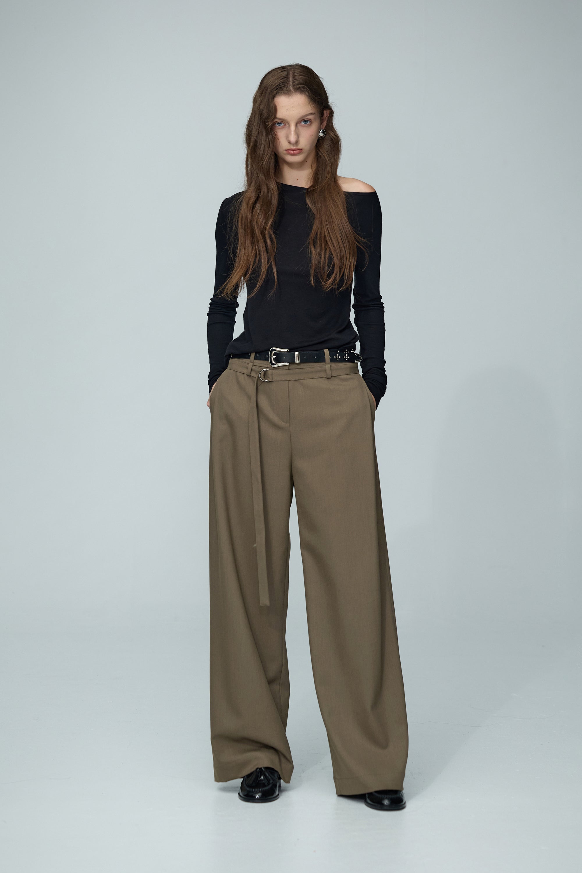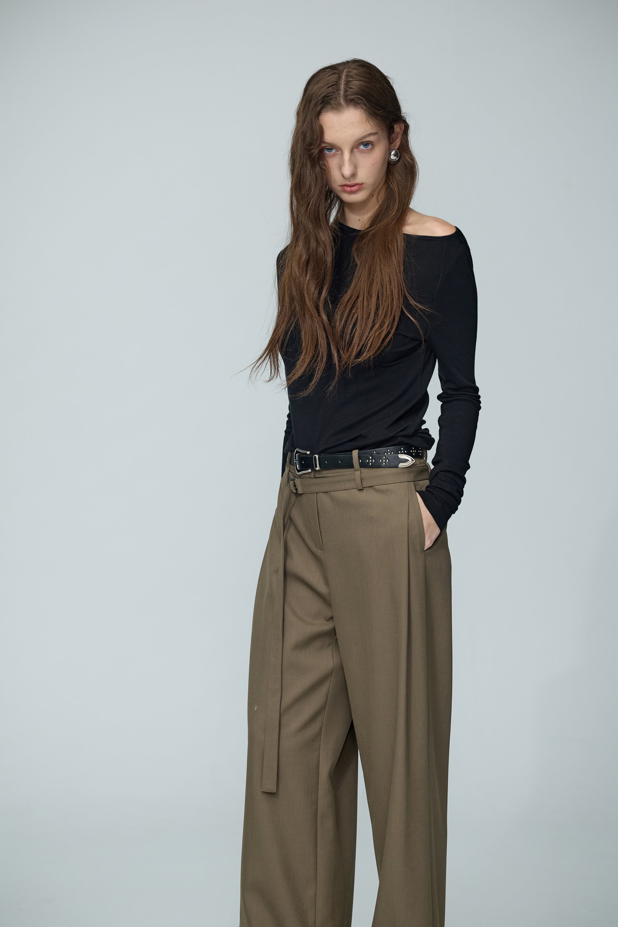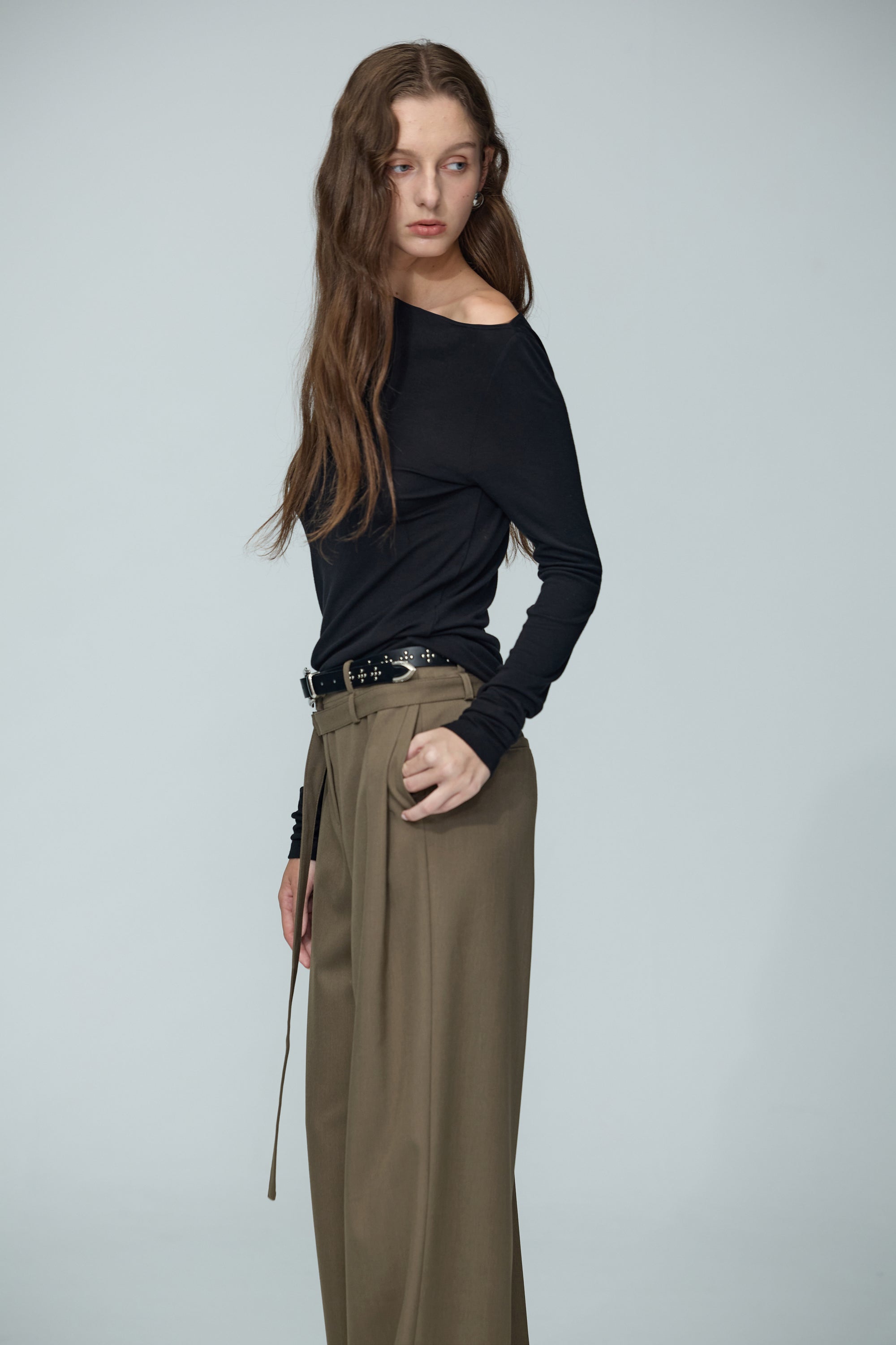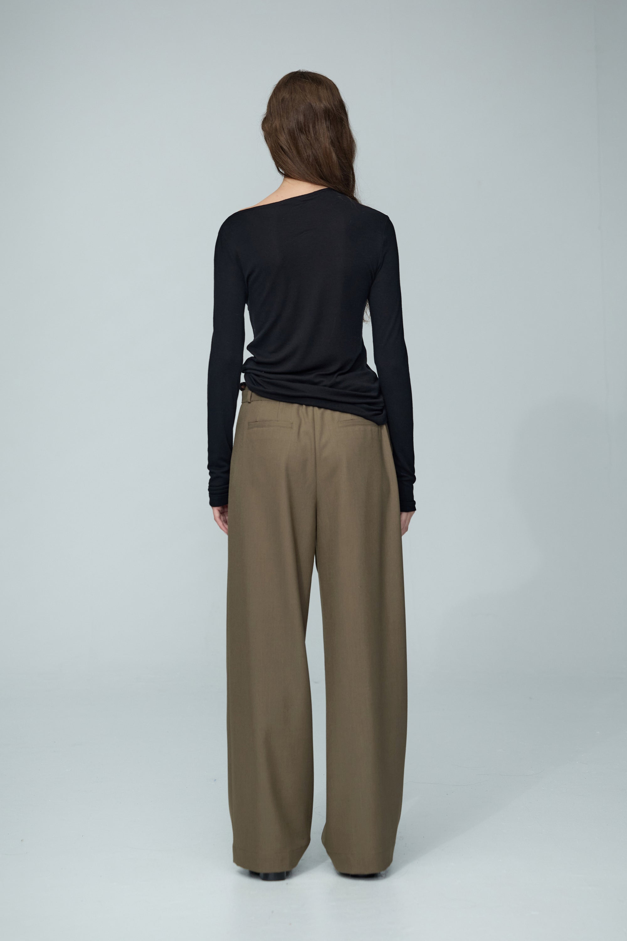 不規則領片車褶收腰襯衫-白