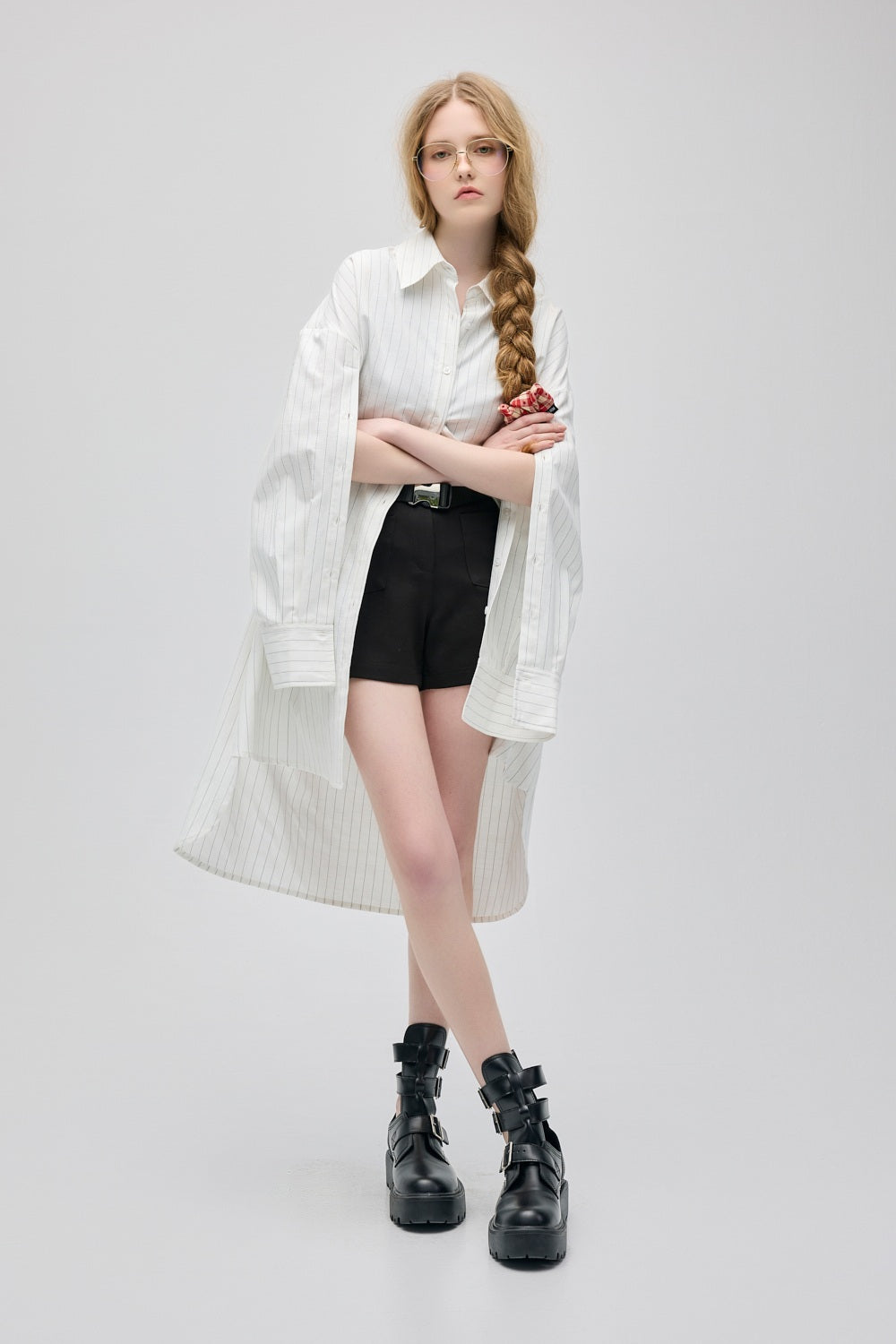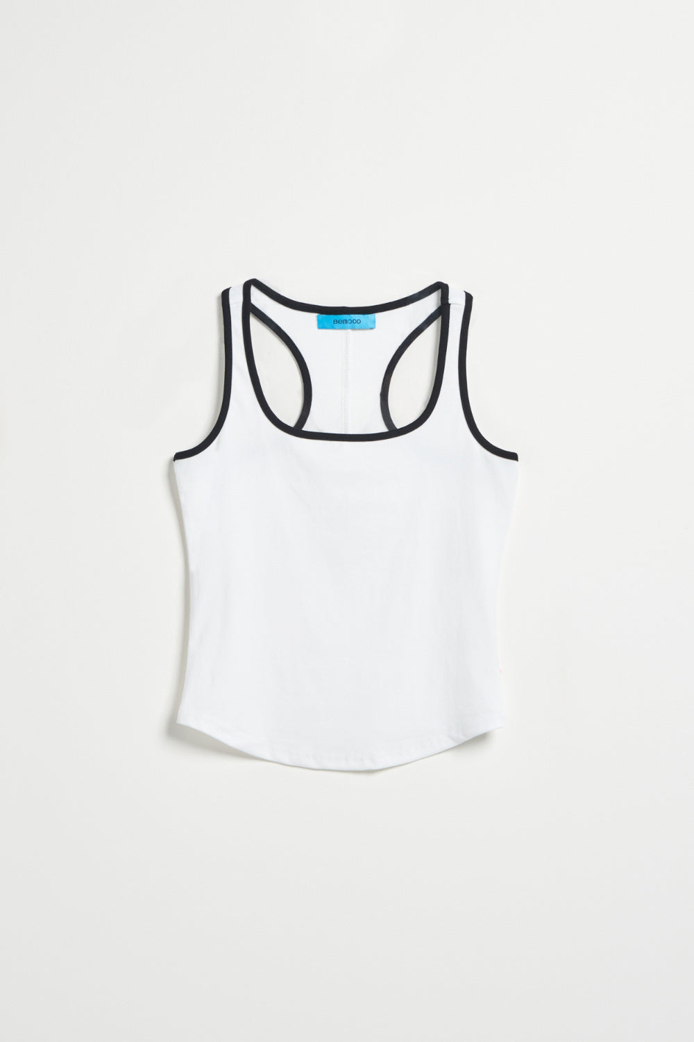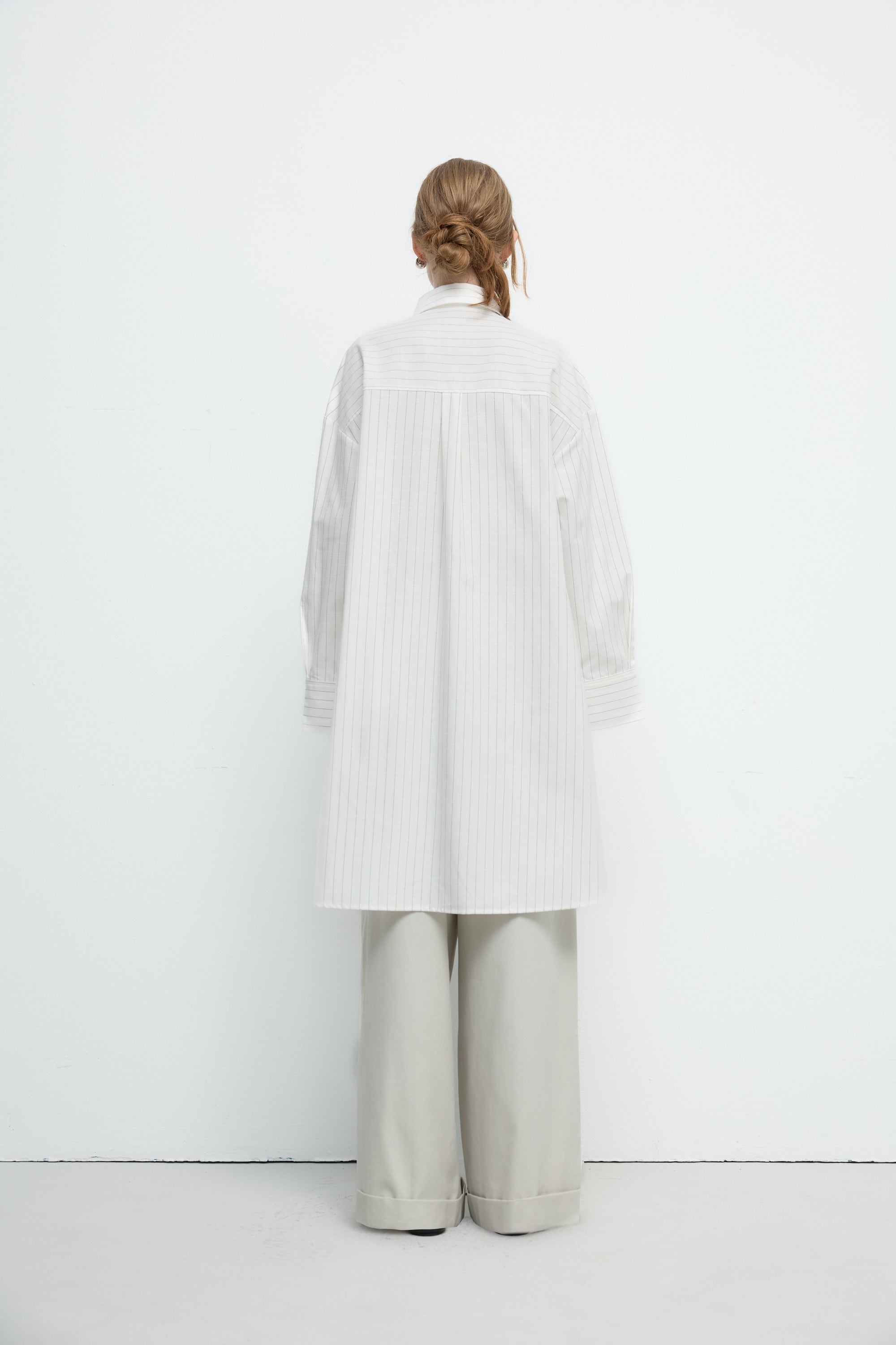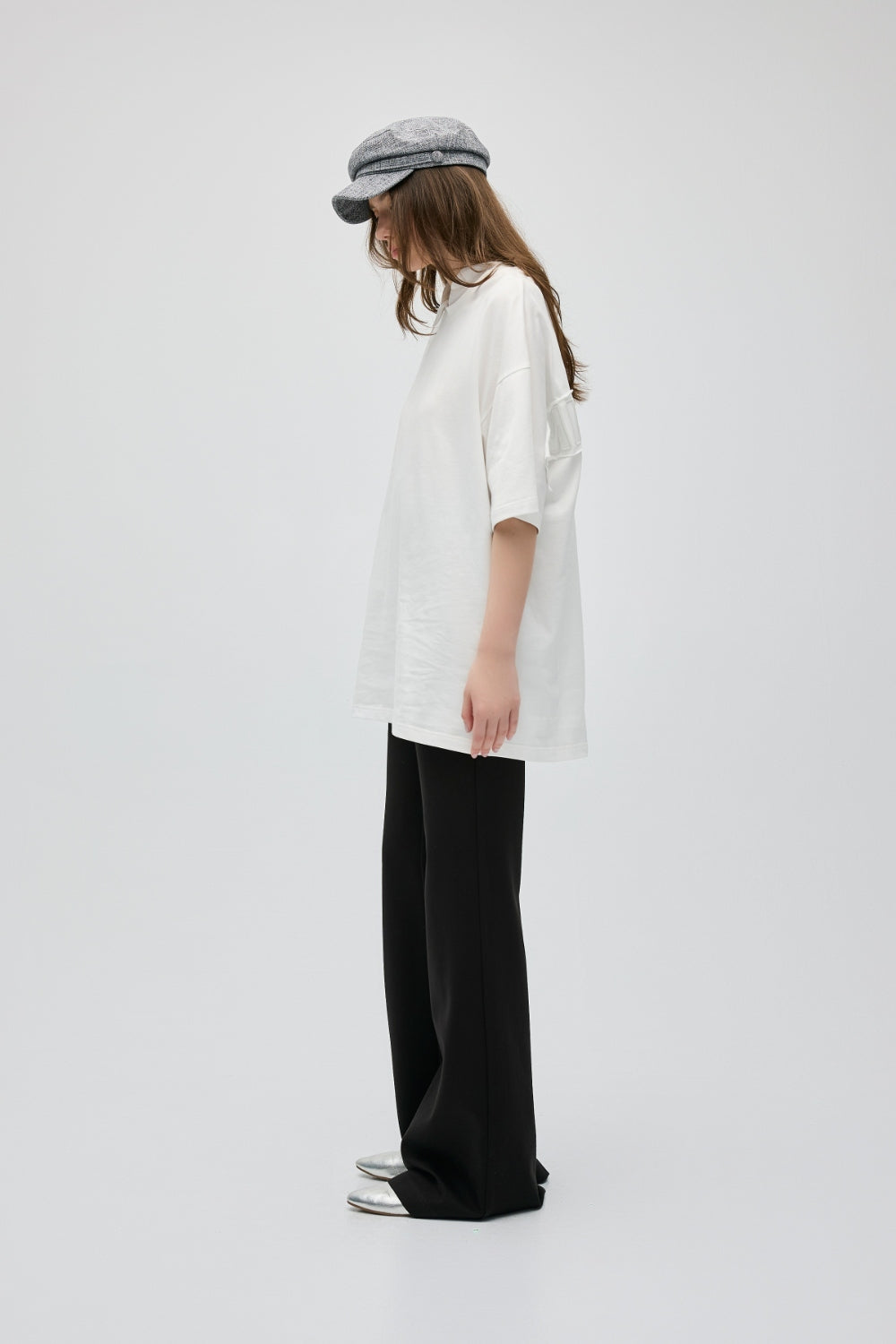 UNISEX寬長版笑臉縫珠TEE上衣-白