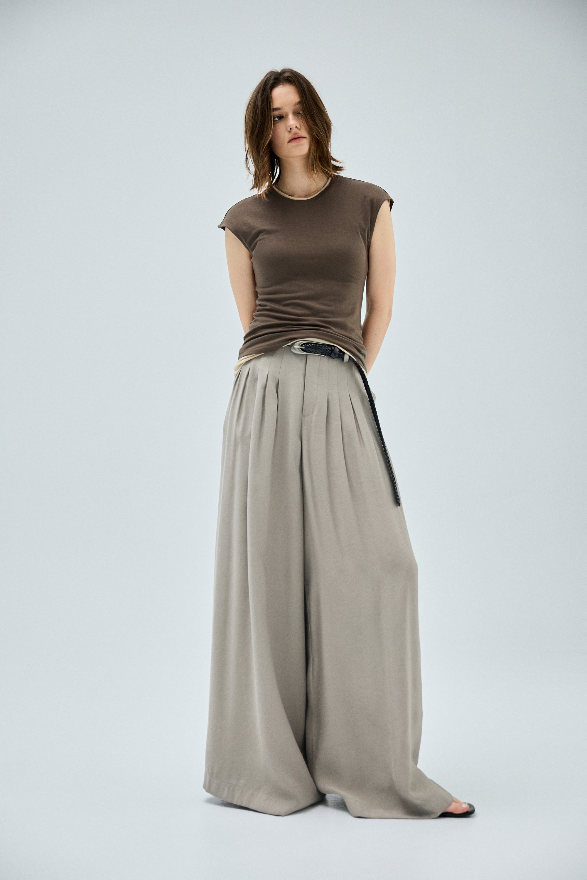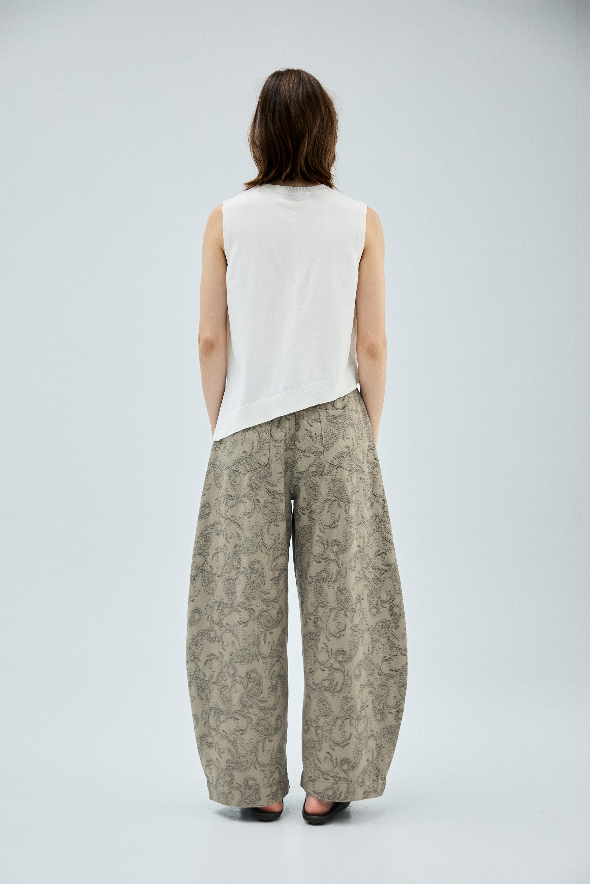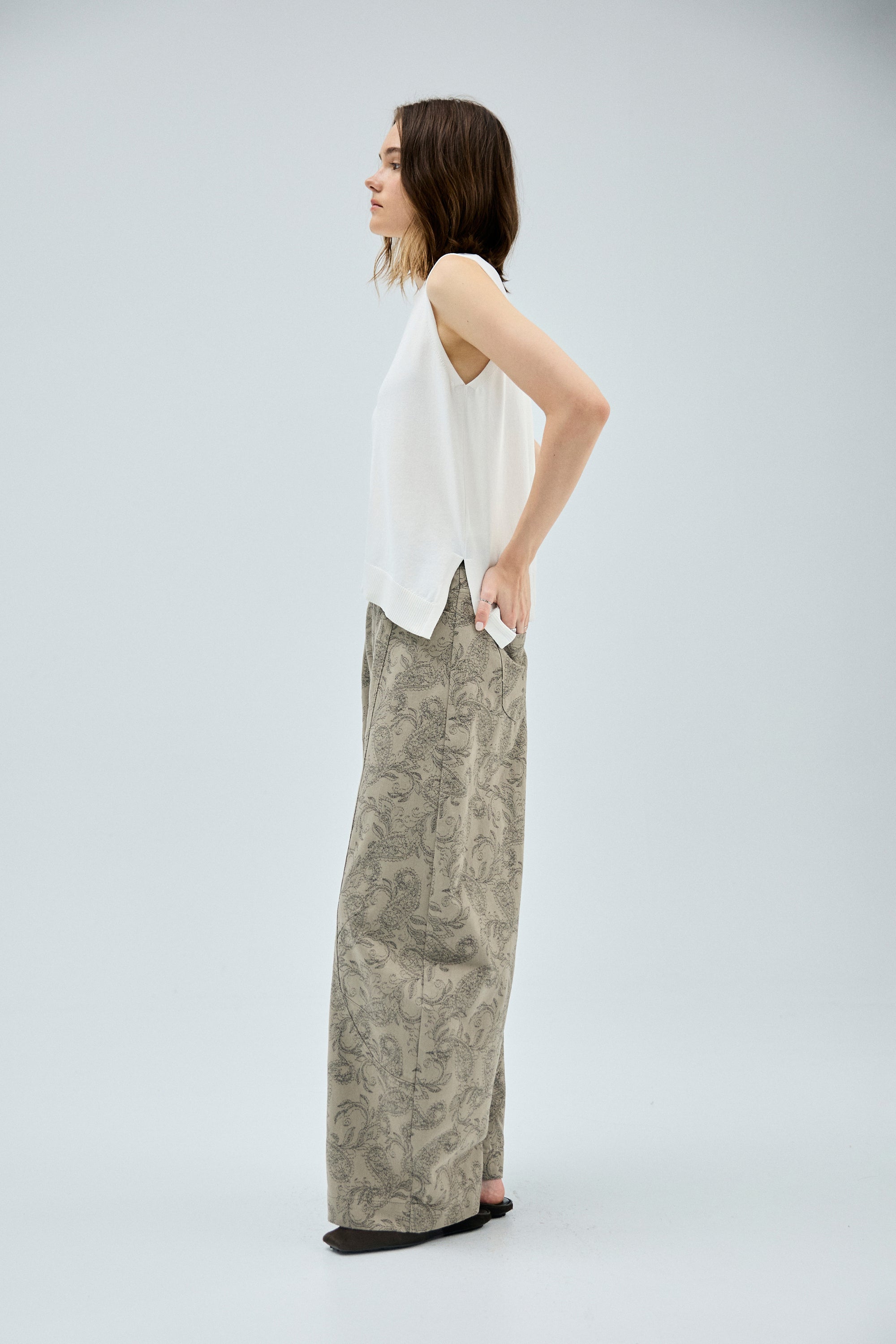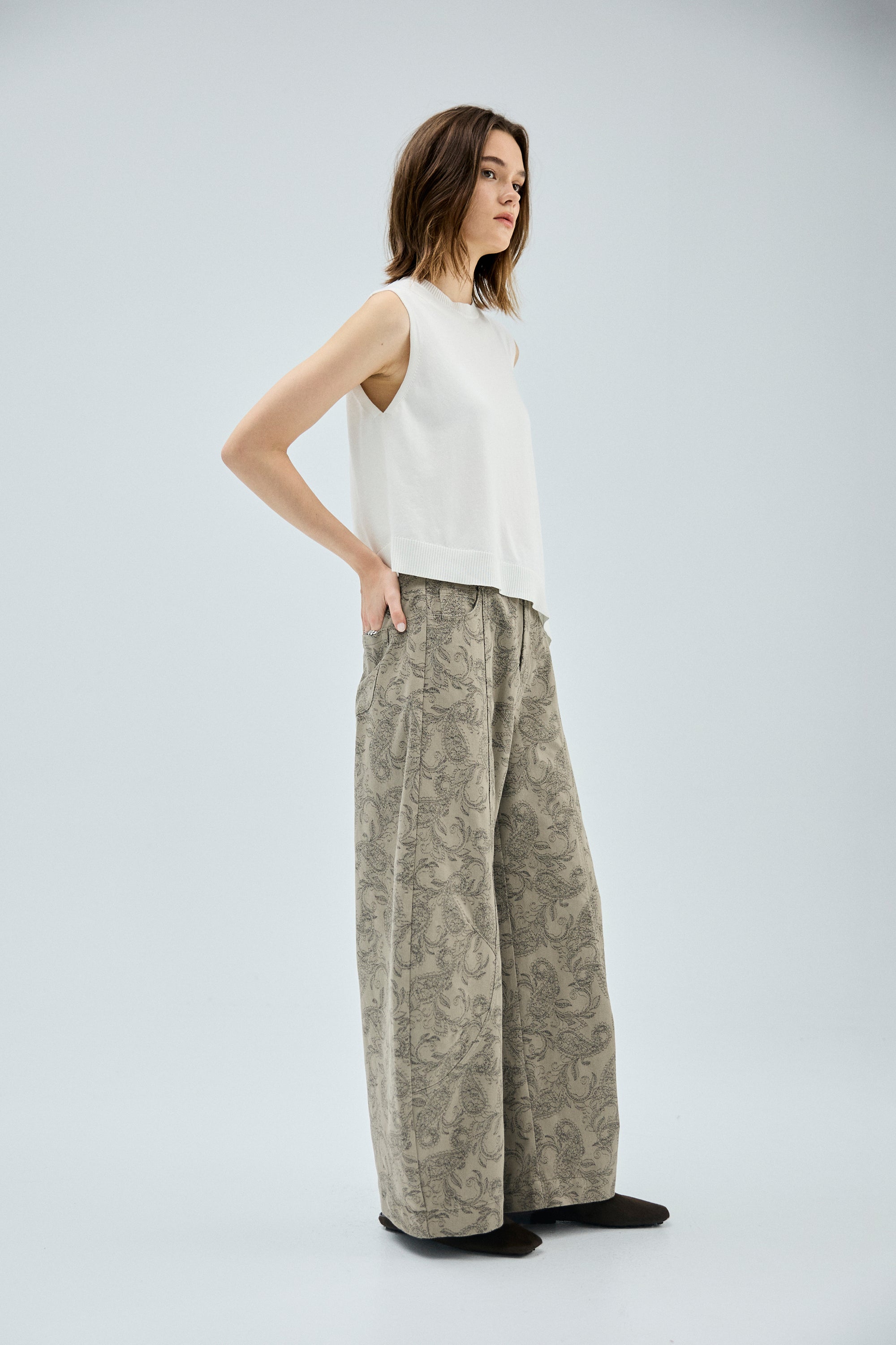 親膚透氣羊毛混紡鏤空挖背無袖上衣-卡其