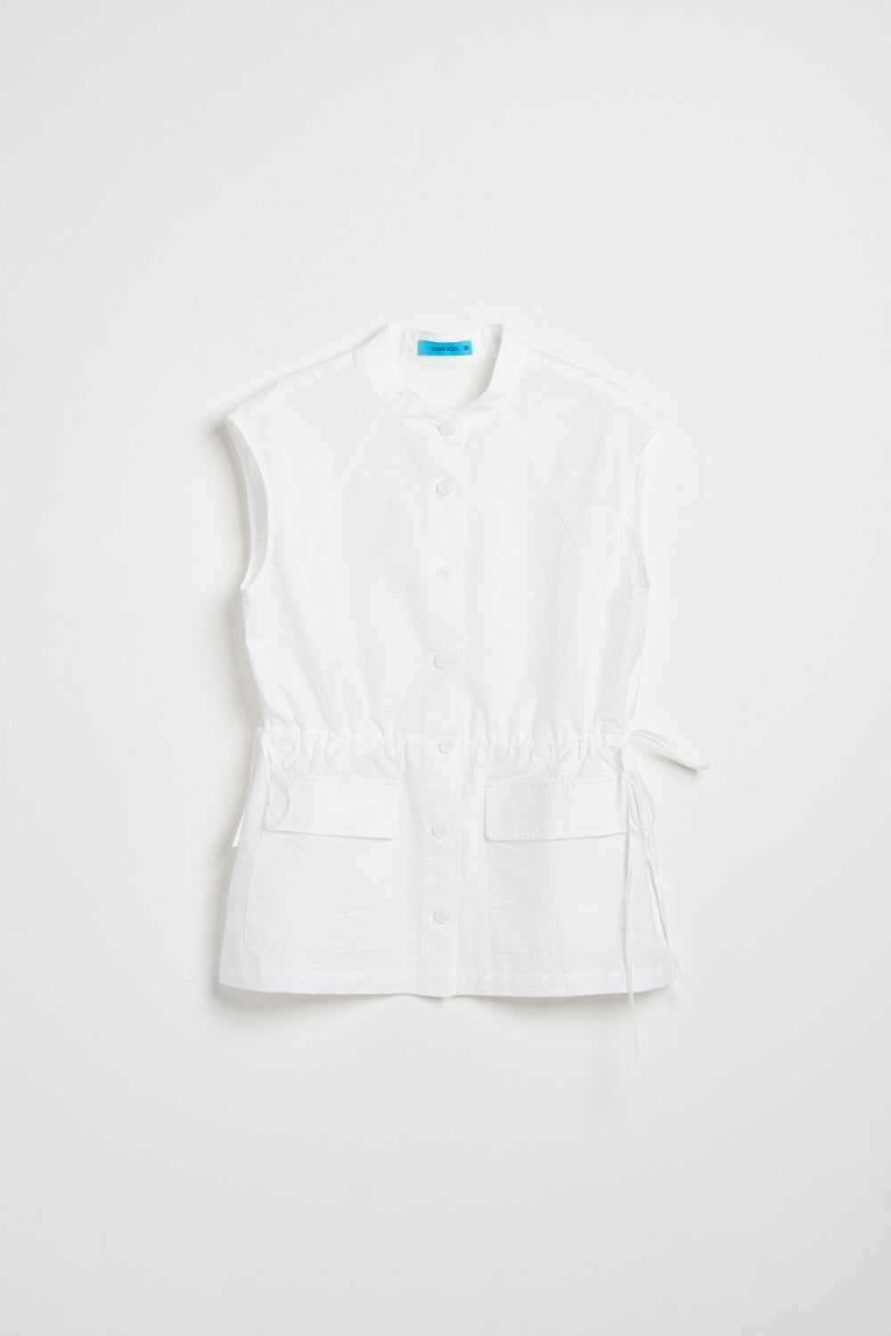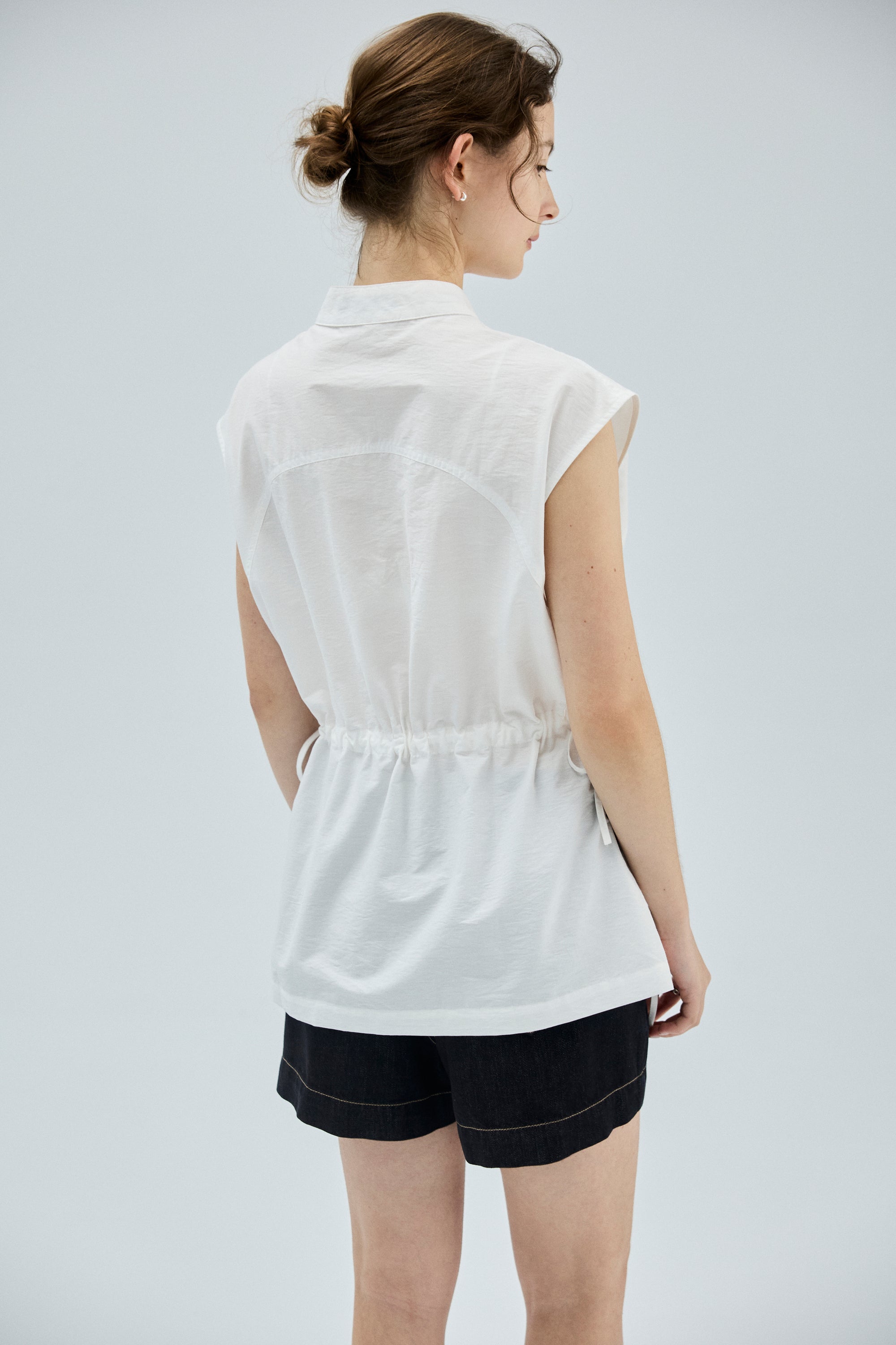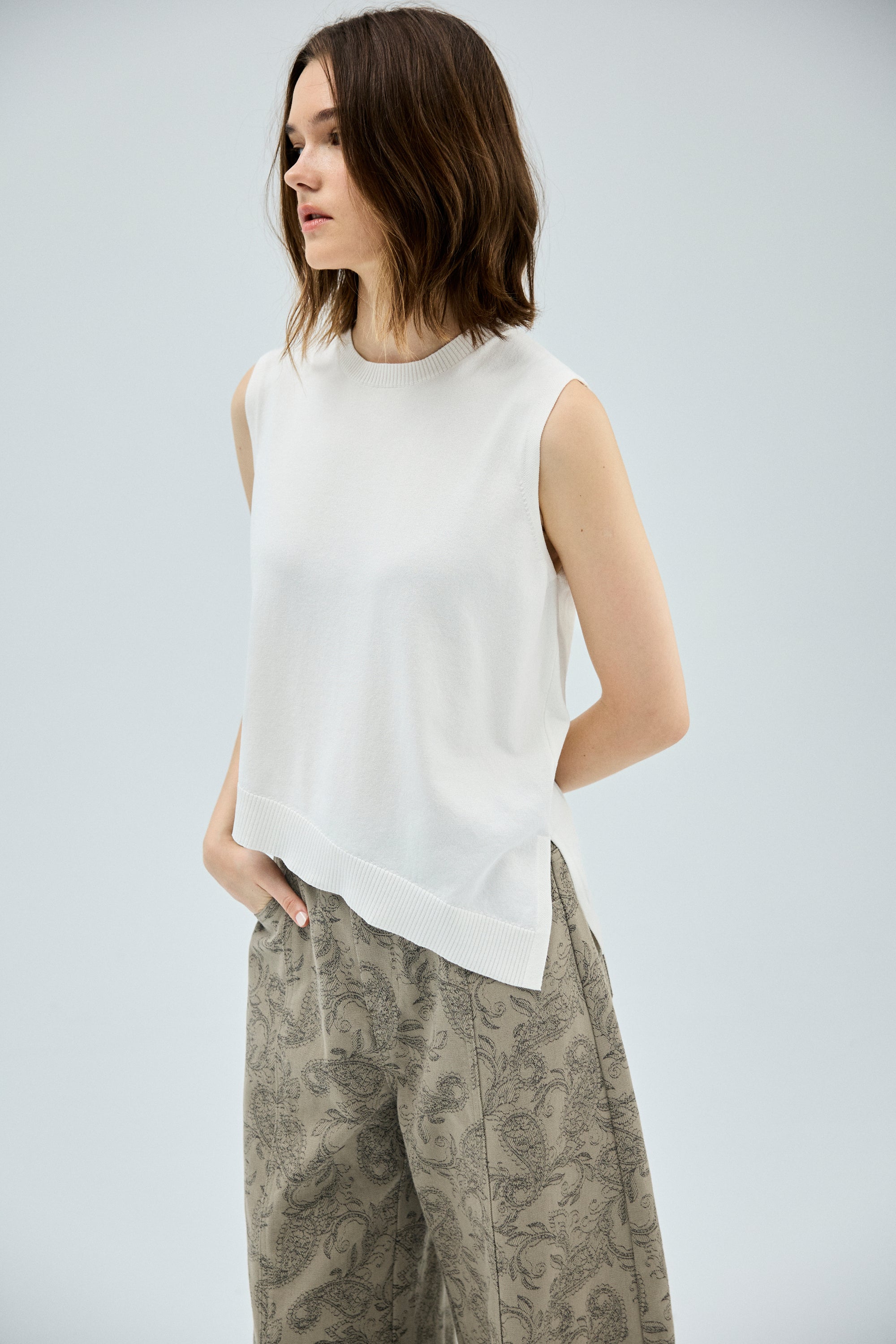 親膚透氣羊毛混紡鏤空挖背無袖上衣-白