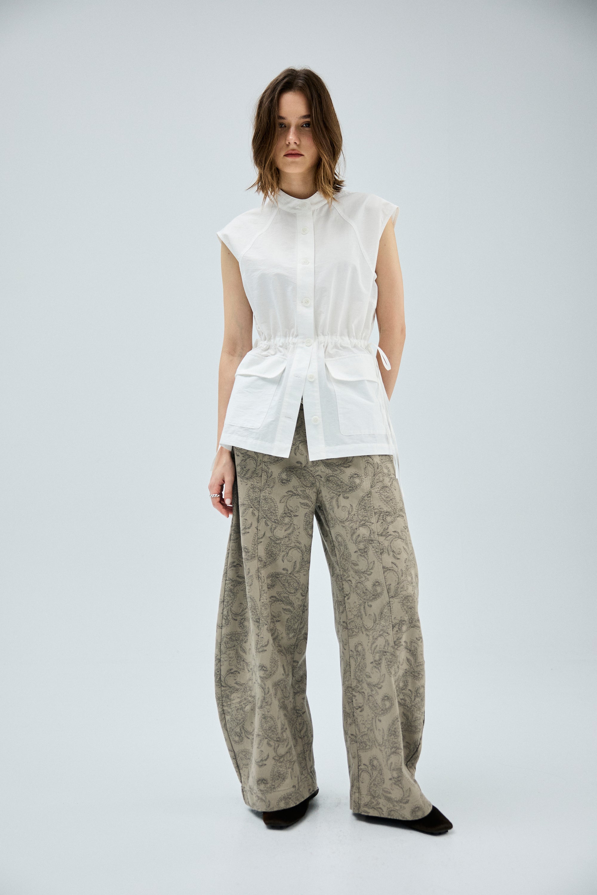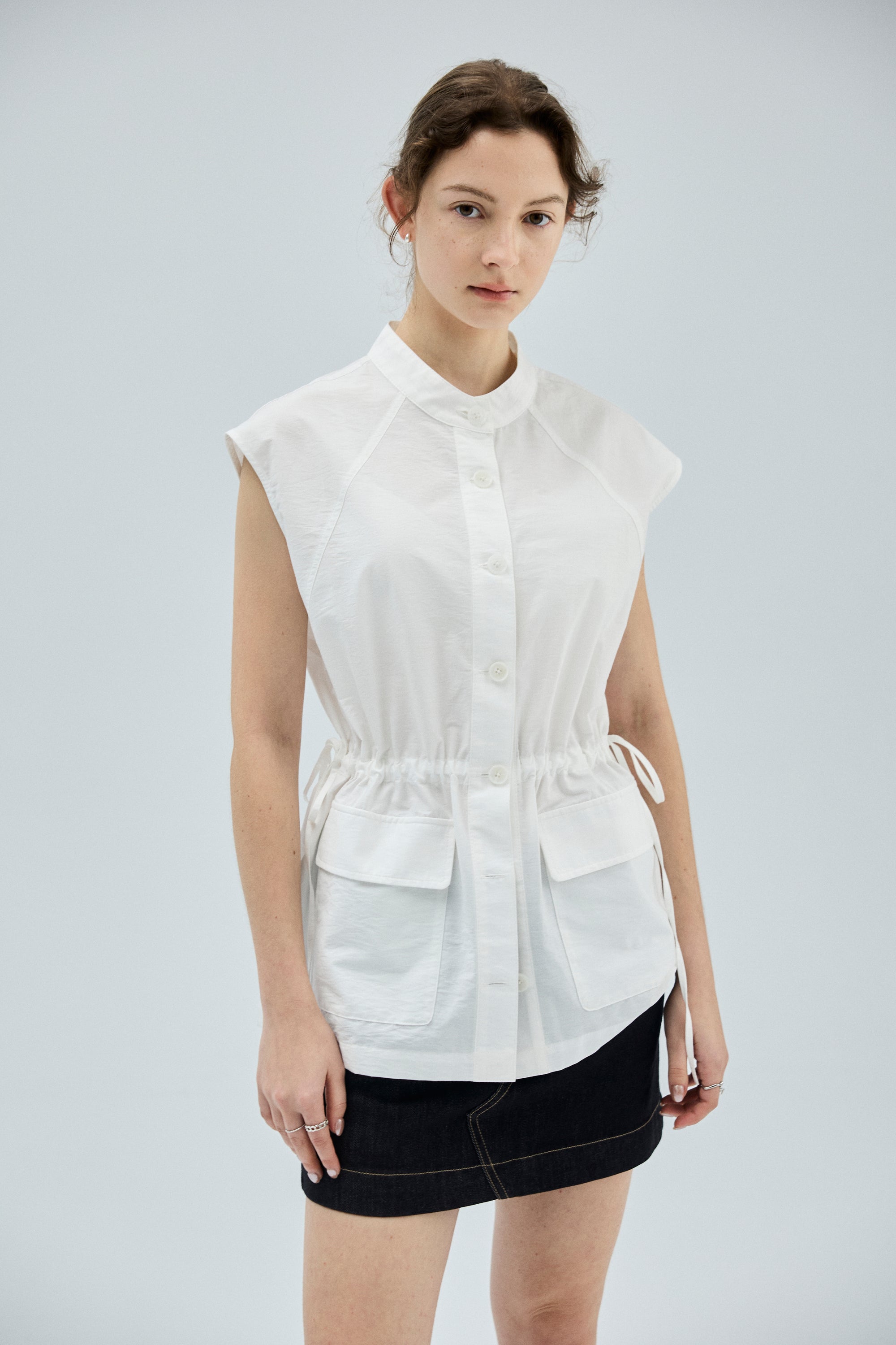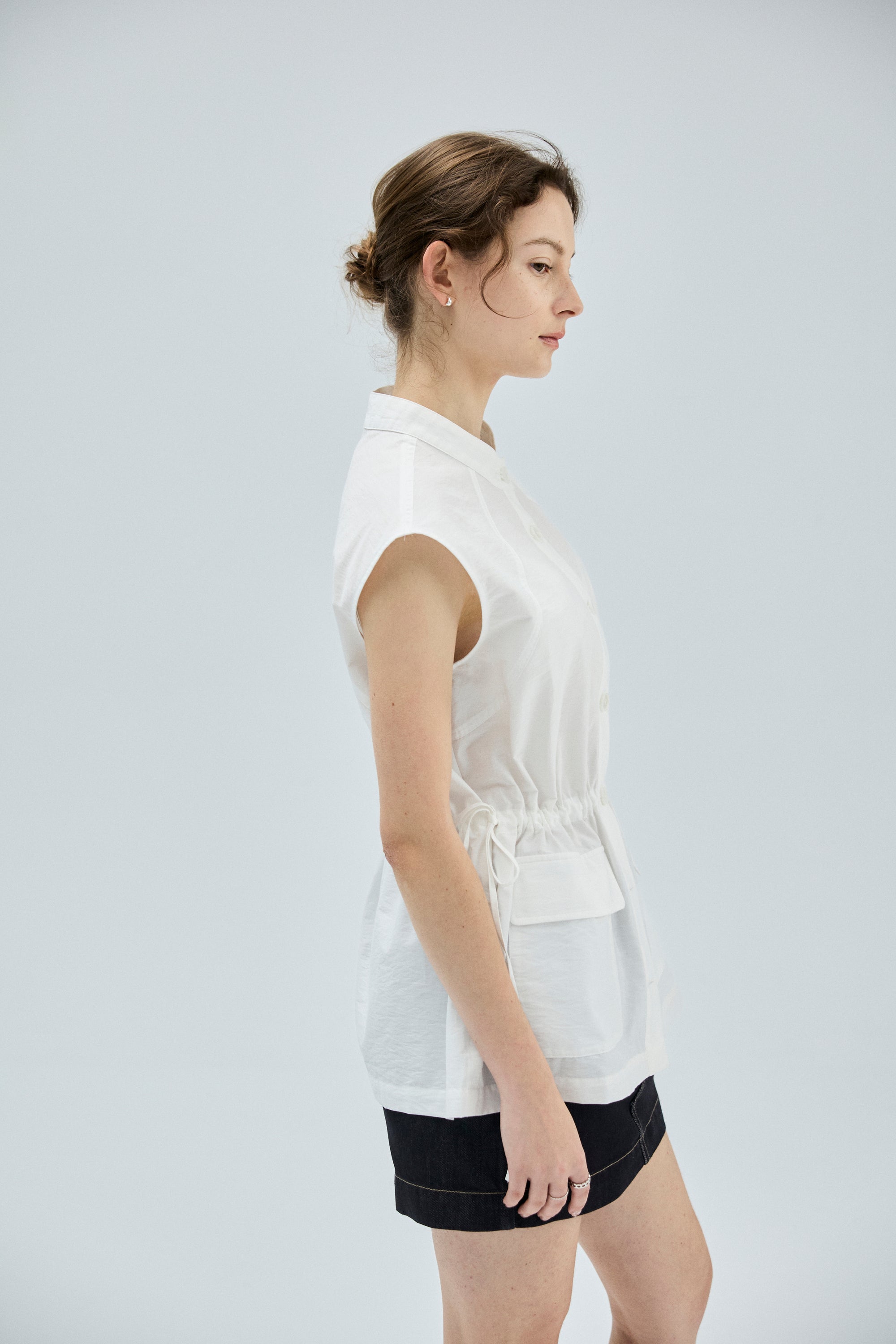 親膚透氣羊毛混紡鏤空挖背無袖上衣-白