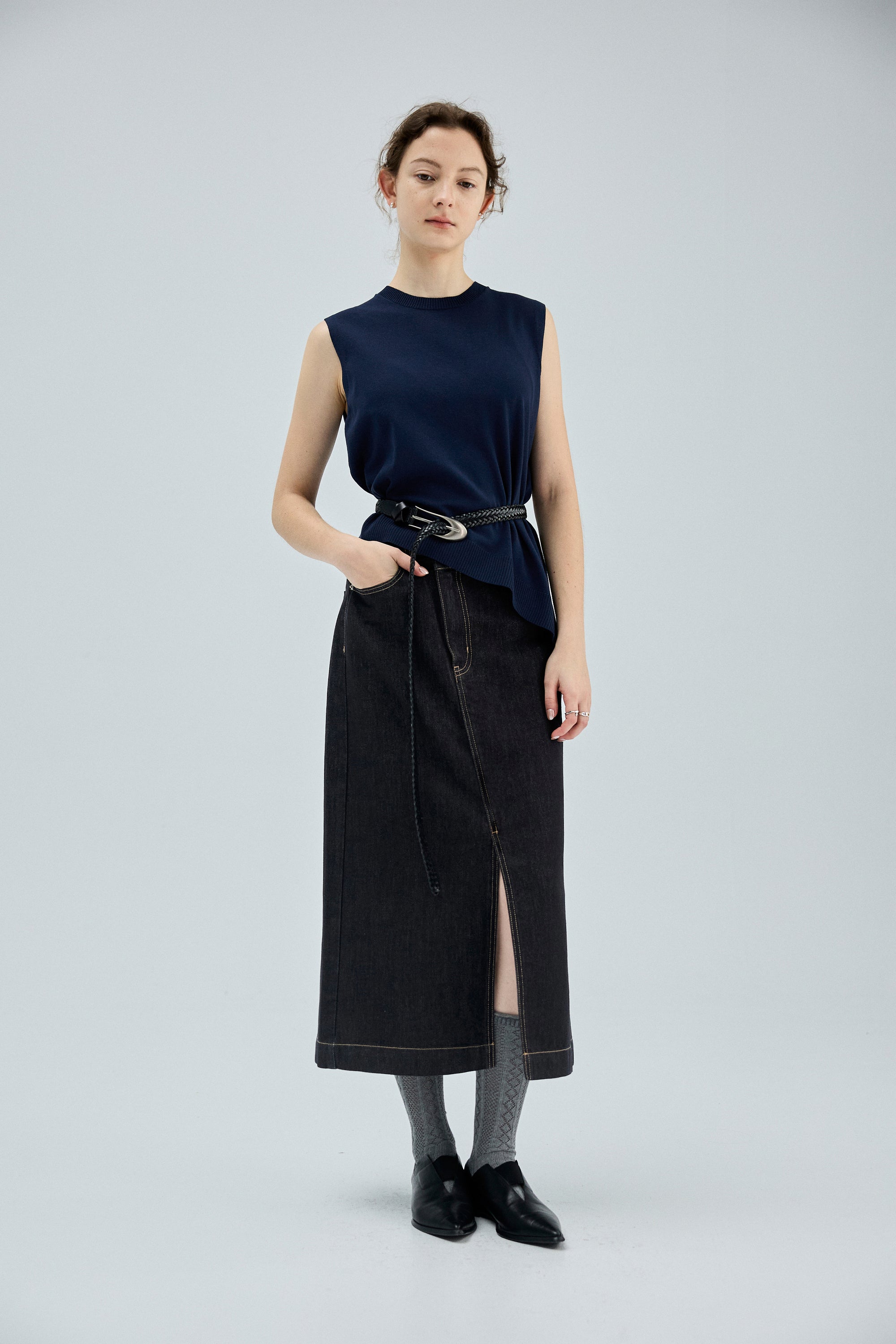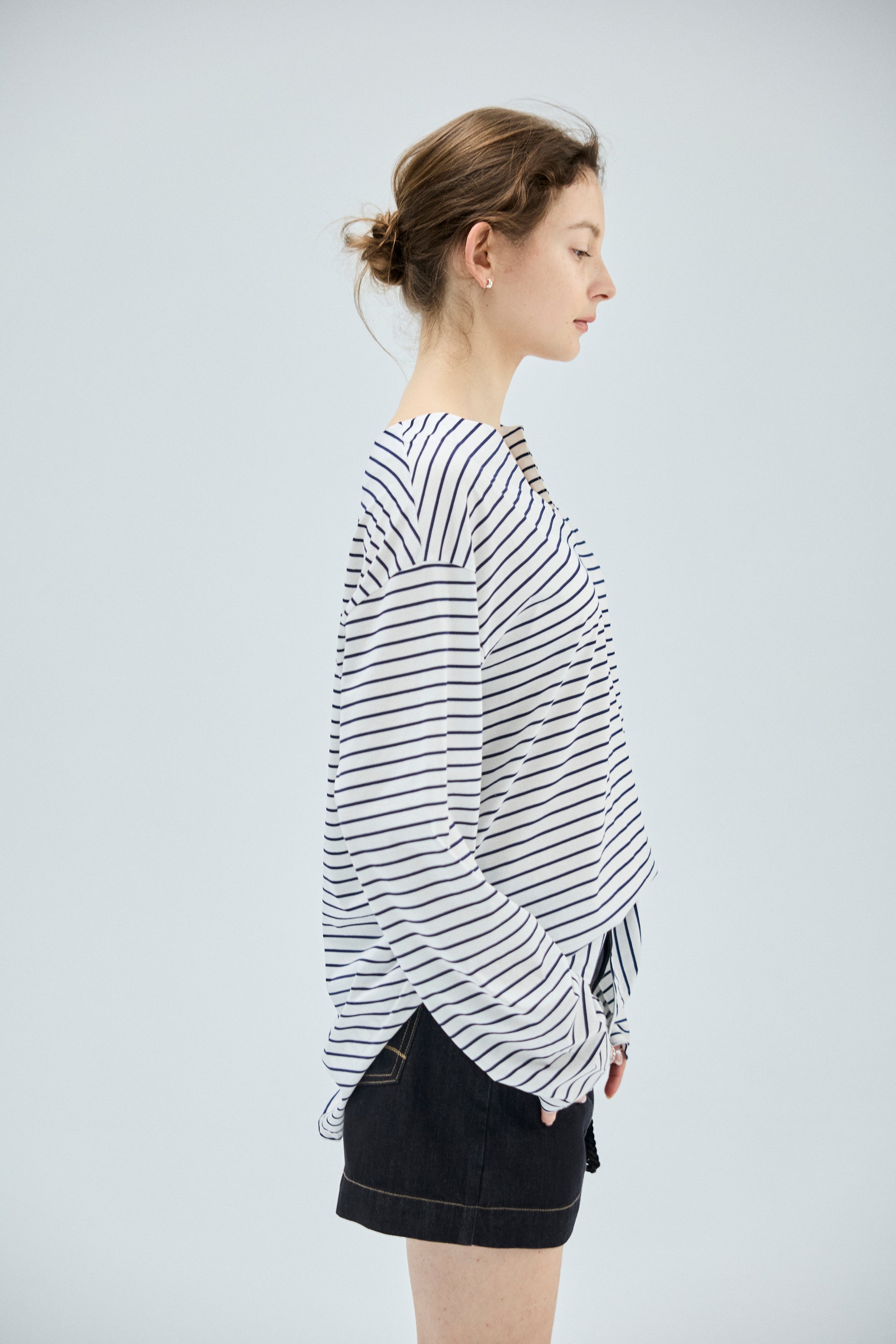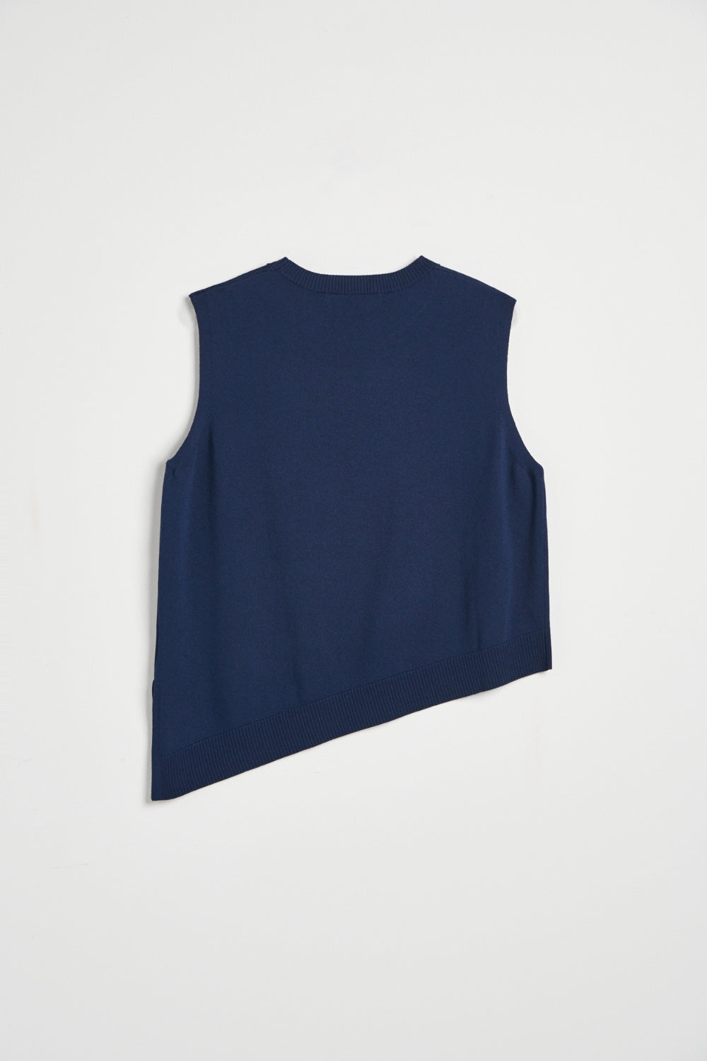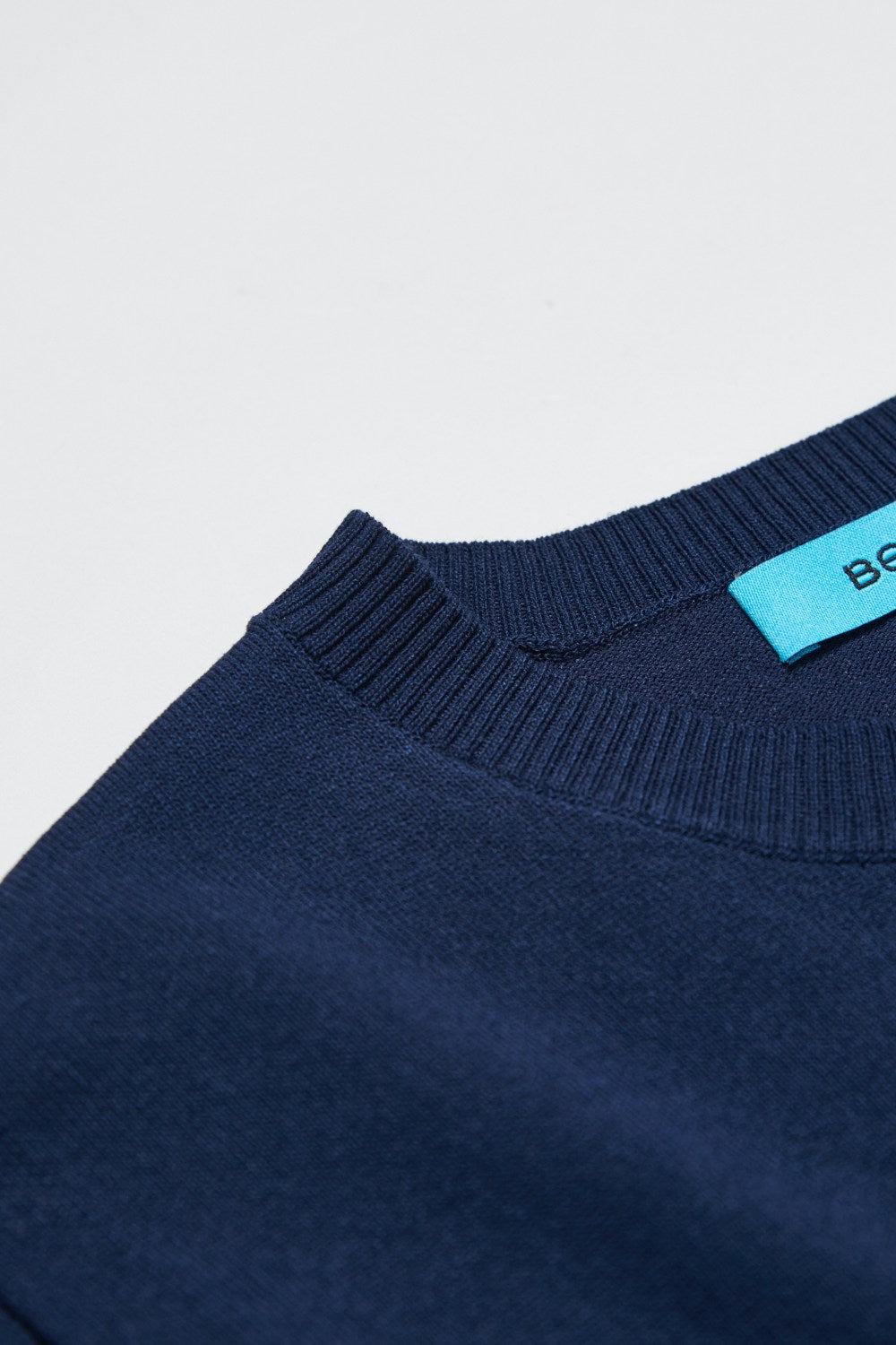 假兩件柔霧萊賽爾針織長袖上衣-藏青