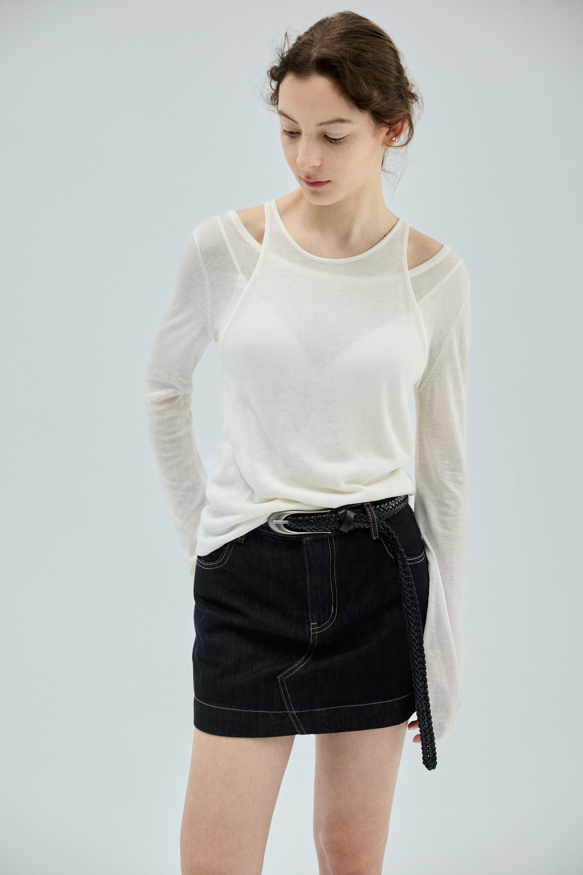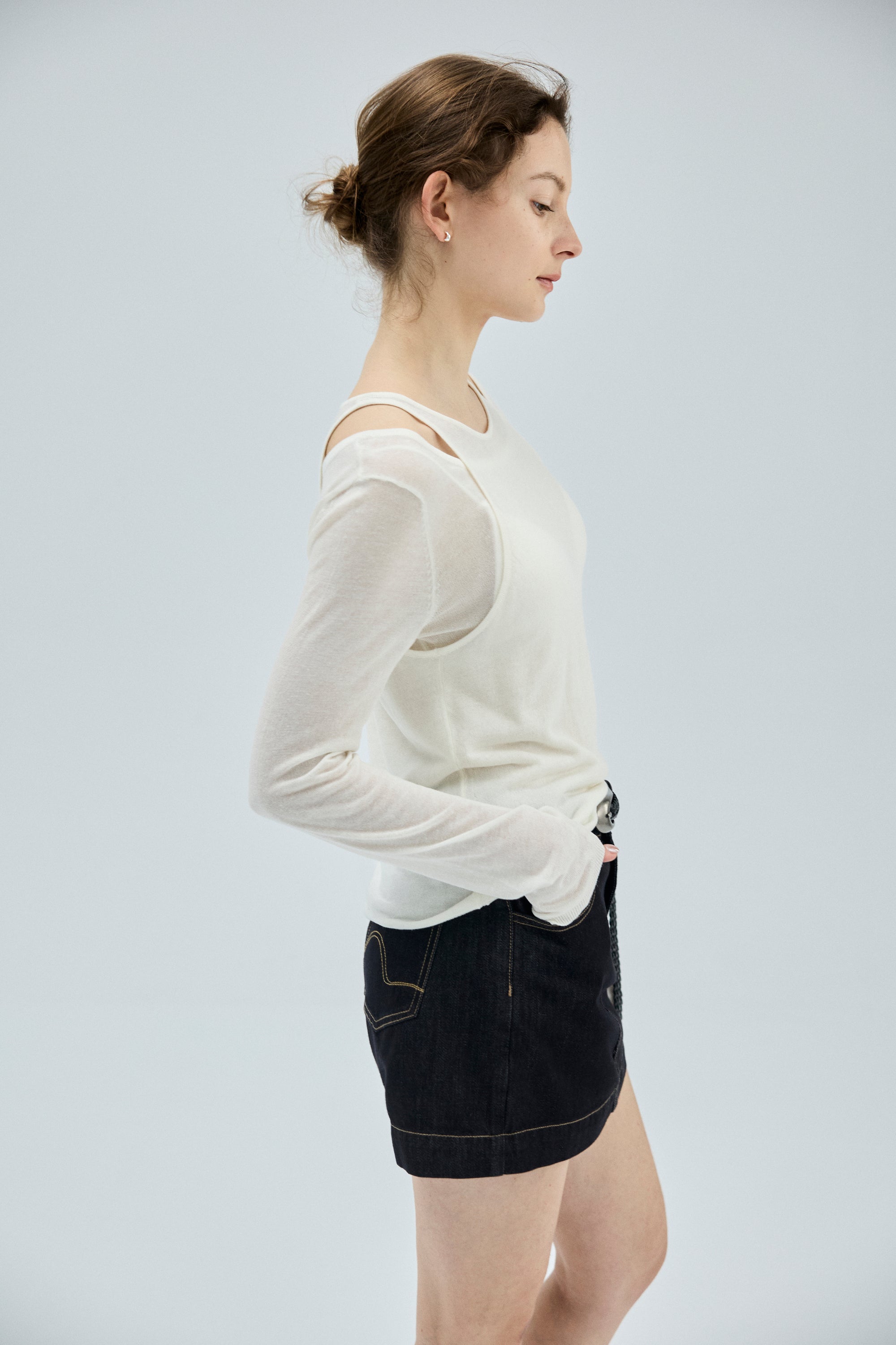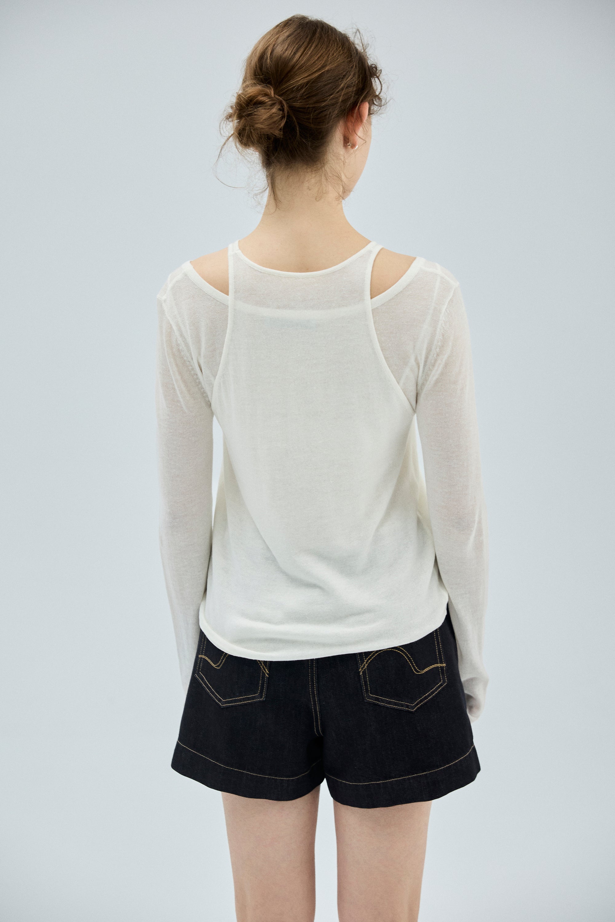 假兩件柔霧萊賽爾針織長袖上衣-白
