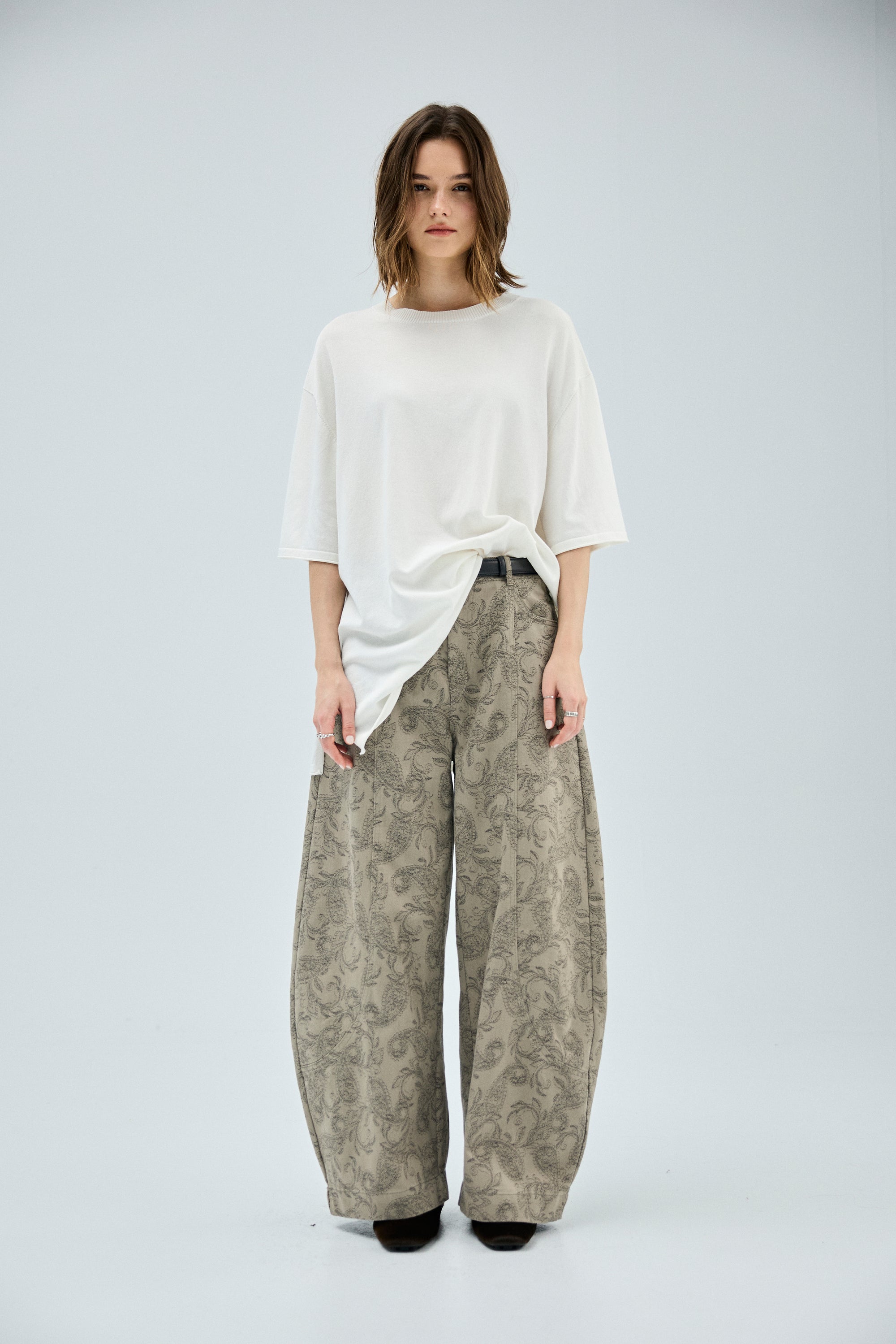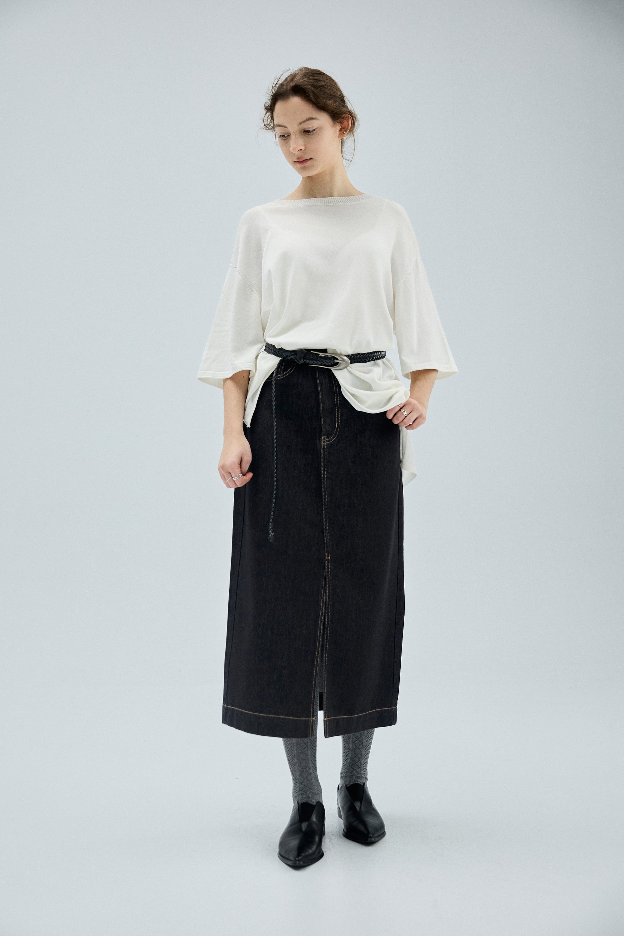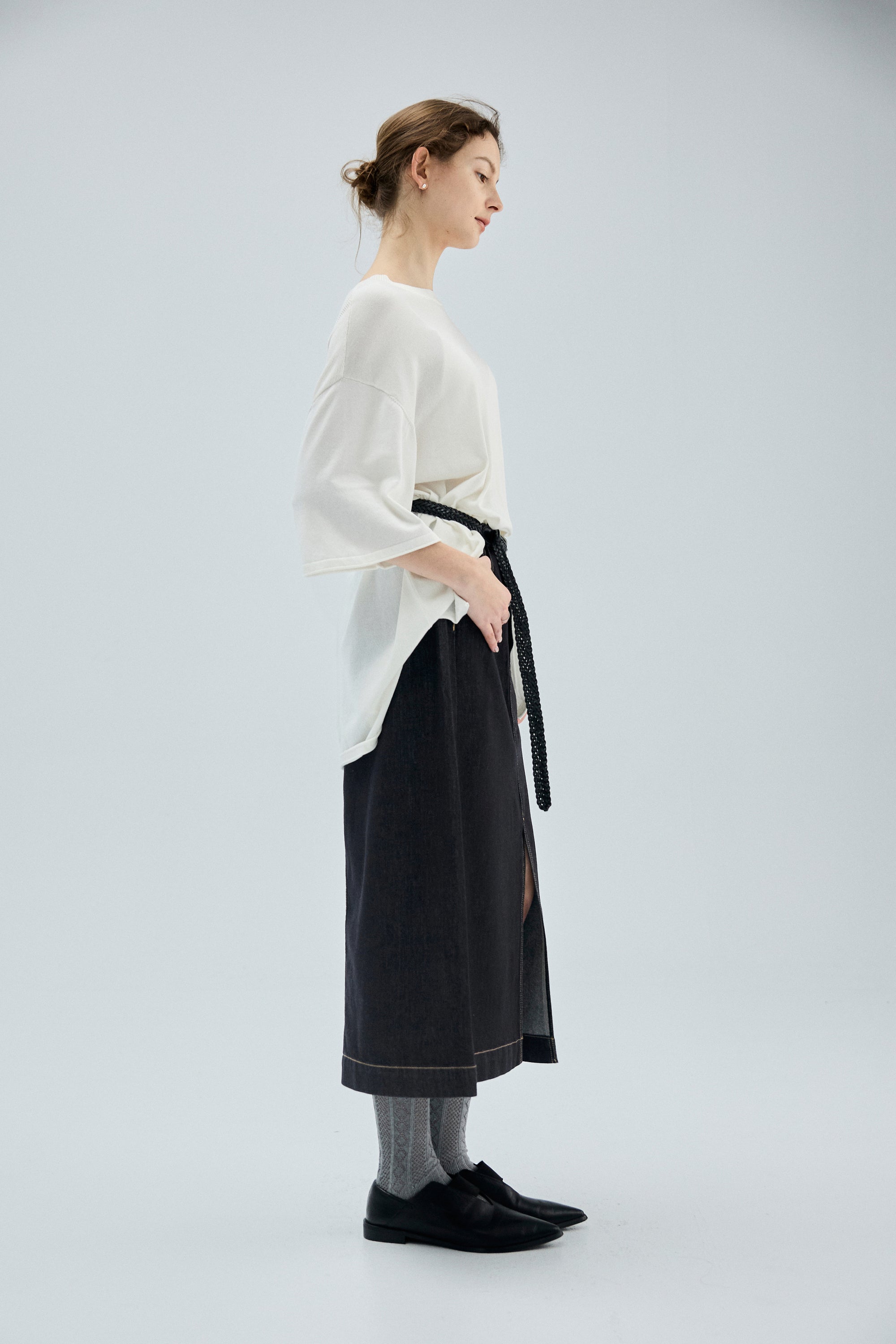 素面捲邊寬鬆長版針織五分袖上衣-白