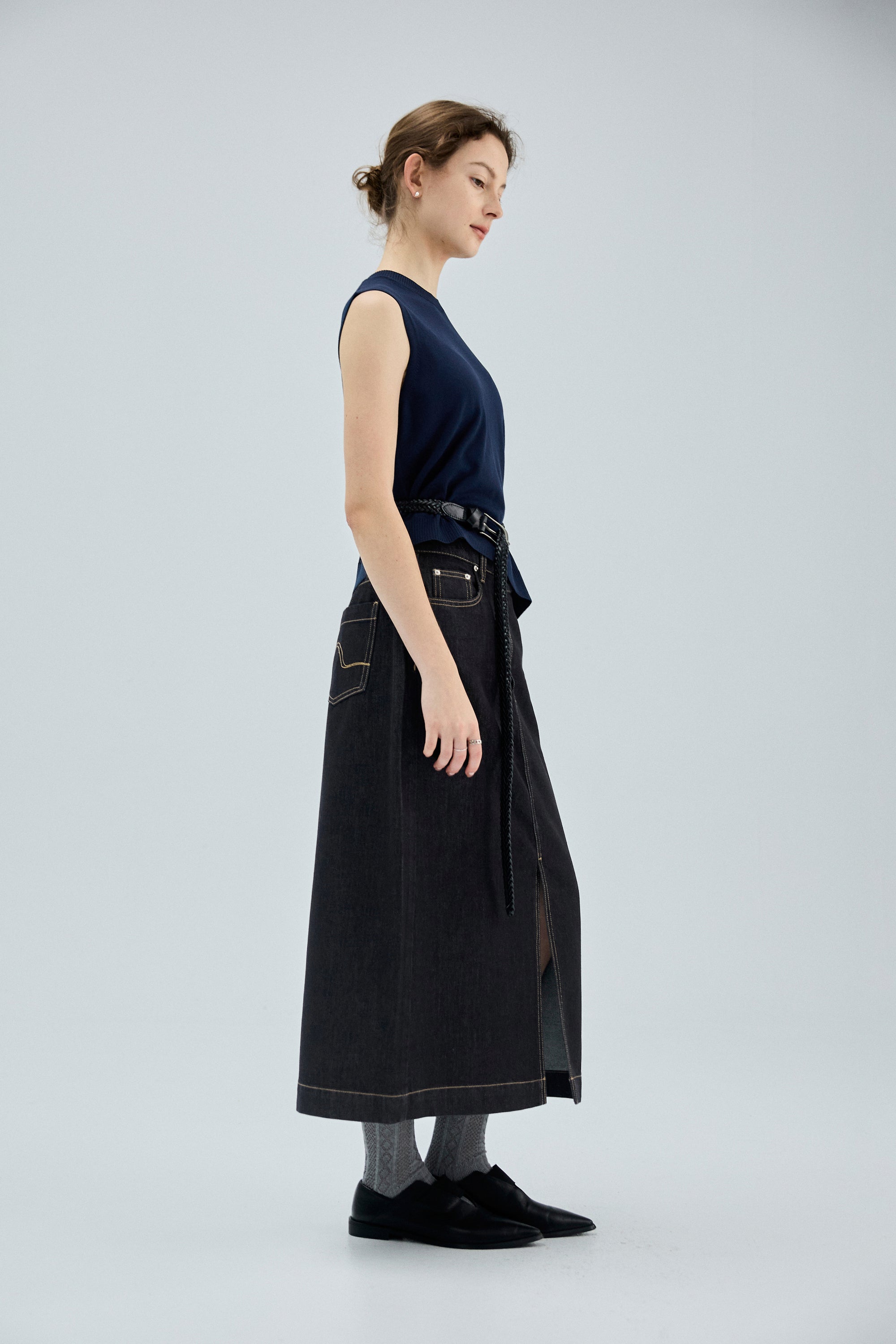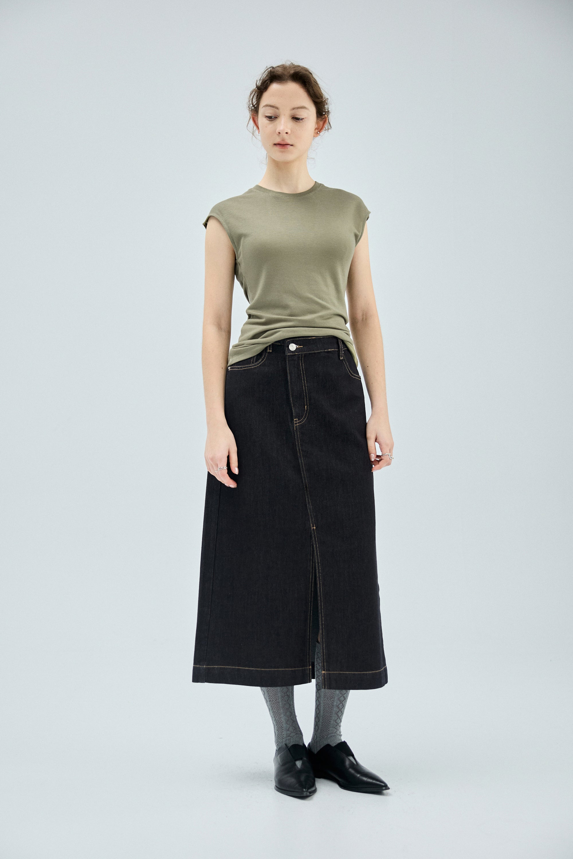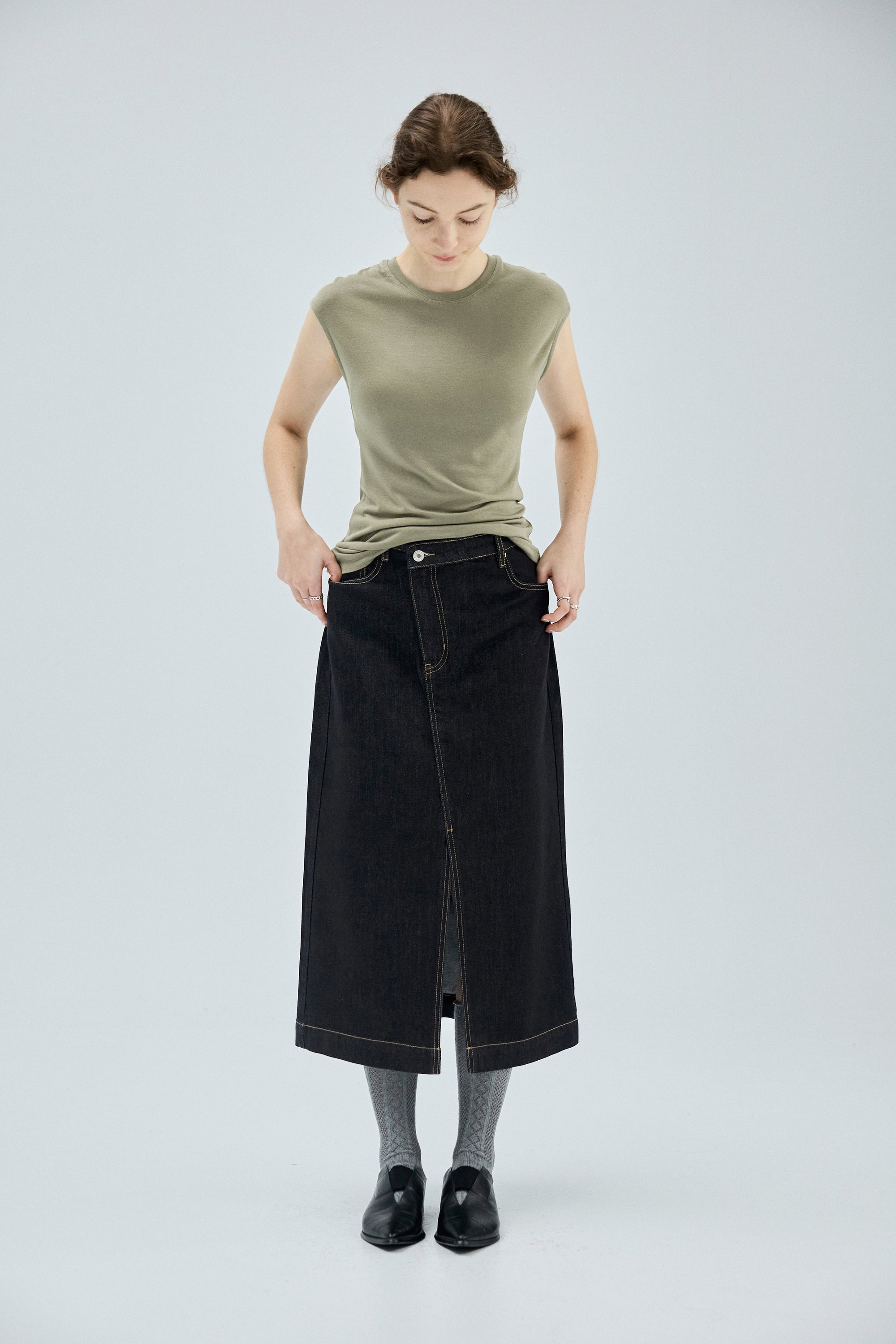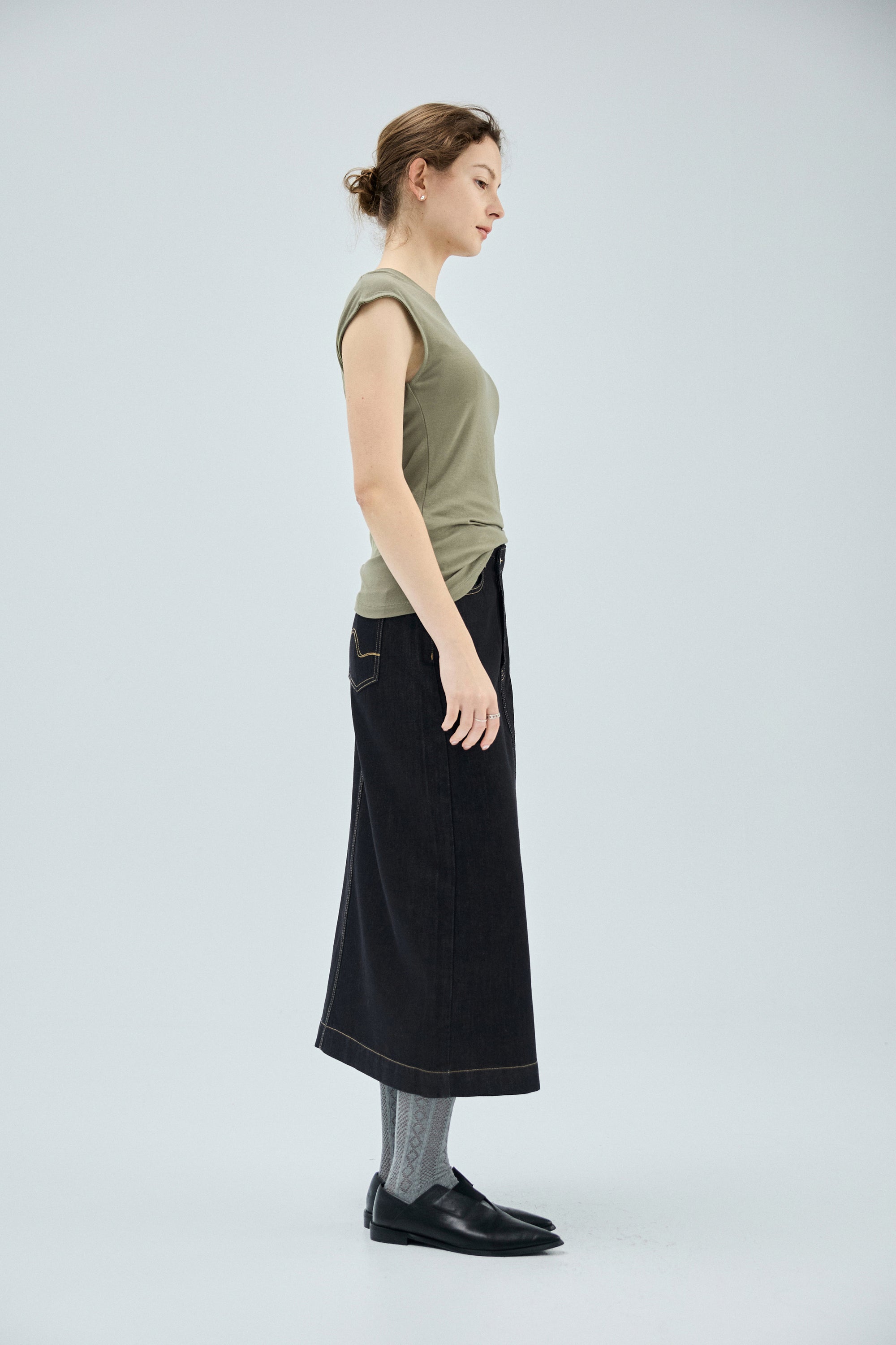 親膚透氣羊毛混紡鏤空挖背無袖上衣-黑