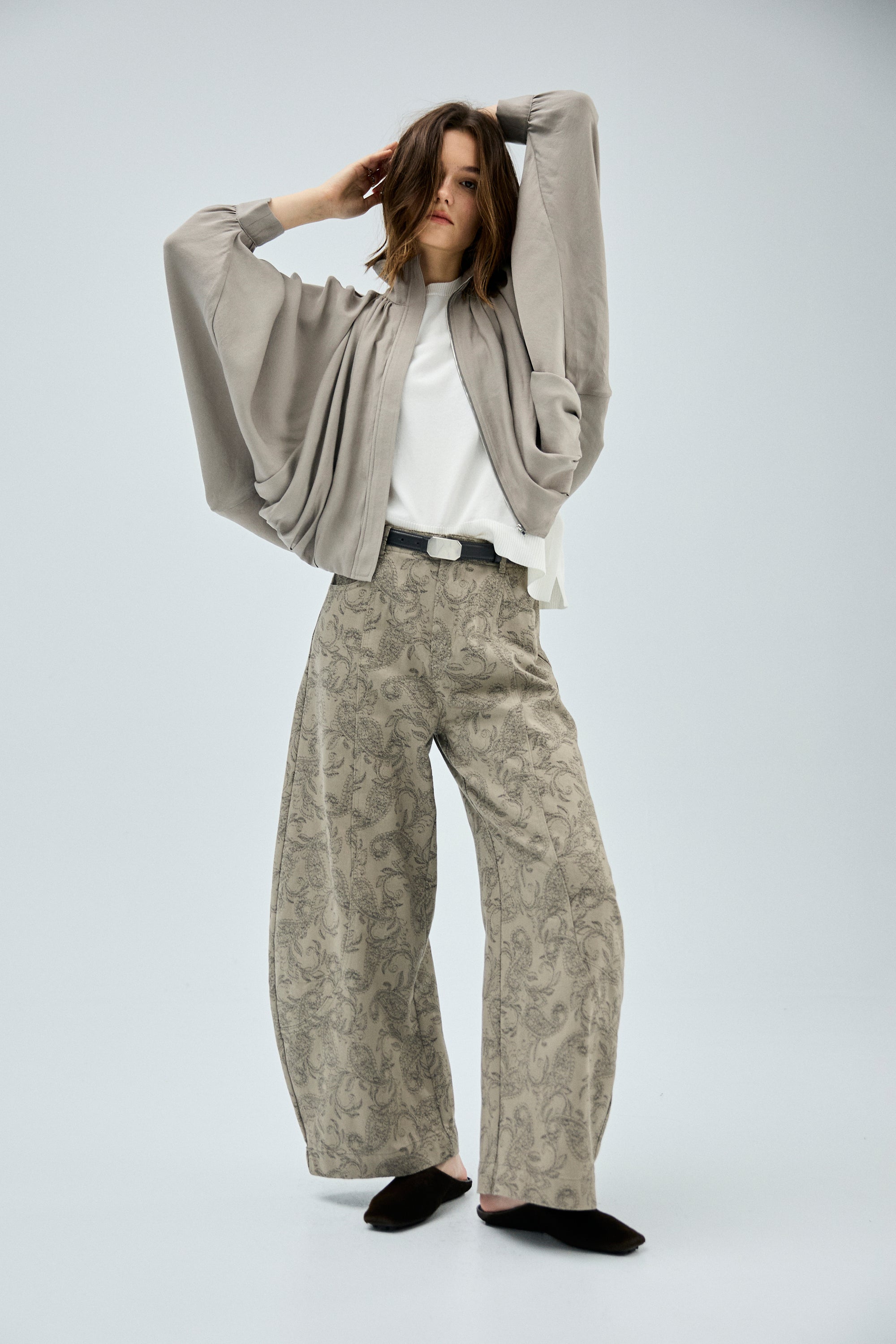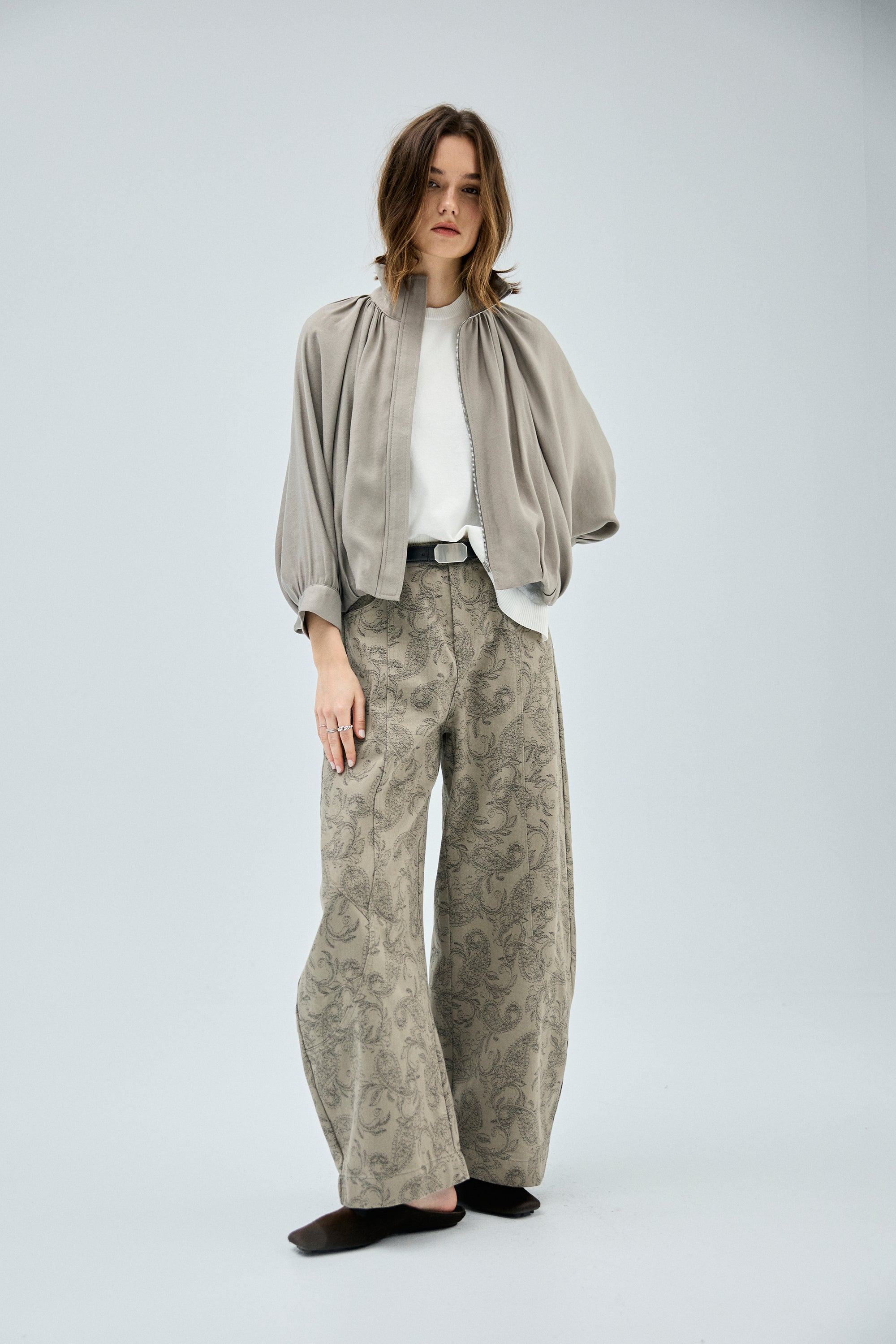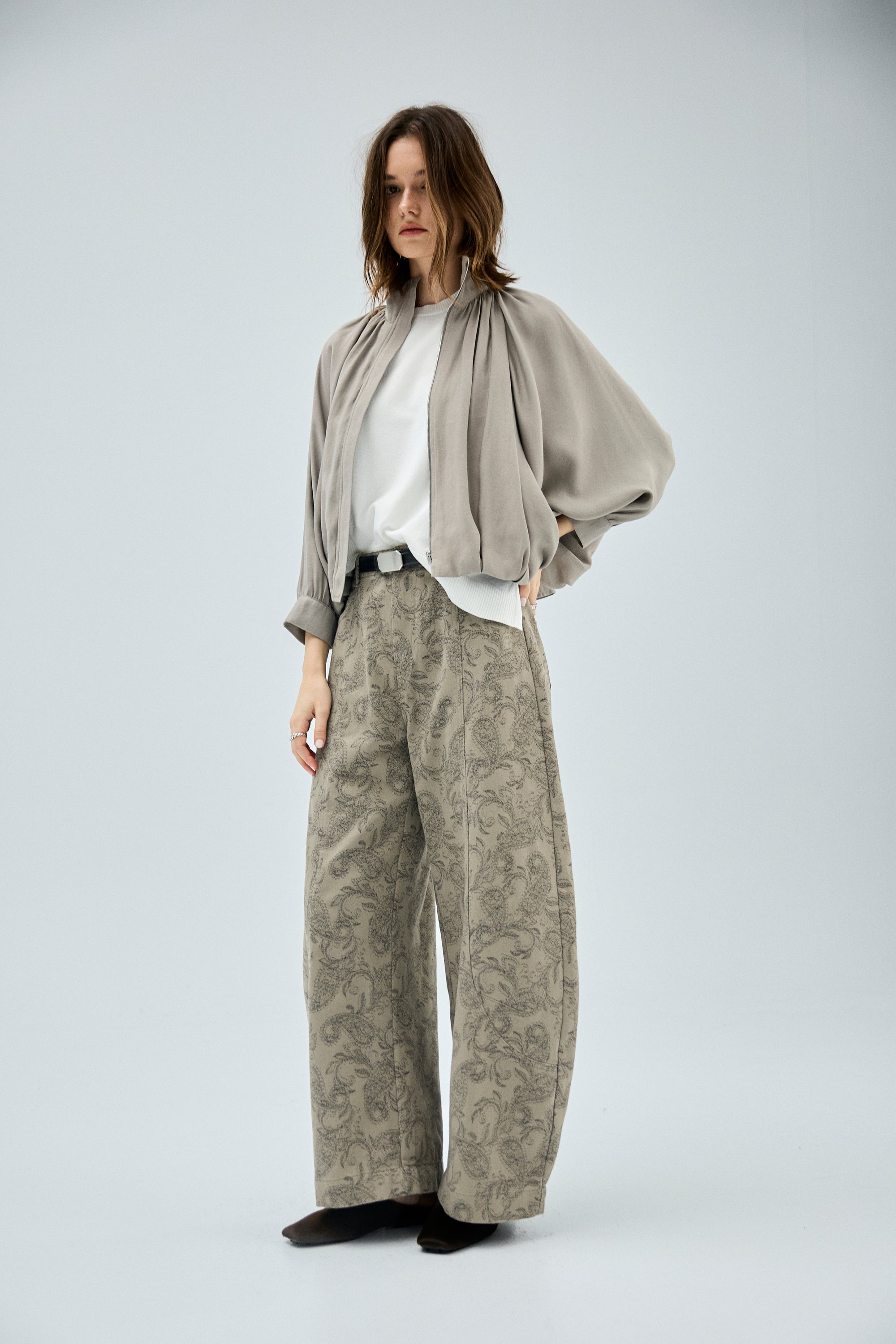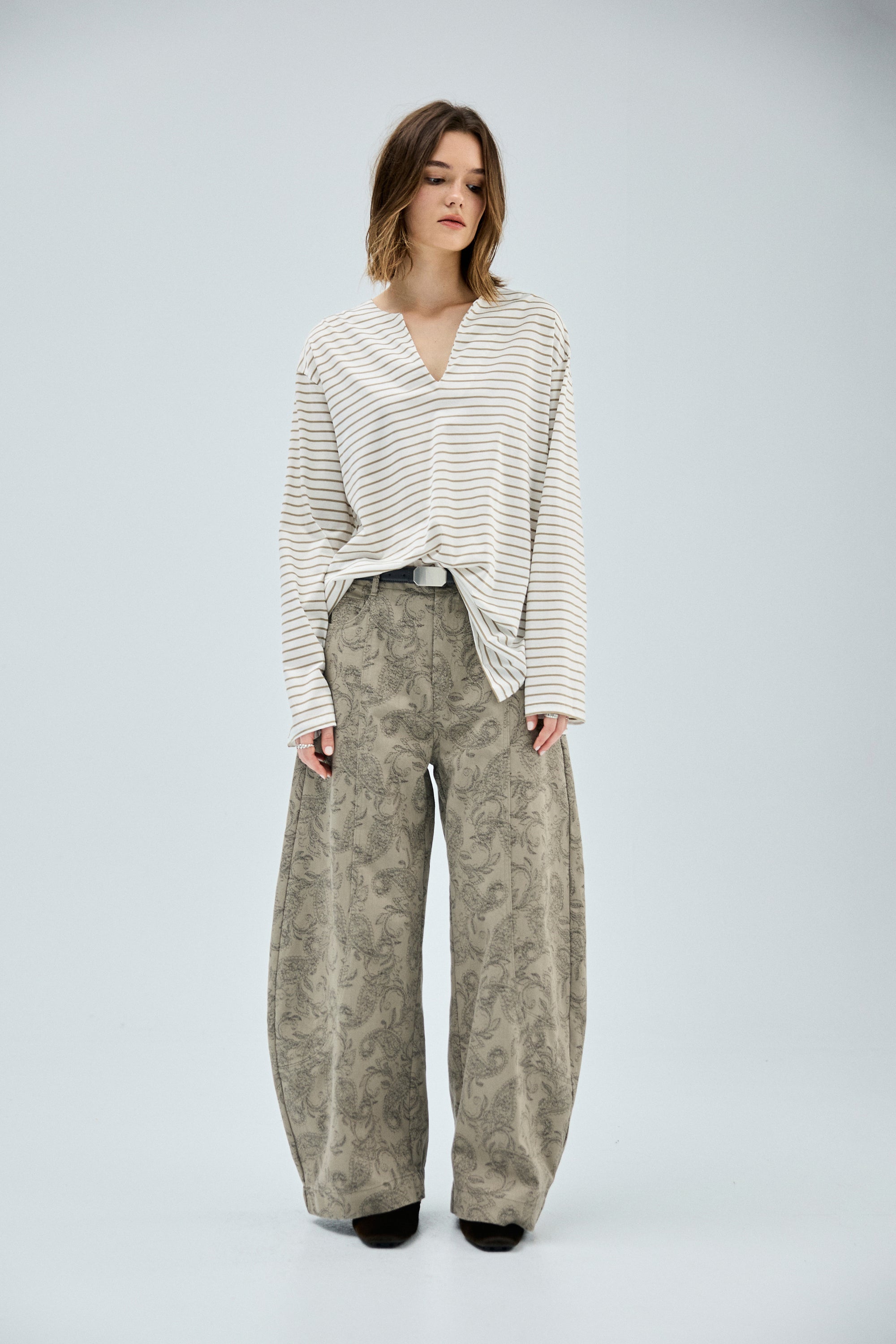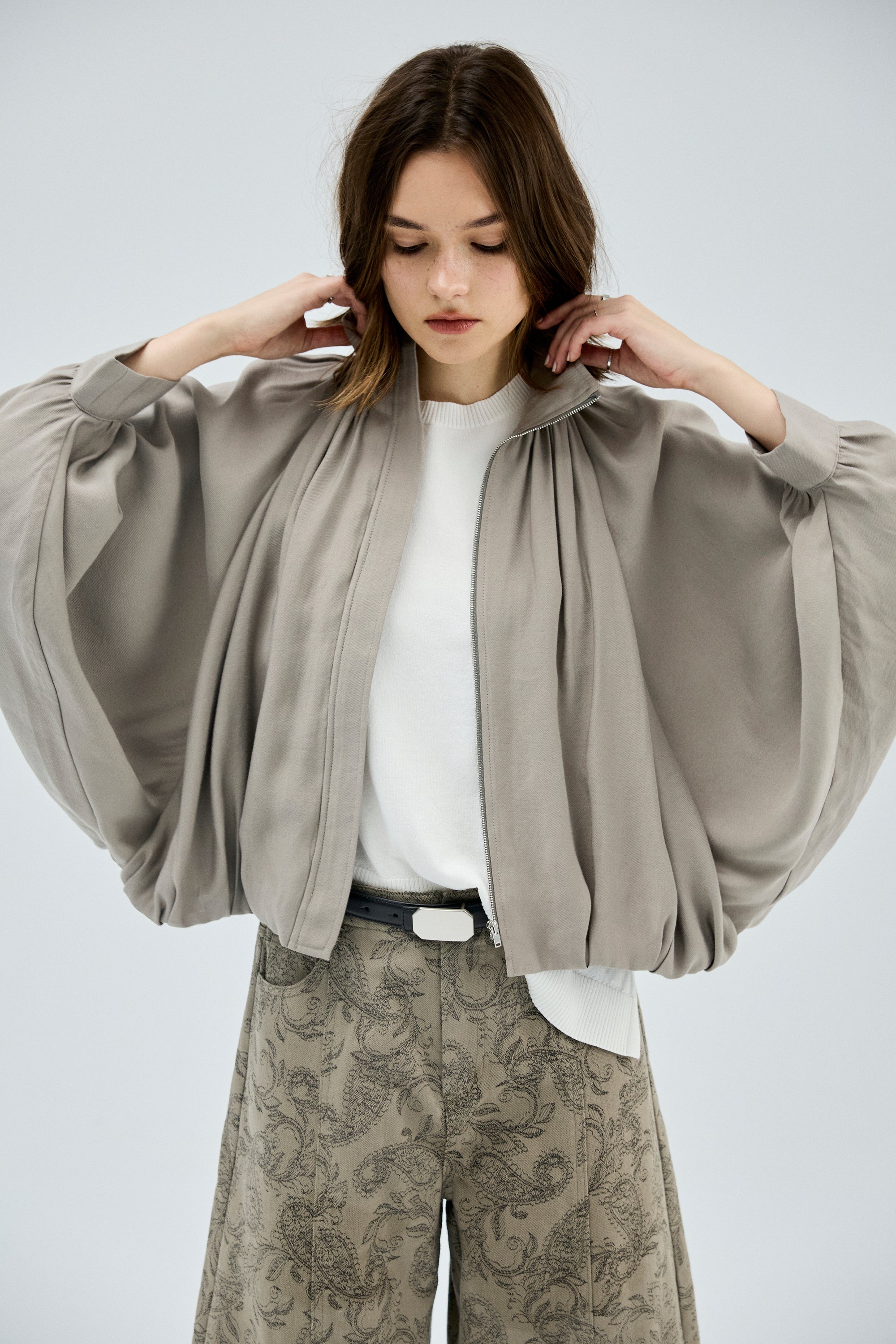 假兩件柔霧萊賽爾針織長袖上衣-灰