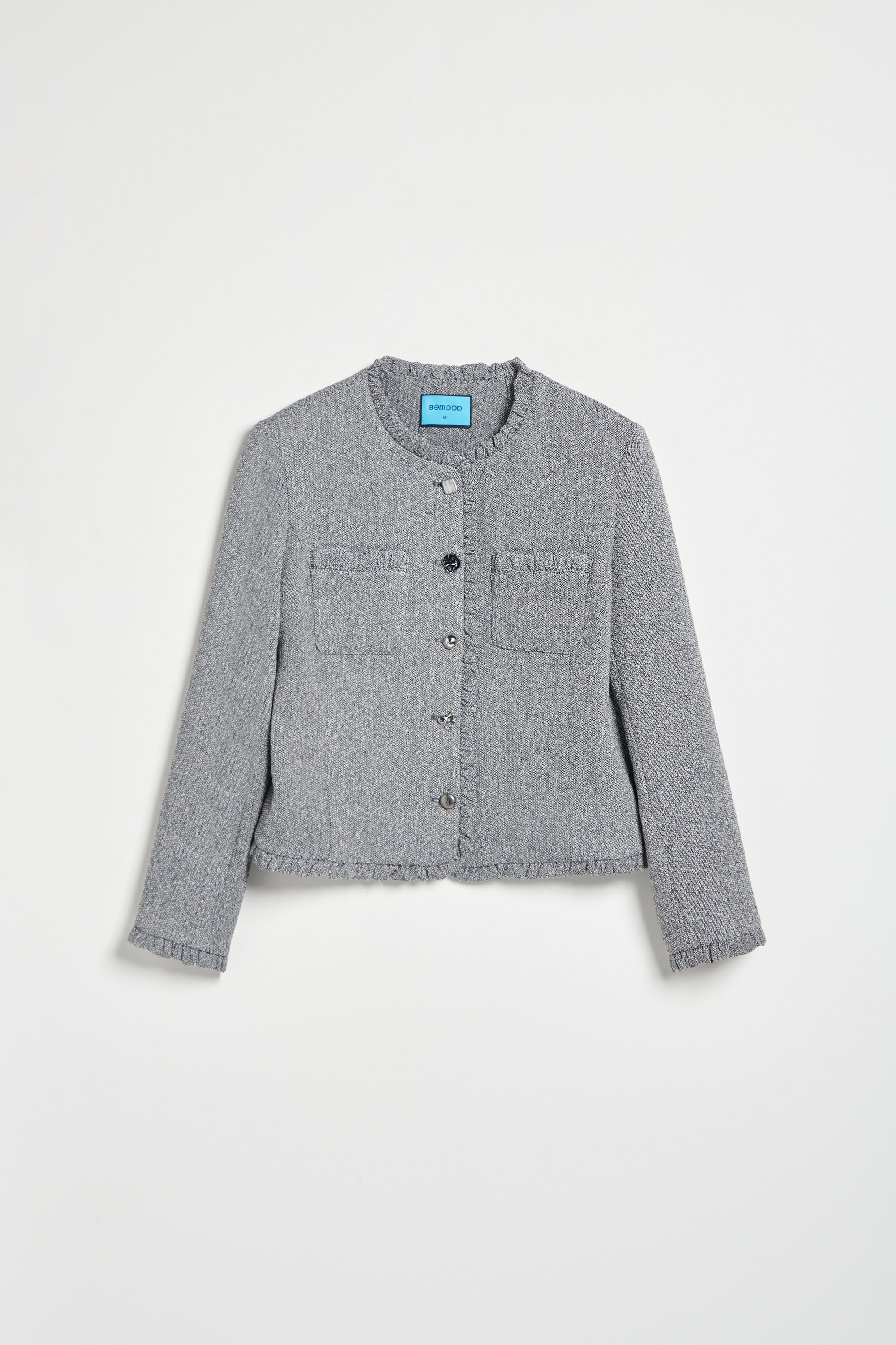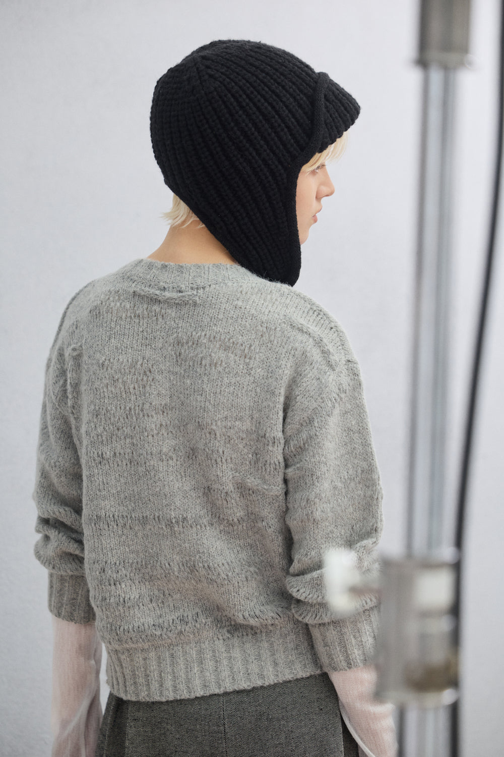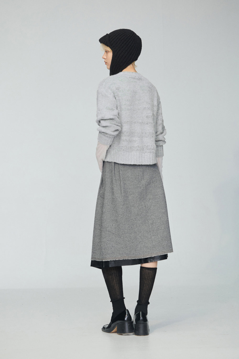 繞頸配色假兩件針織開襟外套-灰