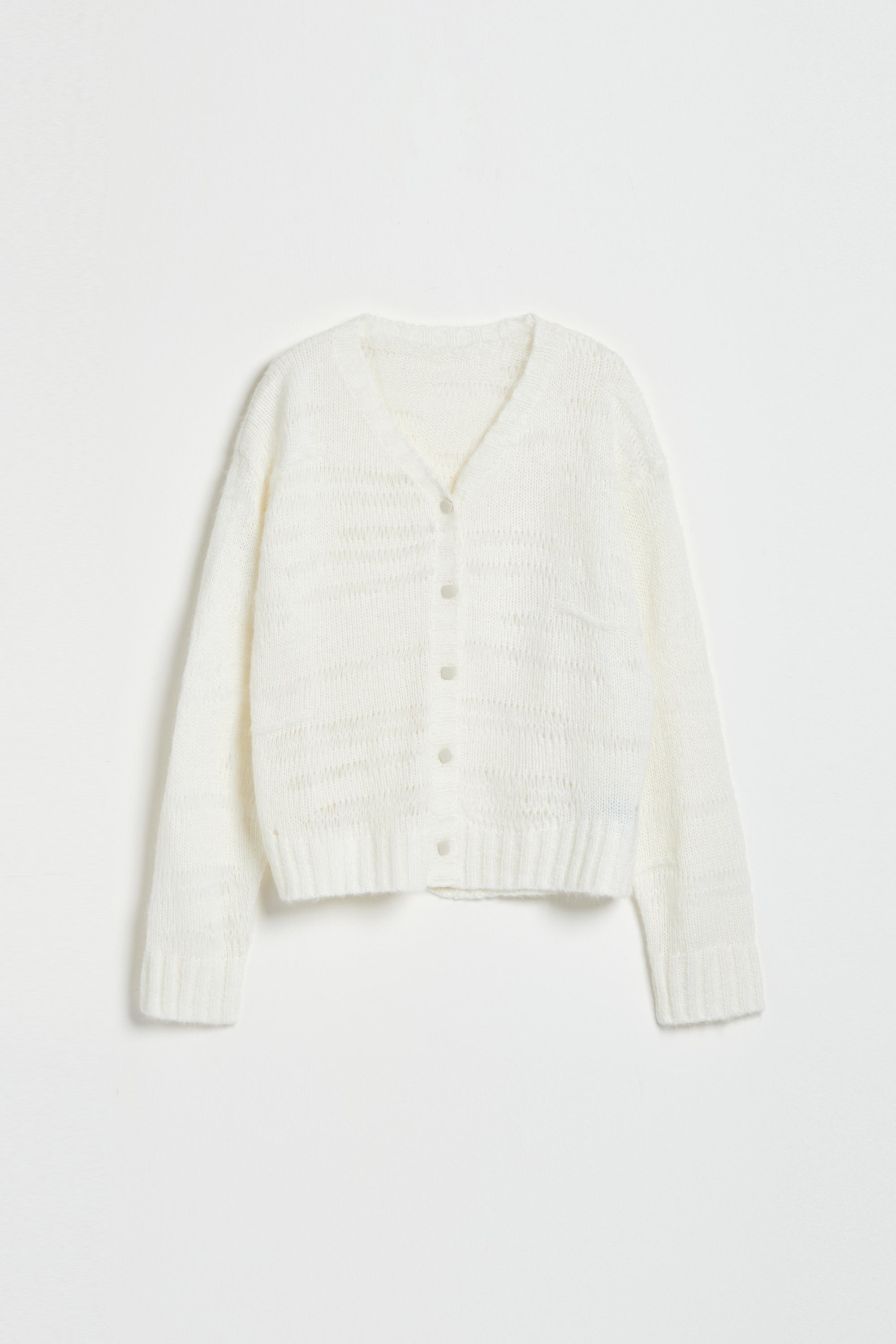 羊毛混紡鏤空織紋開襟毛衣外套-杏