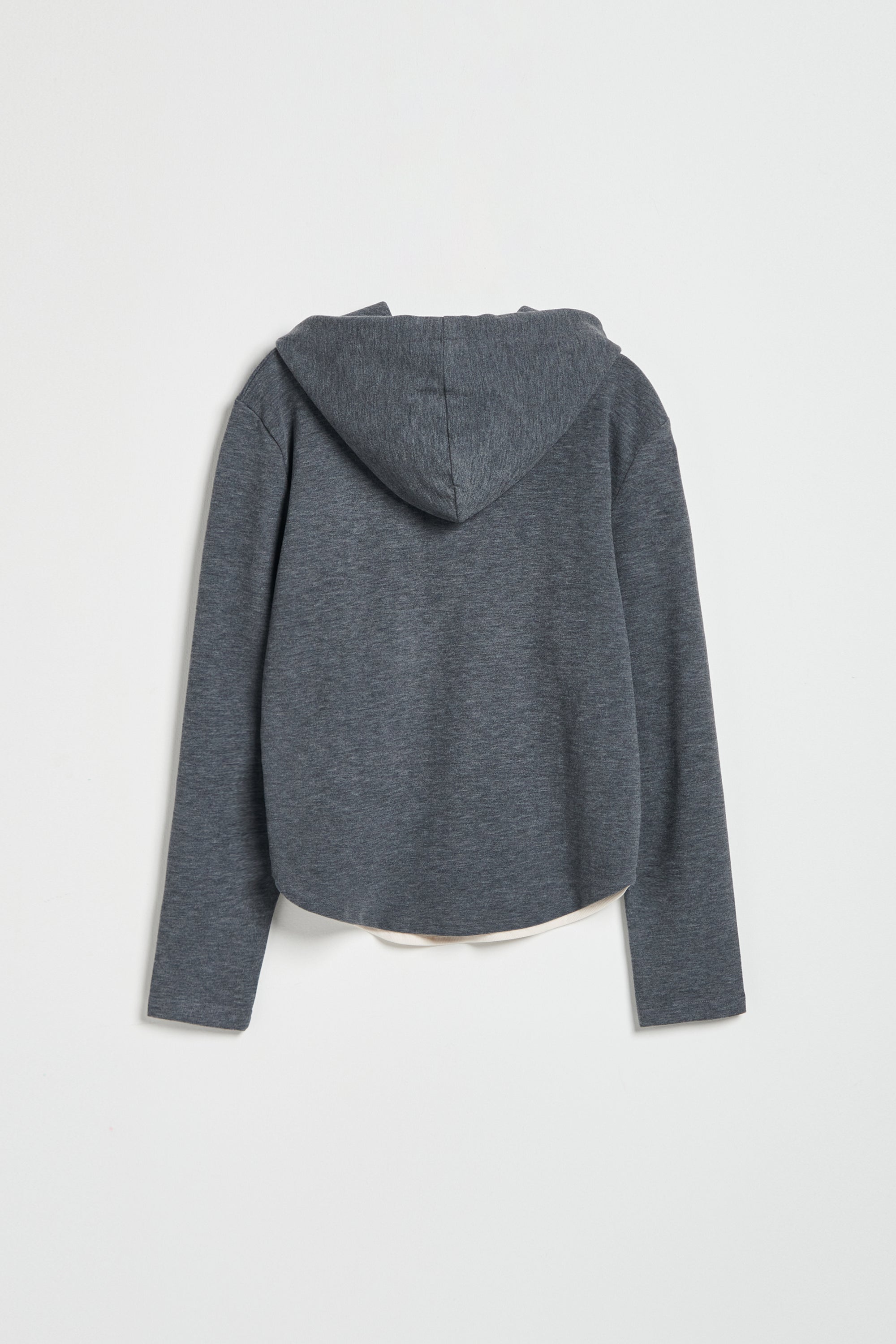 連帽假兩件配色拉鍊收腰上衣-深灰