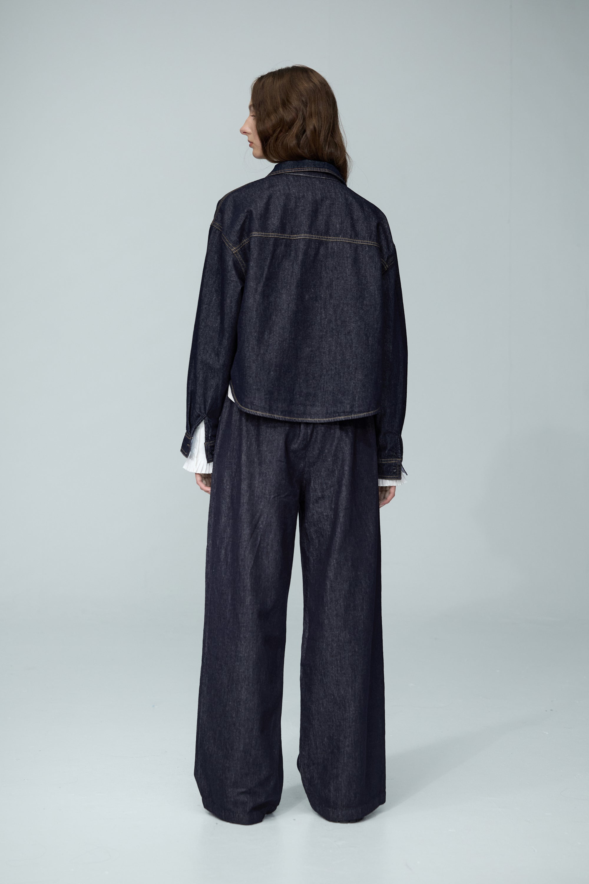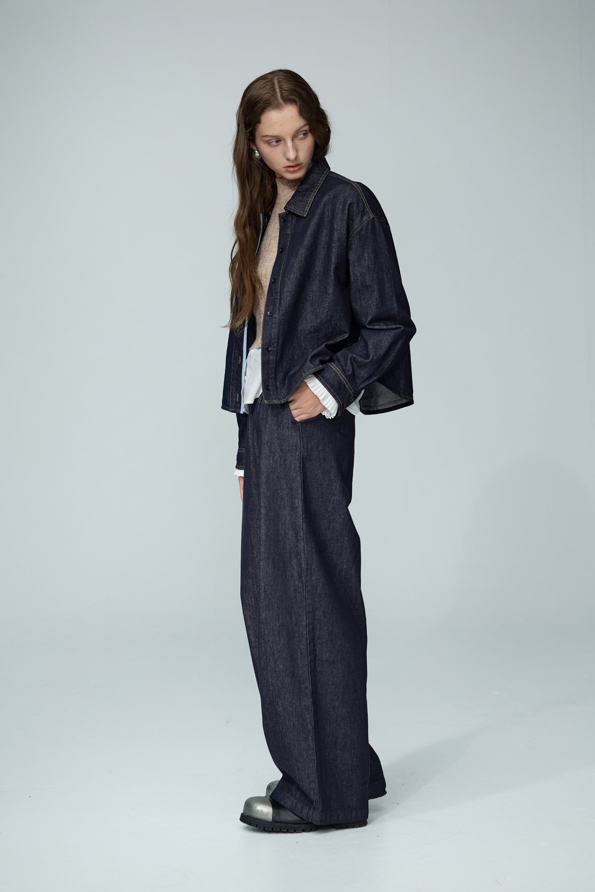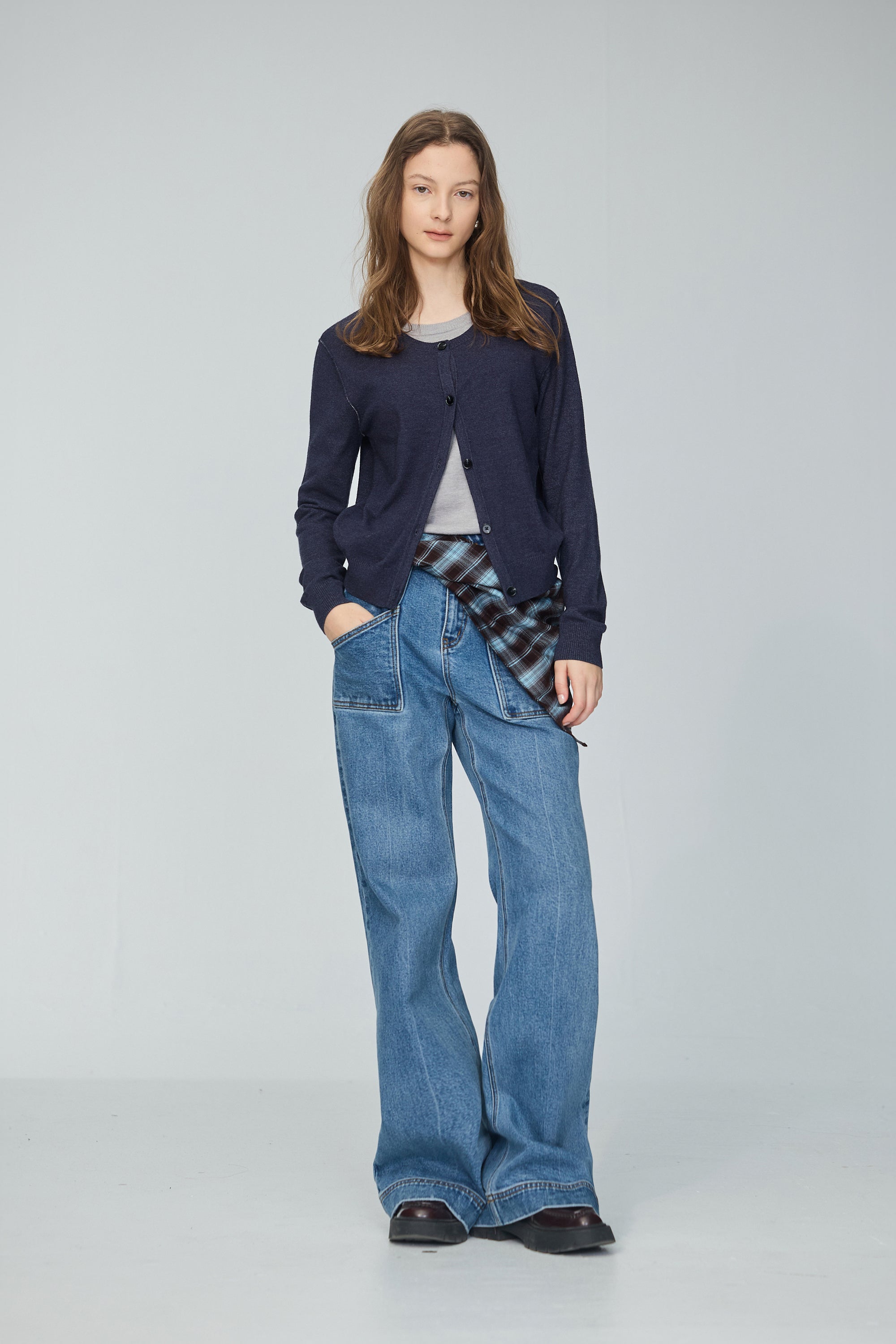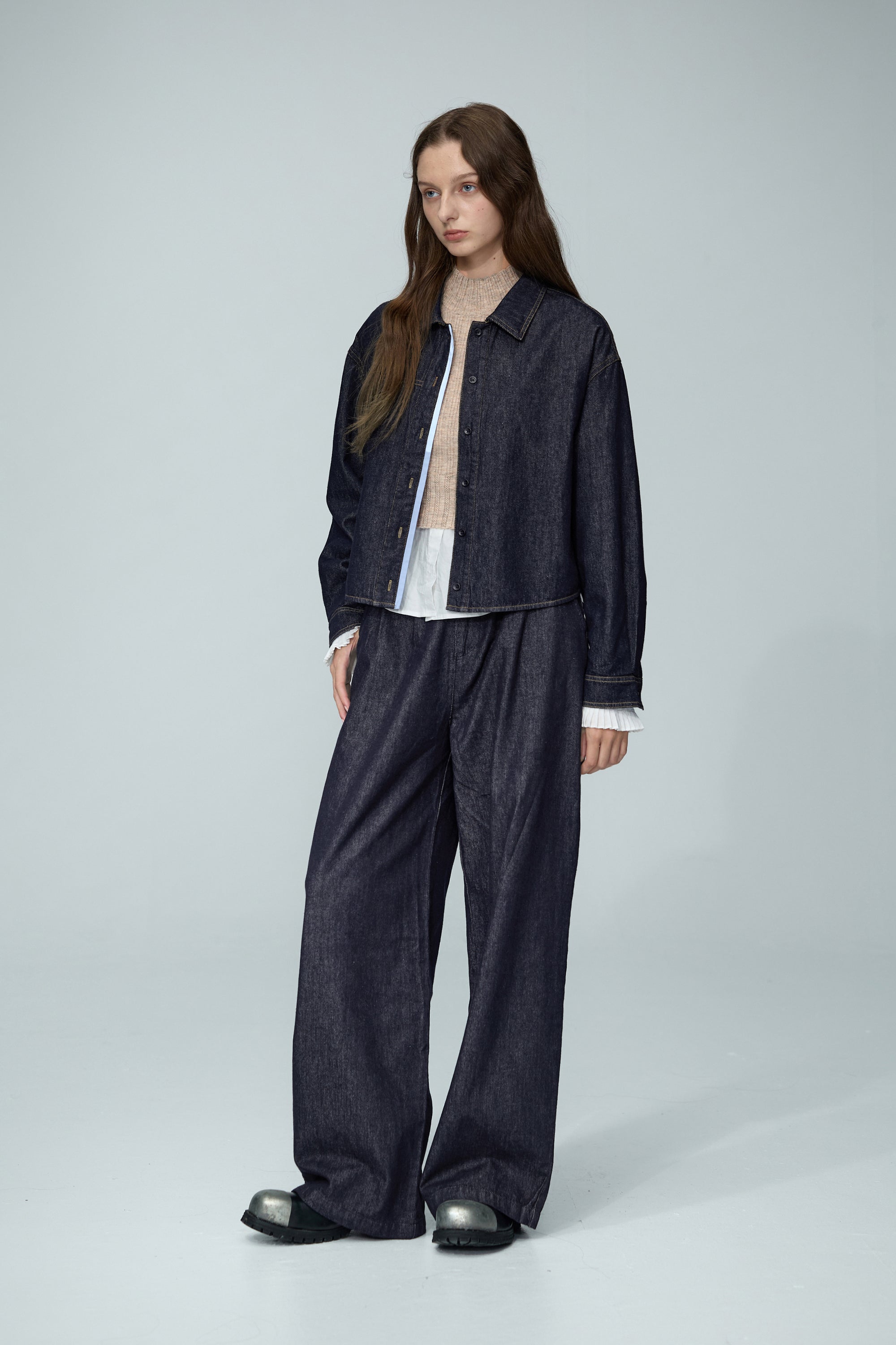 舒適針織坑條裙罩鬆緊長褲兩件組-藏青