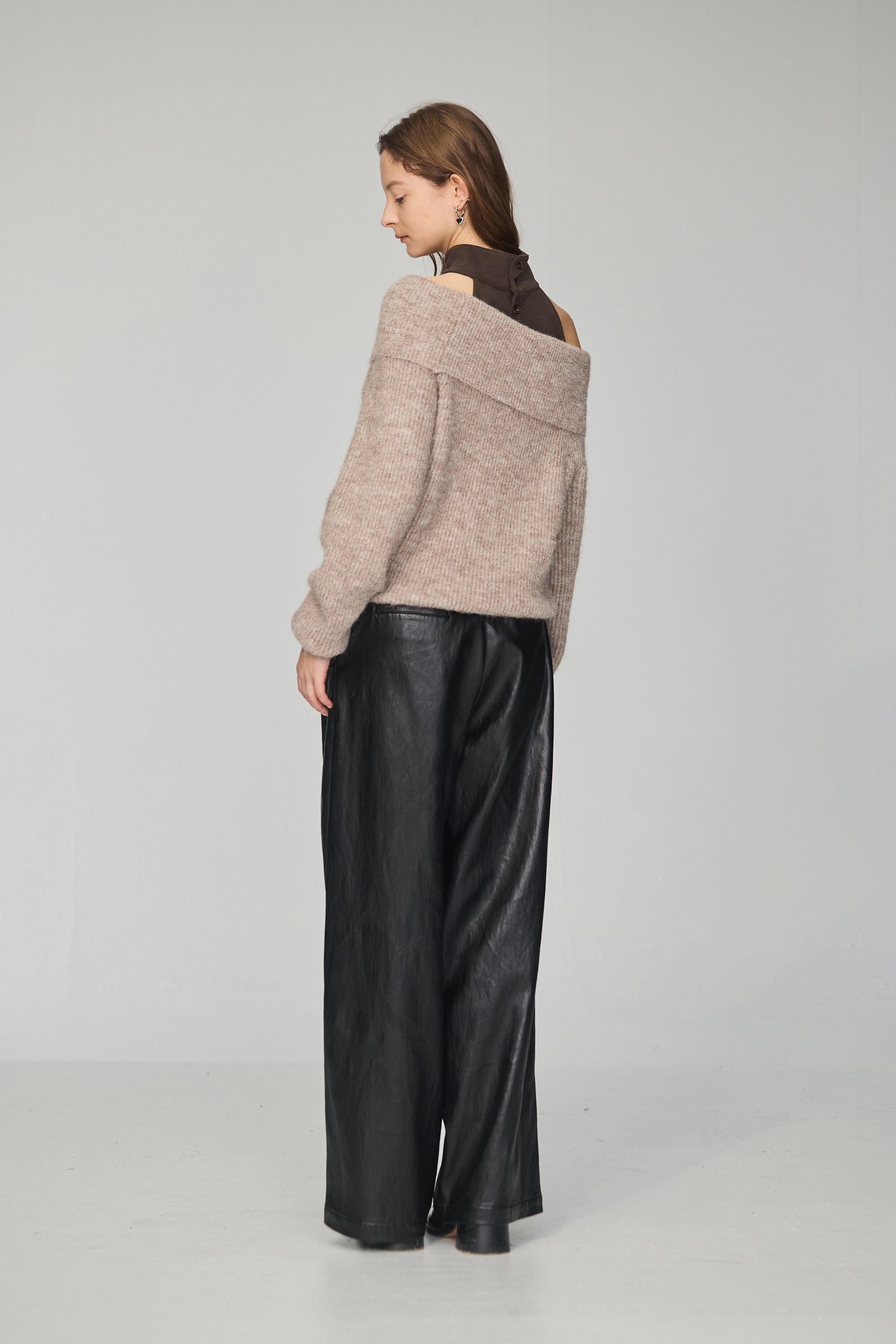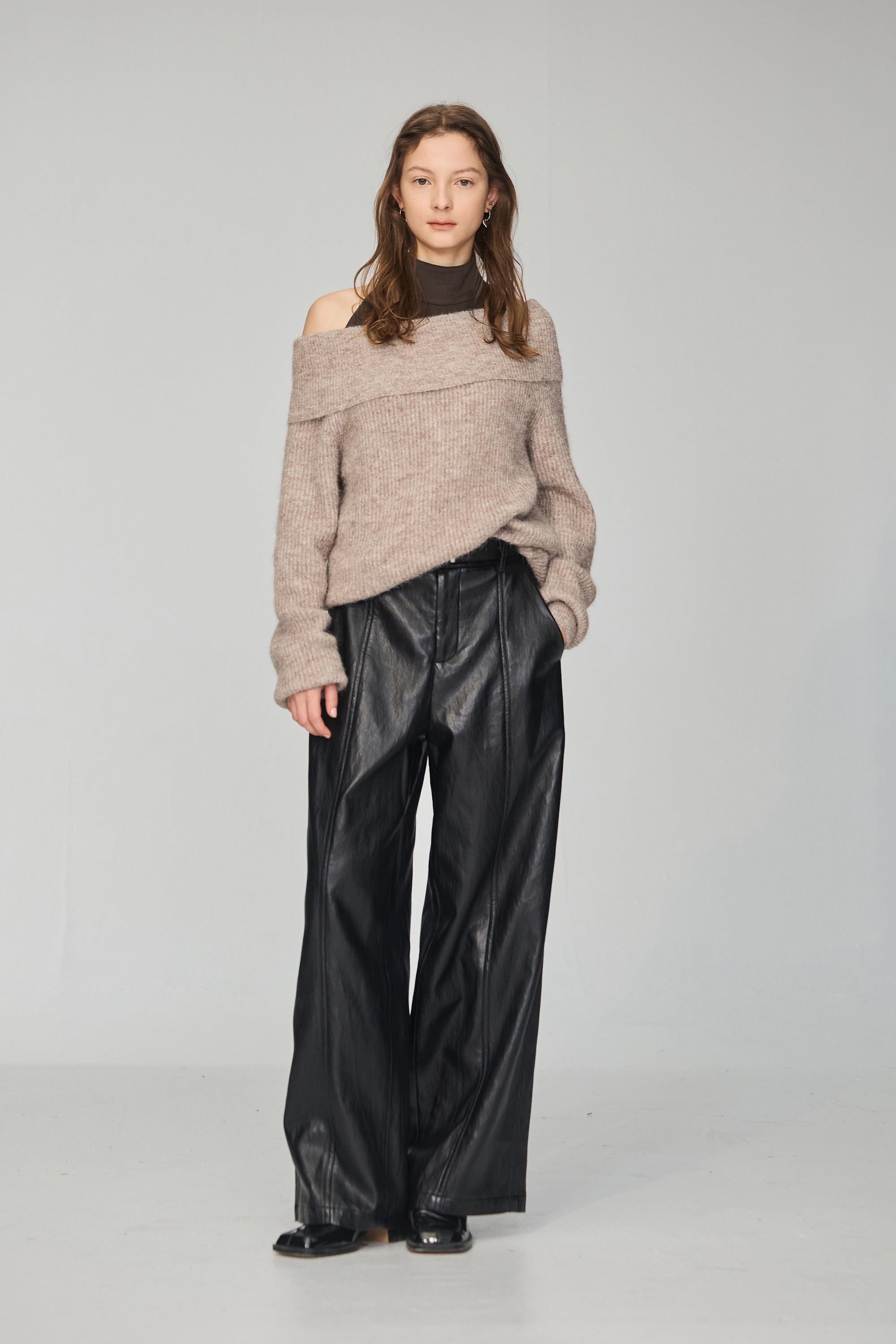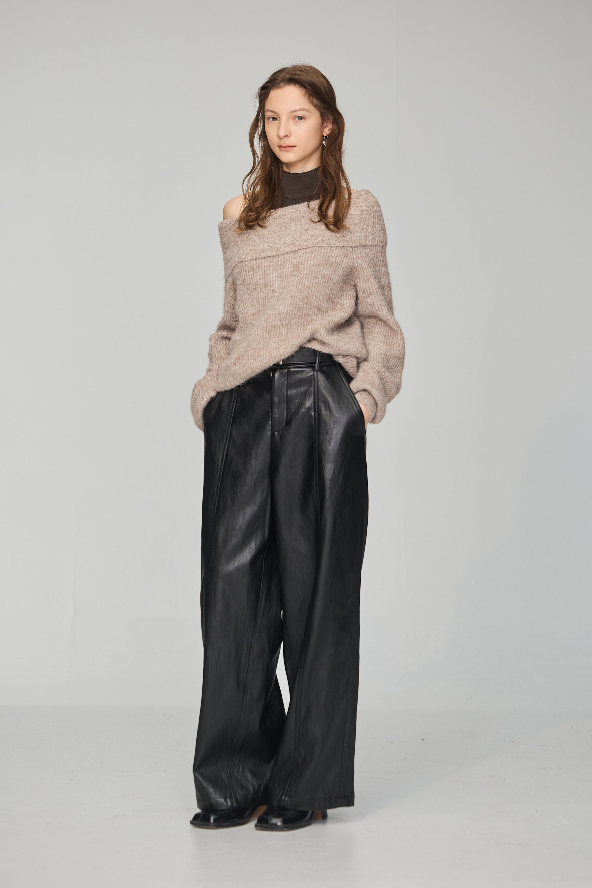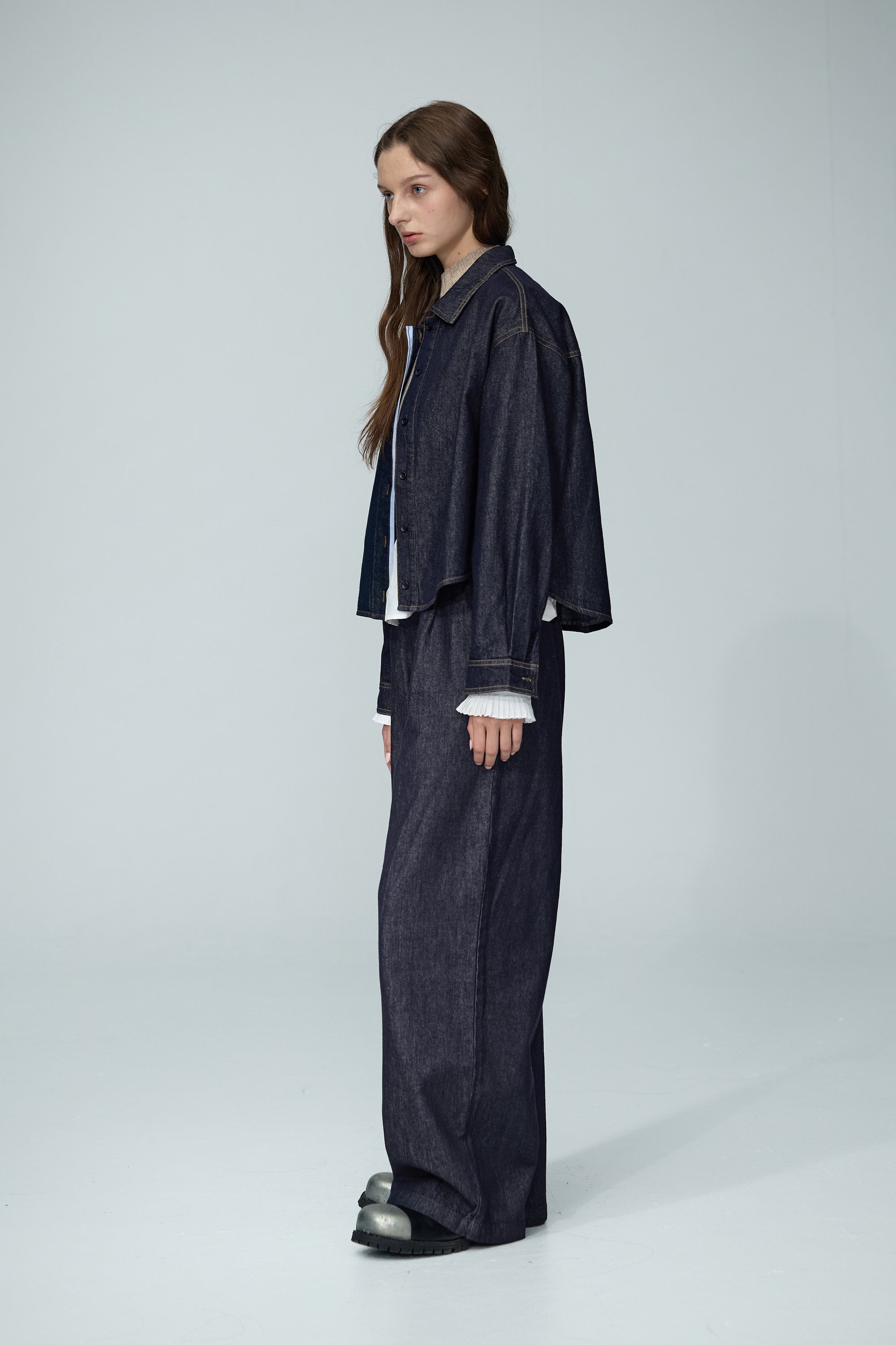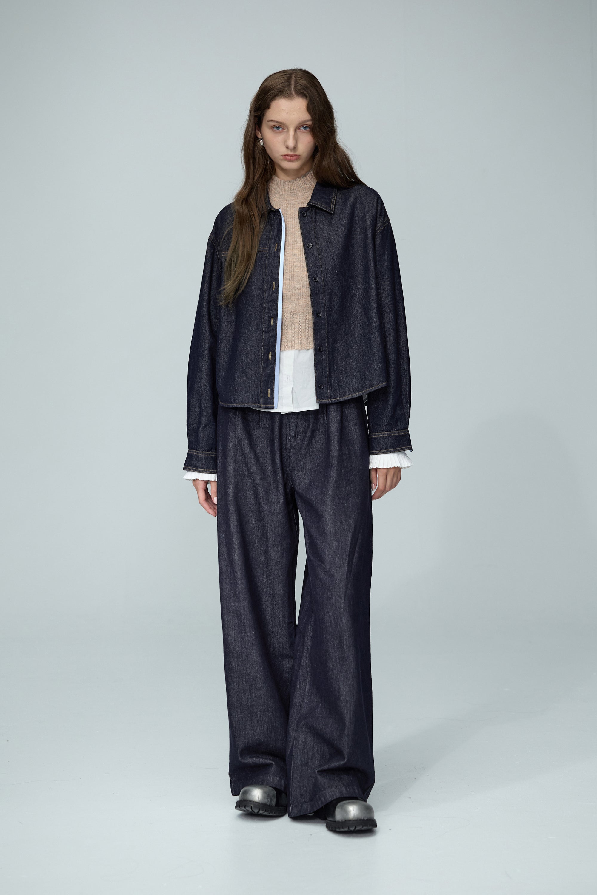 舒適針織坑條裙罩鬆緊長褲兩件組-藏青