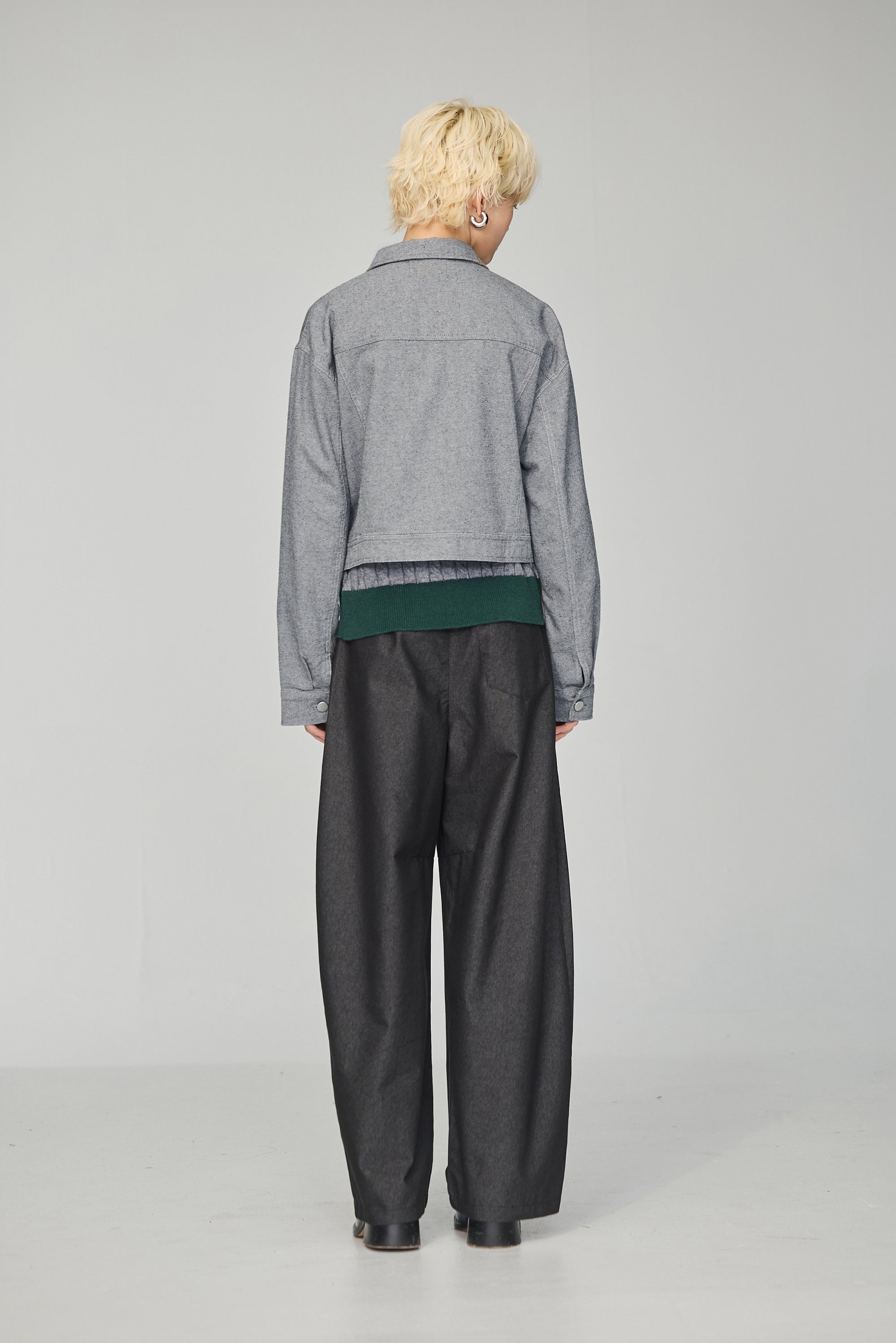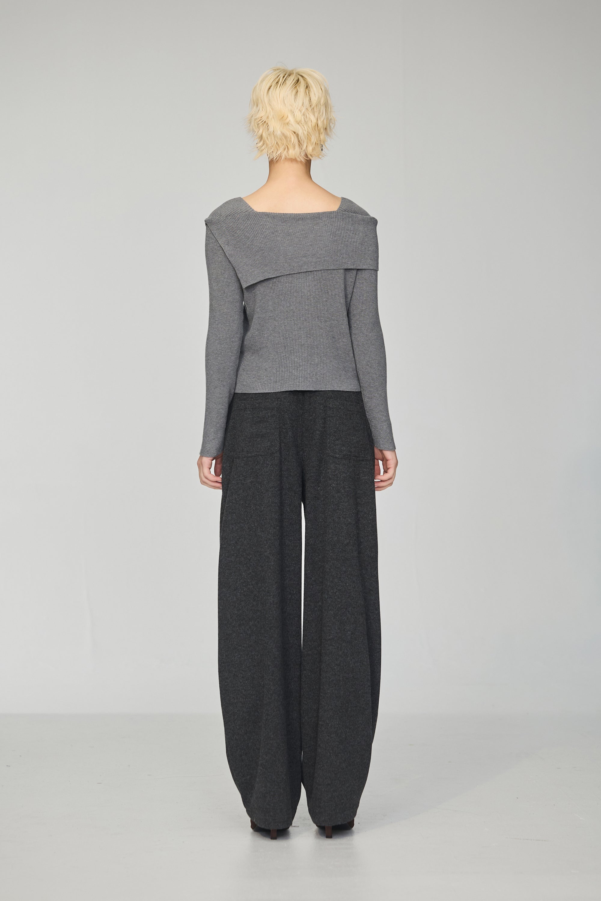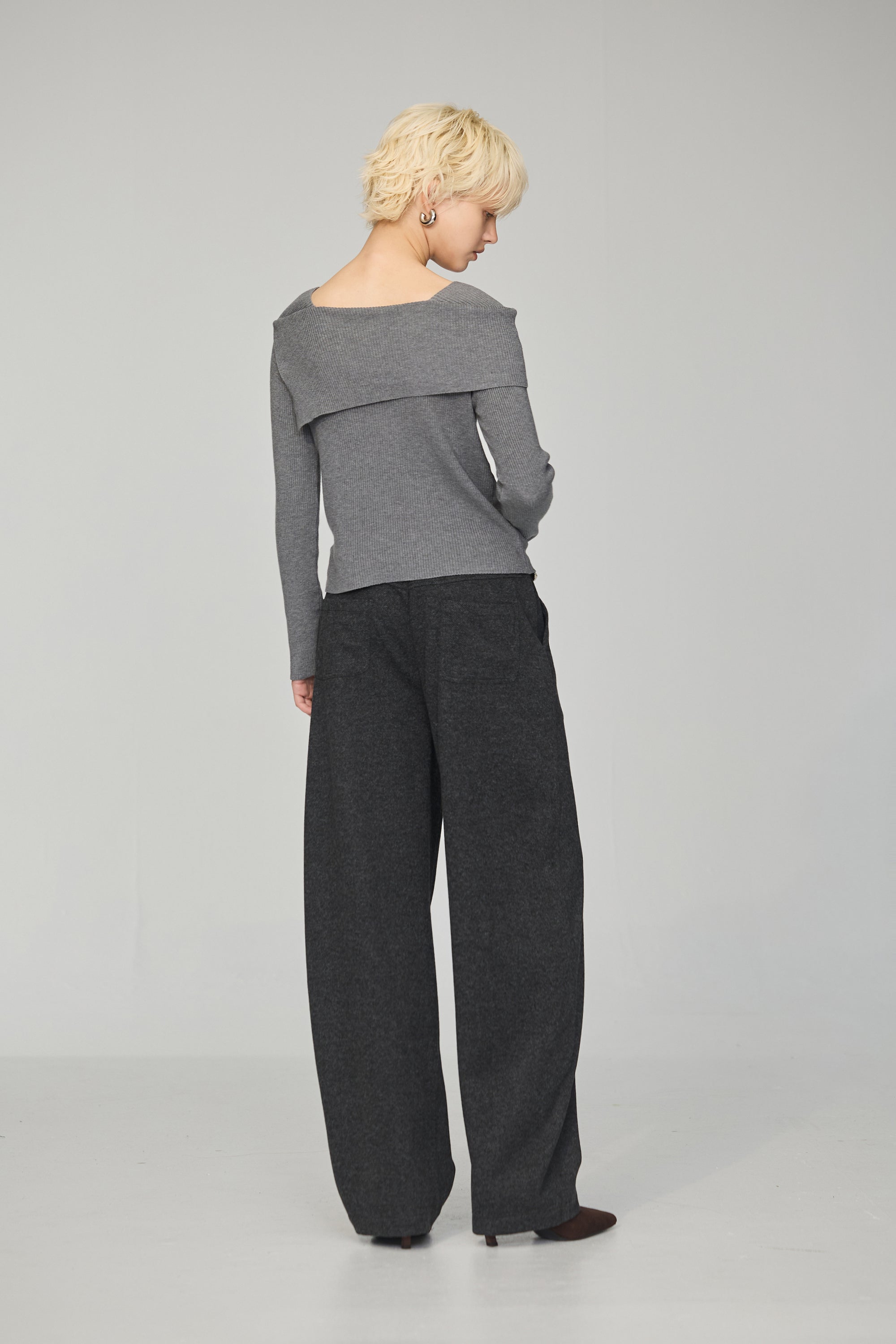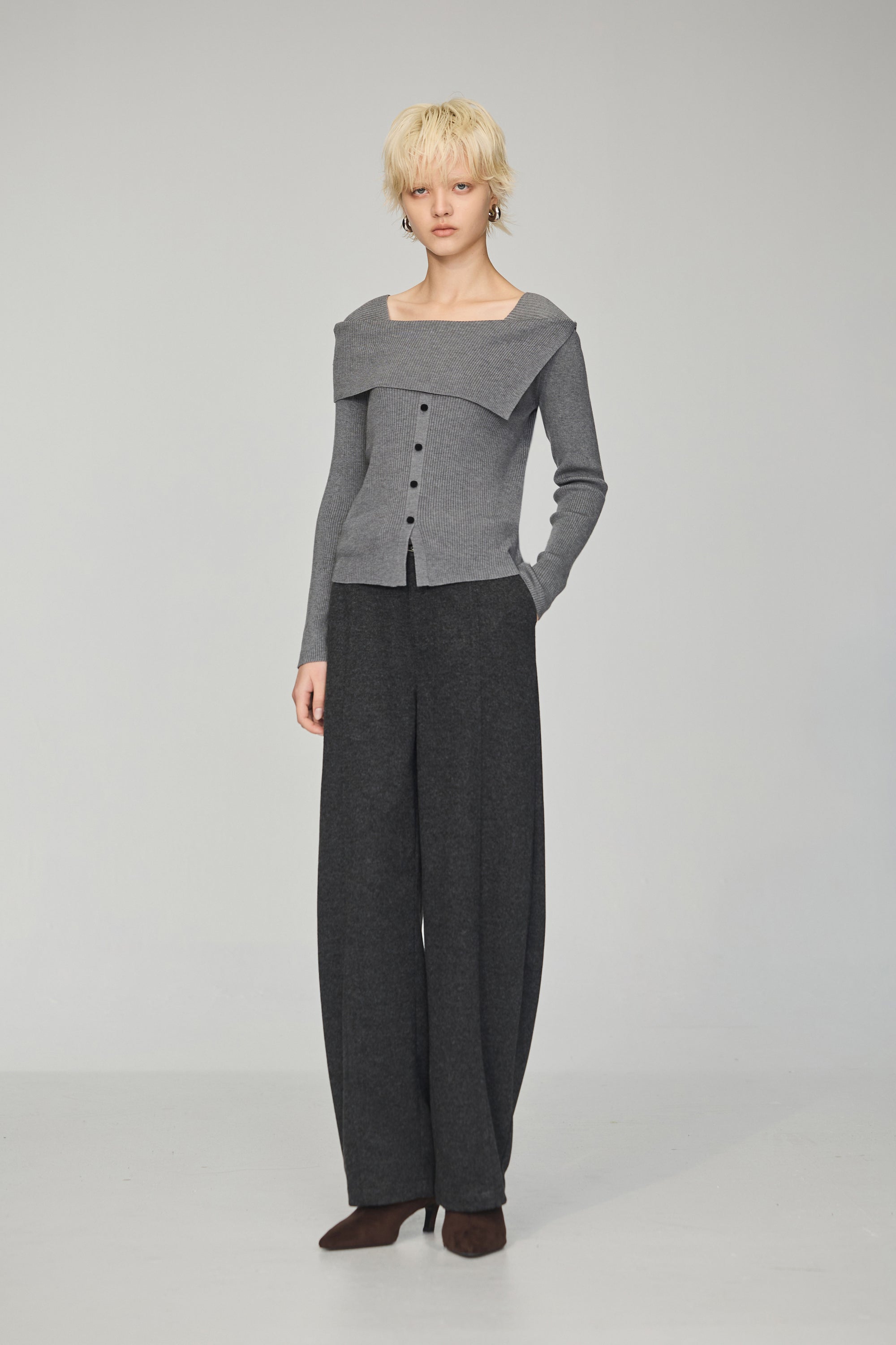 舒適針織坑條裙罩鬆緊長褲兩件組-灰
