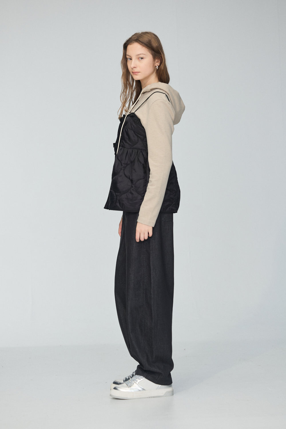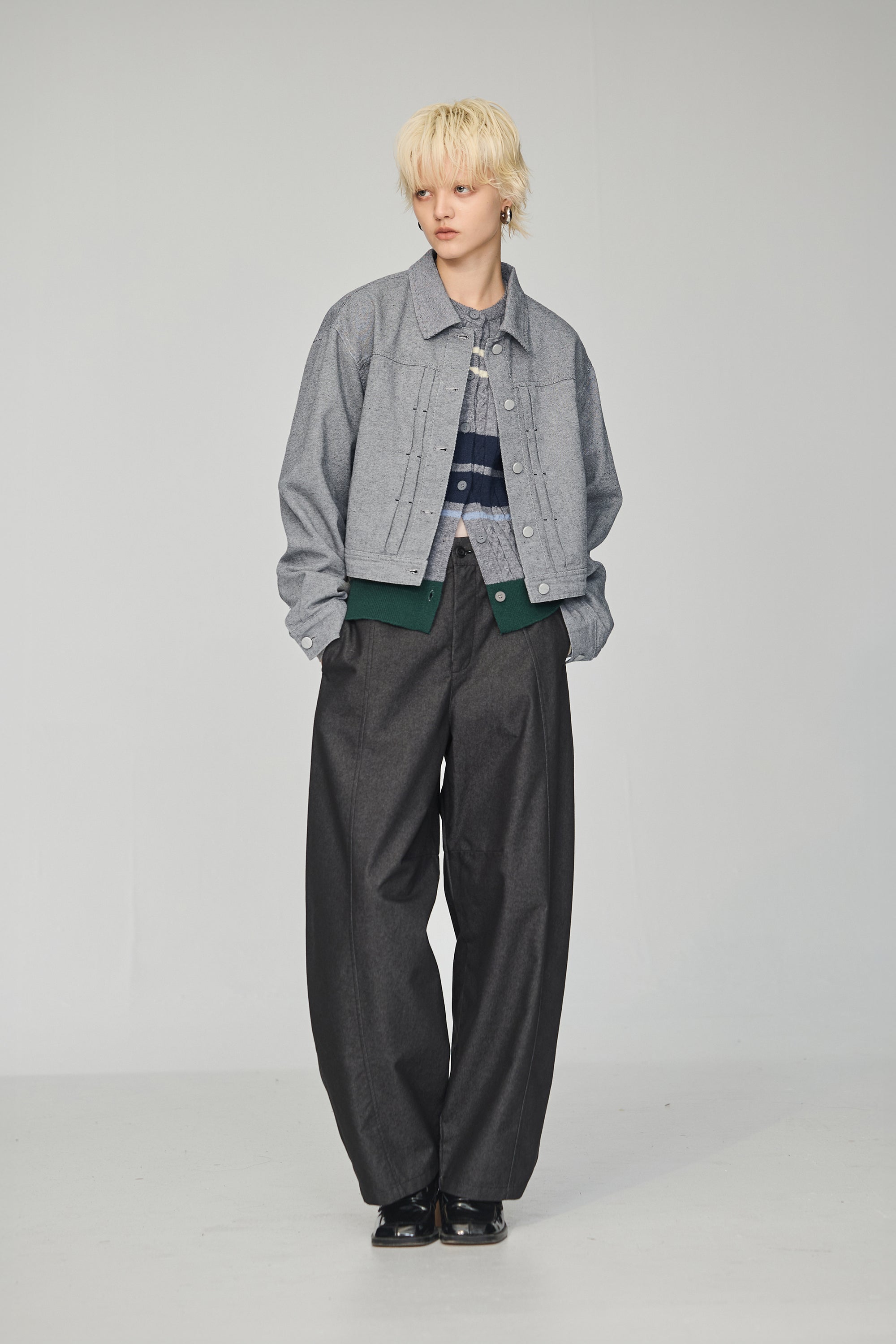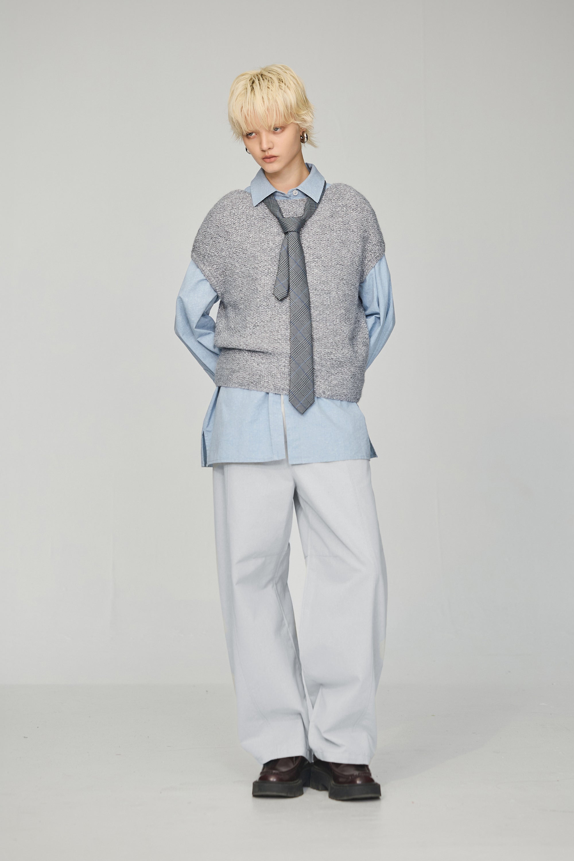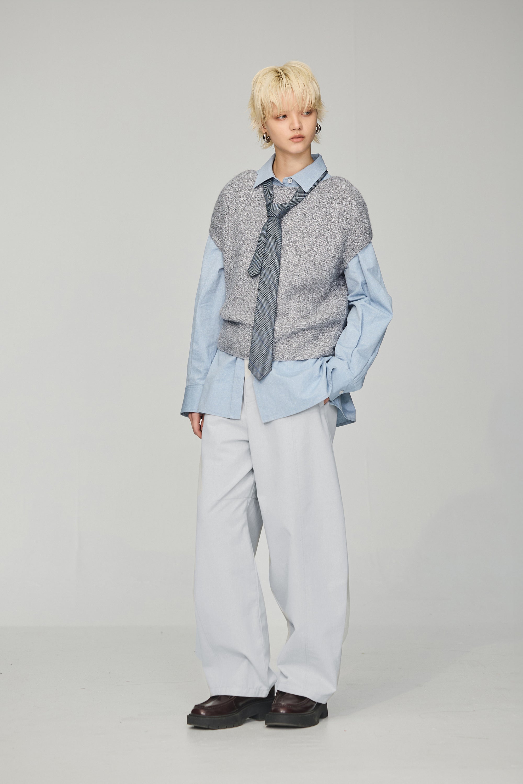 舒適針織坑條裙罩鬆緊長褲兩件組-灰