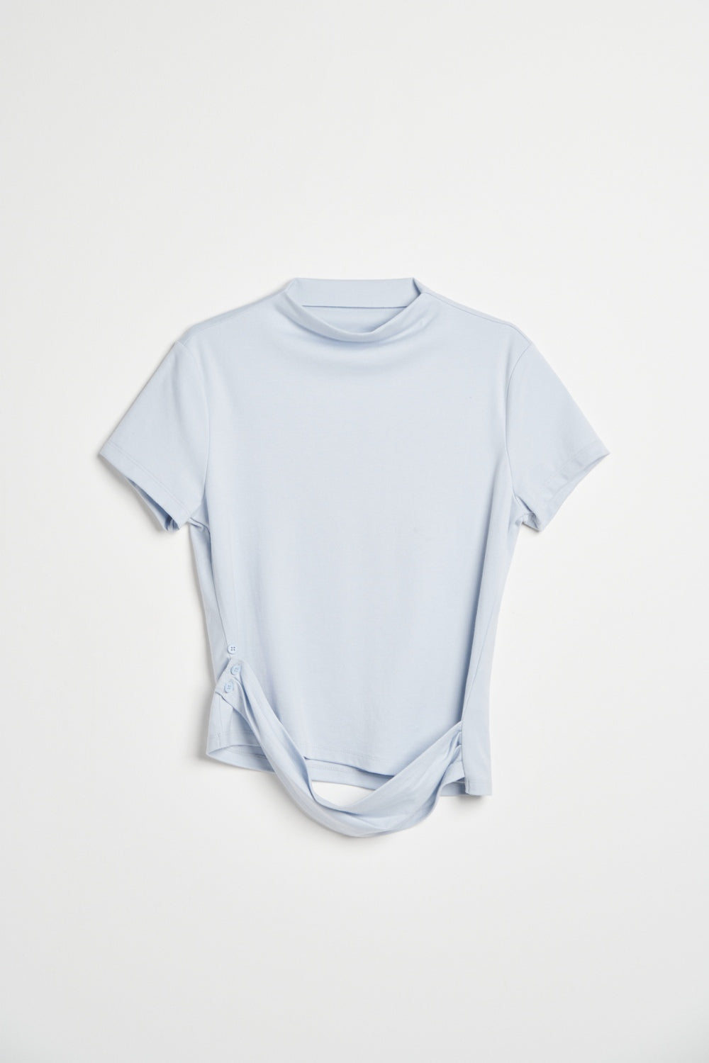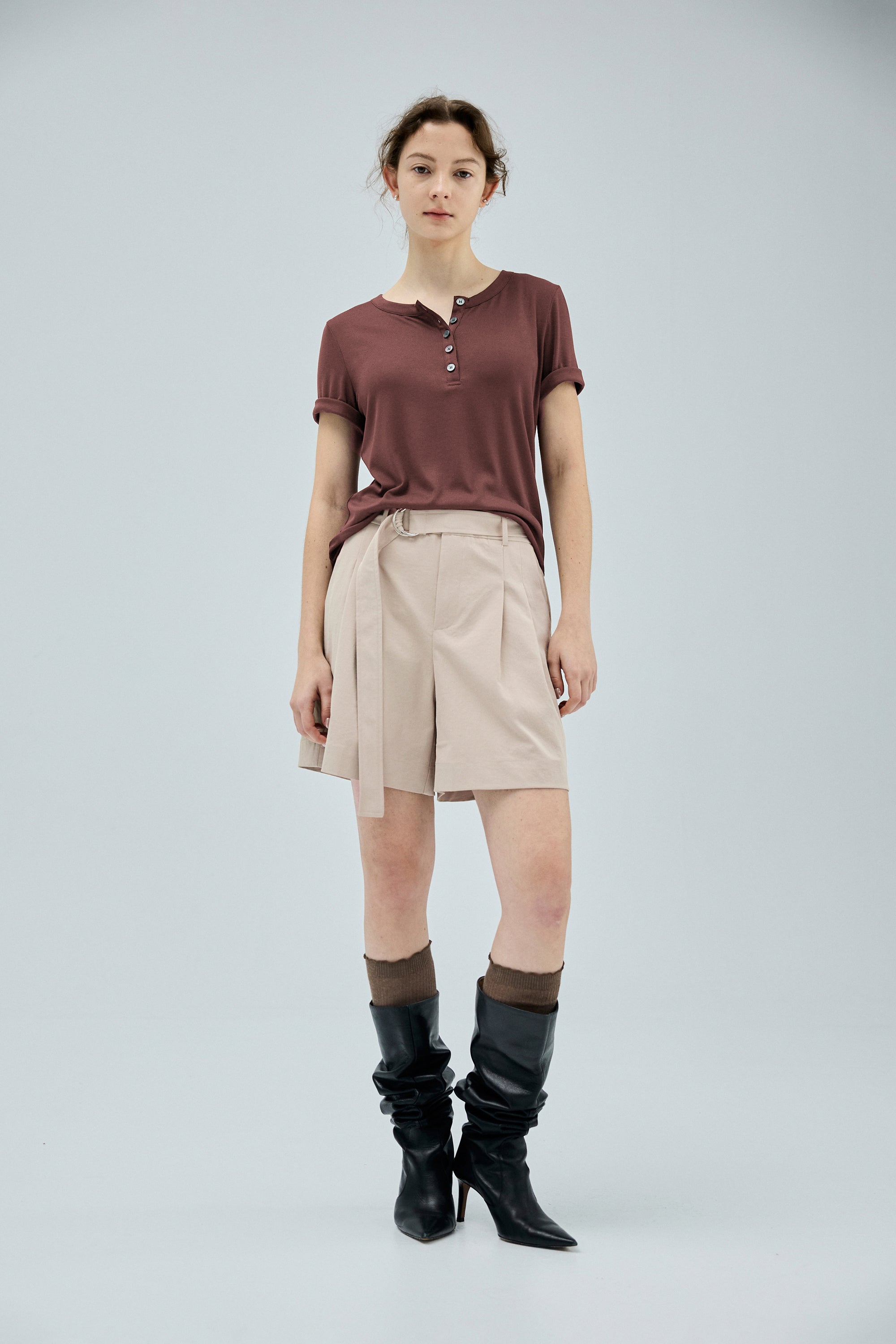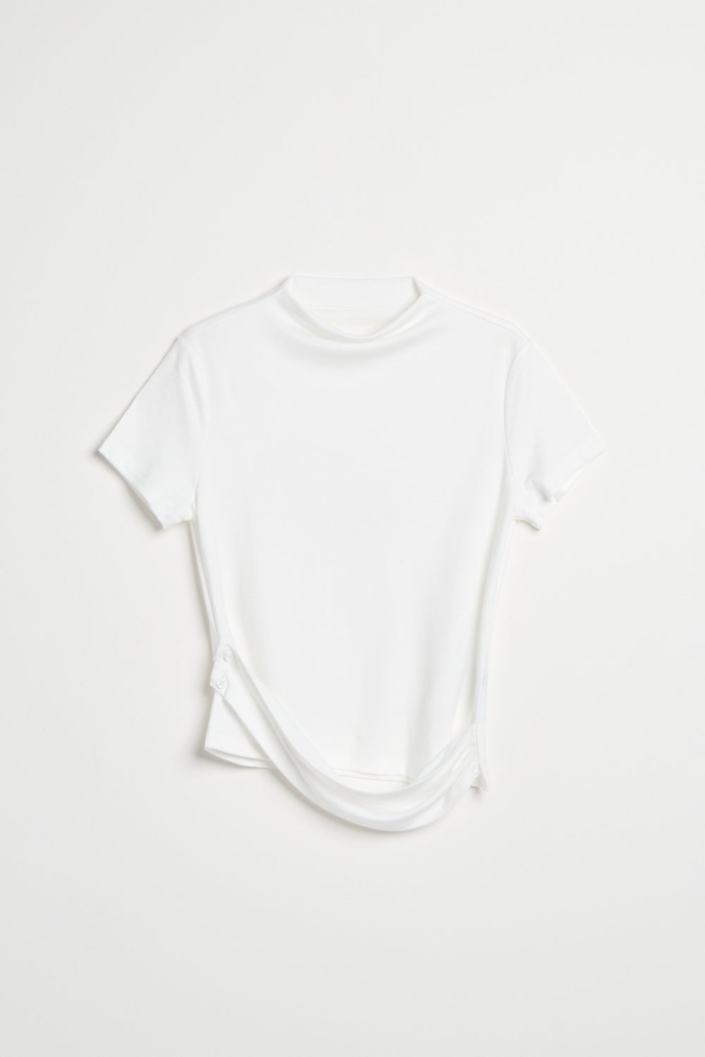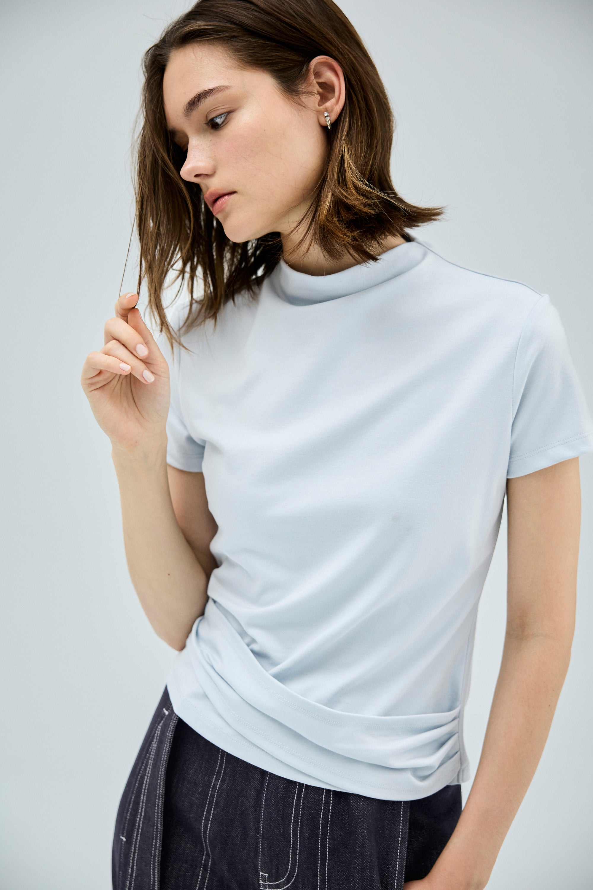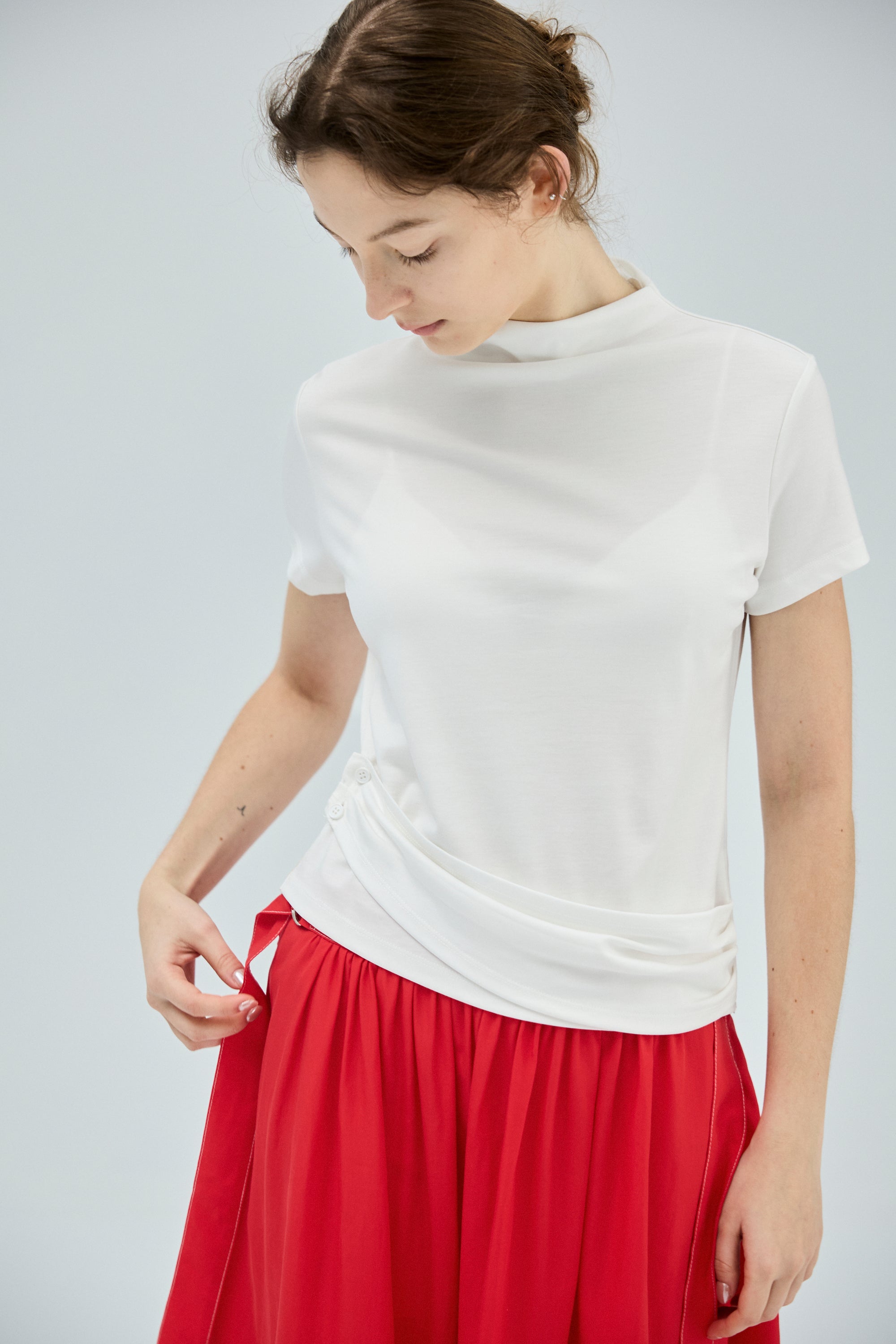 透氣親膚羊毛混紡抓皺下襬短袖TEE-米