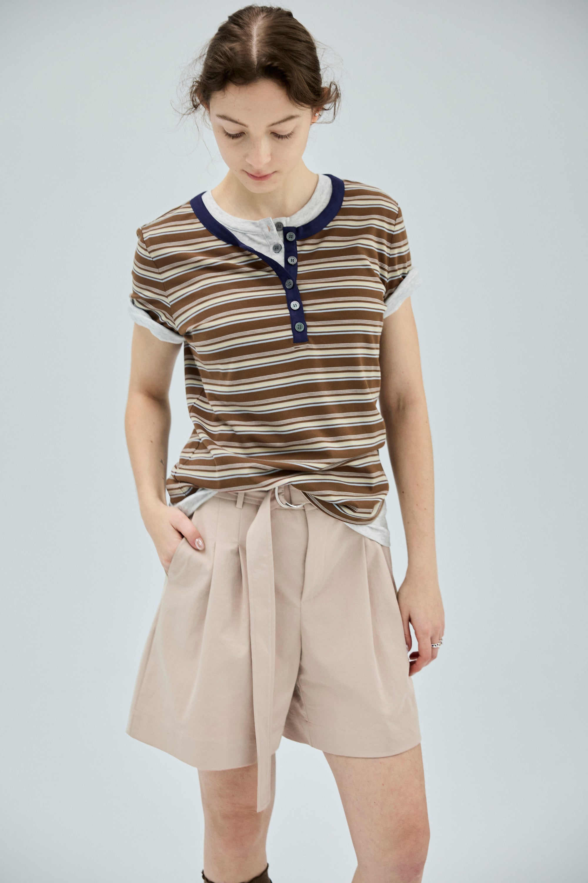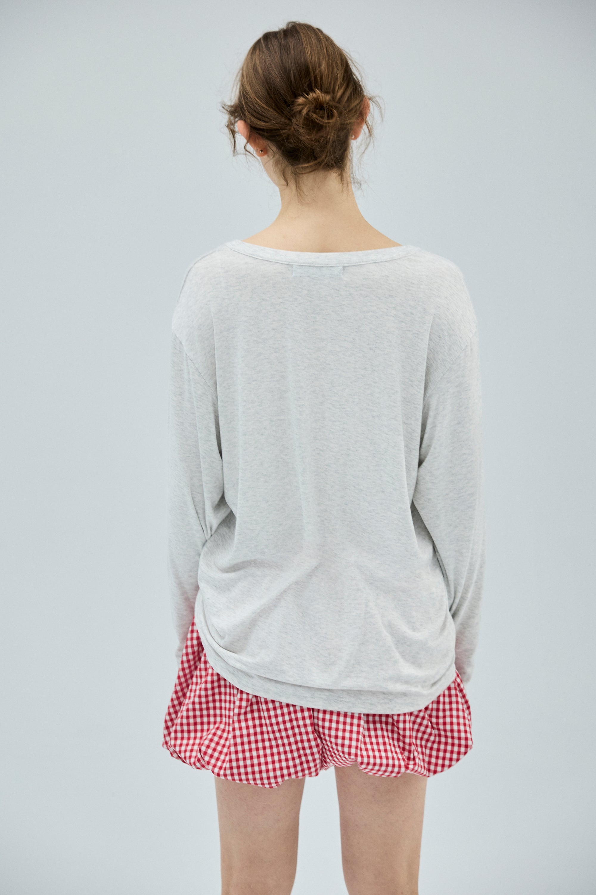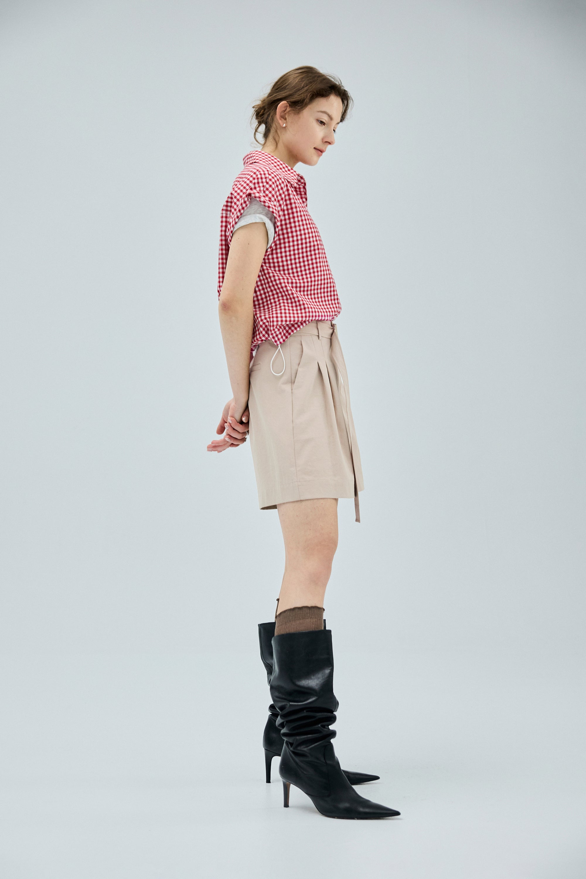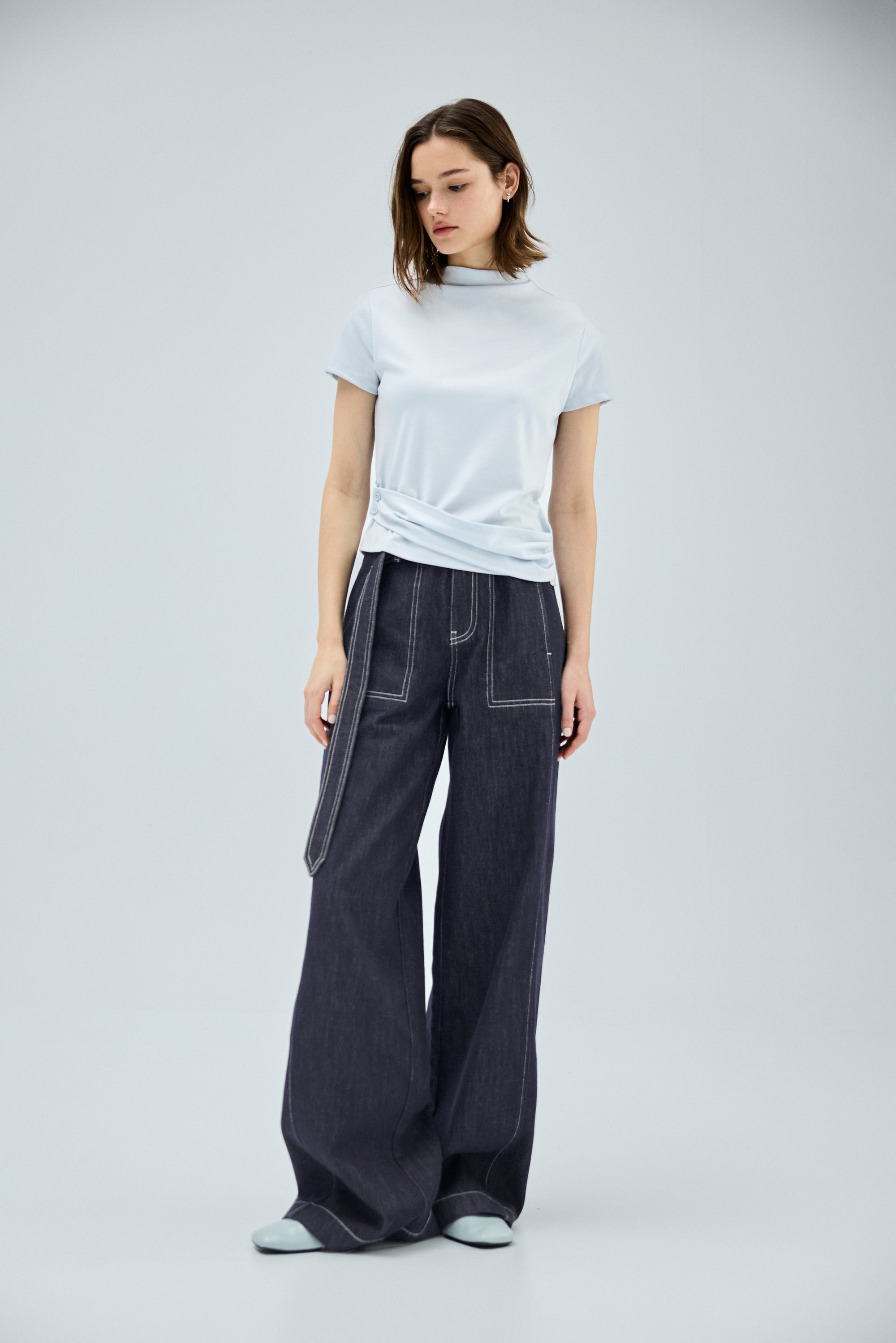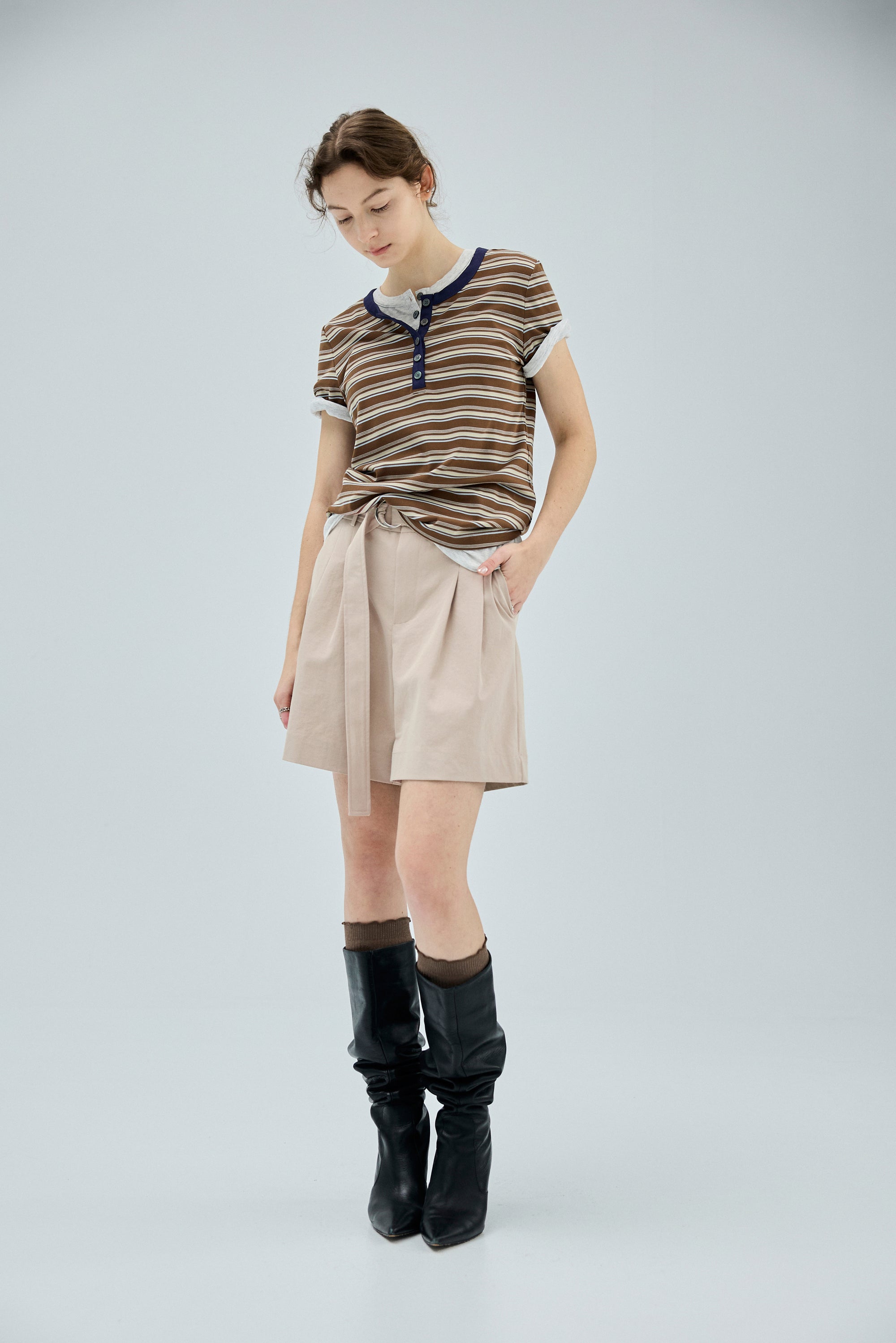 透氣親膚羊毛混紡抓皺下襬短袖TEE-米