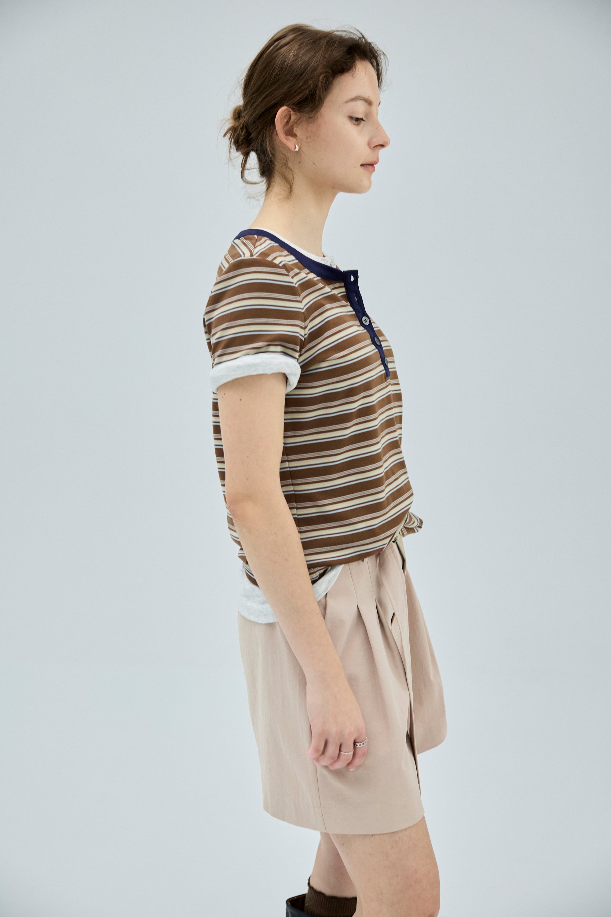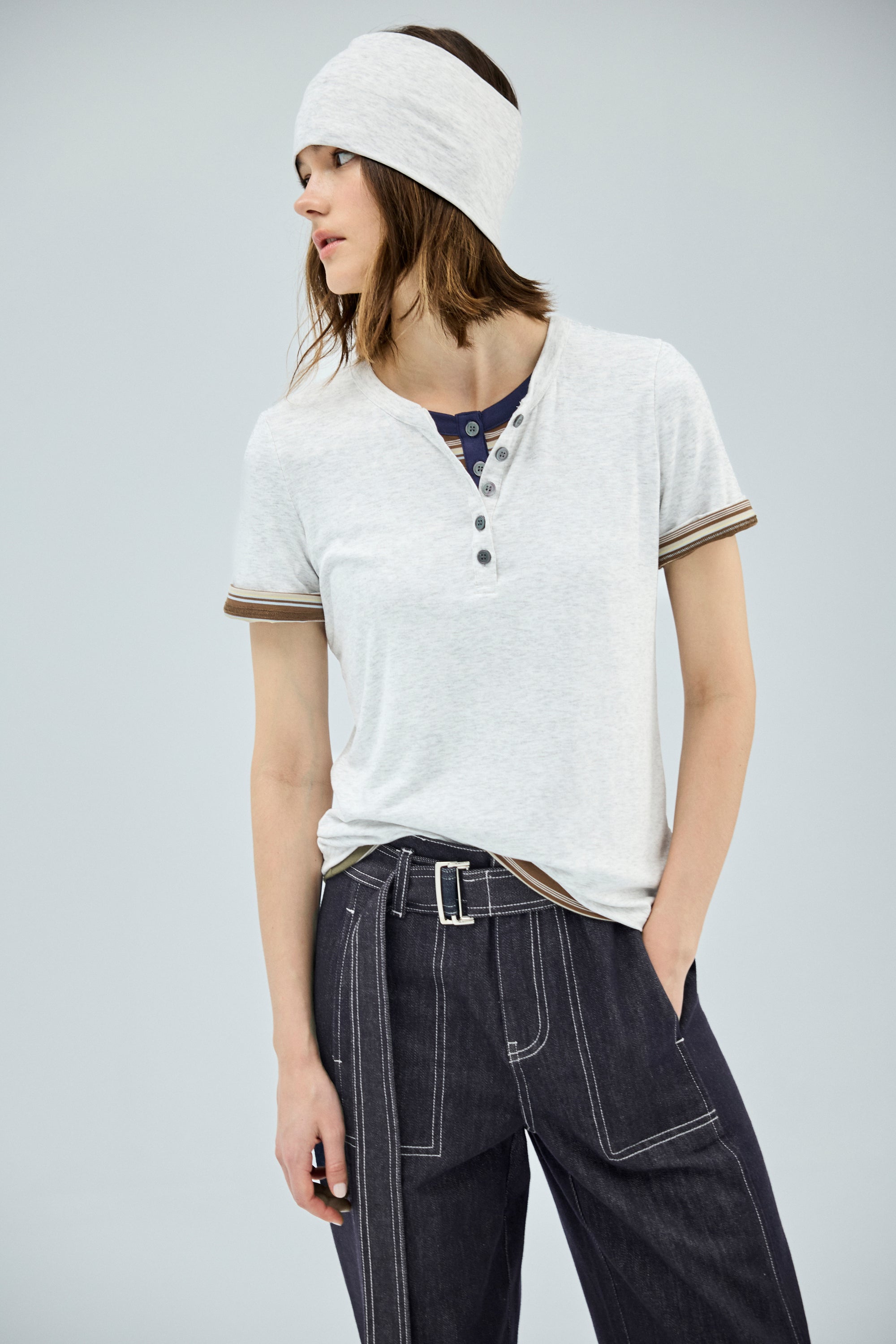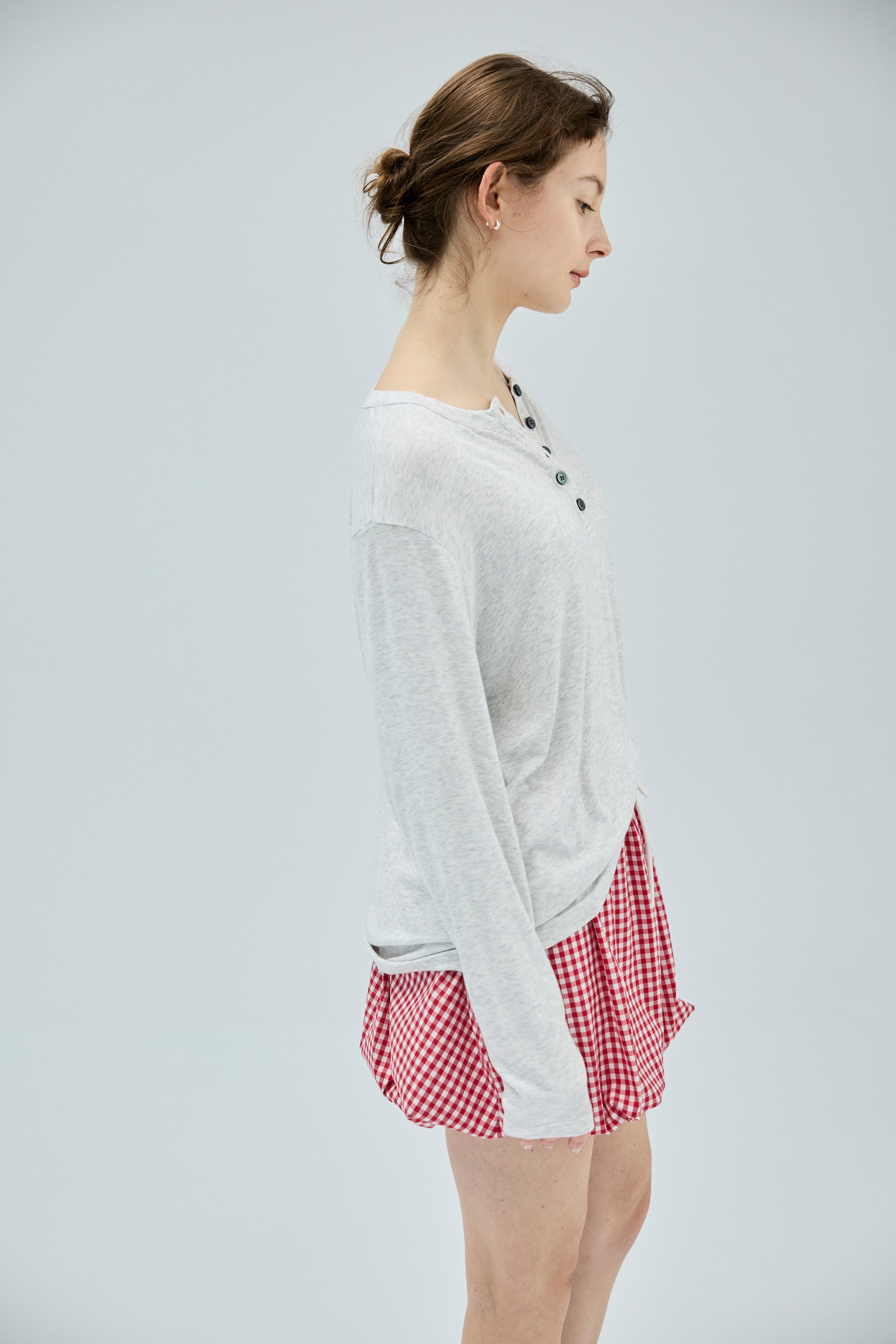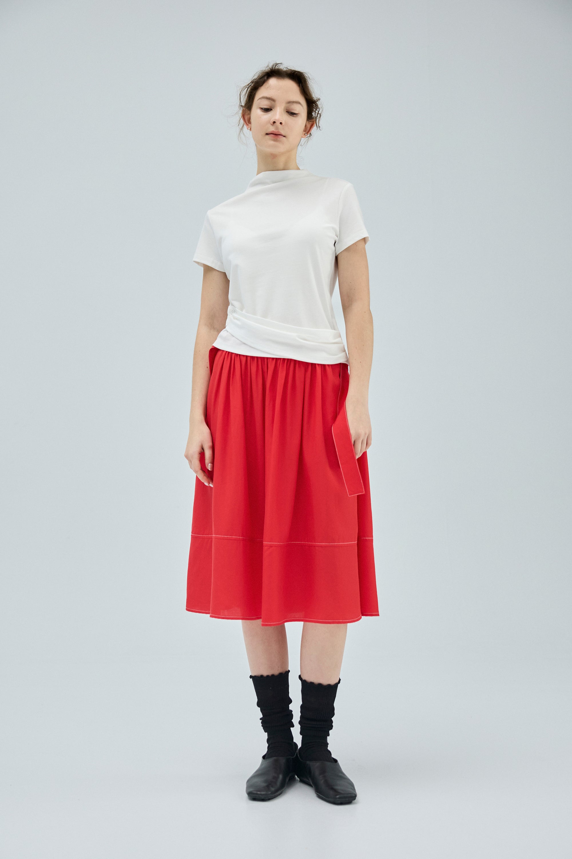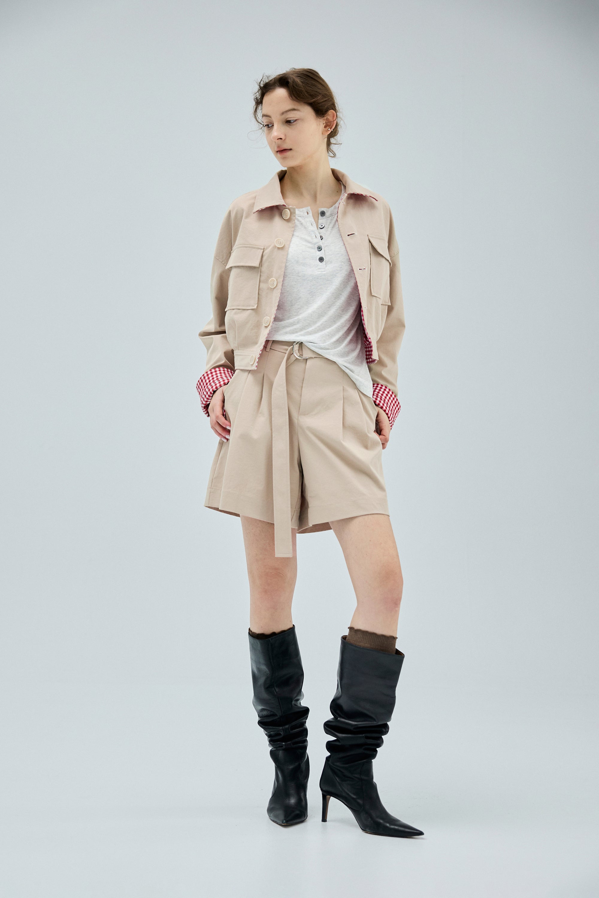 透氣親膚羊毛混紡抓皺下襬短袖TEE-米
