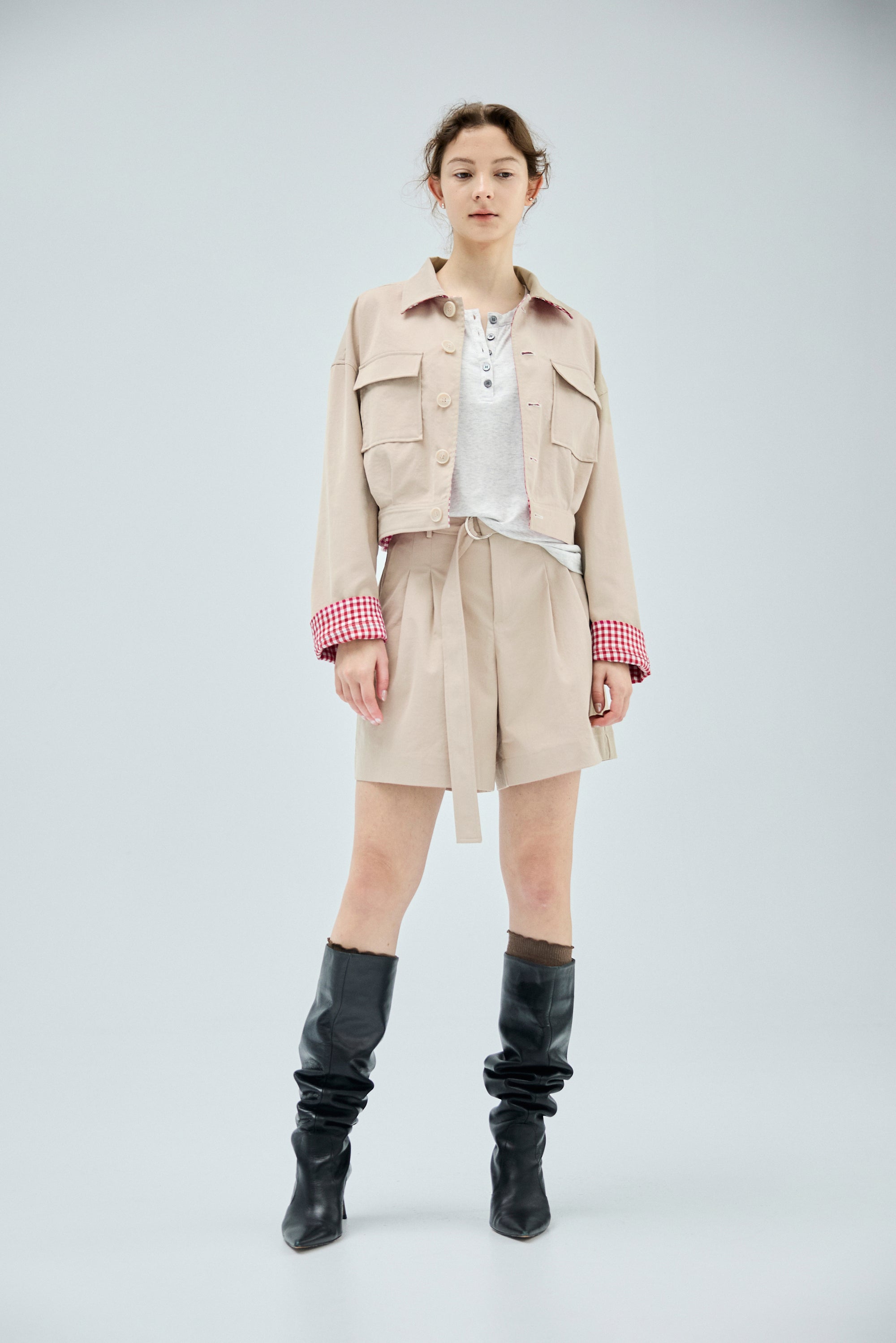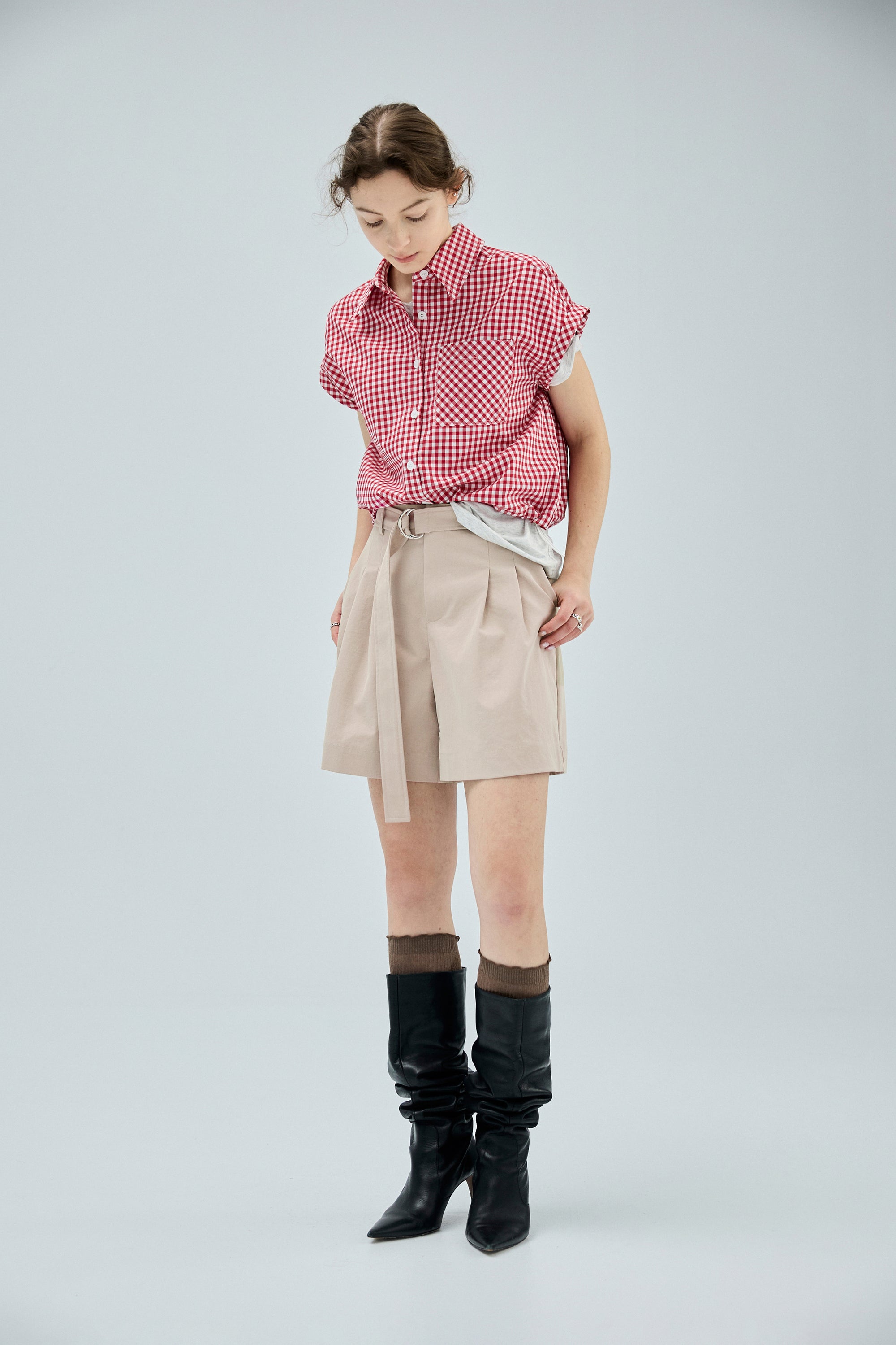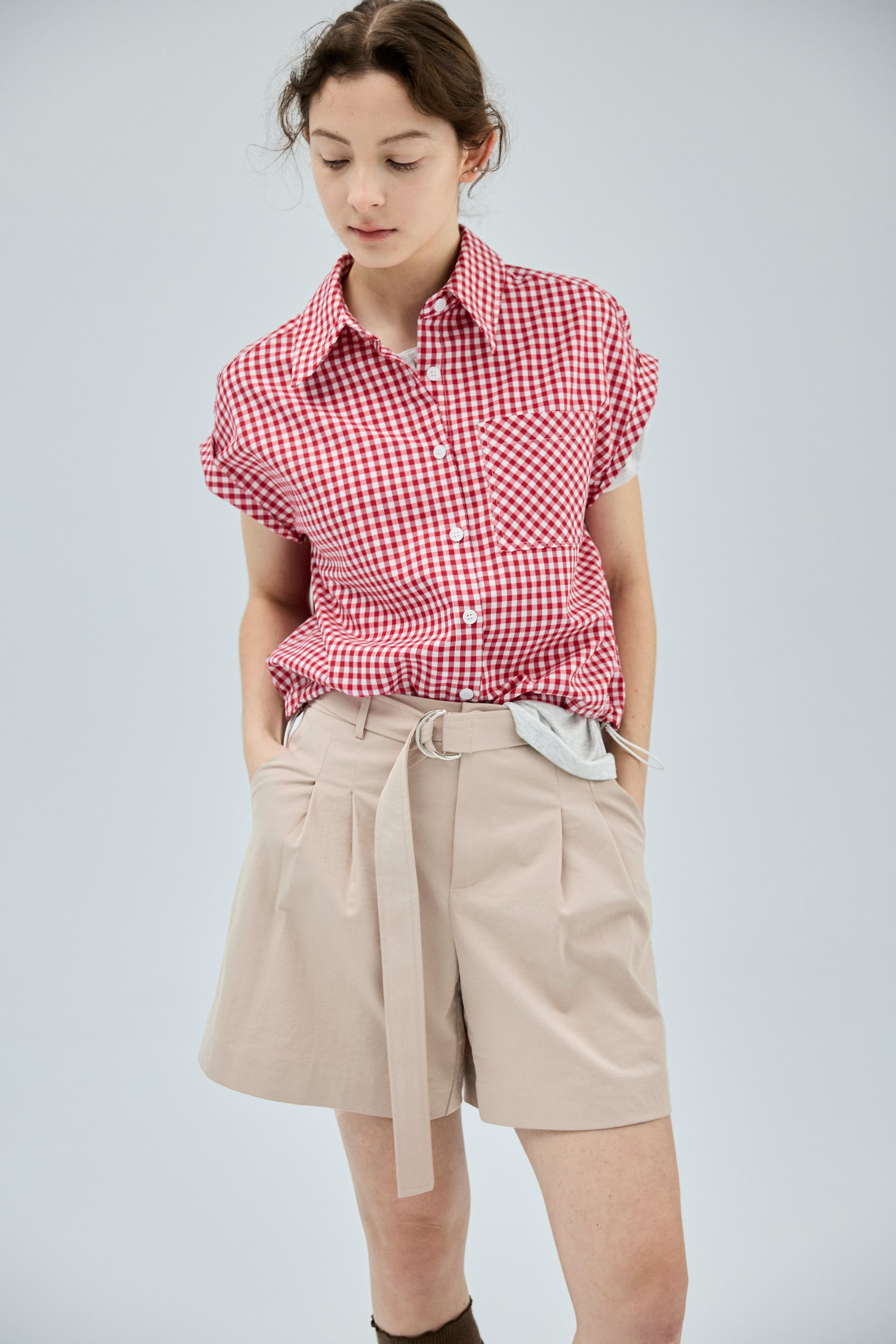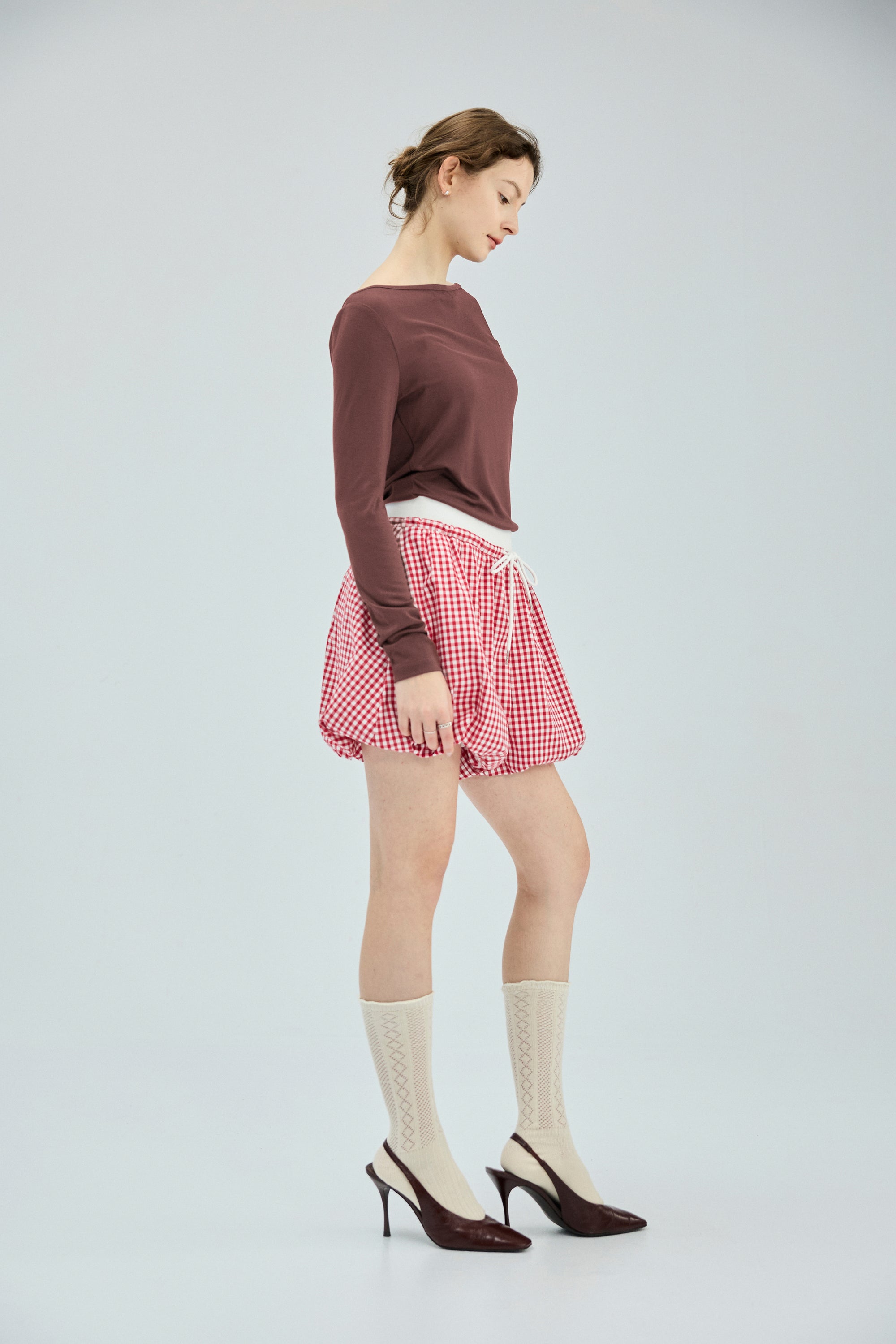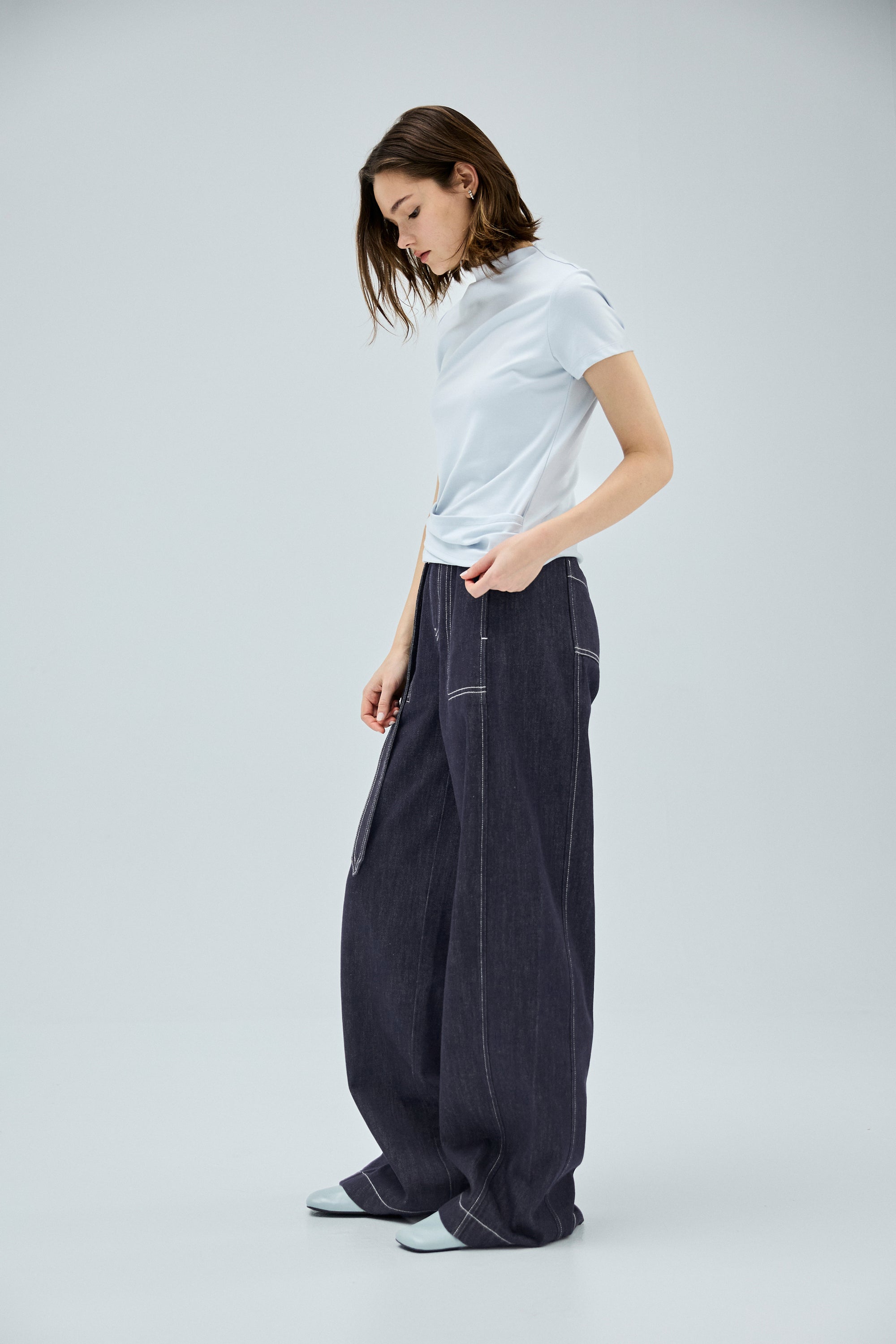 透氣親膚羊毛混紡抓皺下襬短袖TEE-米