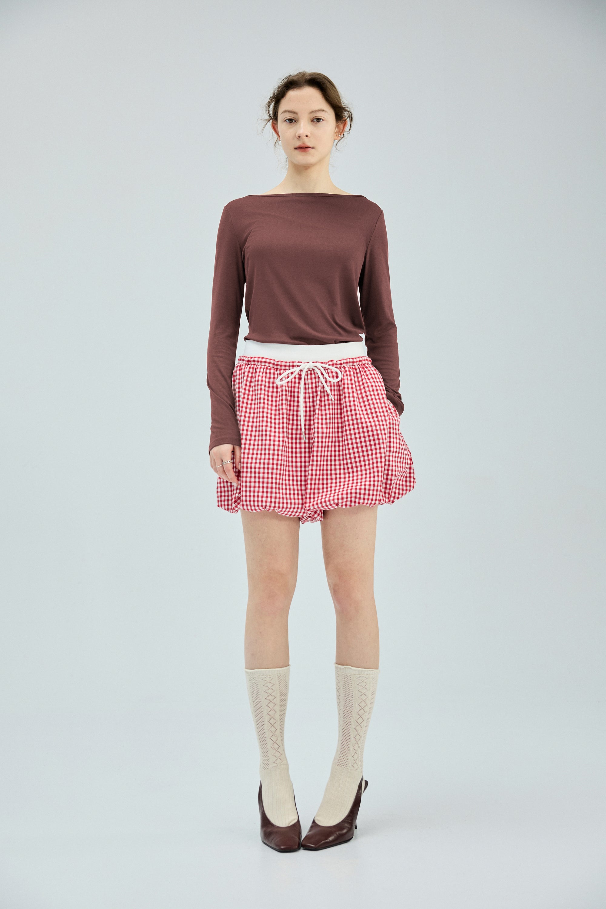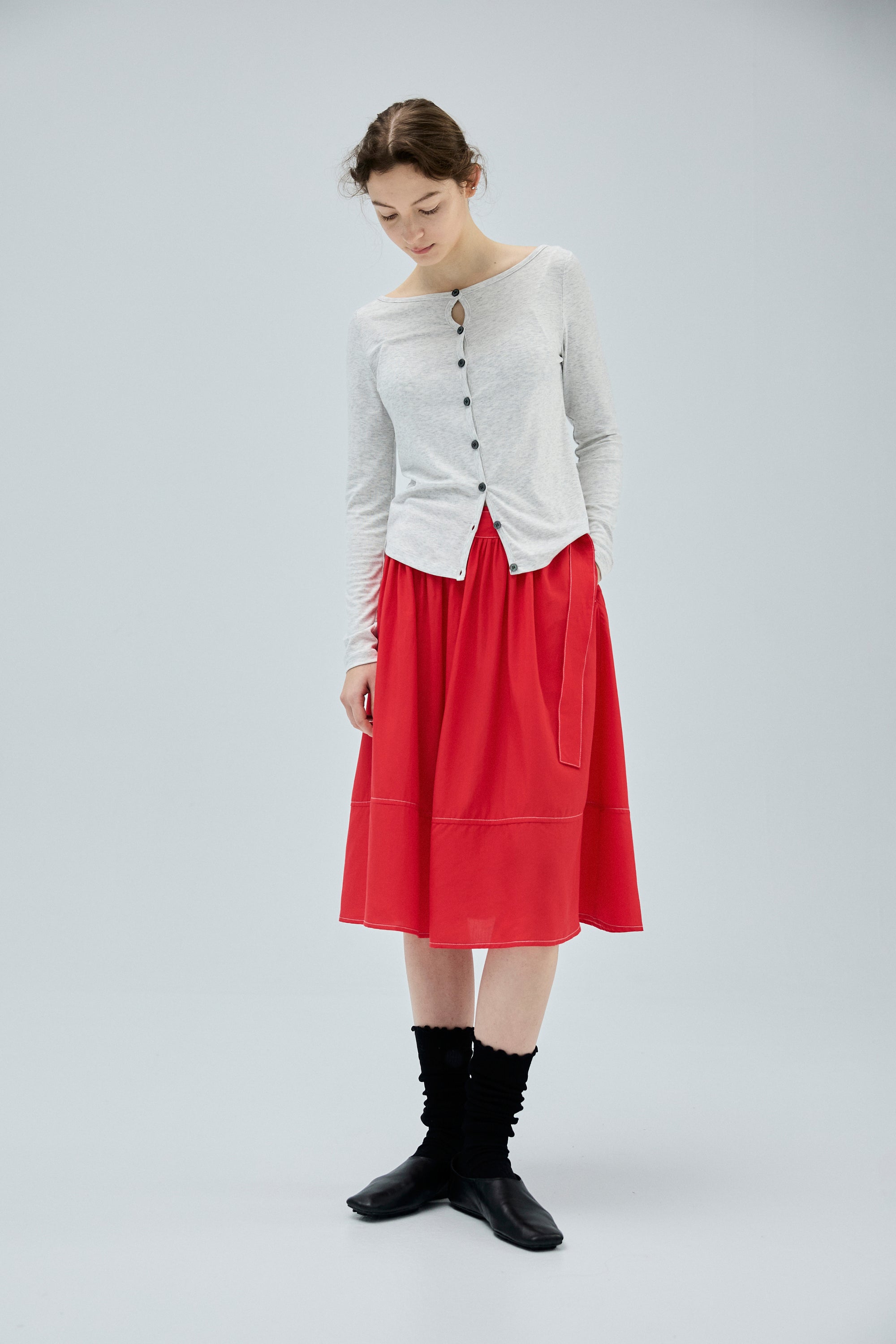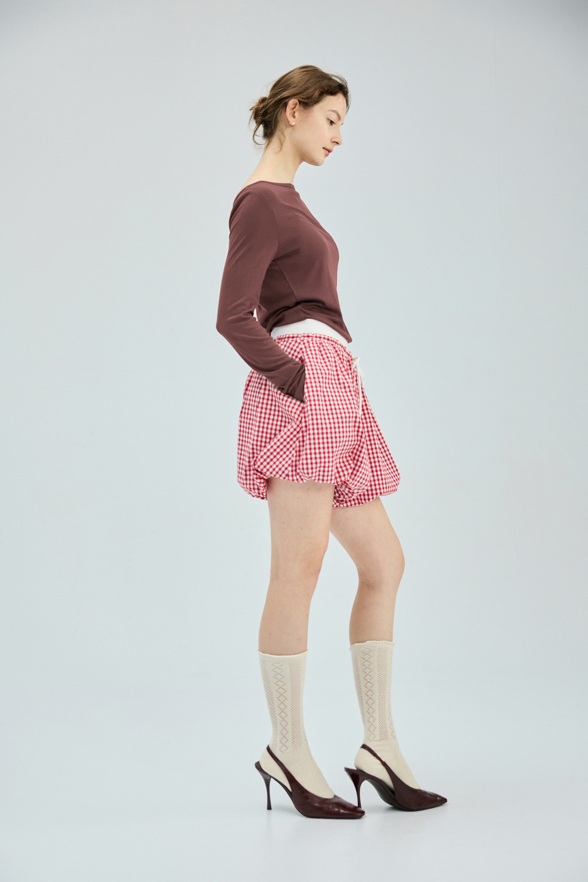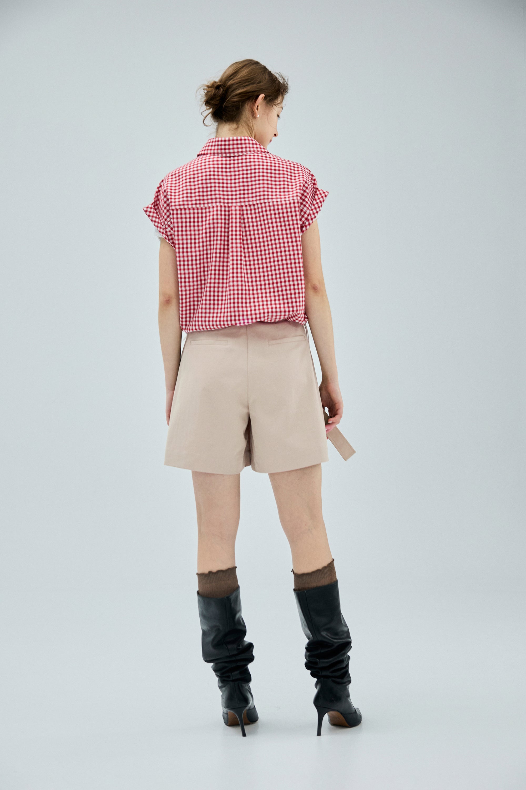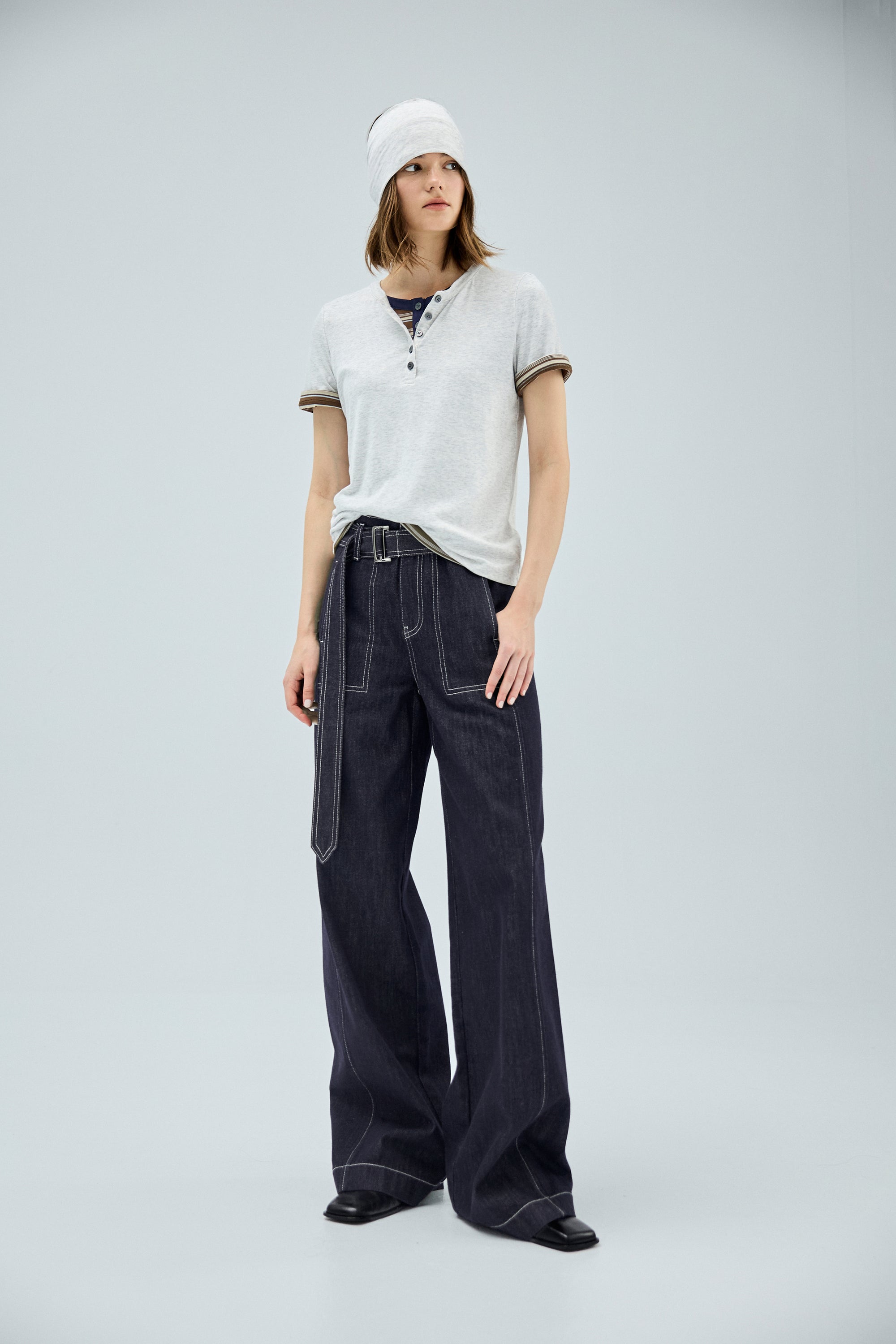 透氣親膚羊毛混紡抓皺下襬短袖TEE-米
