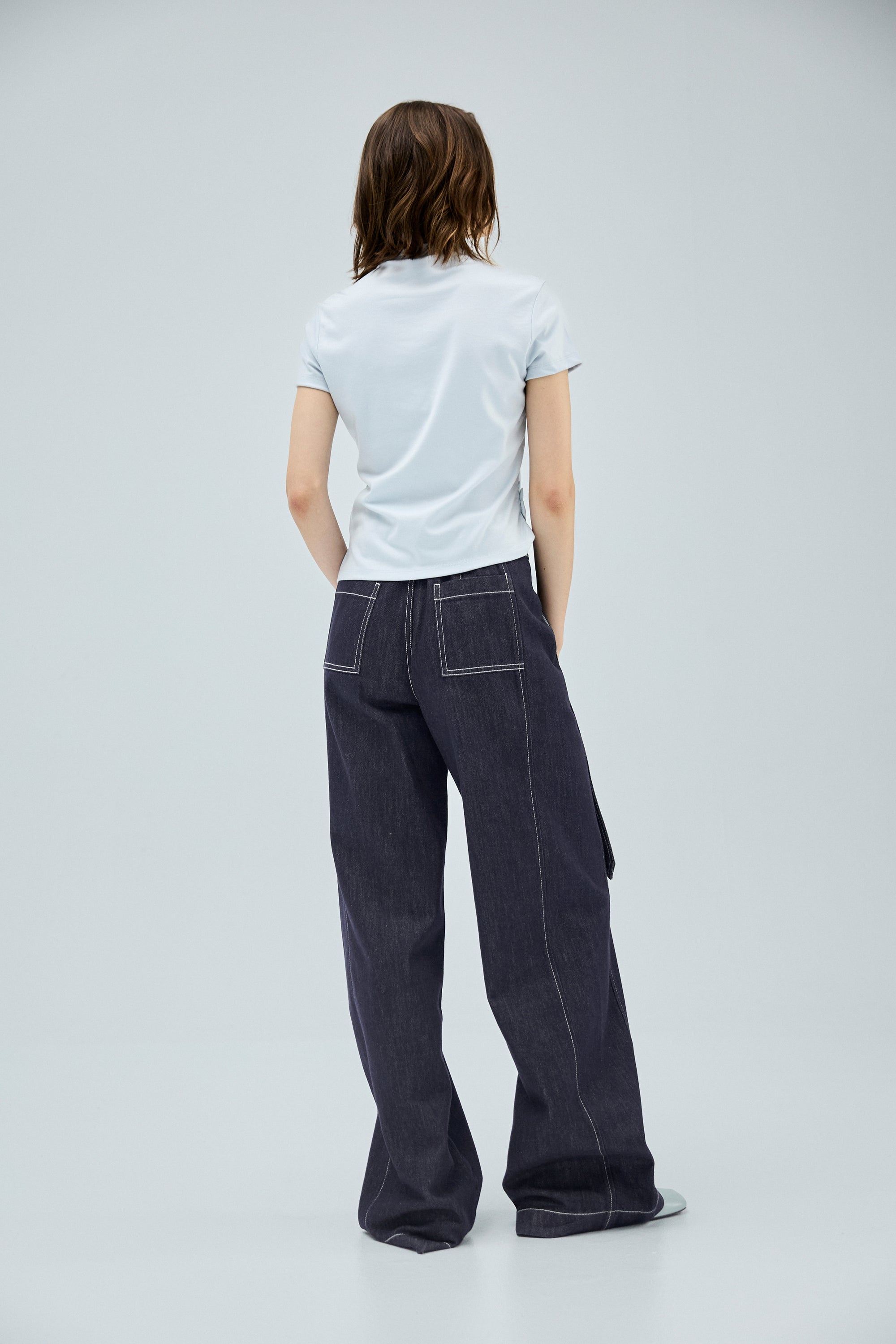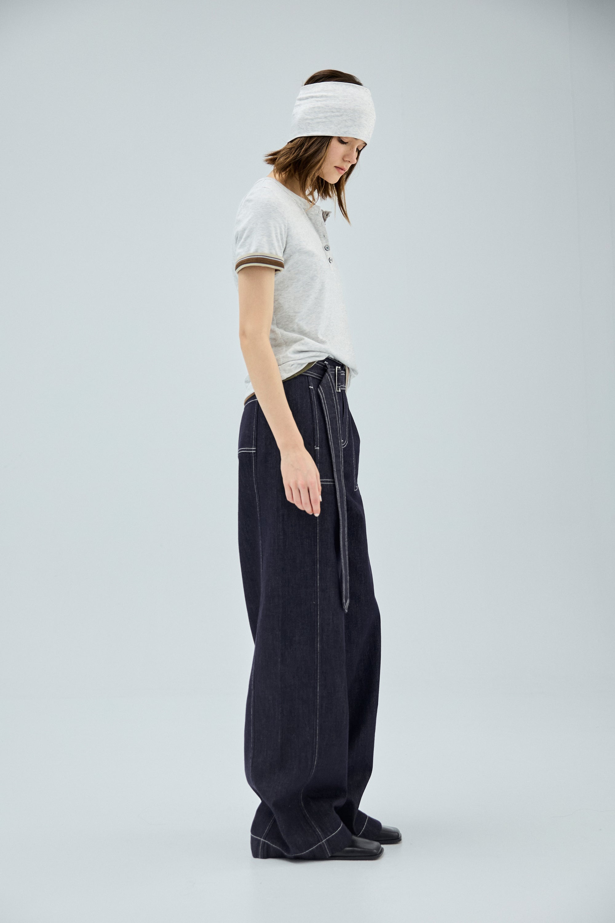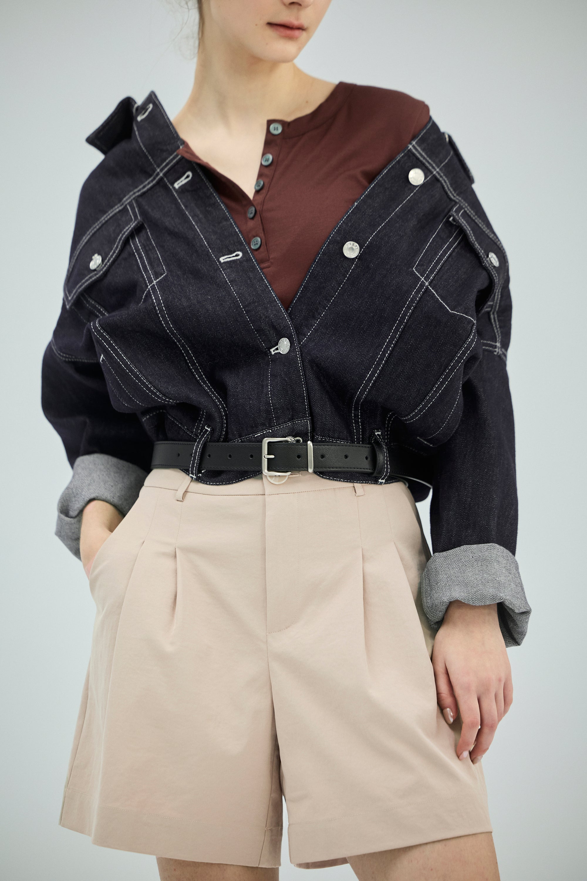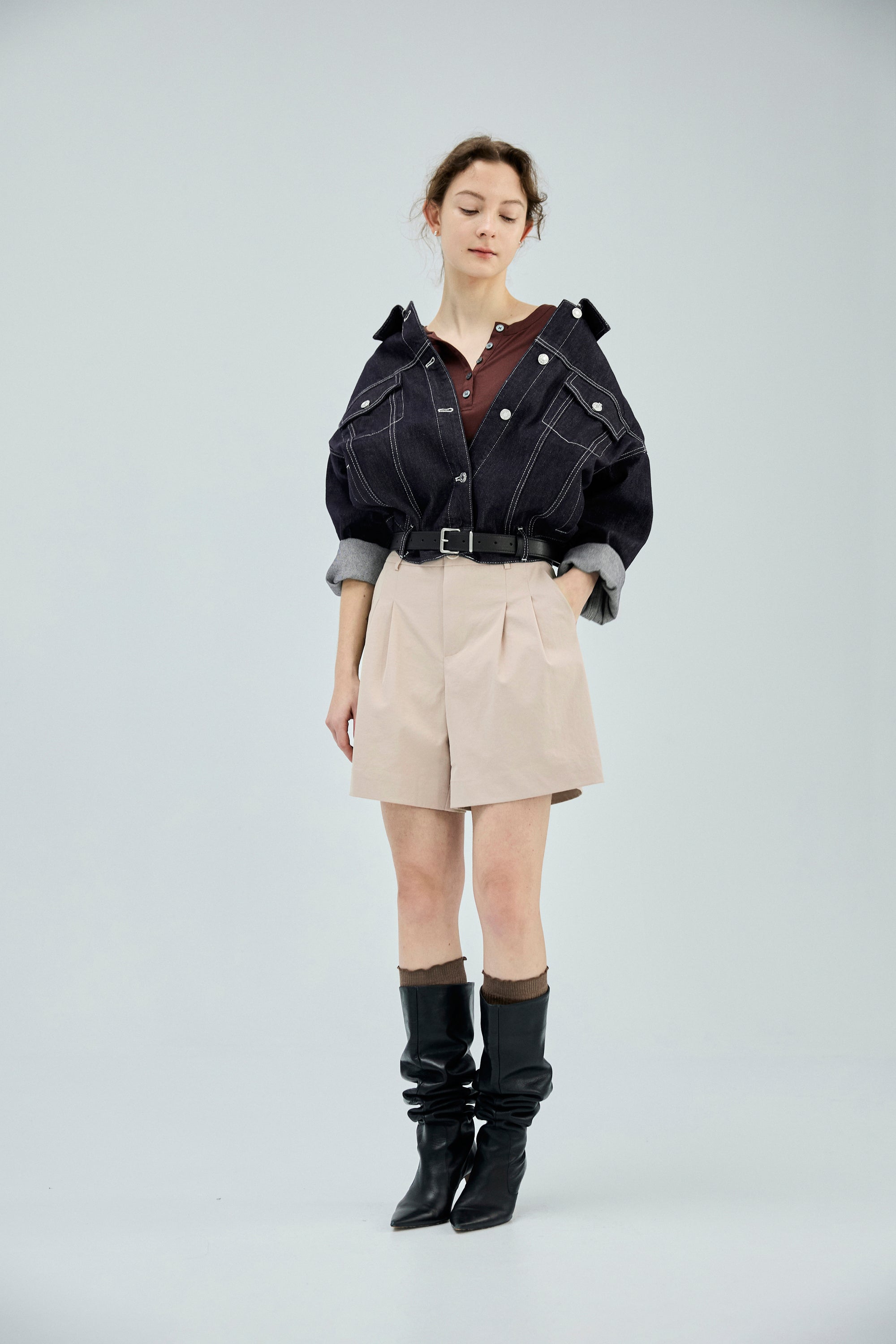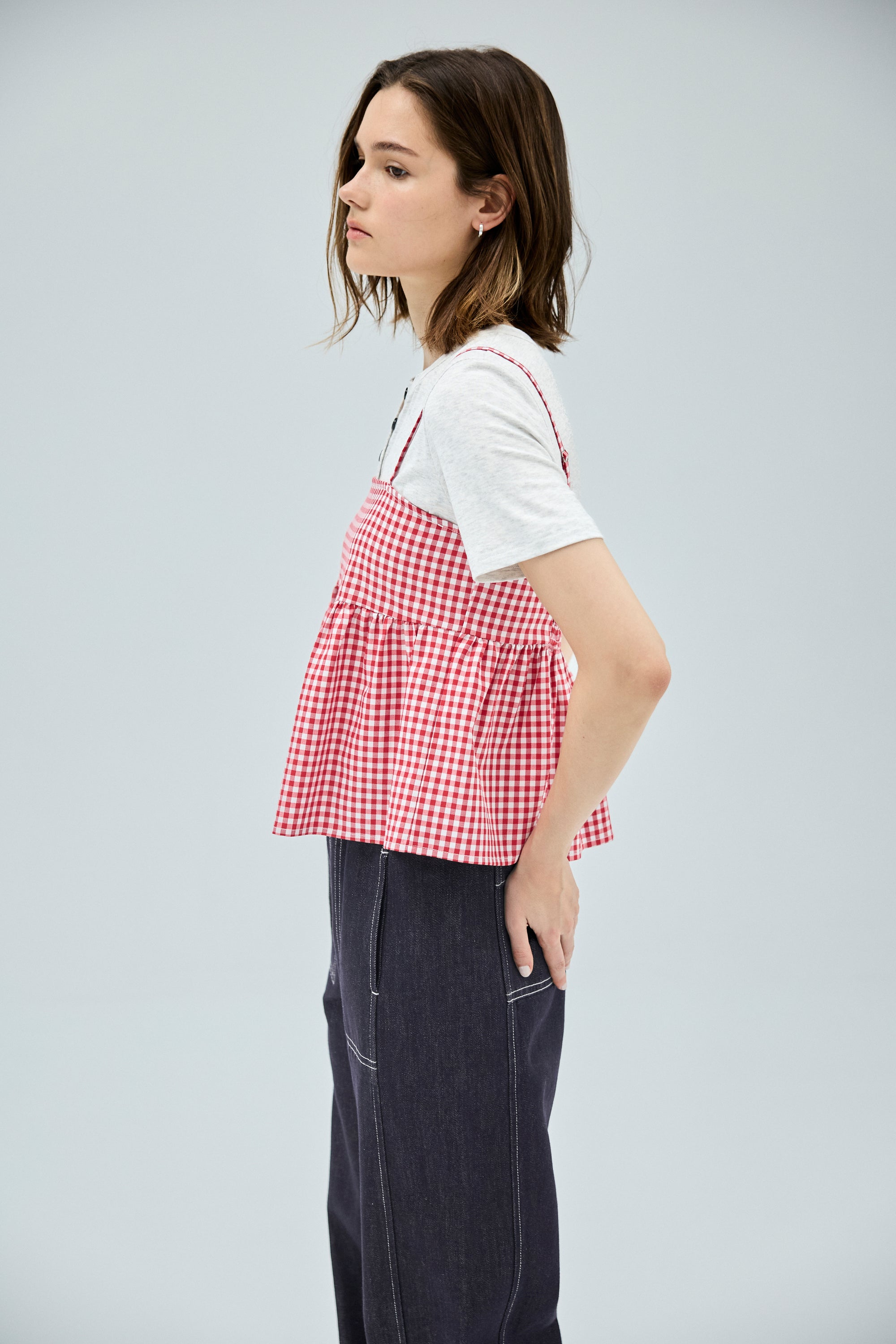 透氣親膚羊毛混紡抓皺下襬短袖TEE-米
